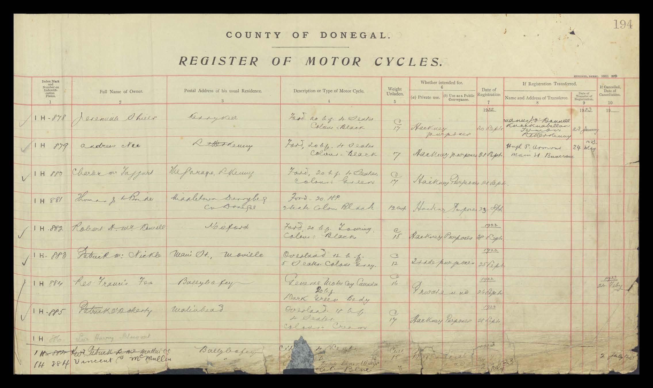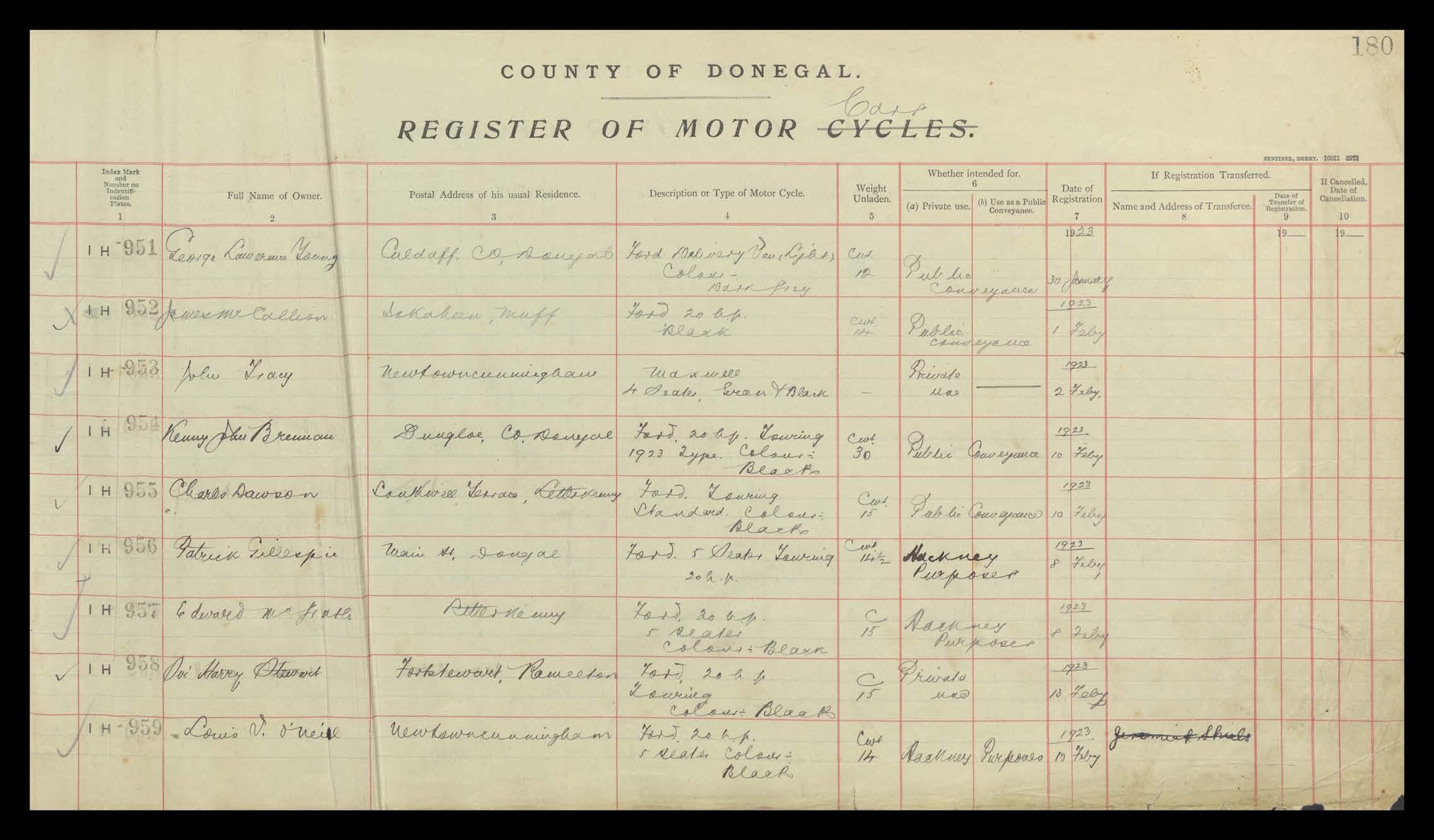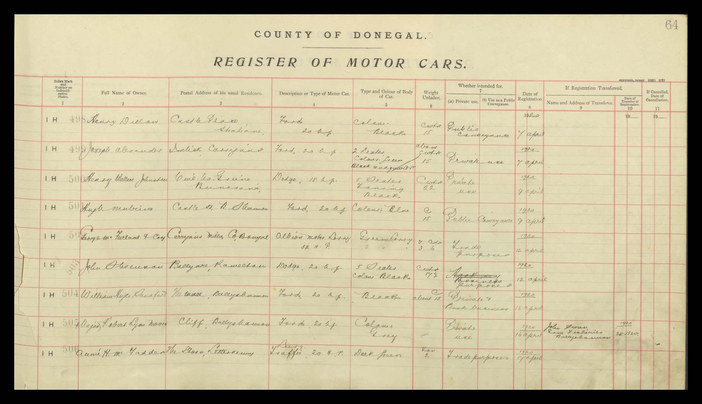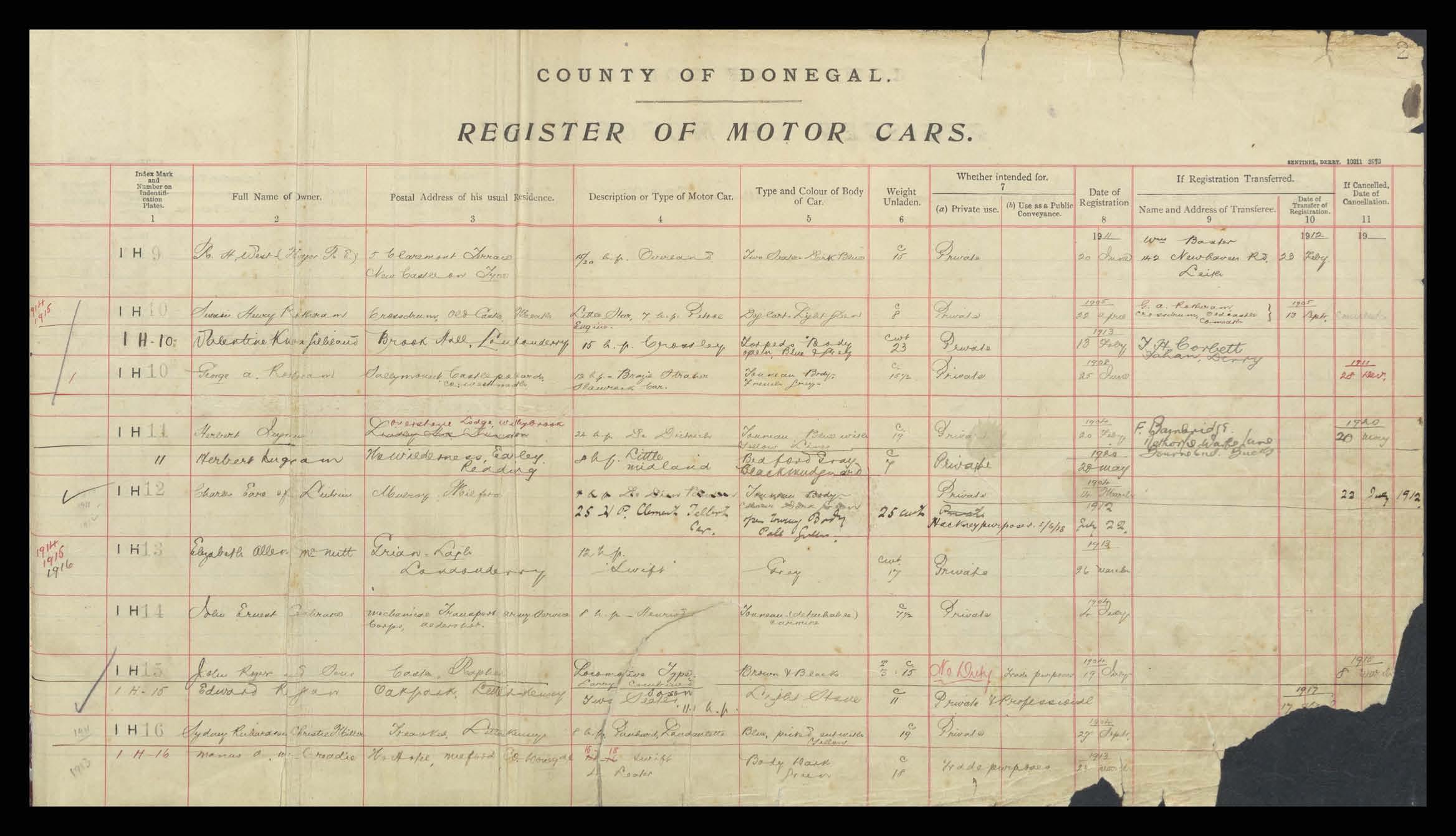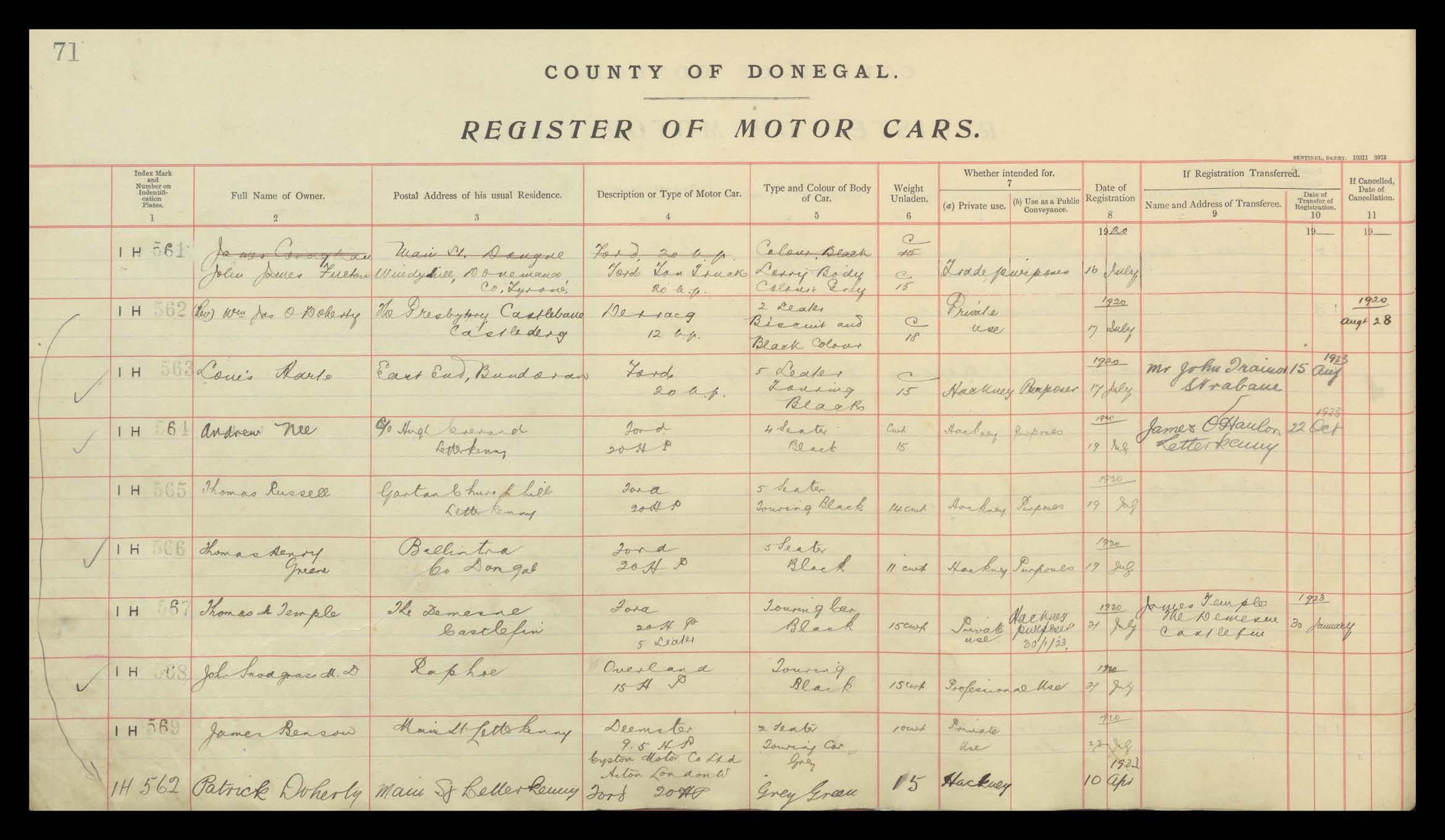 Register of Motor Vehicles, 1903 - 1923