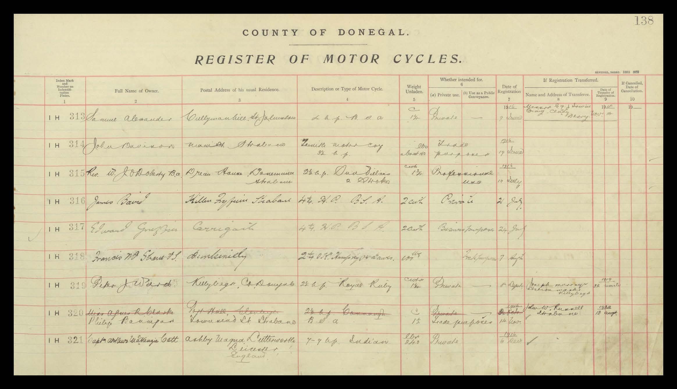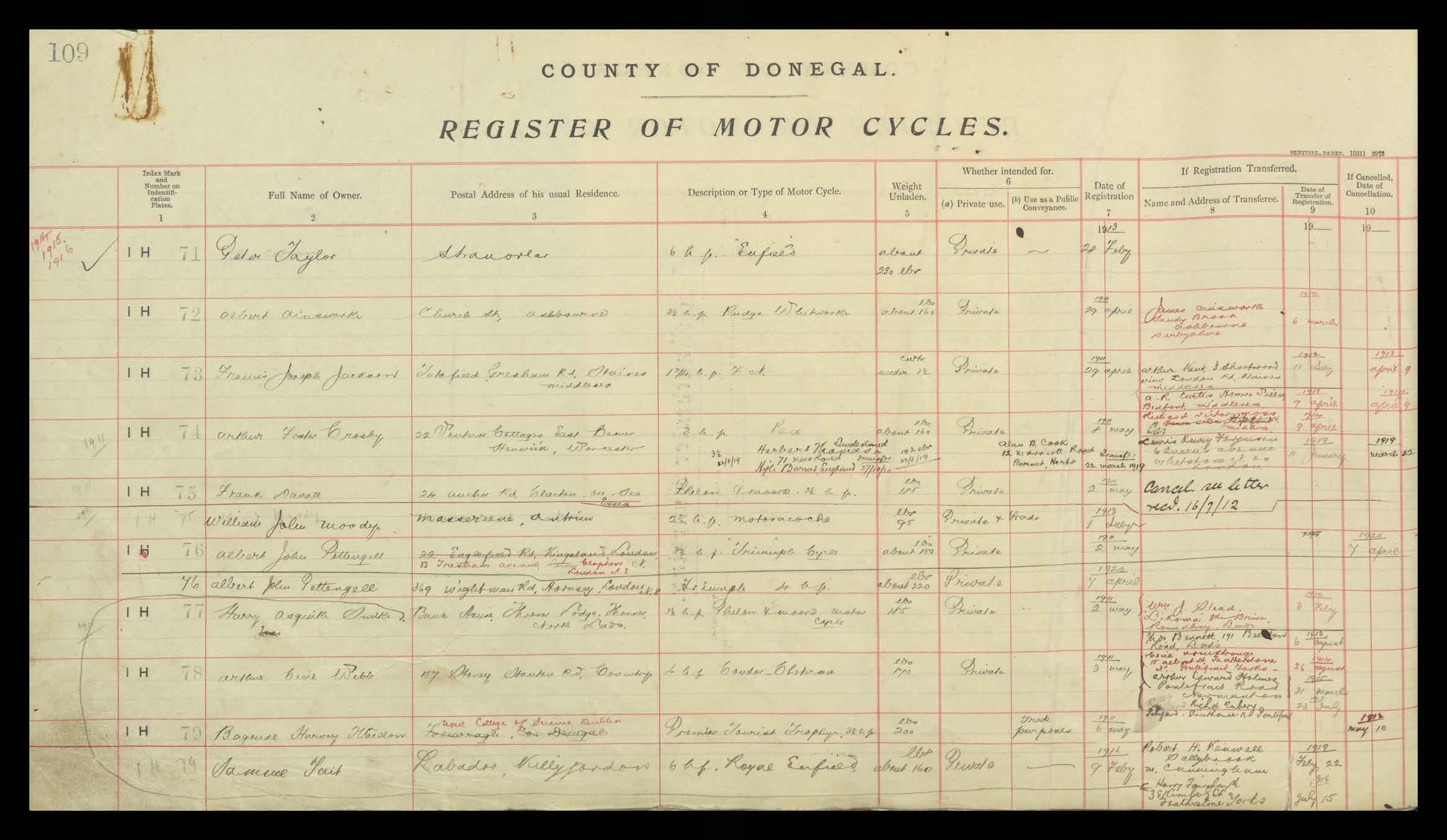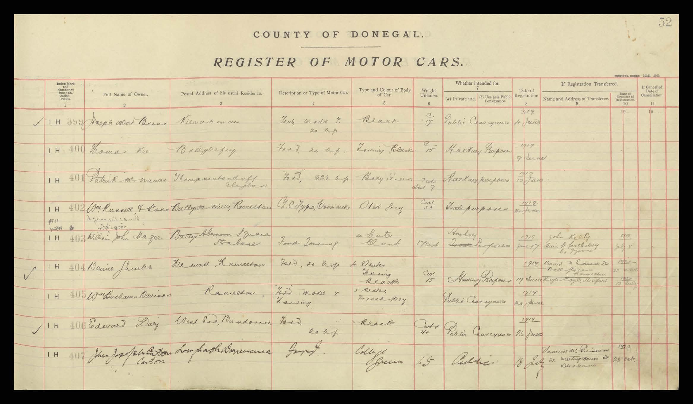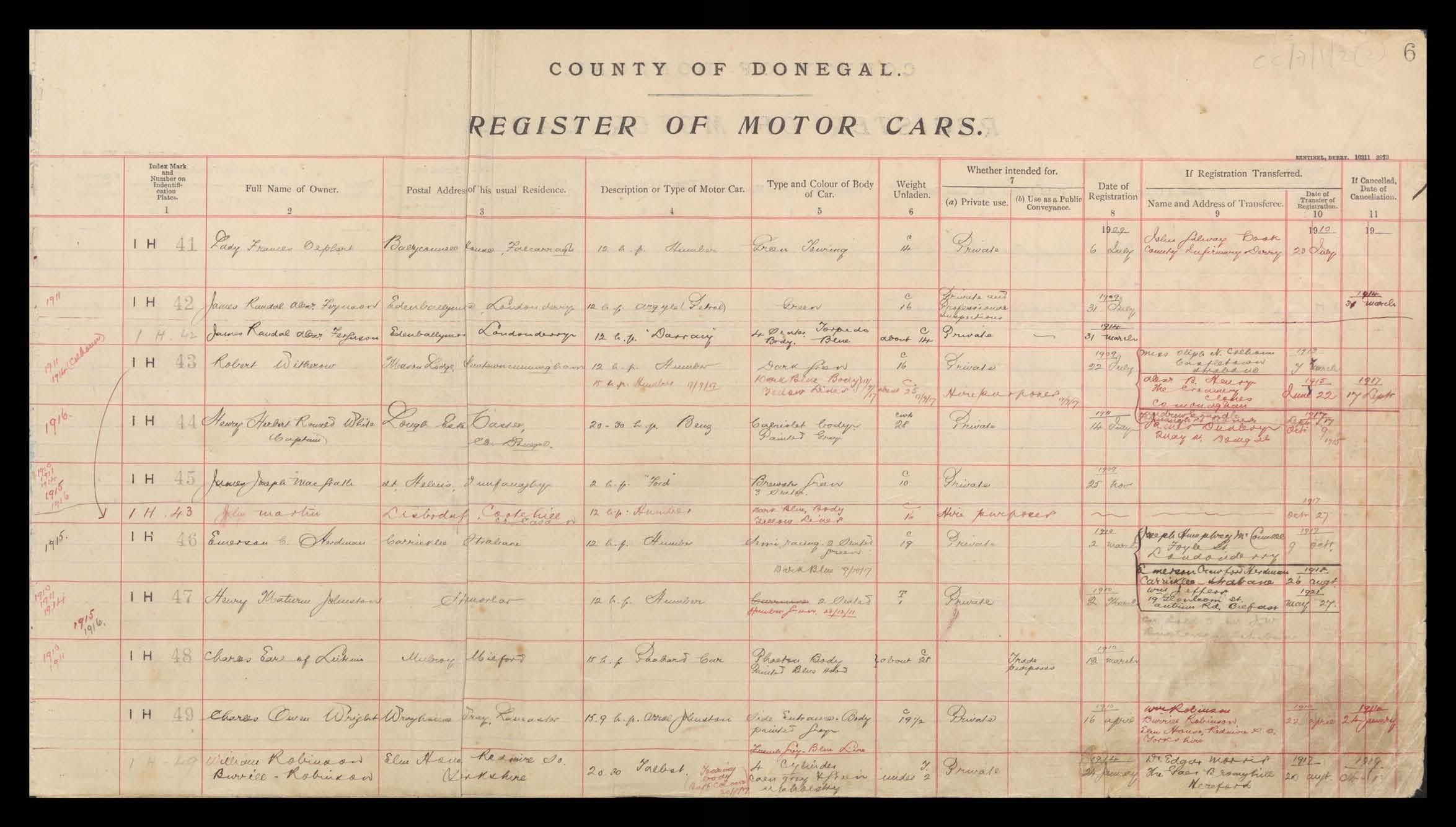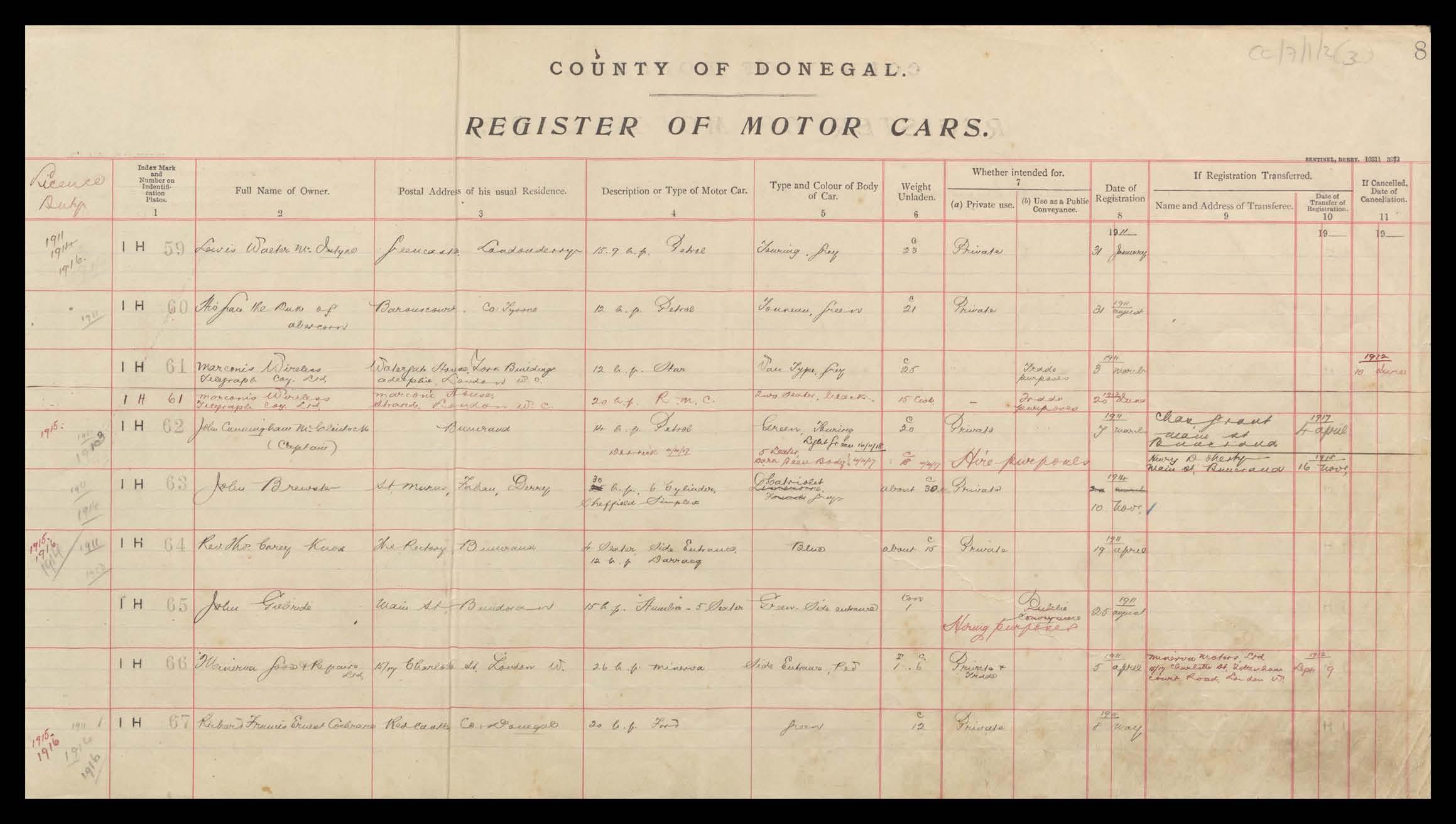 Register of Motor Vehicles, 1903 - 1923