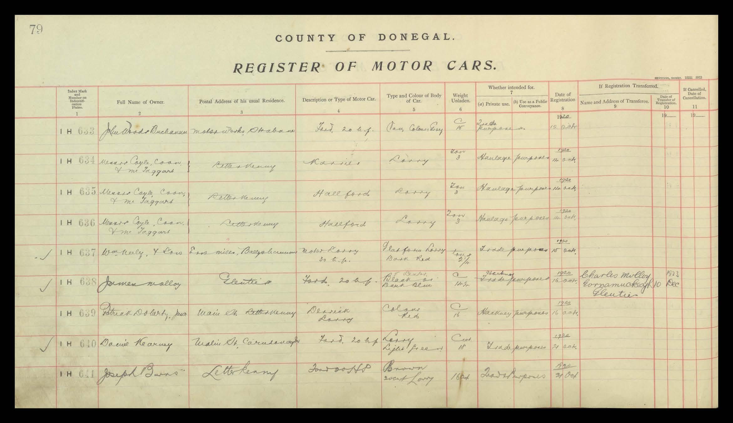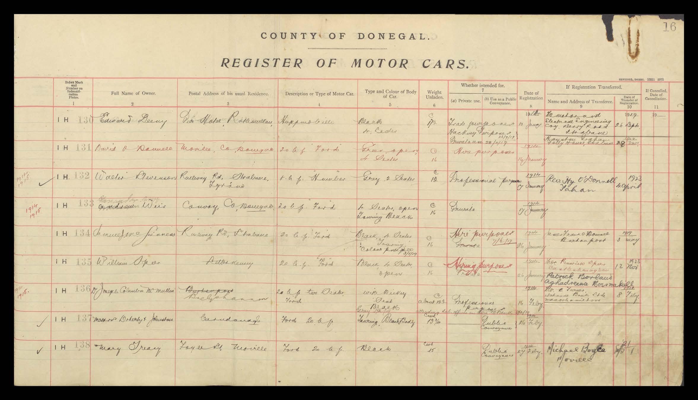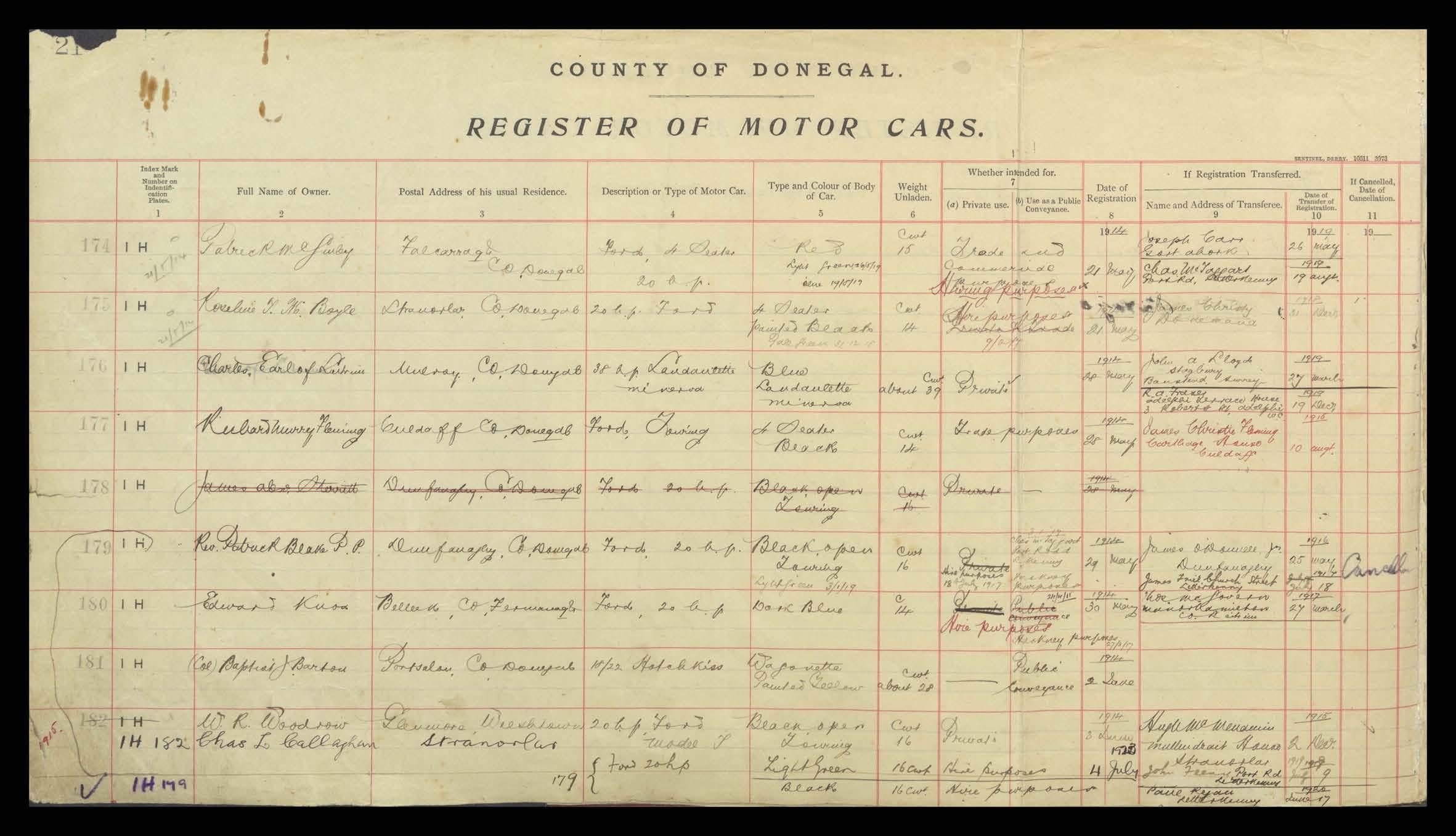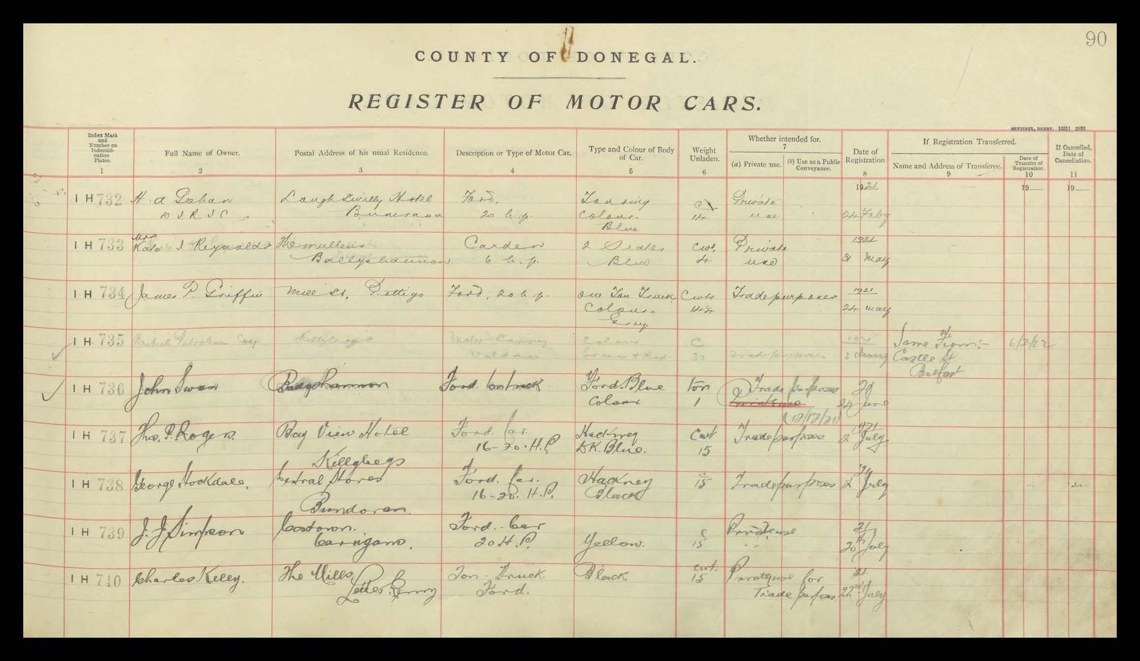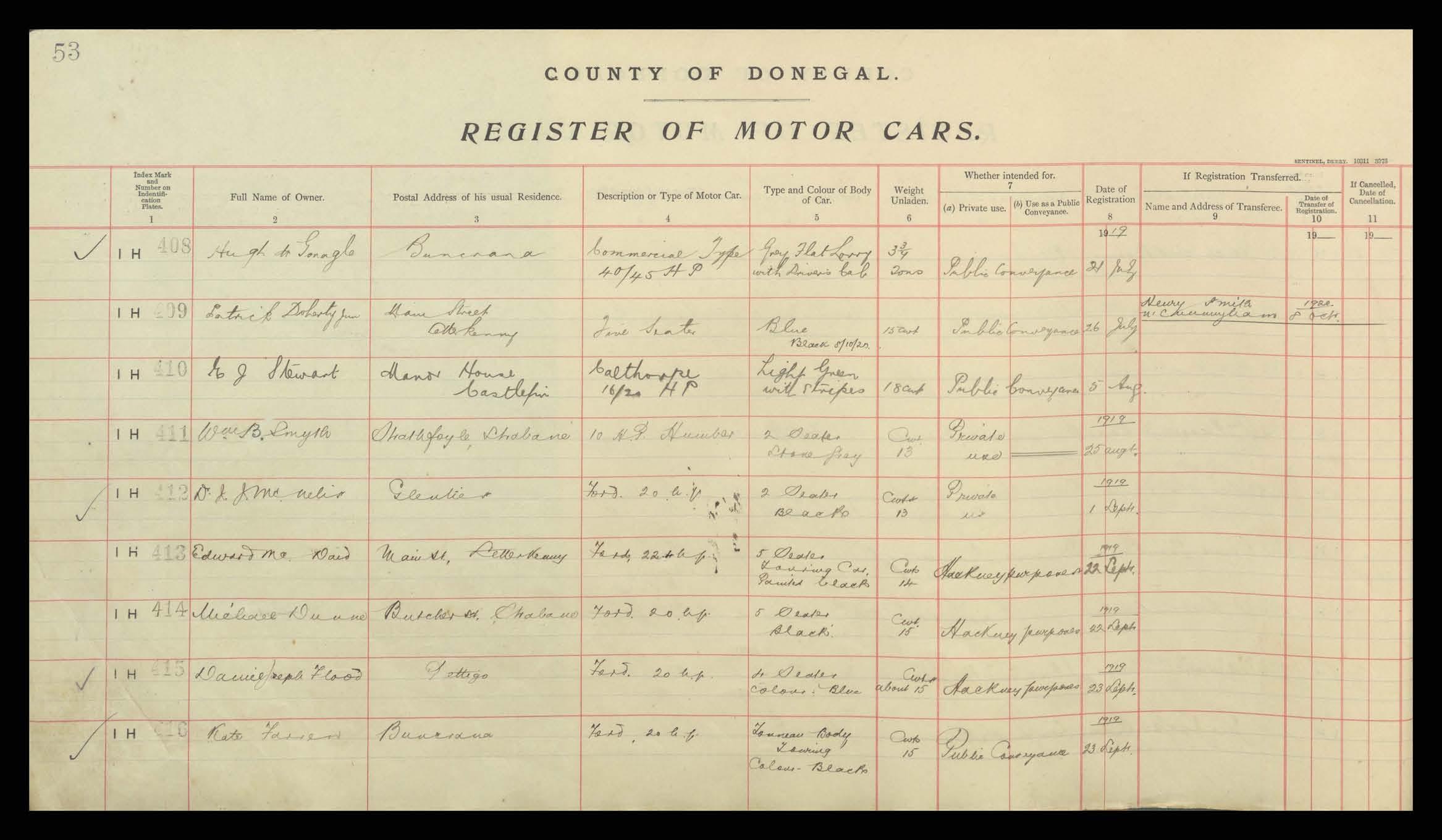 Register of Motor Vehicles, 1903 - 1923