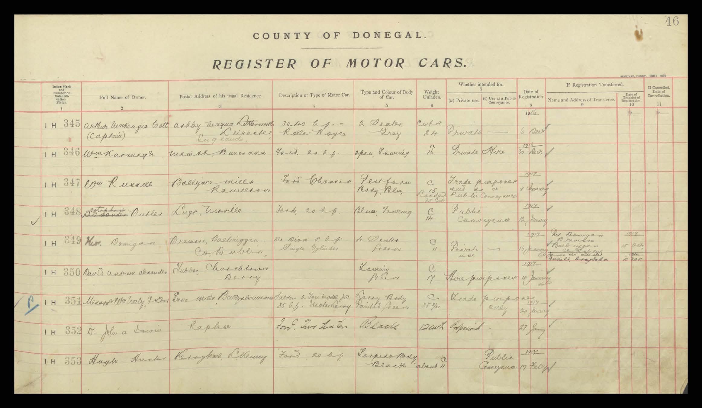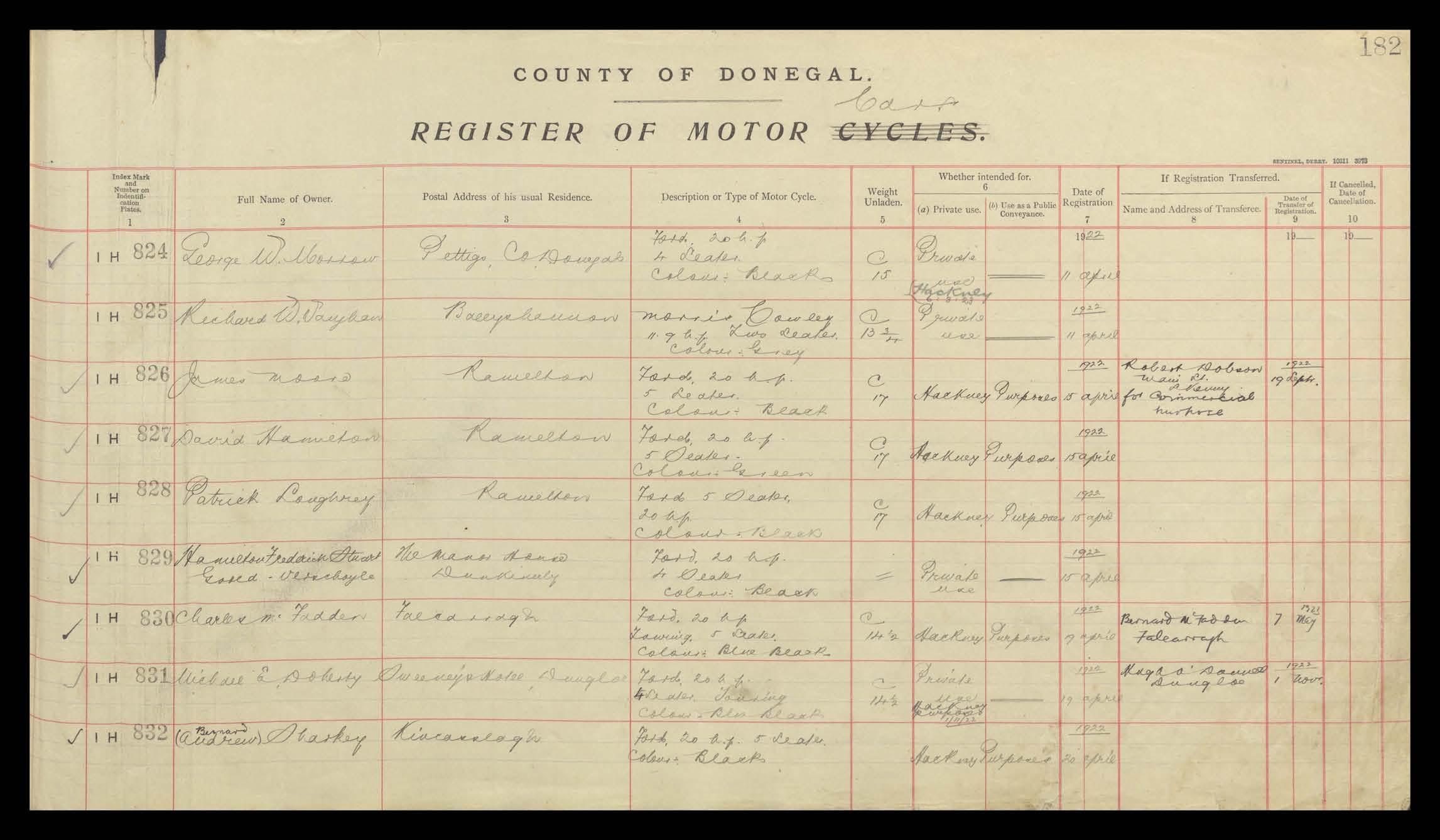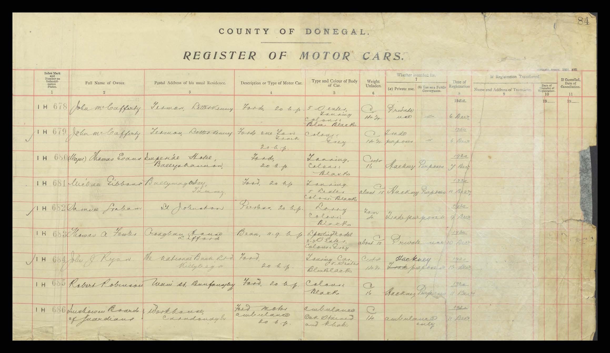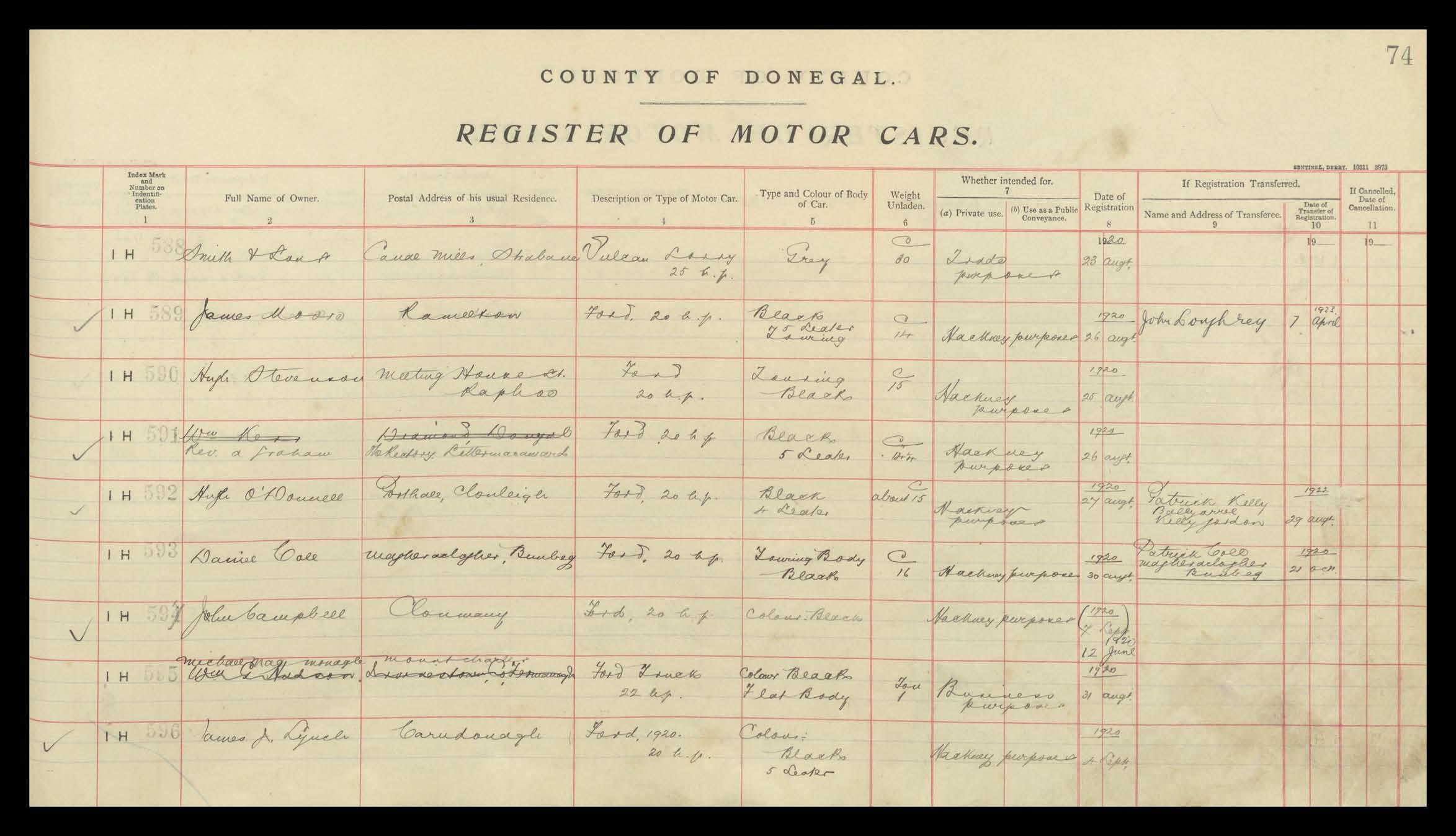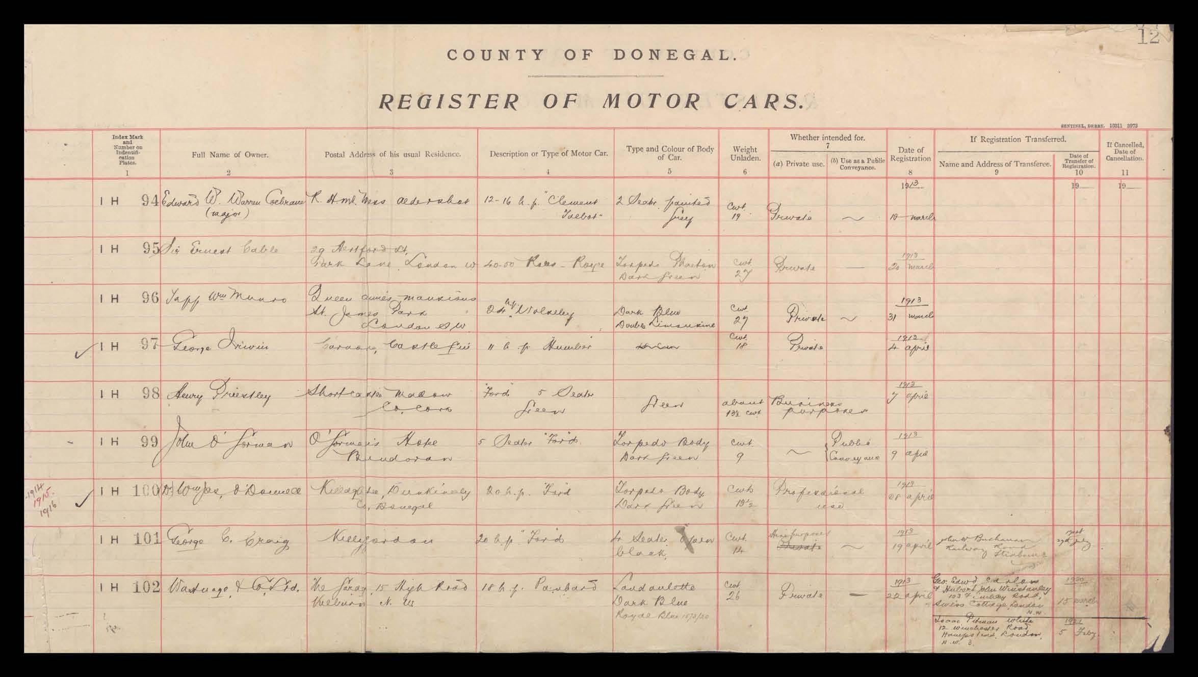 Register of Motor Vehicles, 1903 - 1923