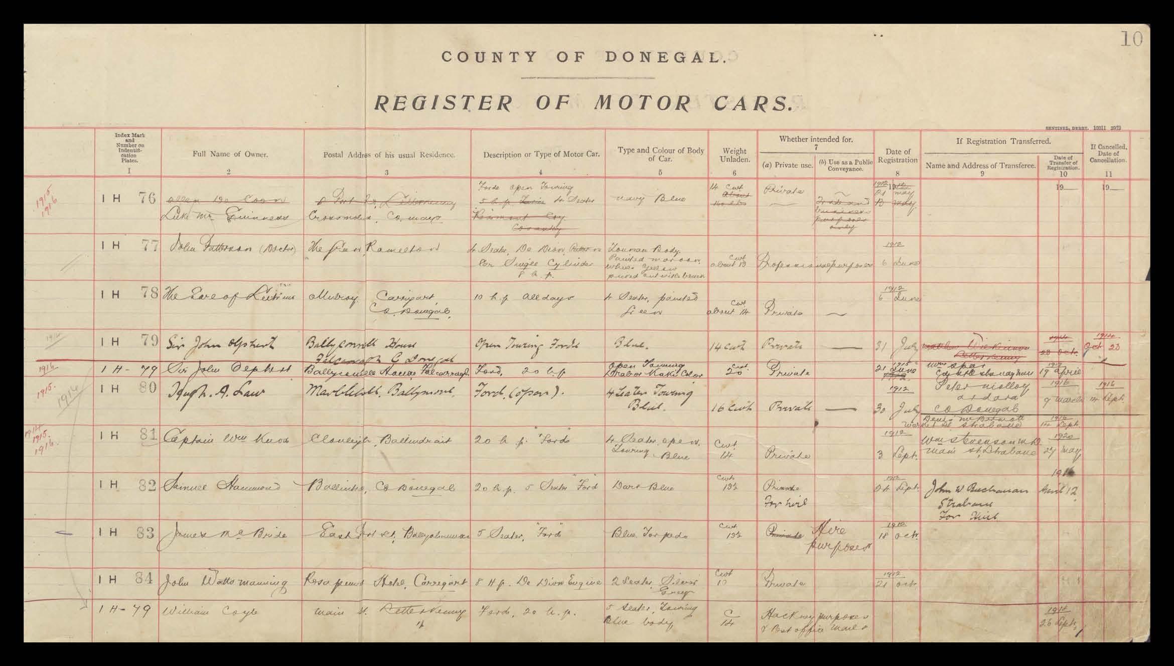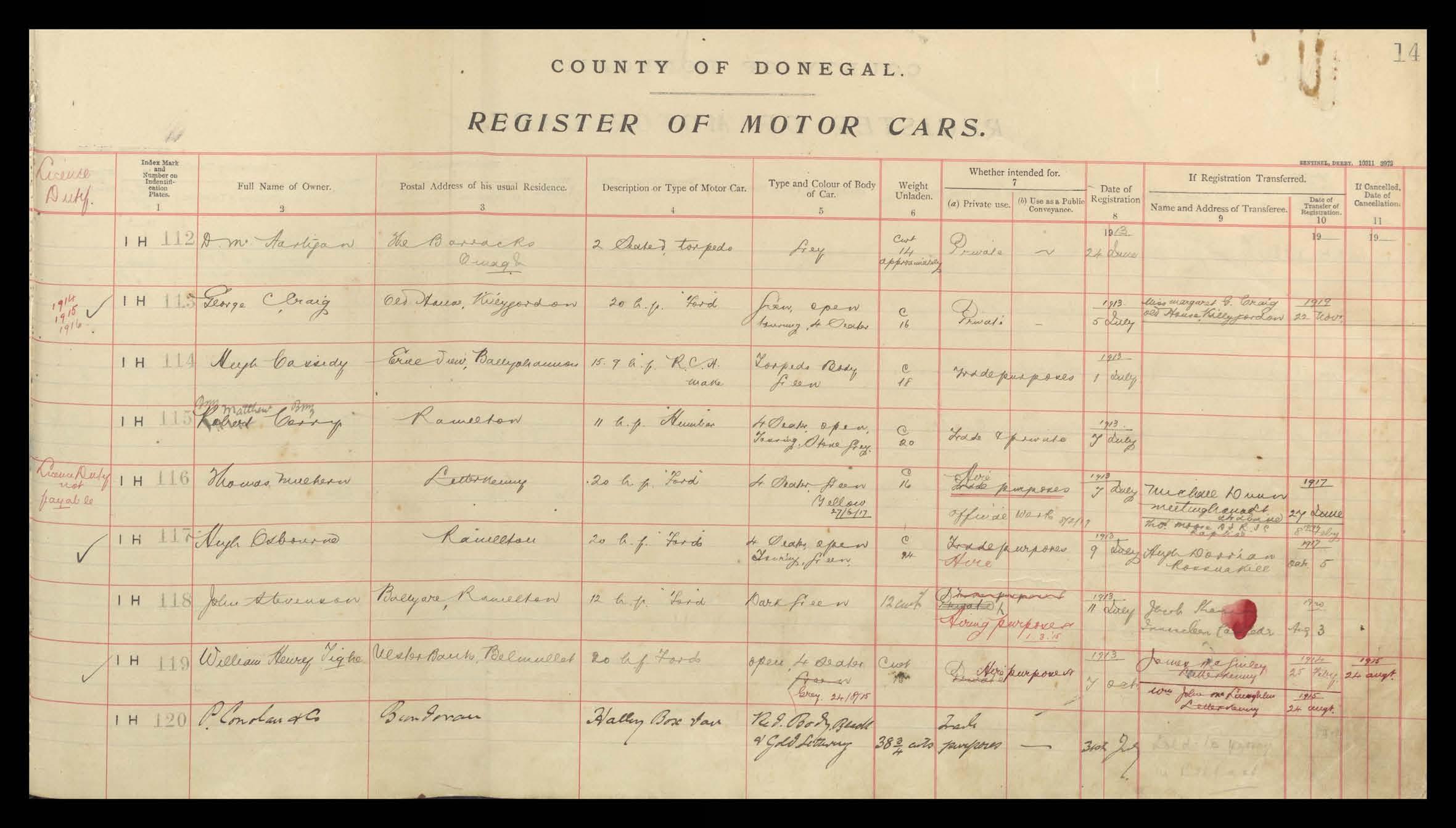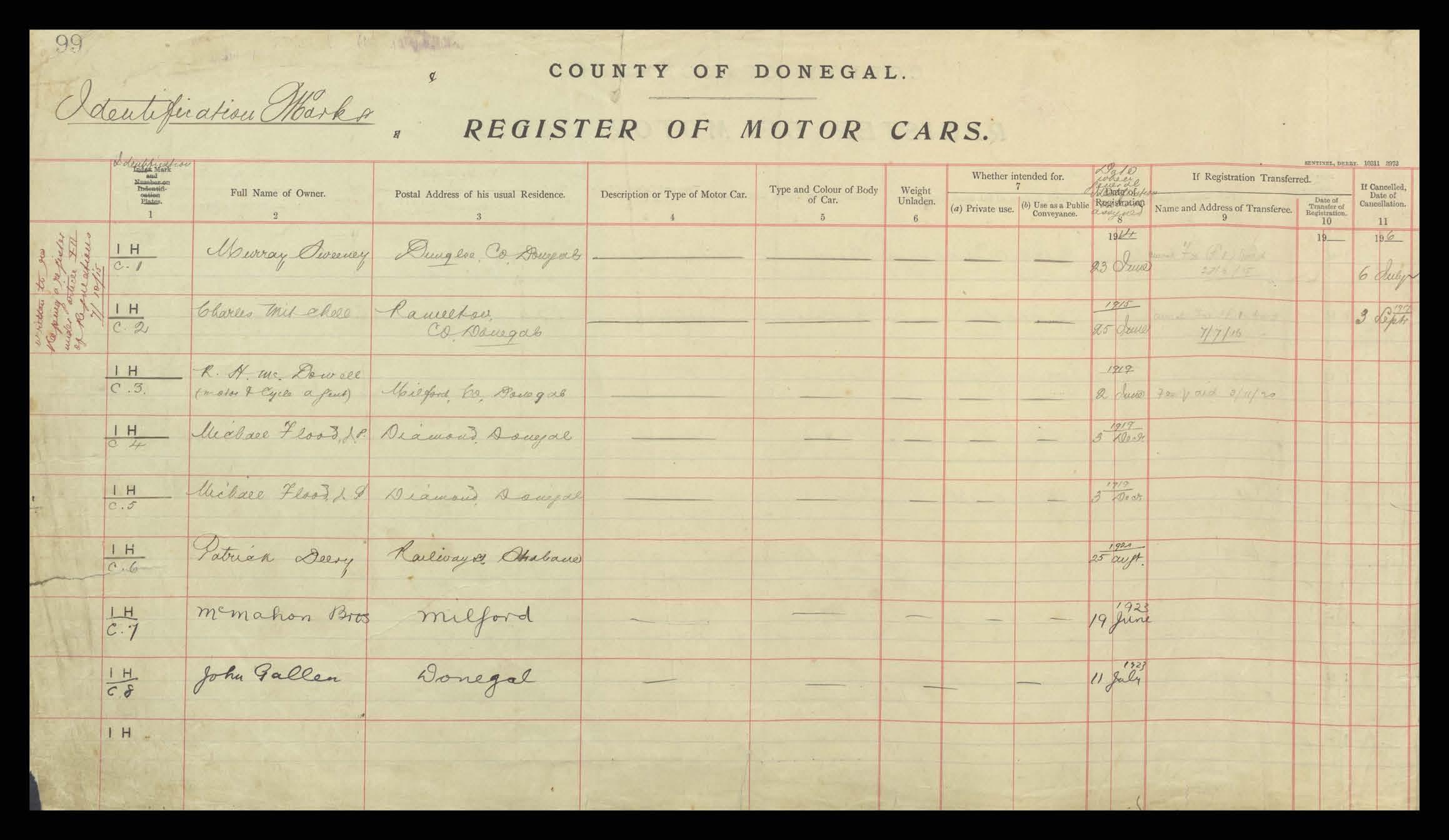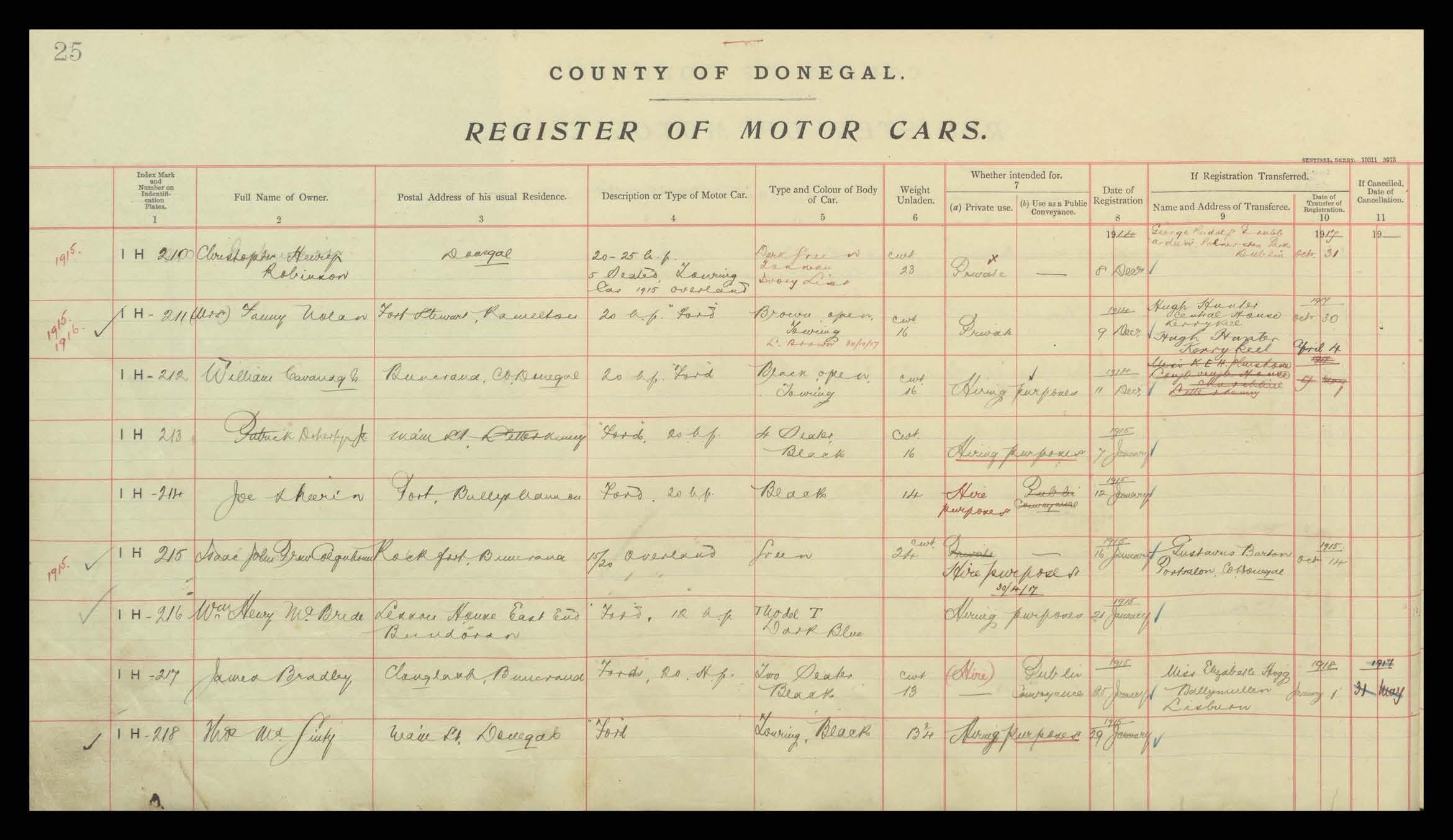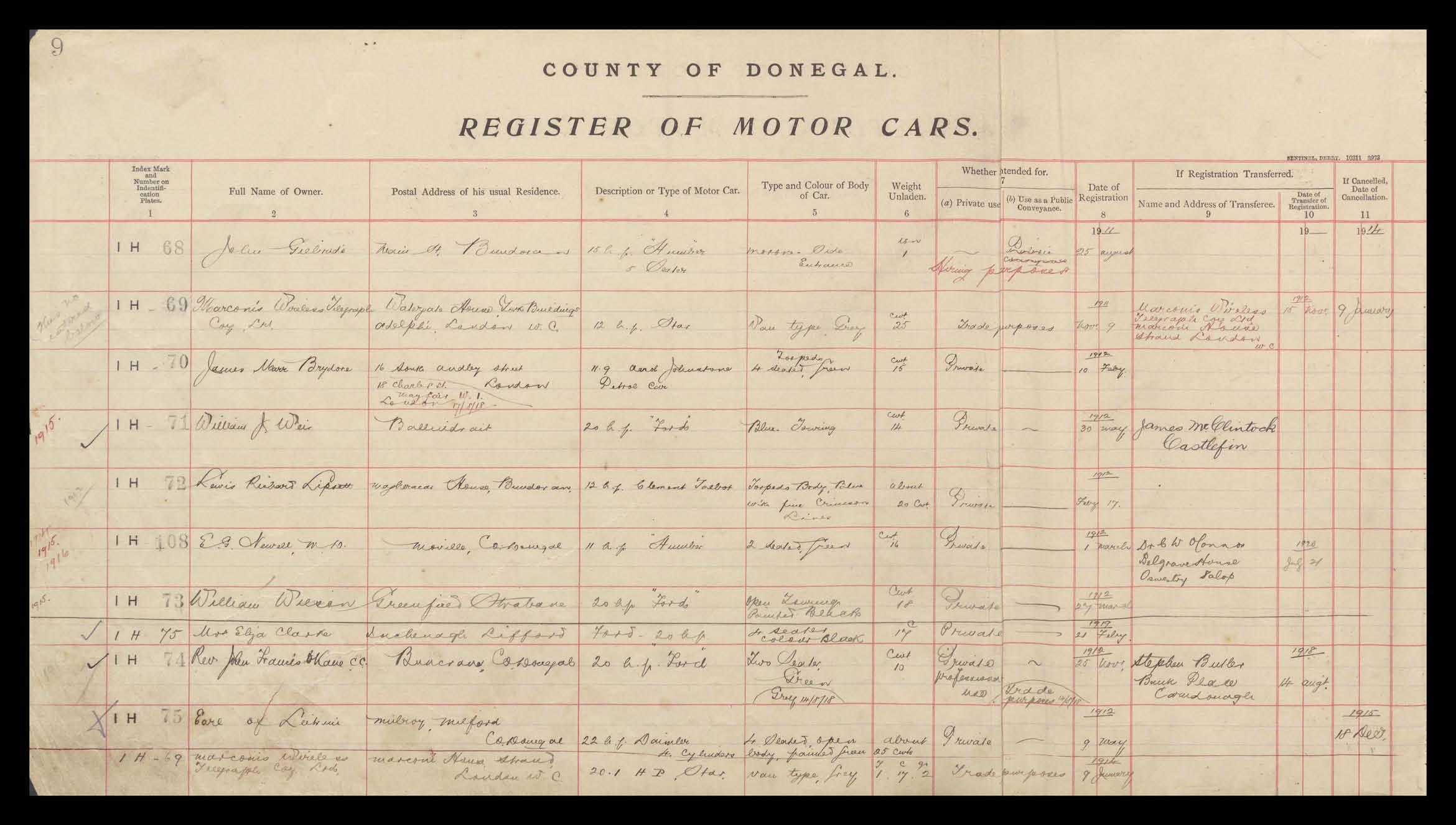 Register of Motor Vehicles, 1903 - 1923