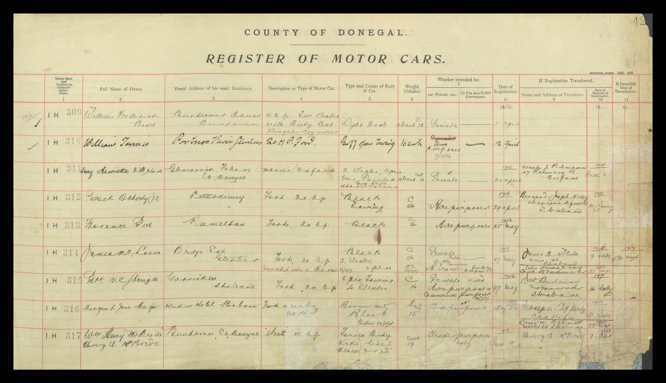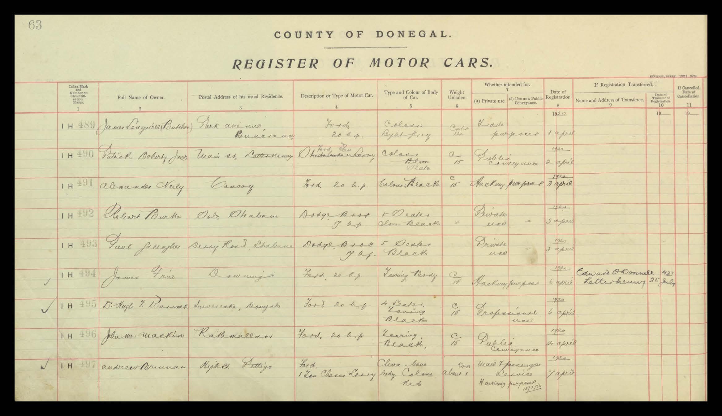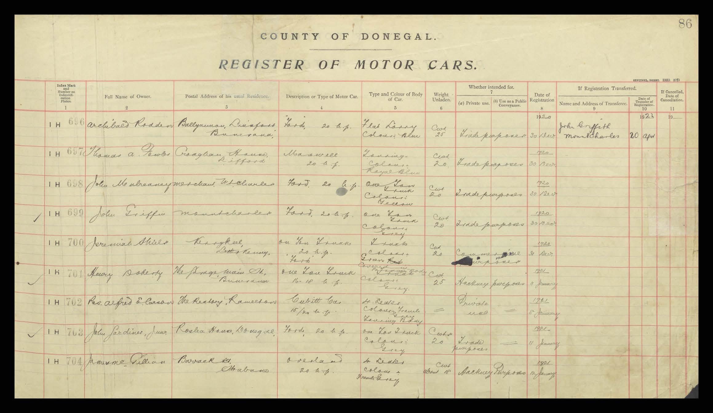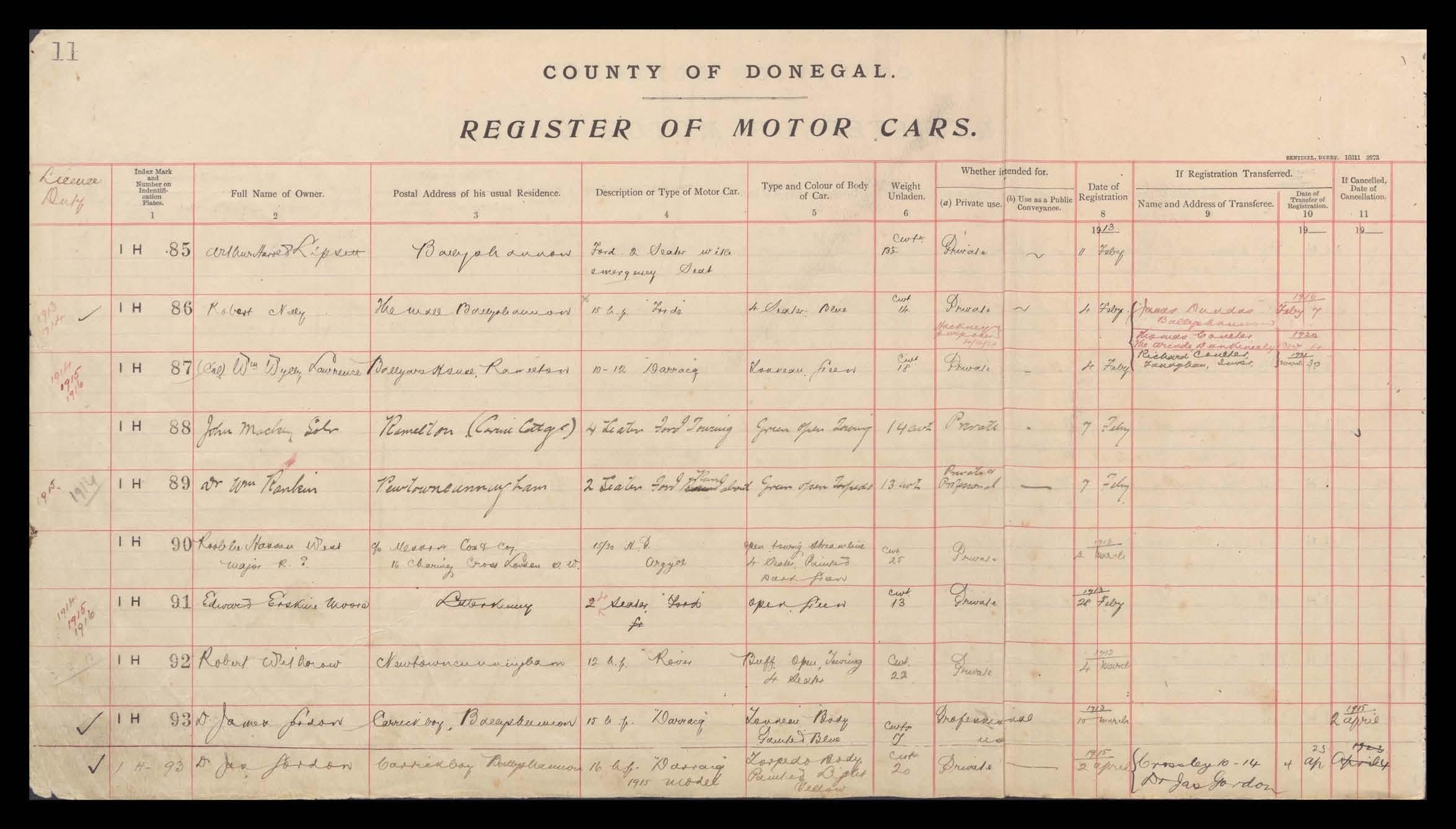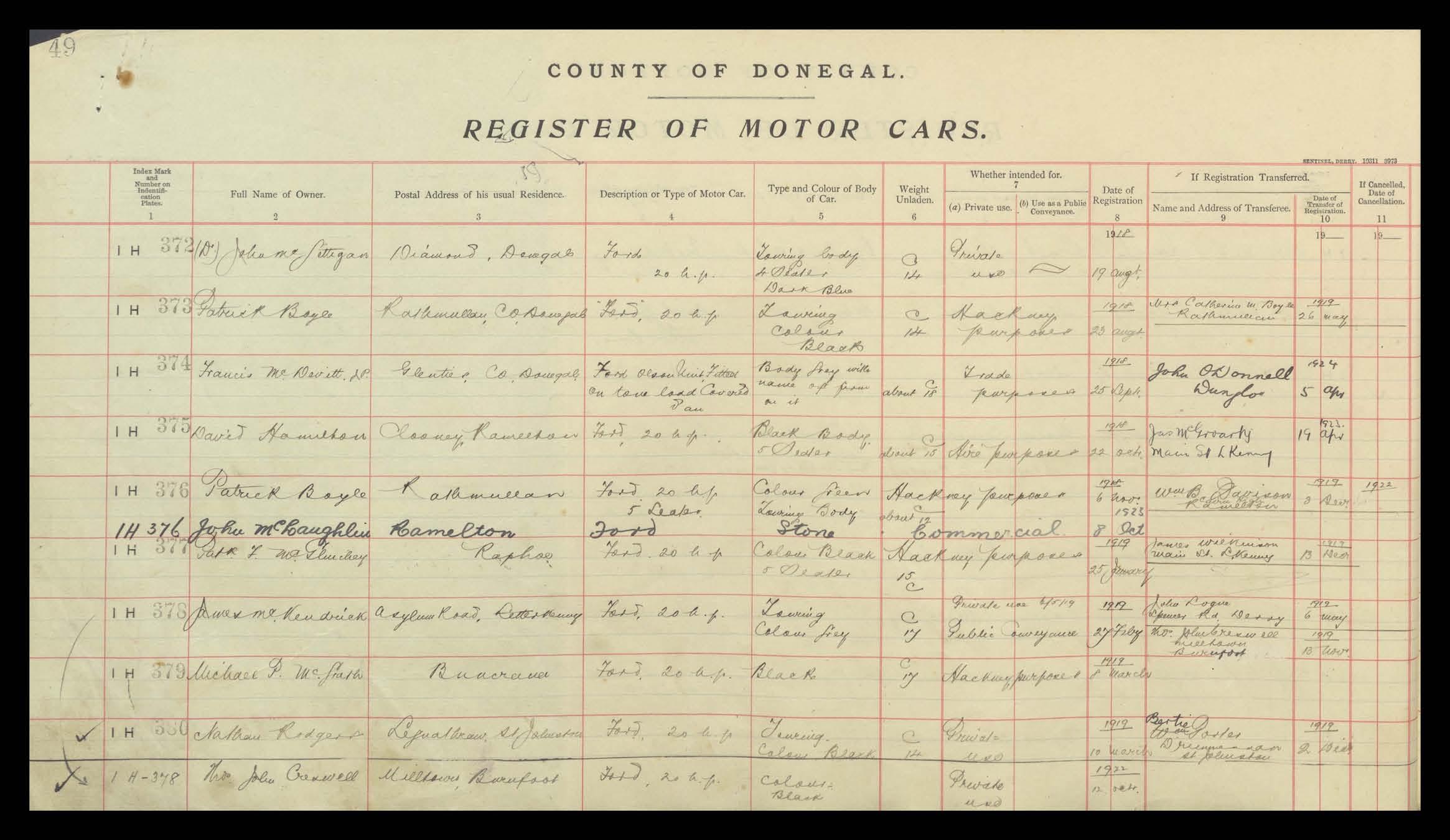Register of Motor Vehicles, 1903 - 1923