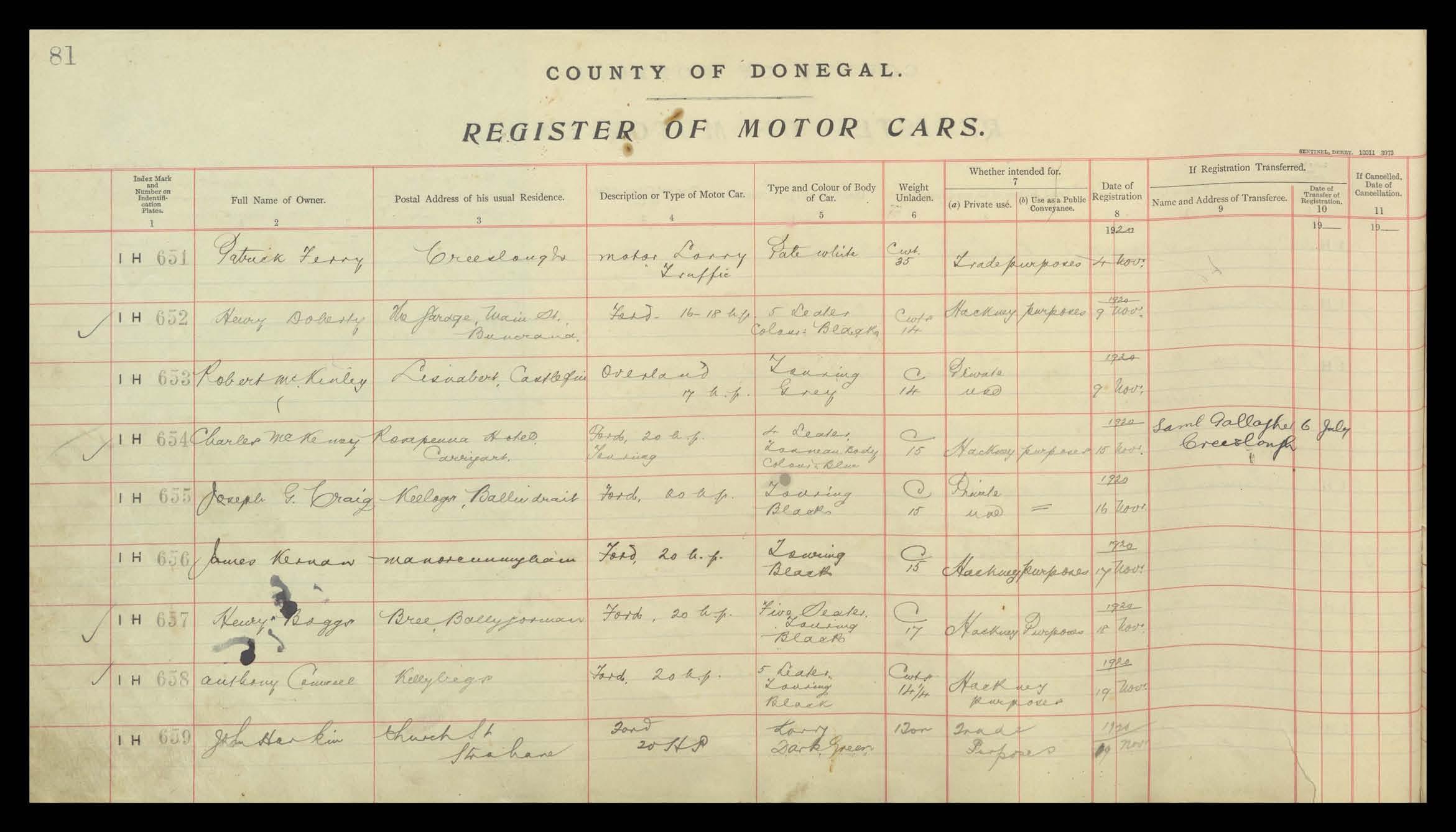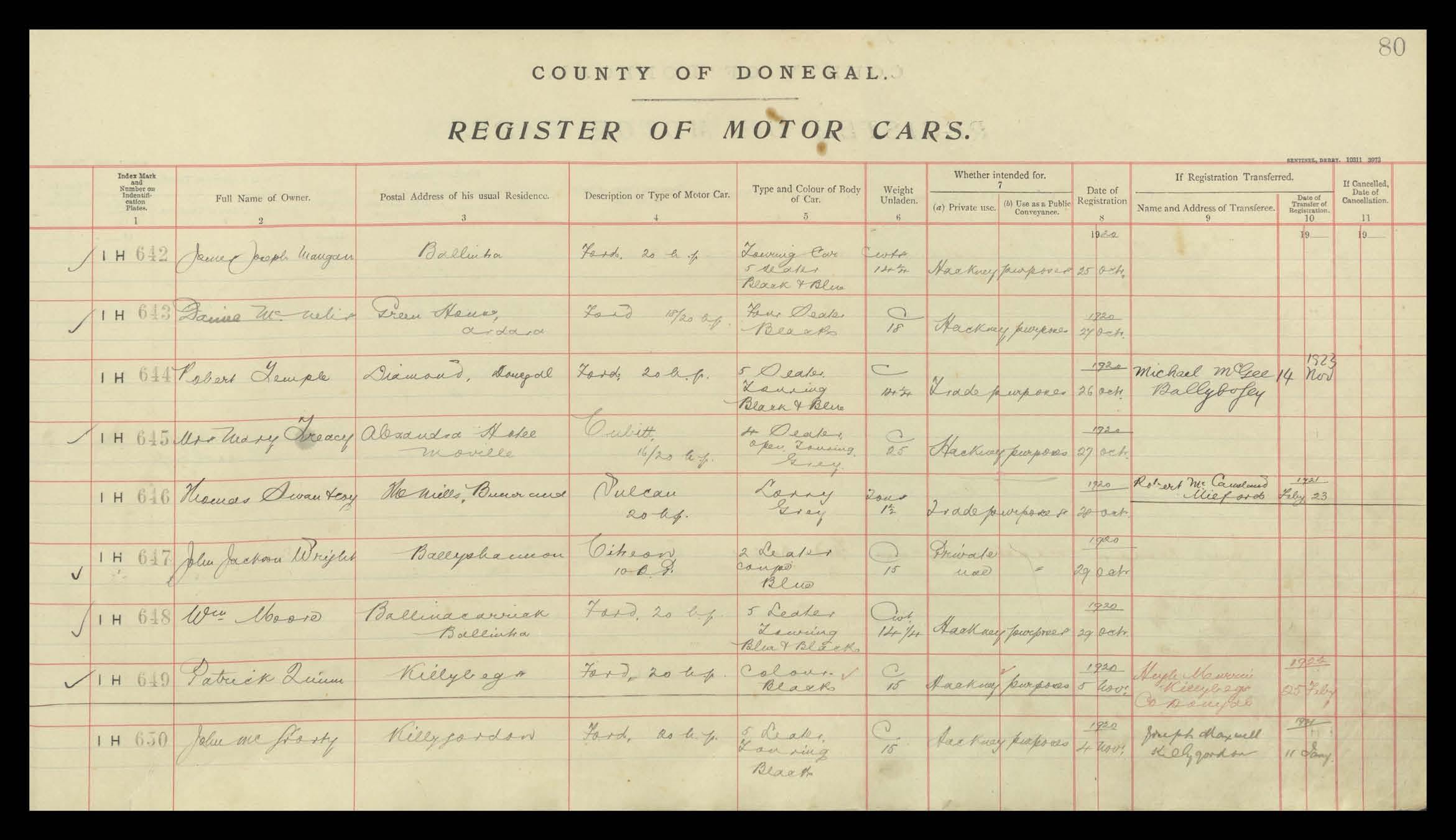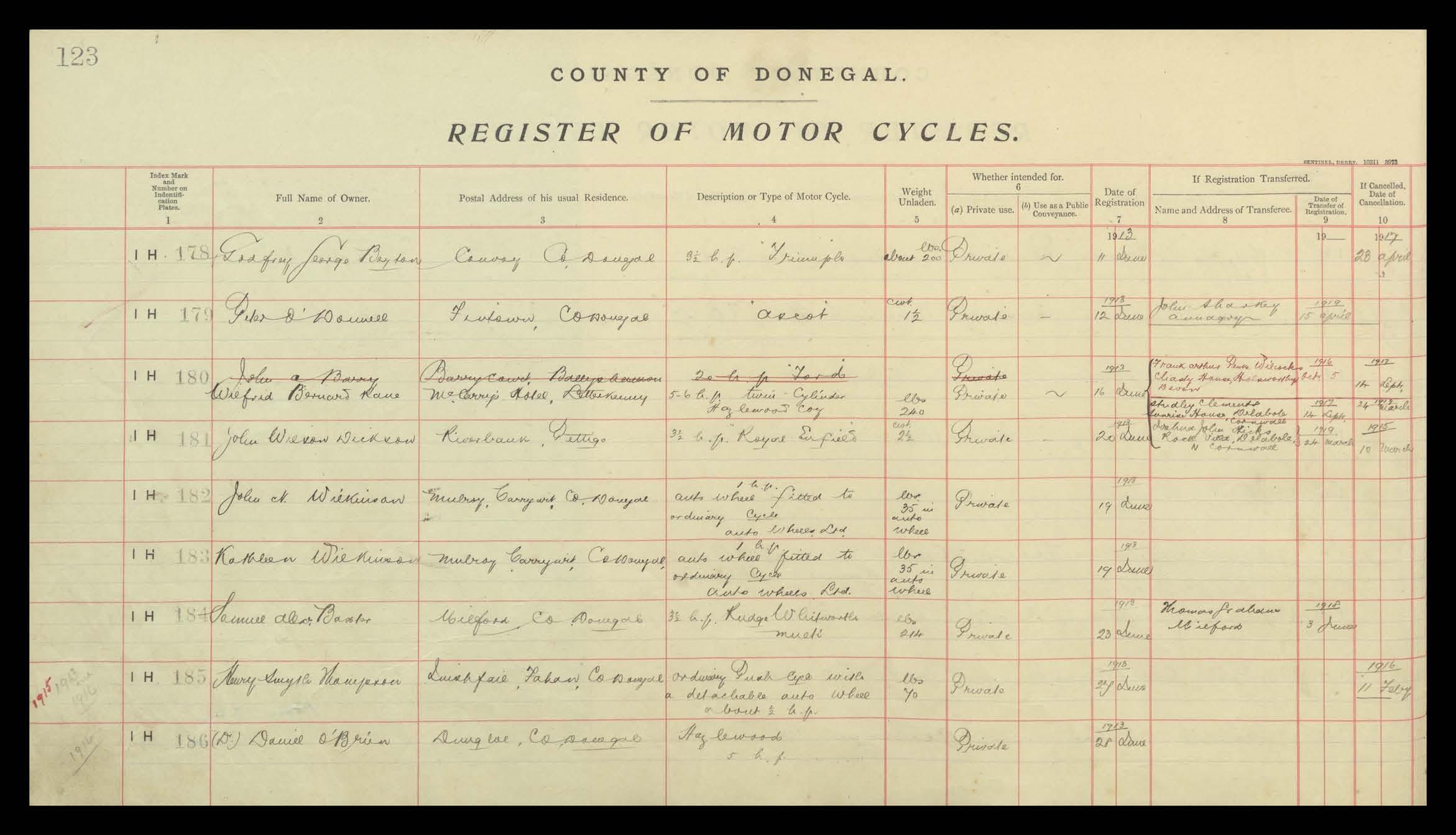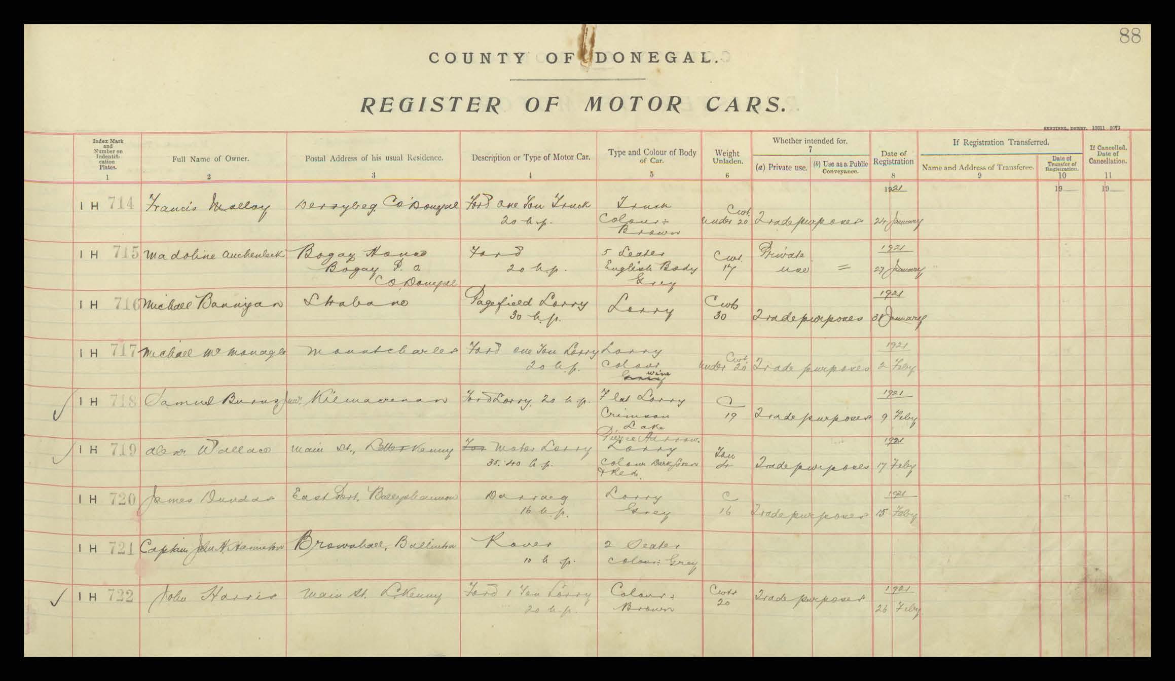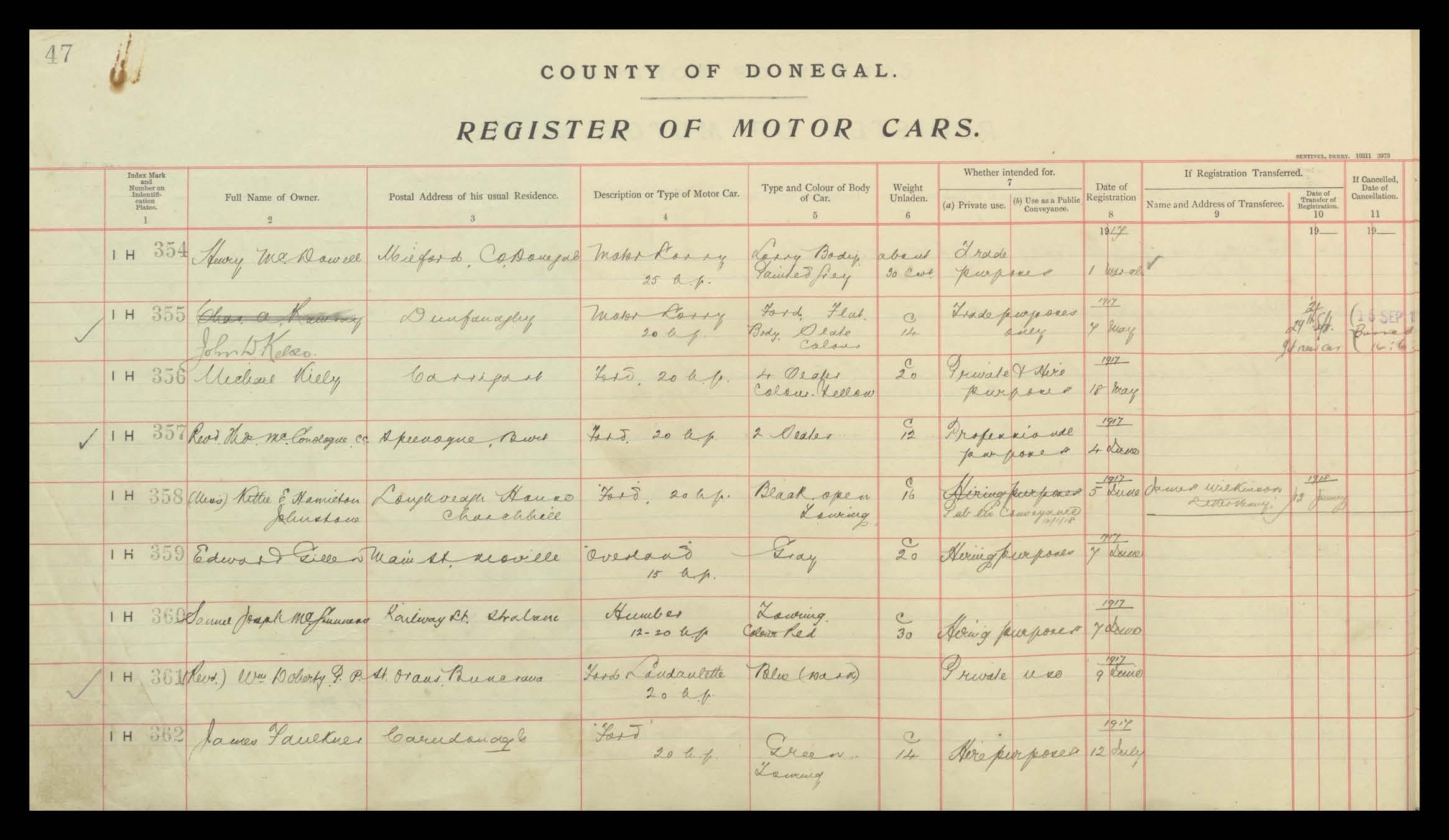 Register of Motor Vehicles, 1903 - 1923