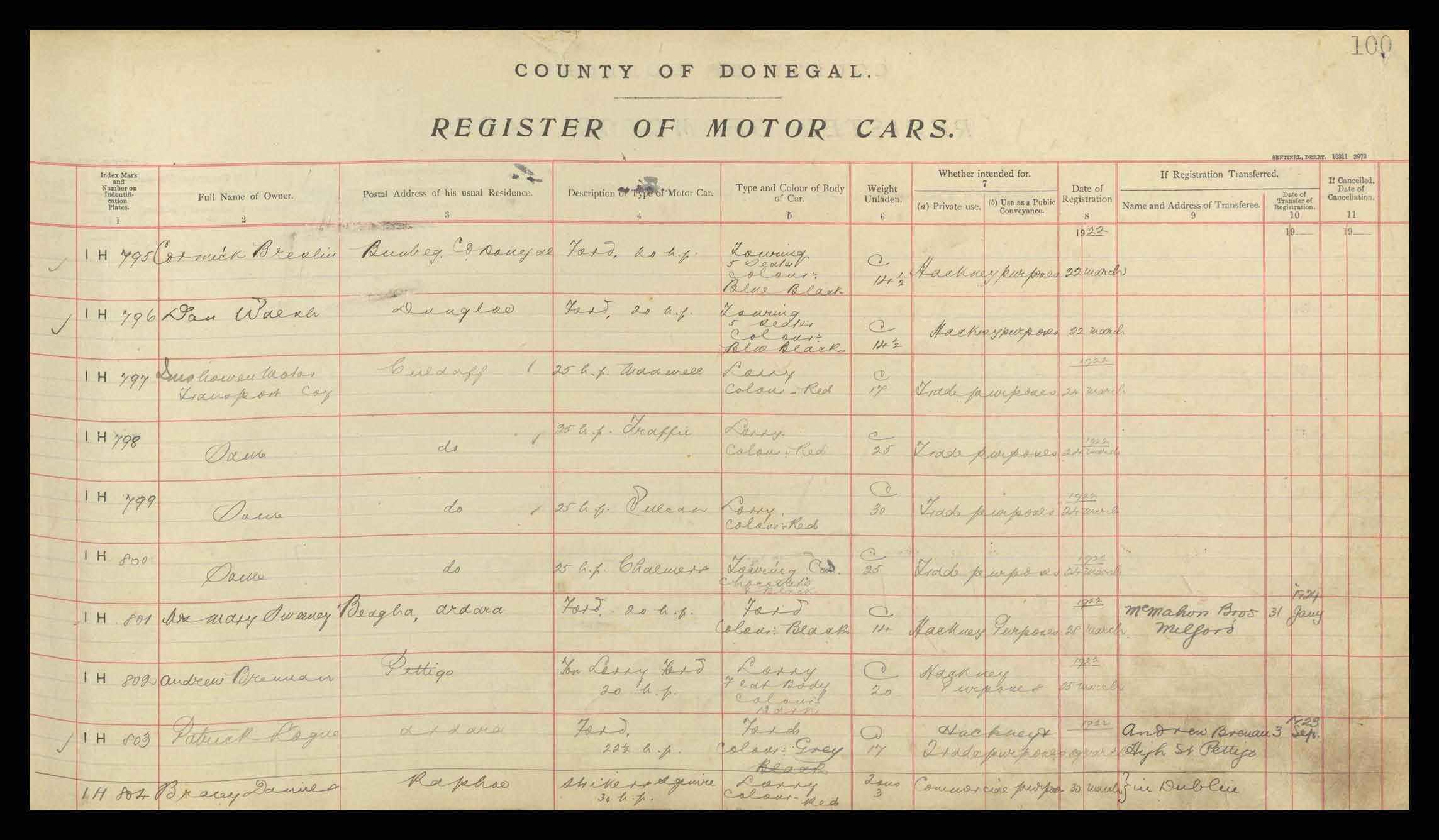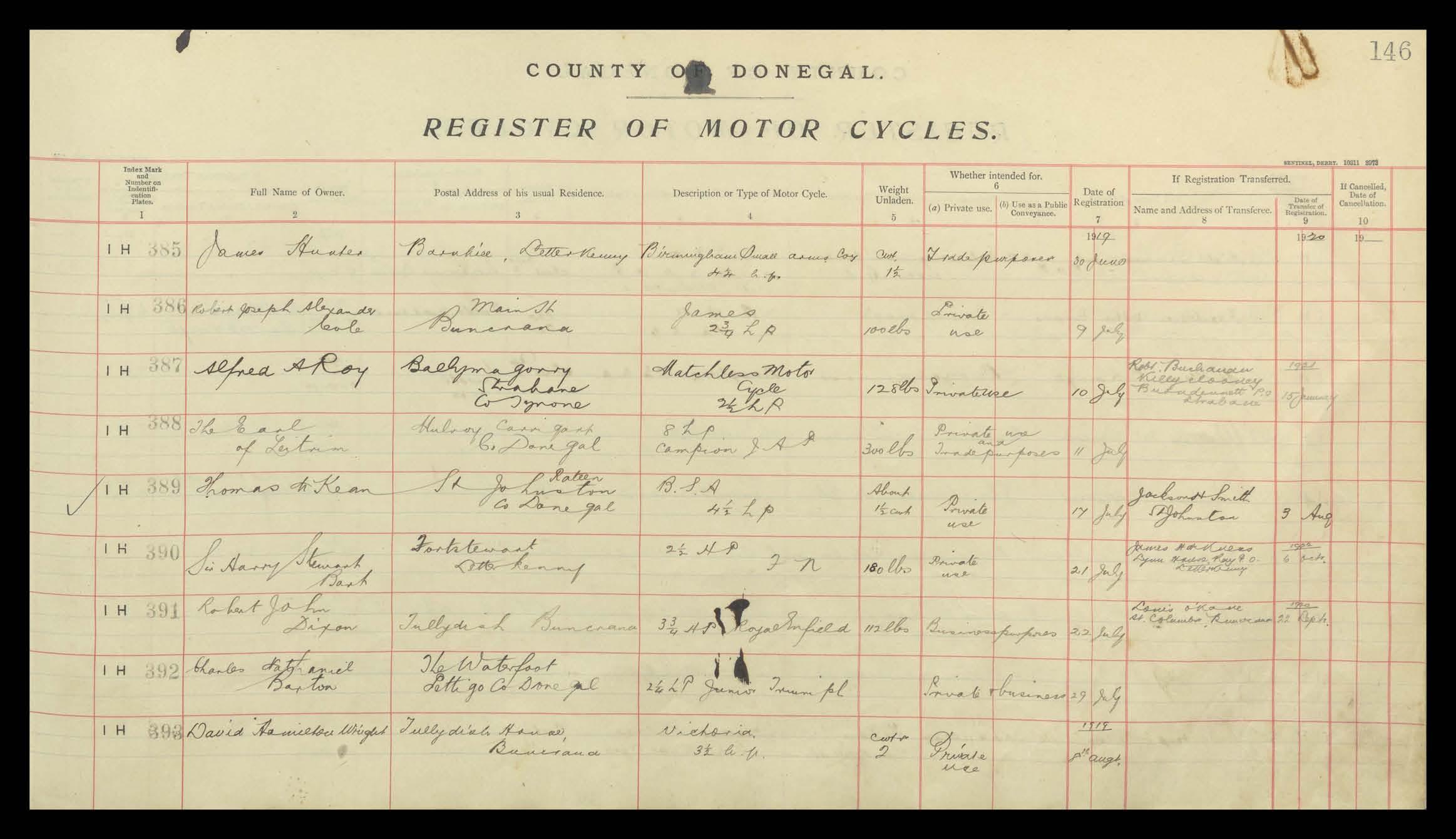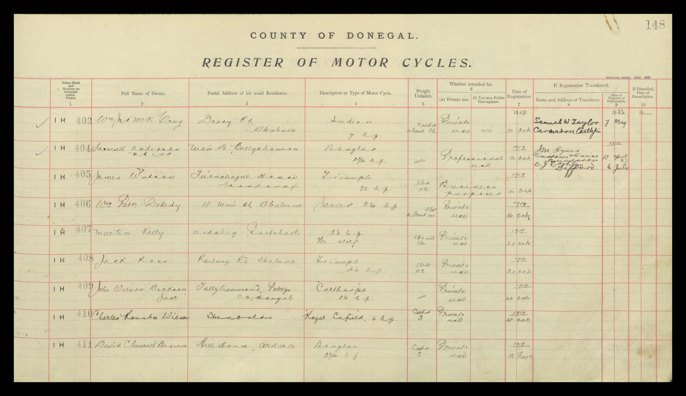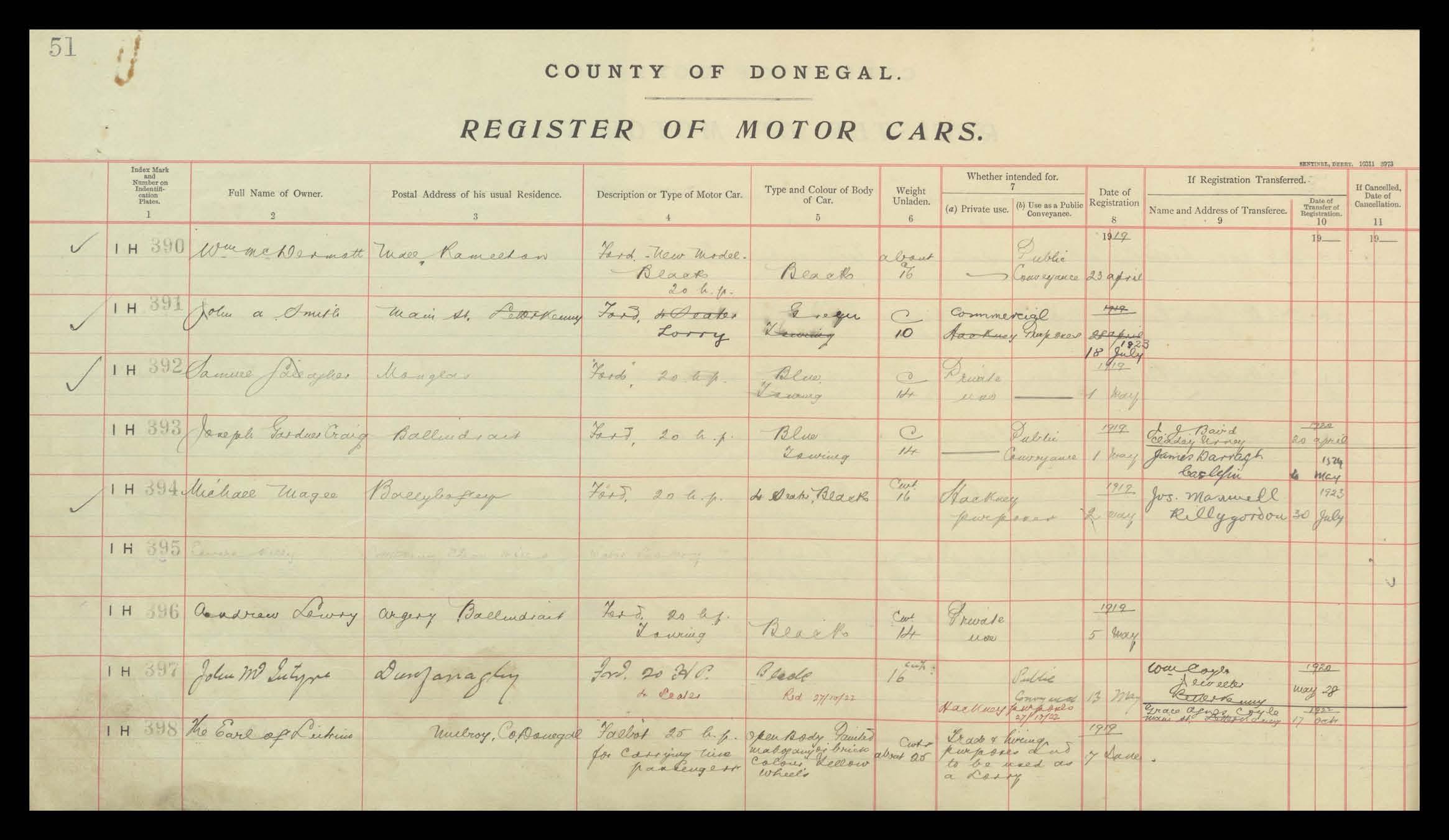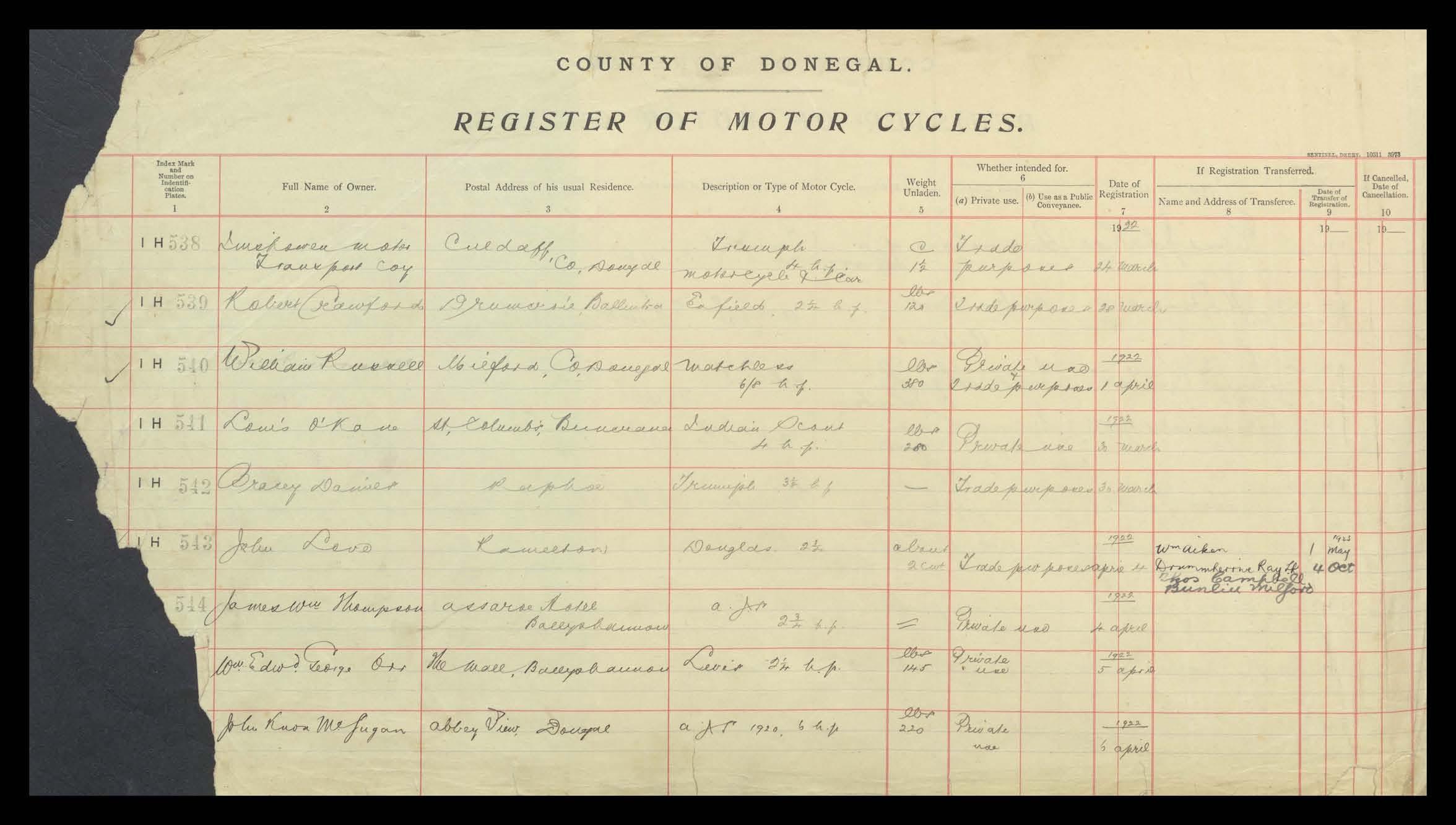 Register of Motor Vehicles, 1903 - 1923