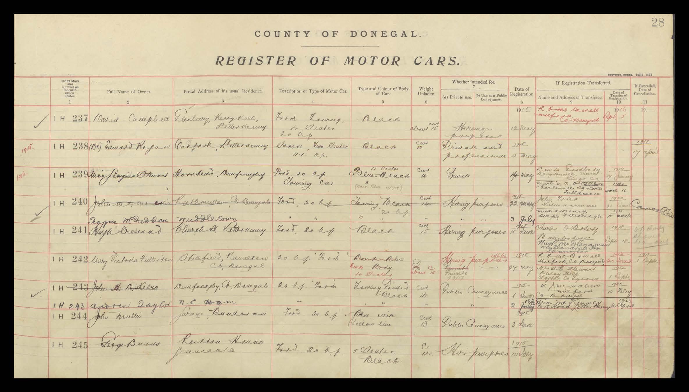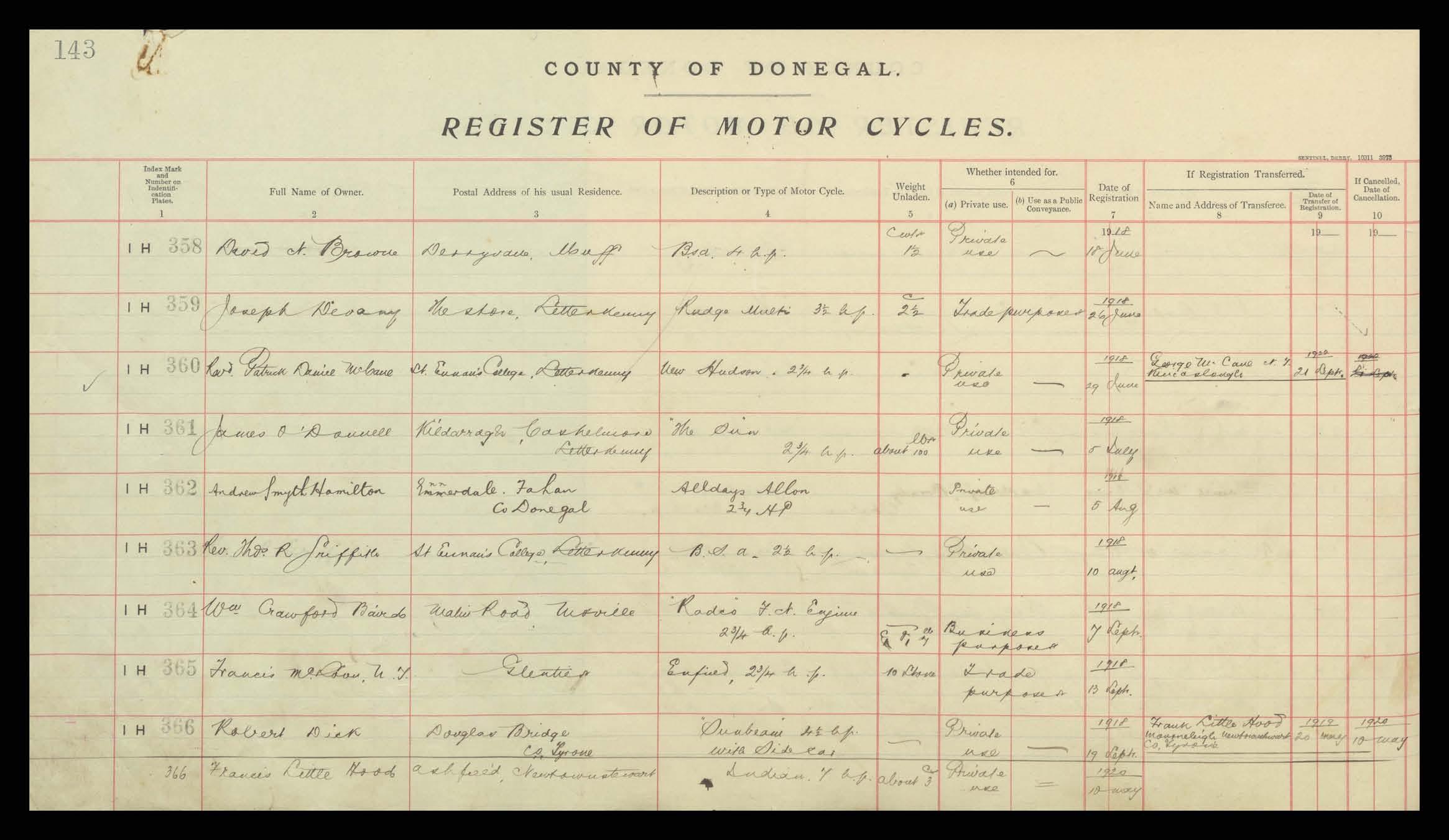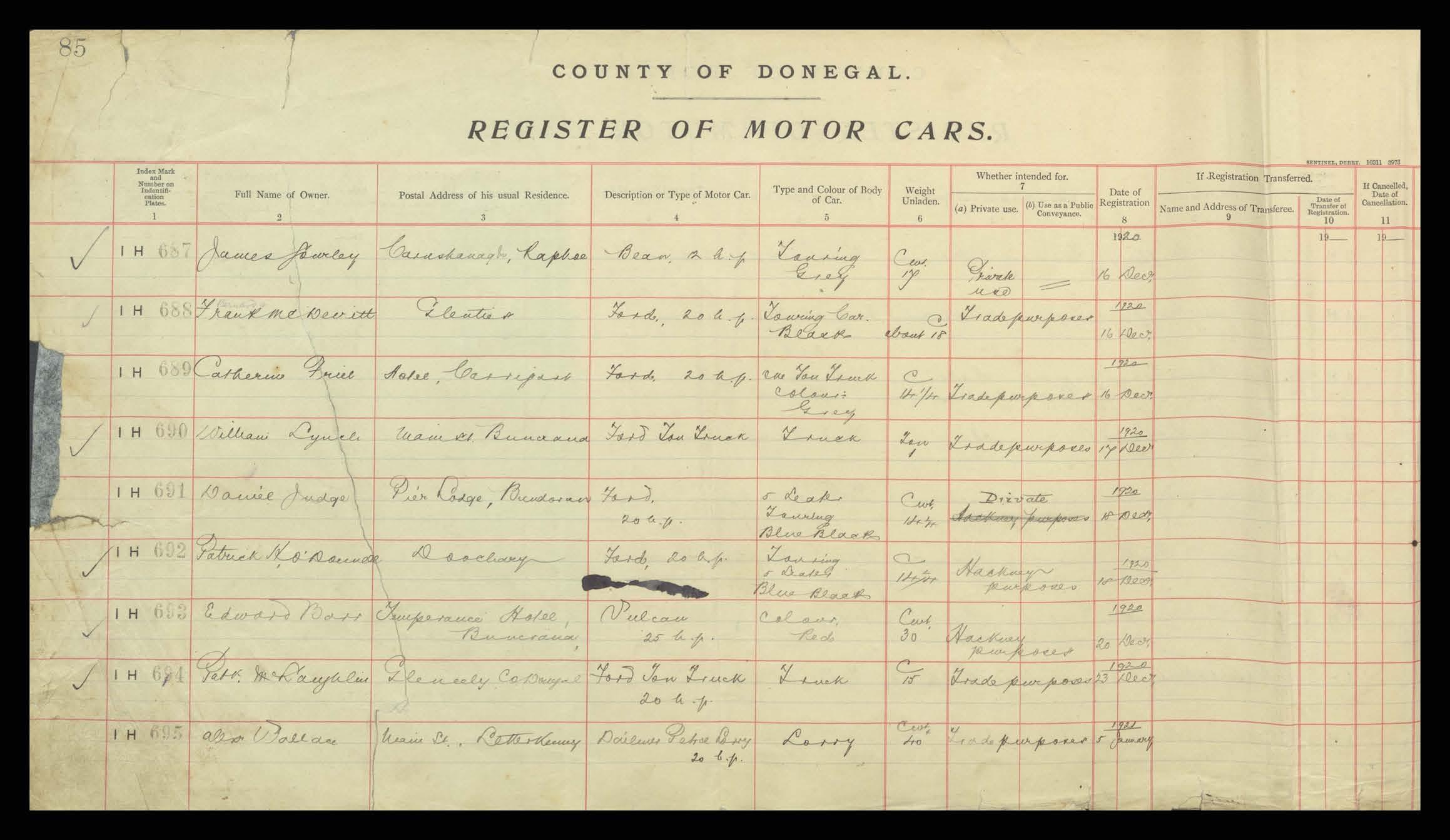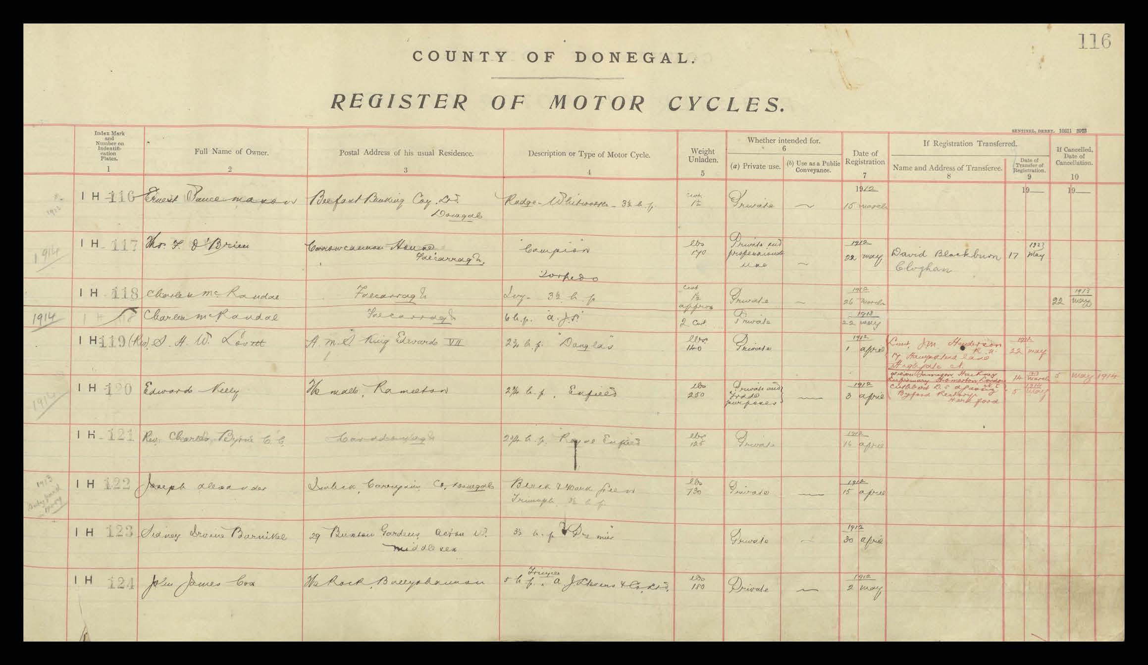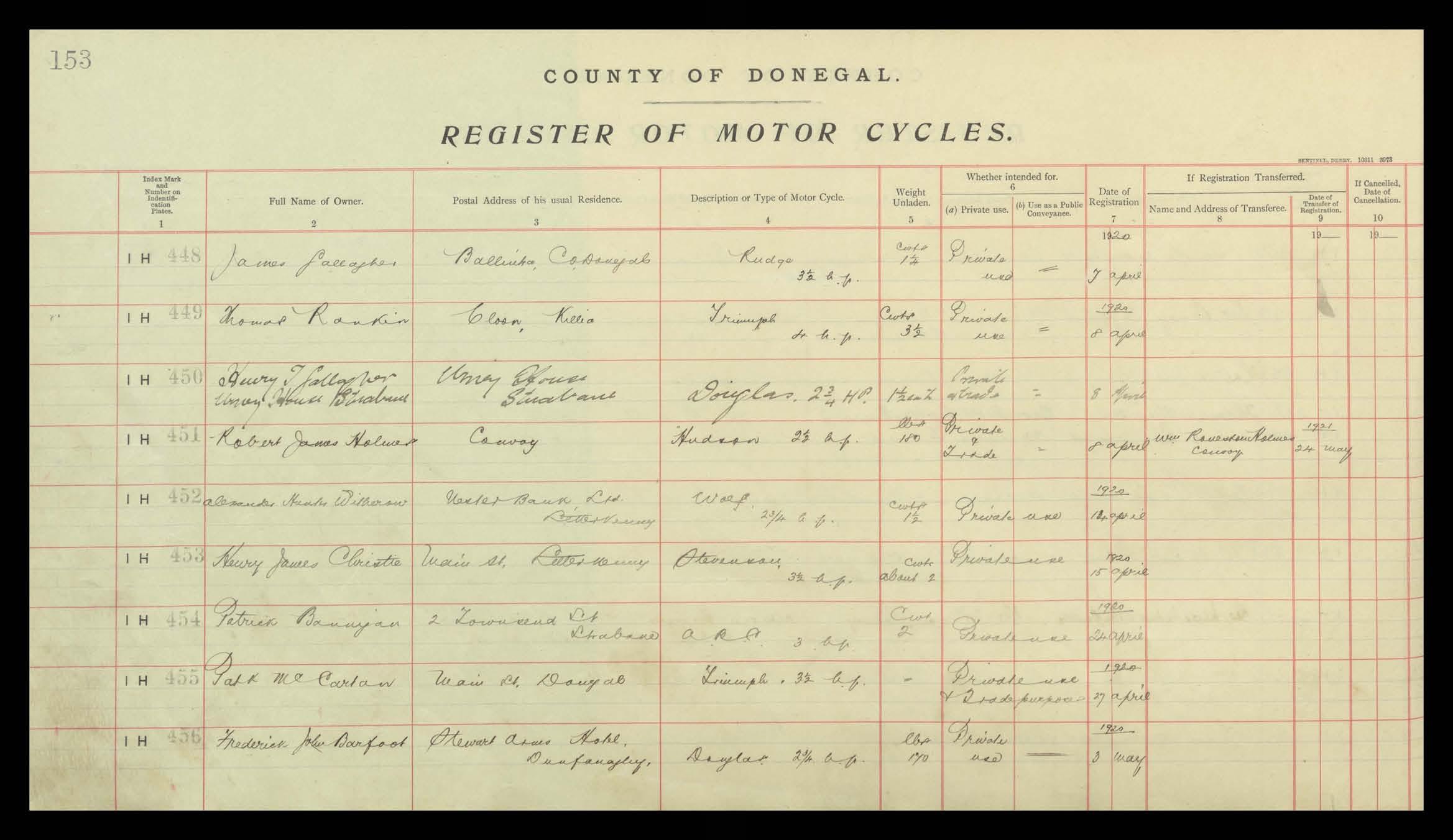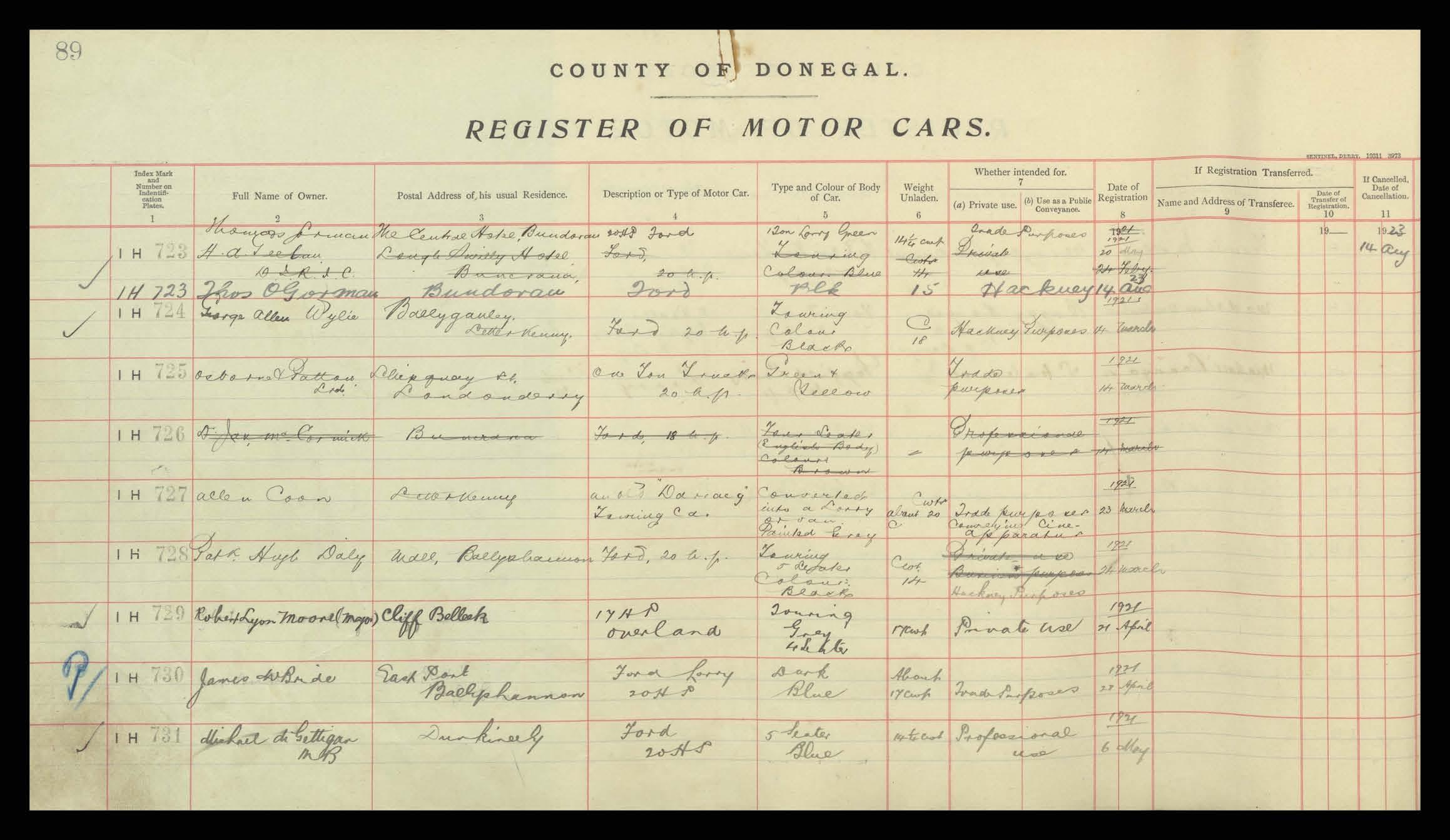 Register of Motor Vehicles, 1903 - 1923