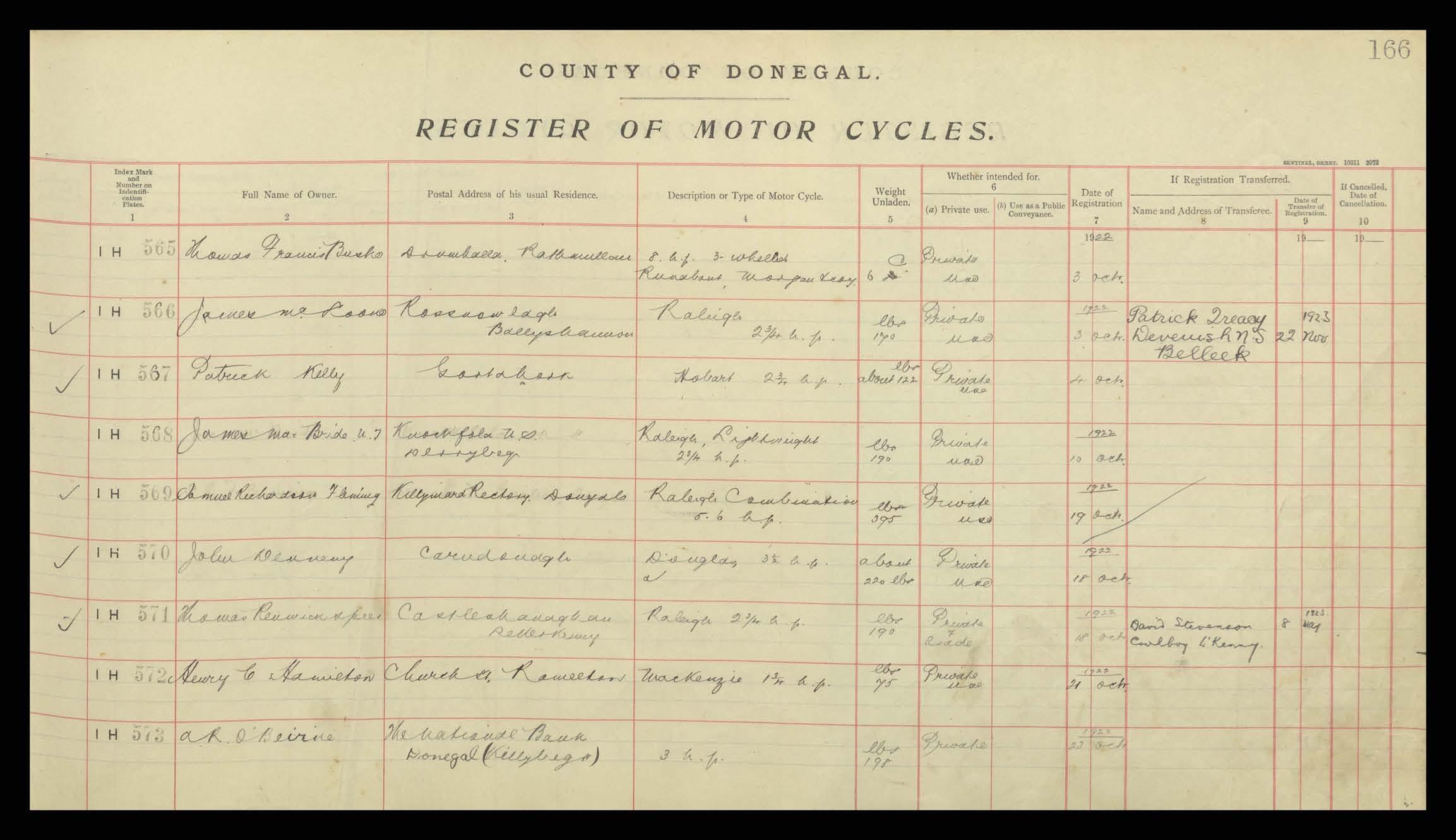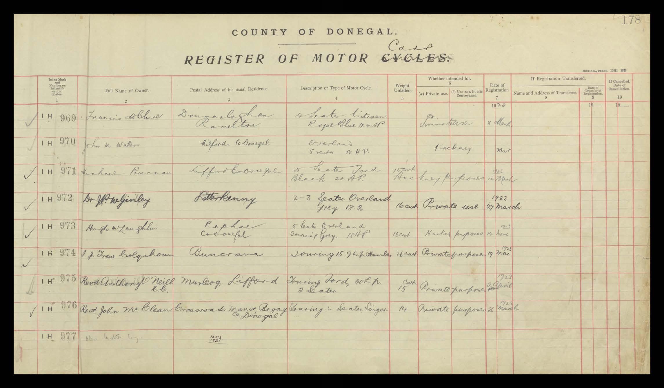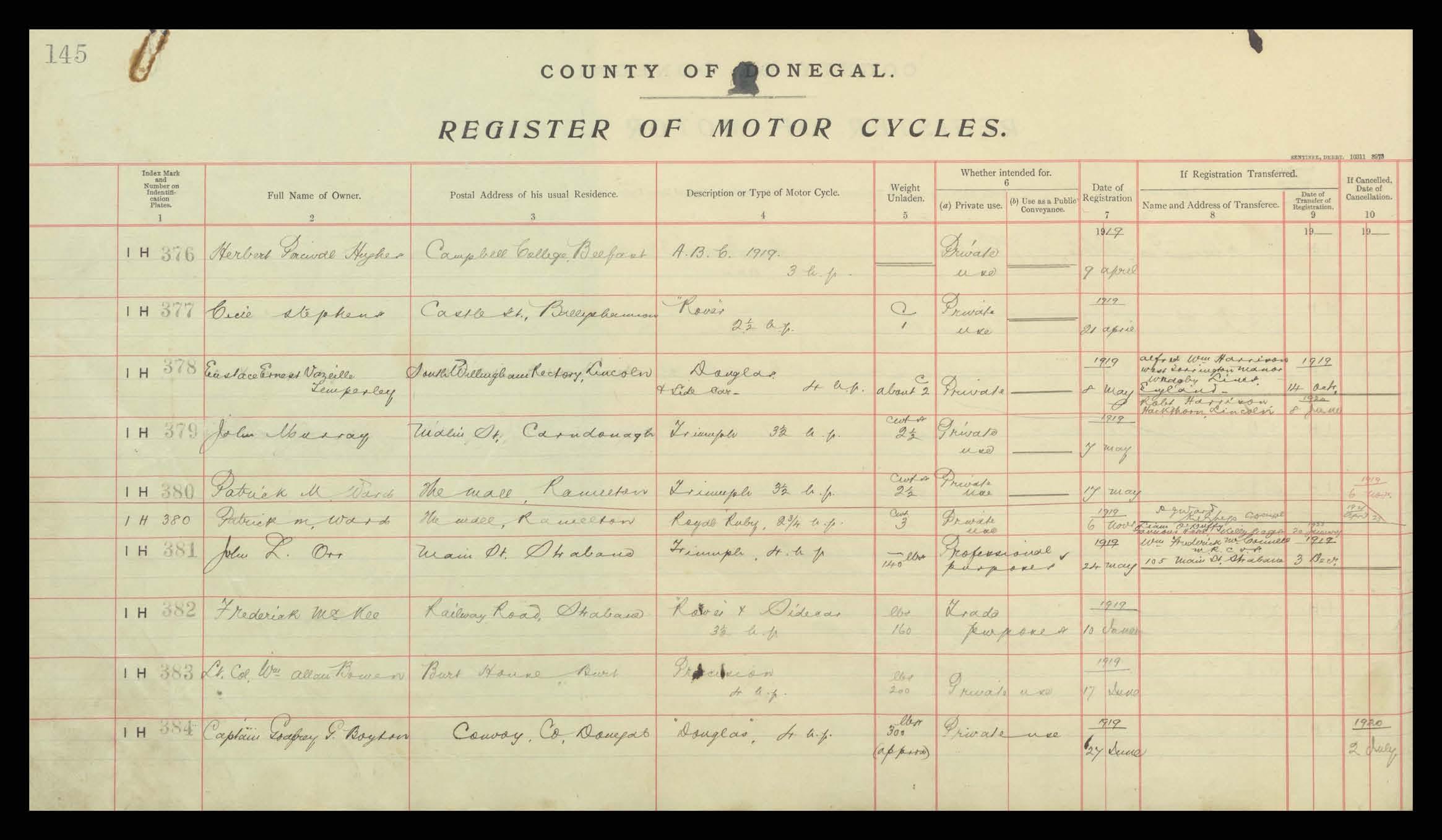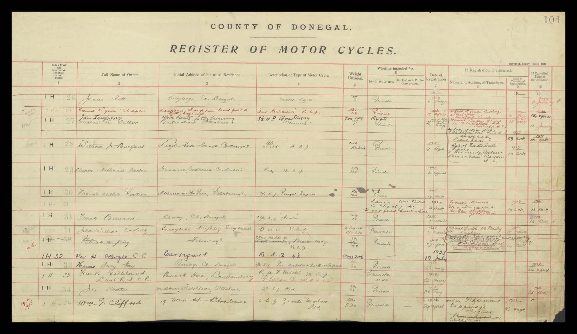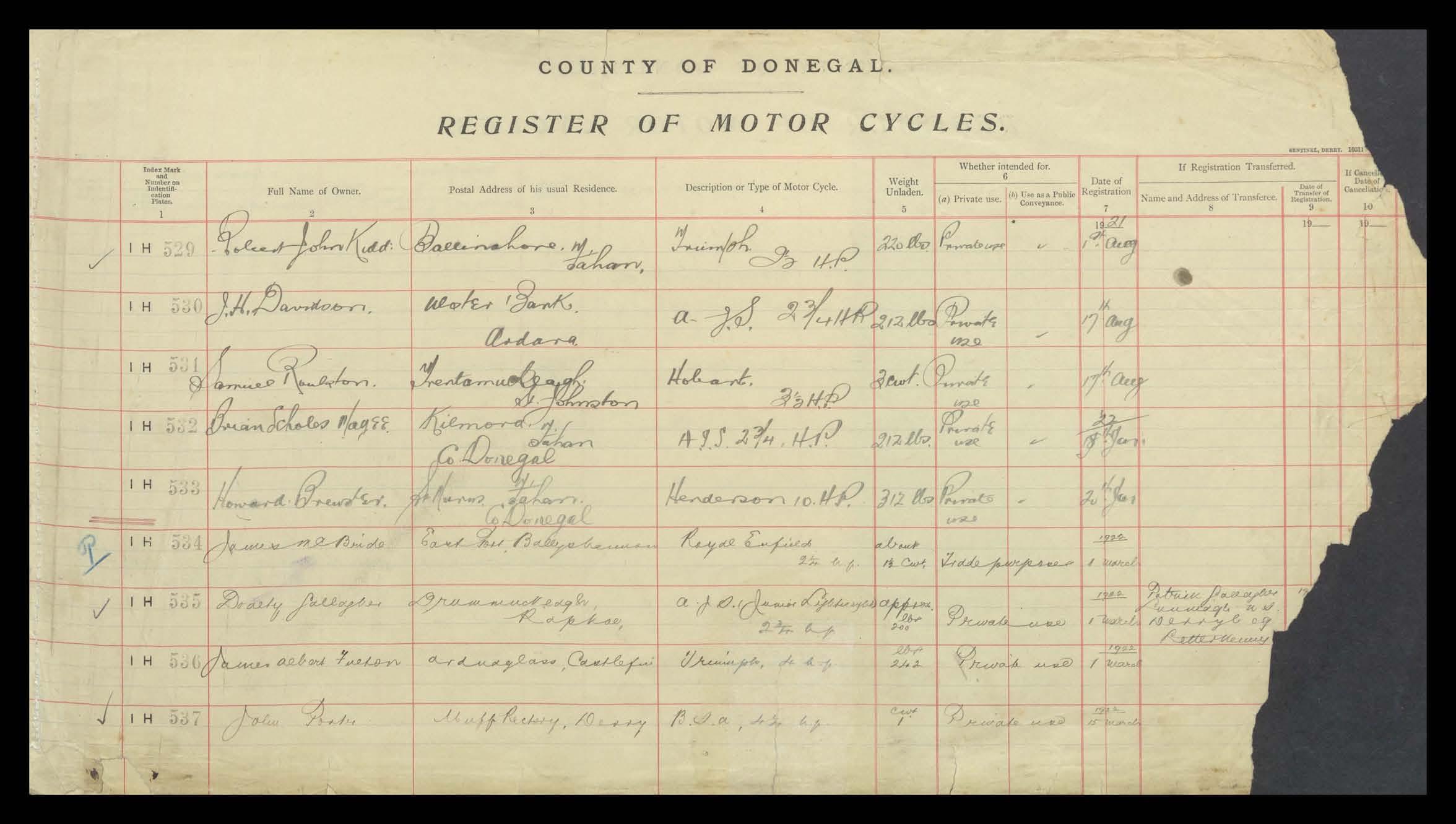 Register of Motor Vehicles, 1903 - 1923
