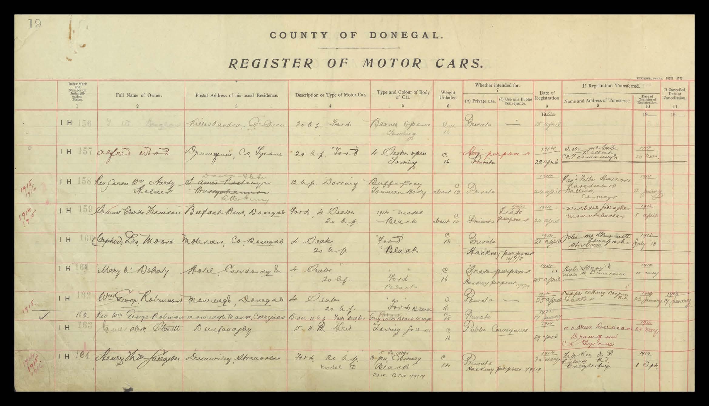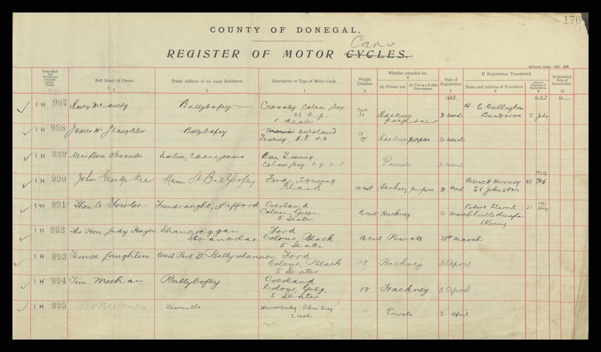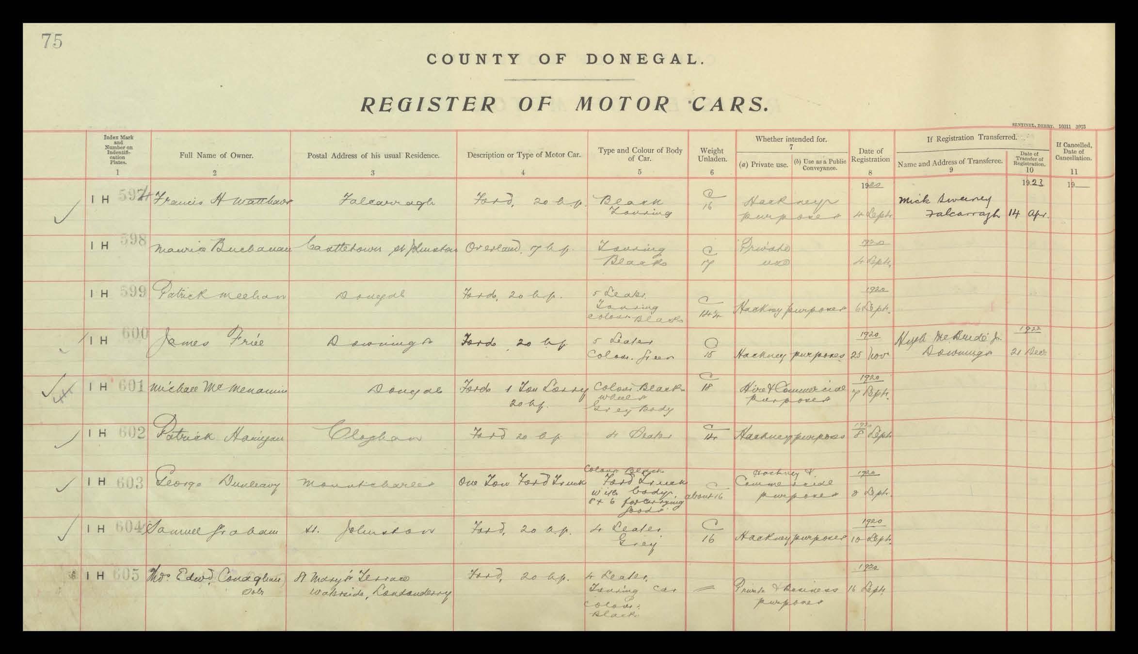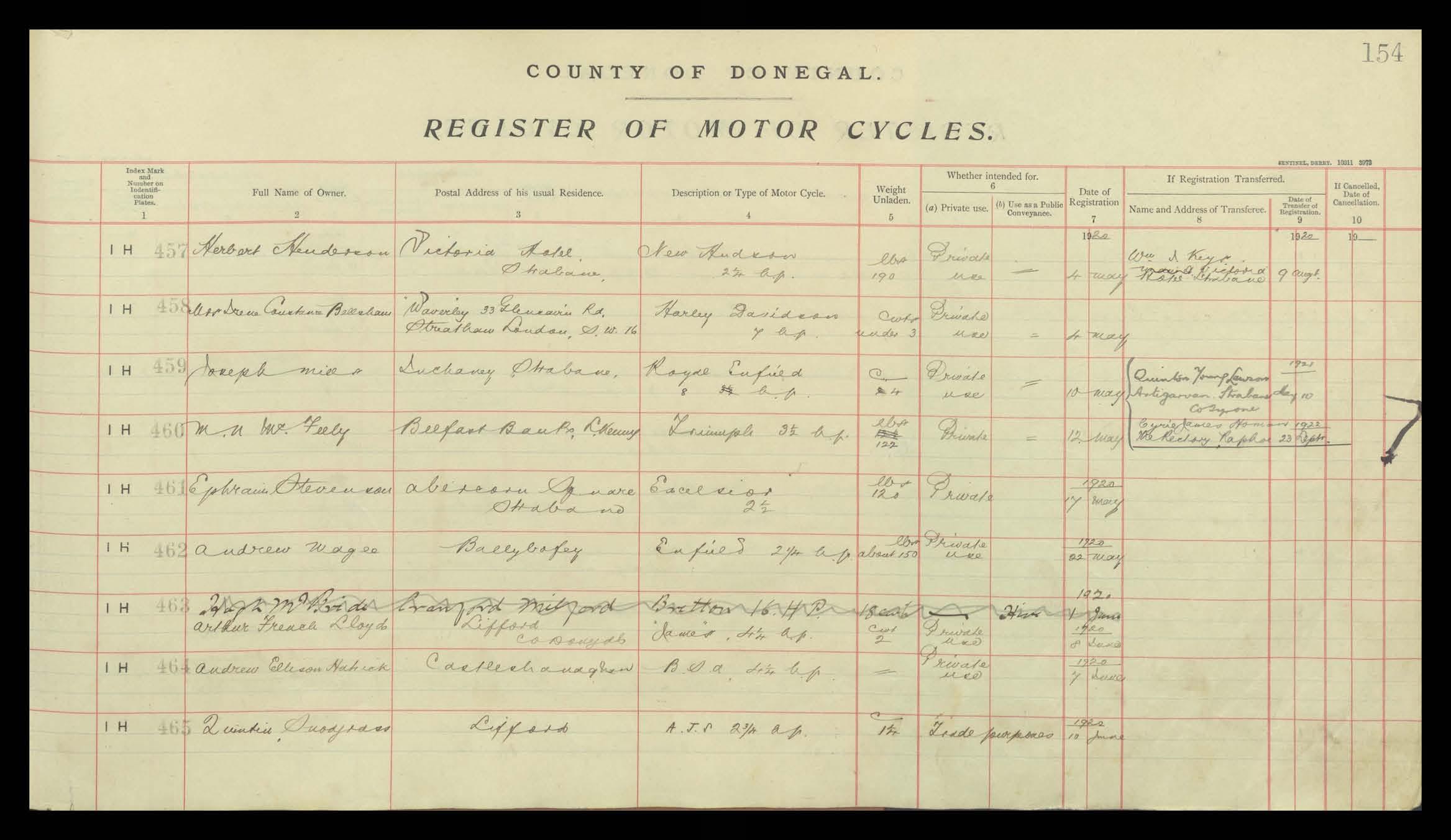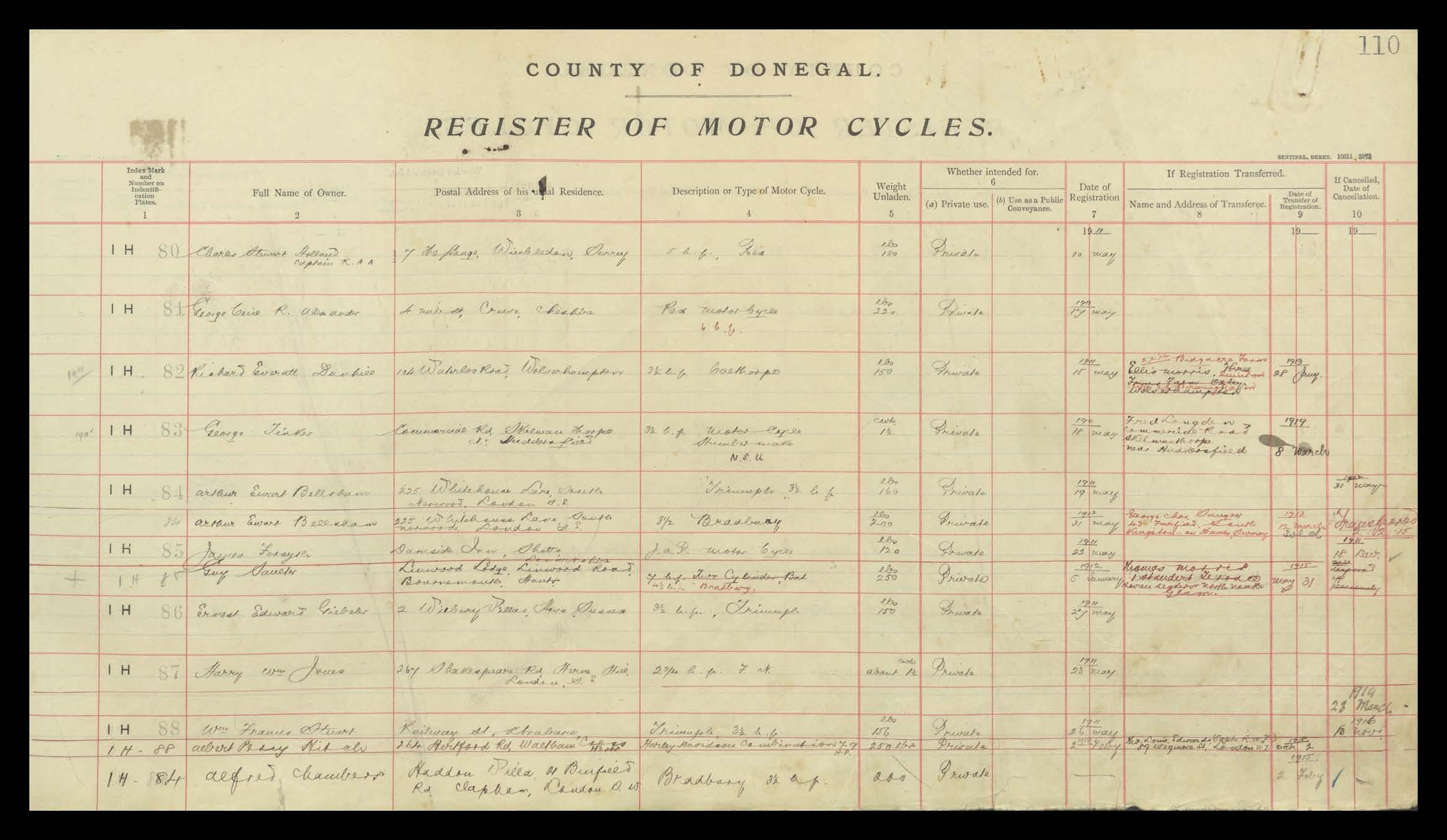 Register of Motor Vehicles, 1903 - 1923