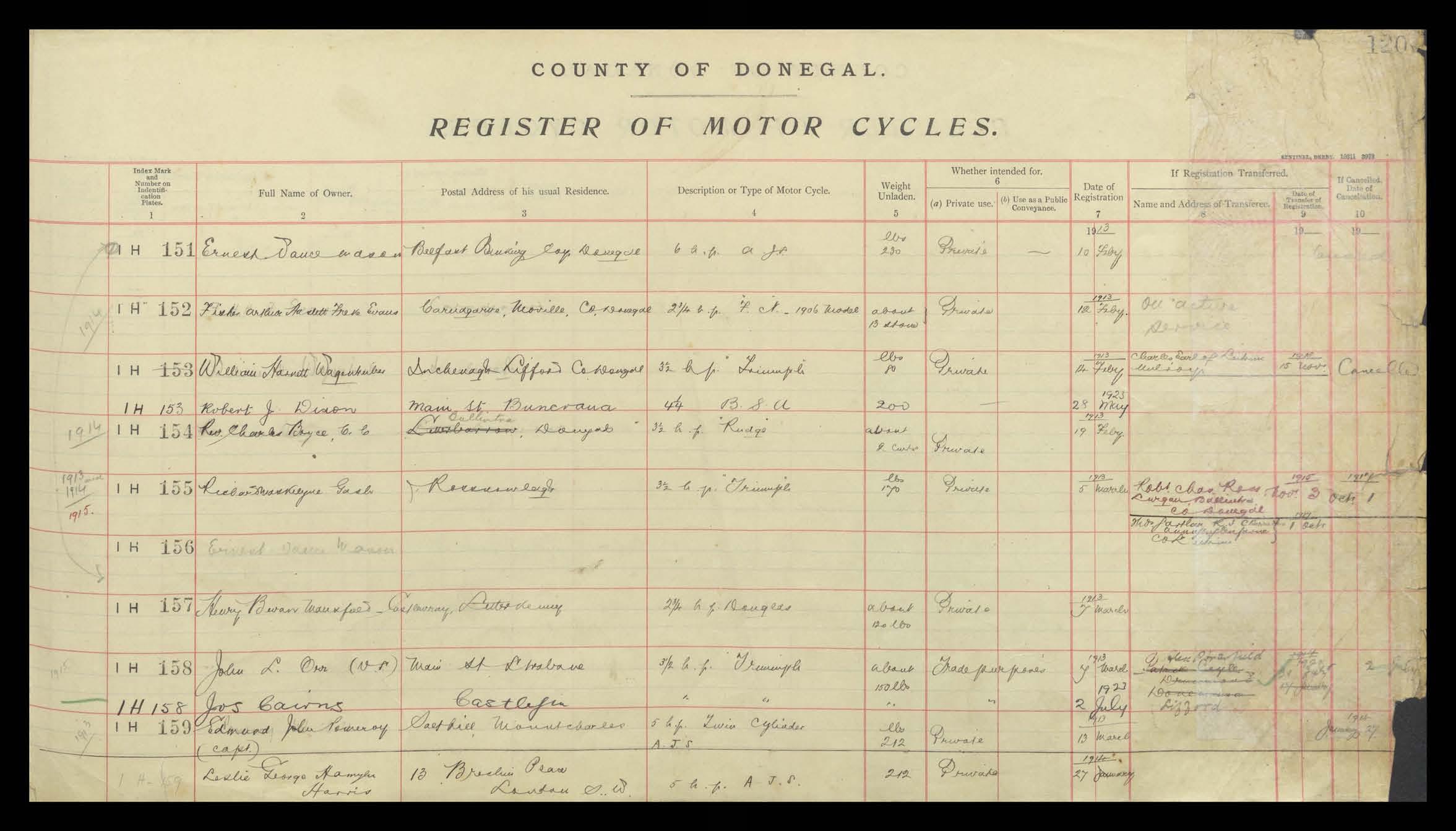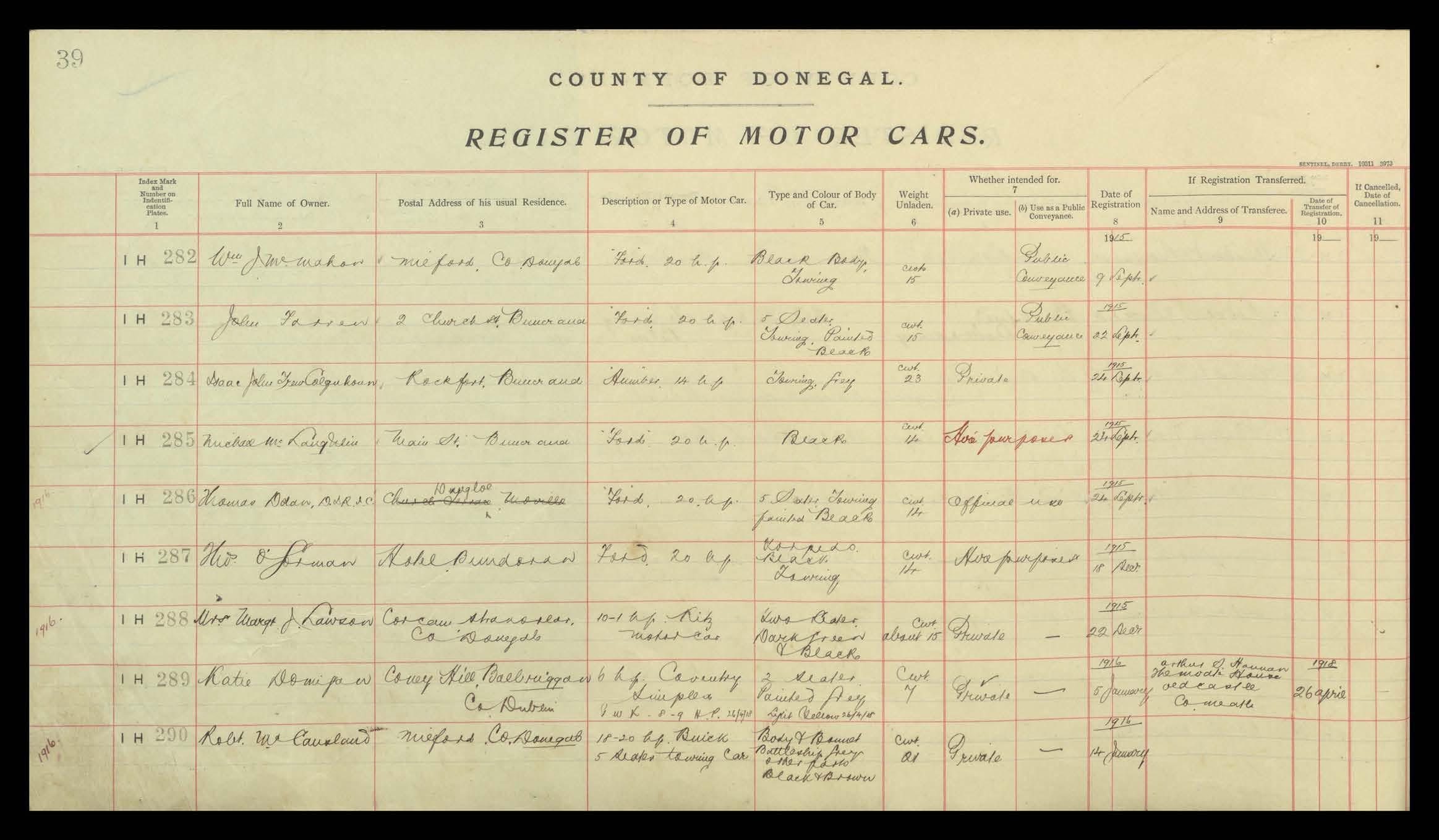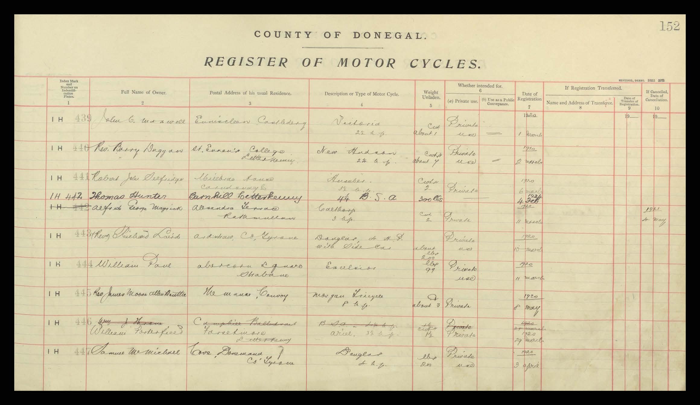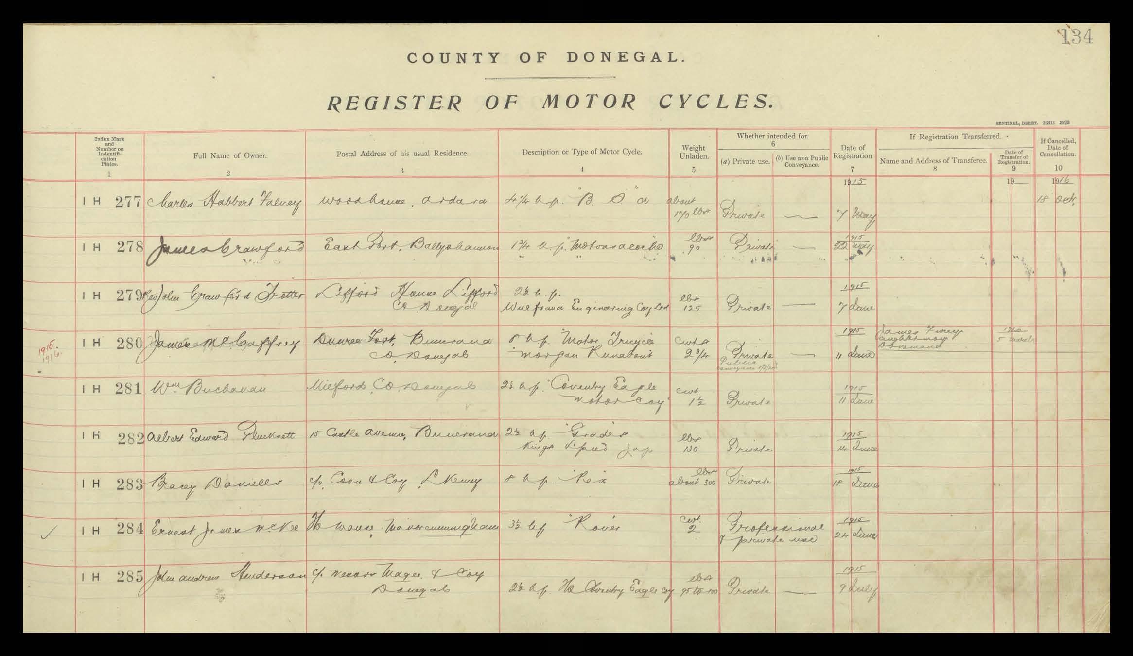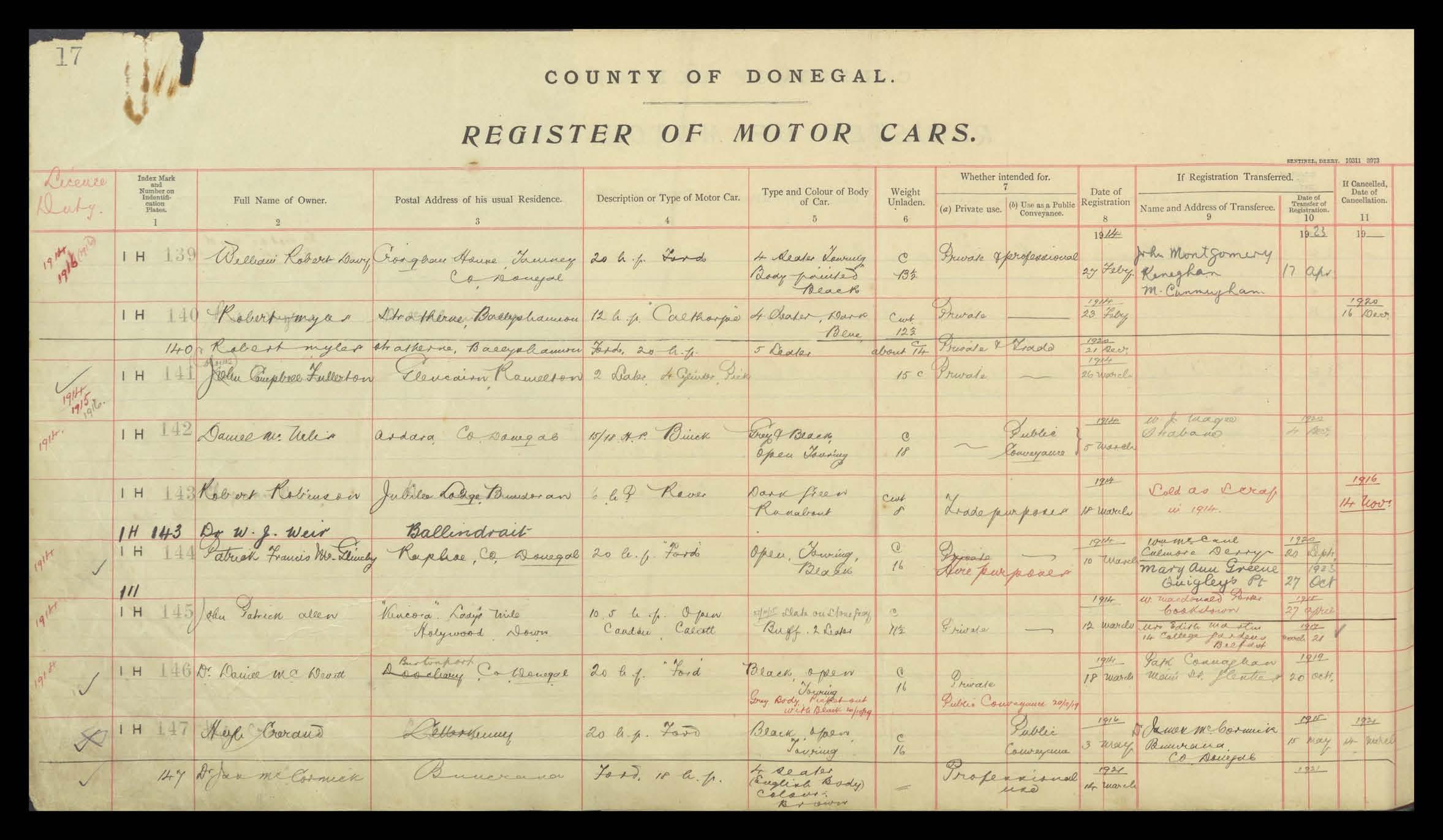 Register of Motor Vehicles, 1903 - 1923