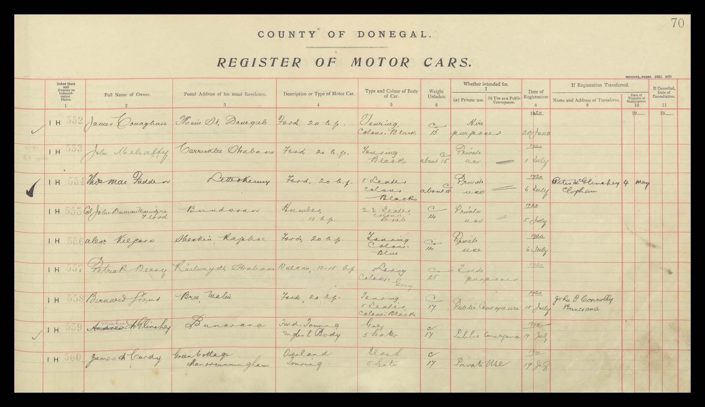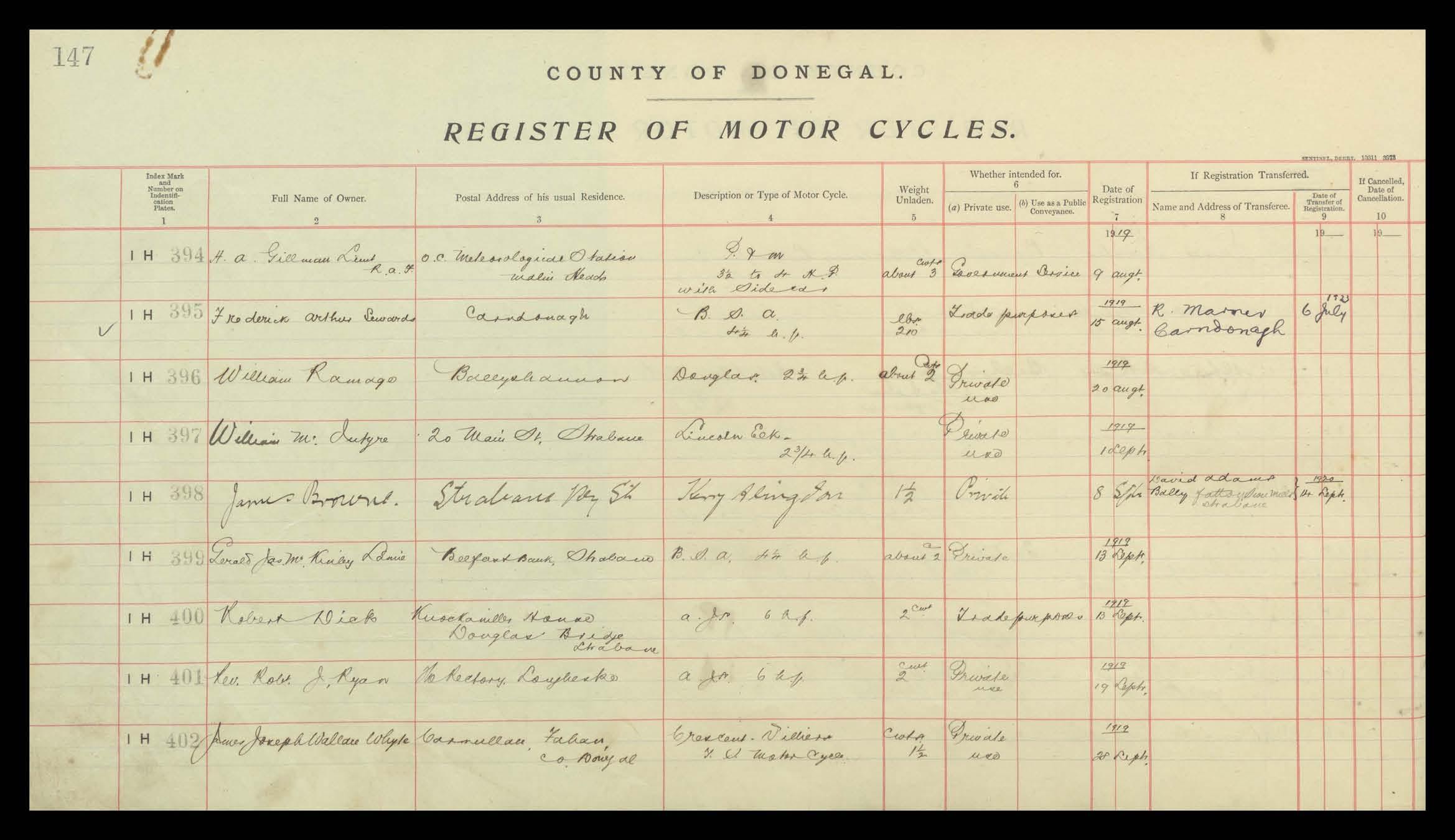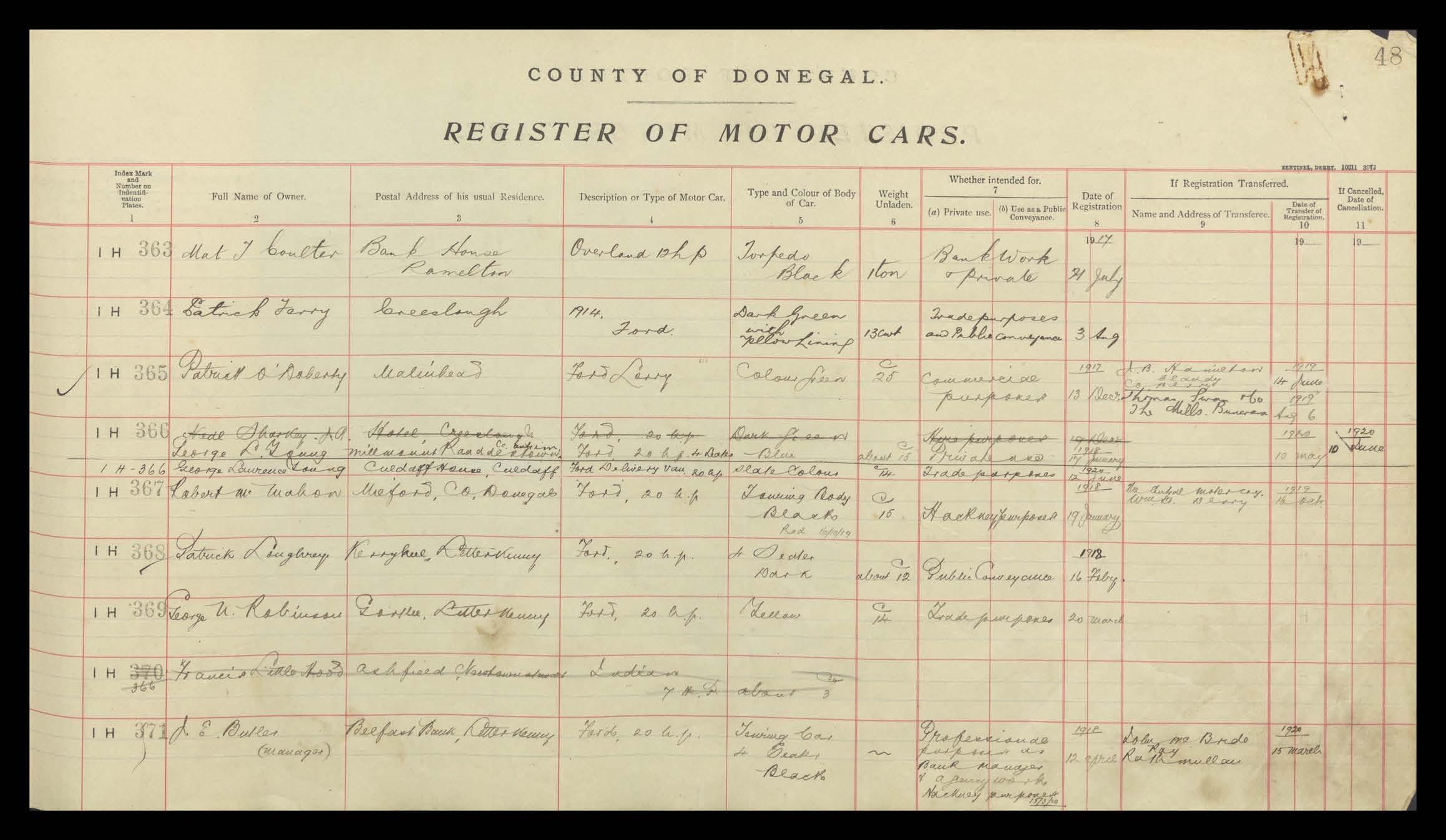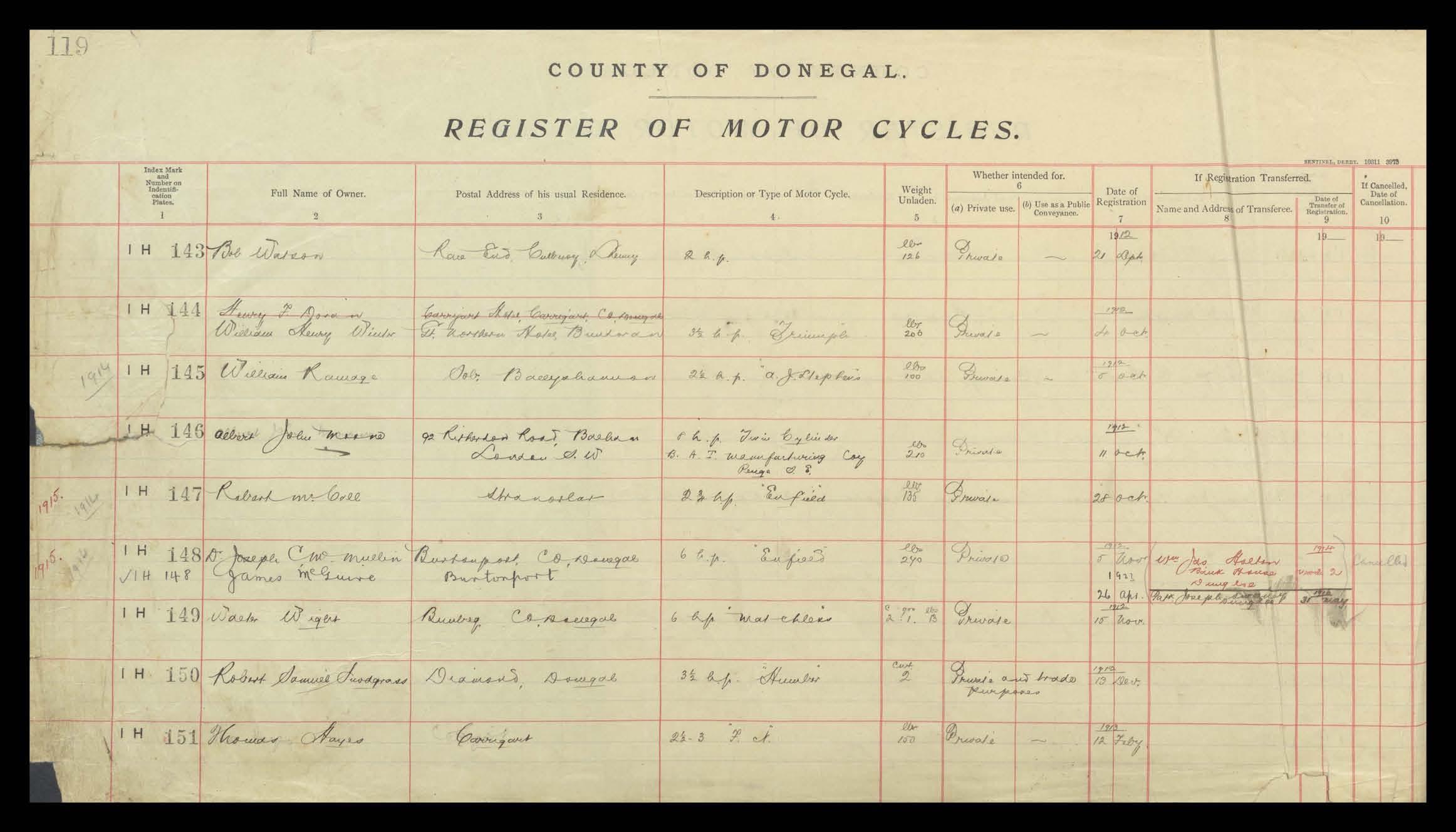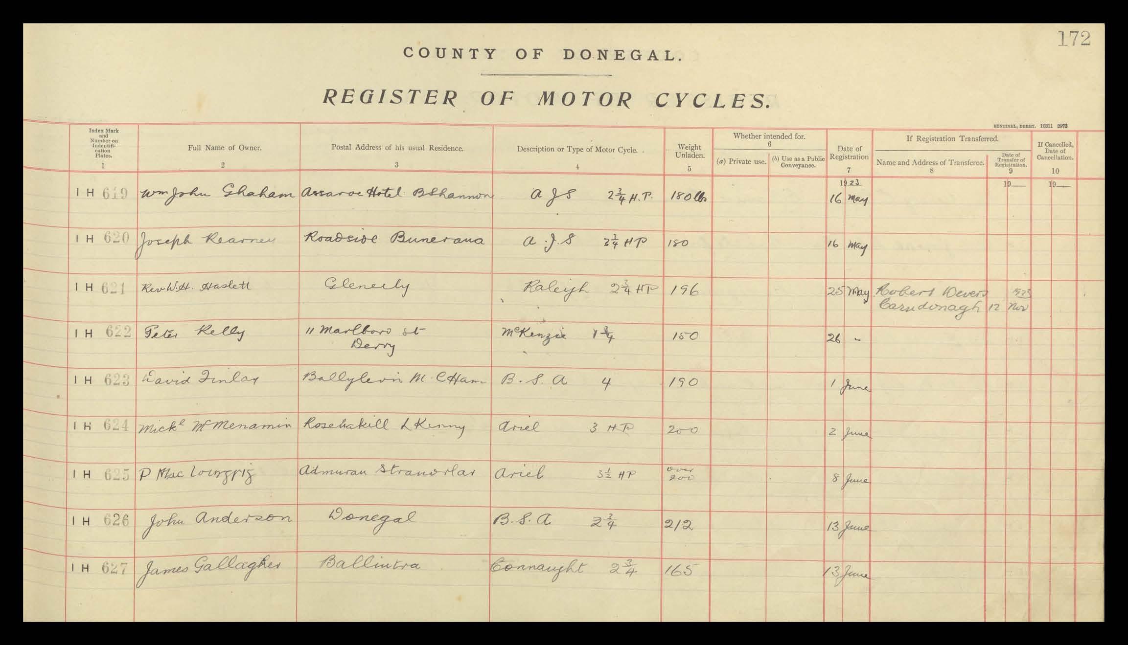 Register of Motor Vehicles, 1903 - 1923
