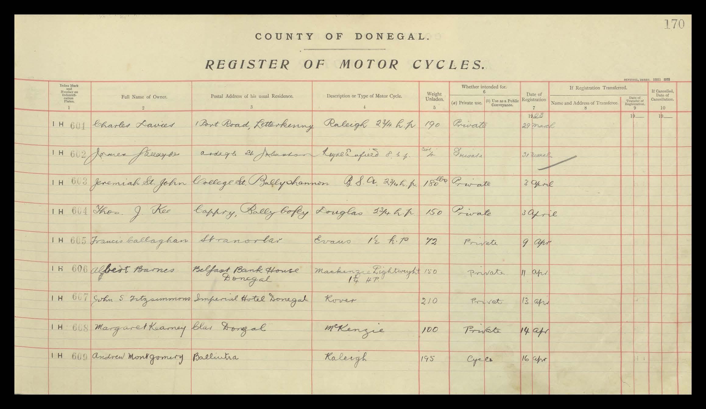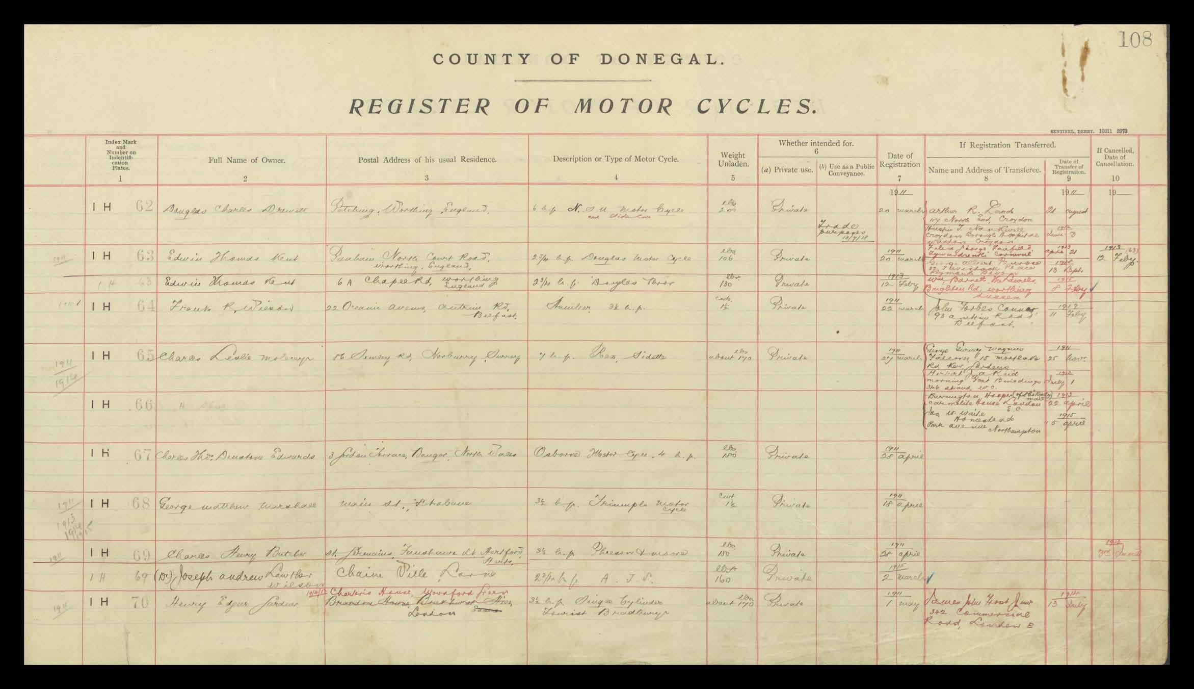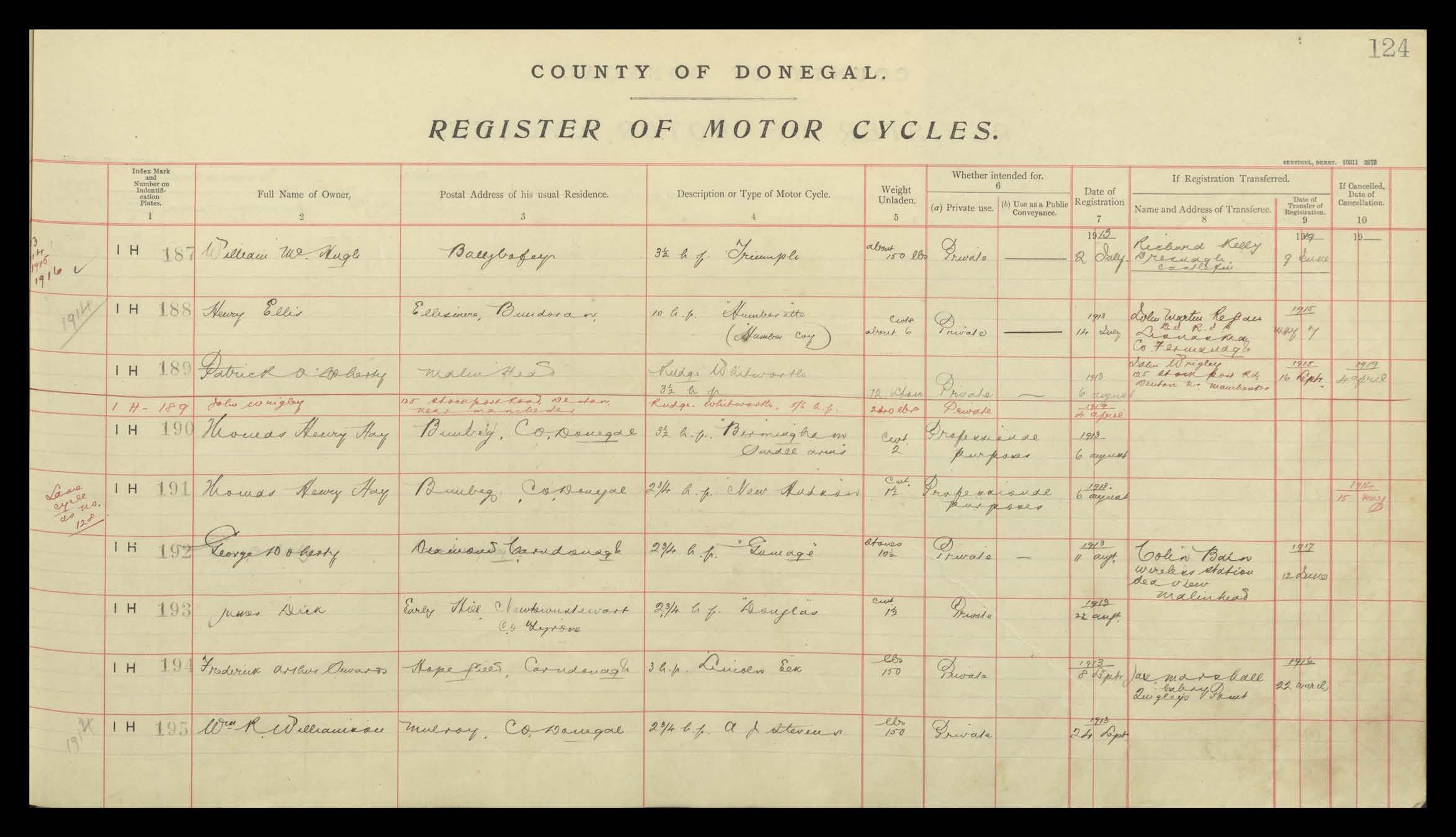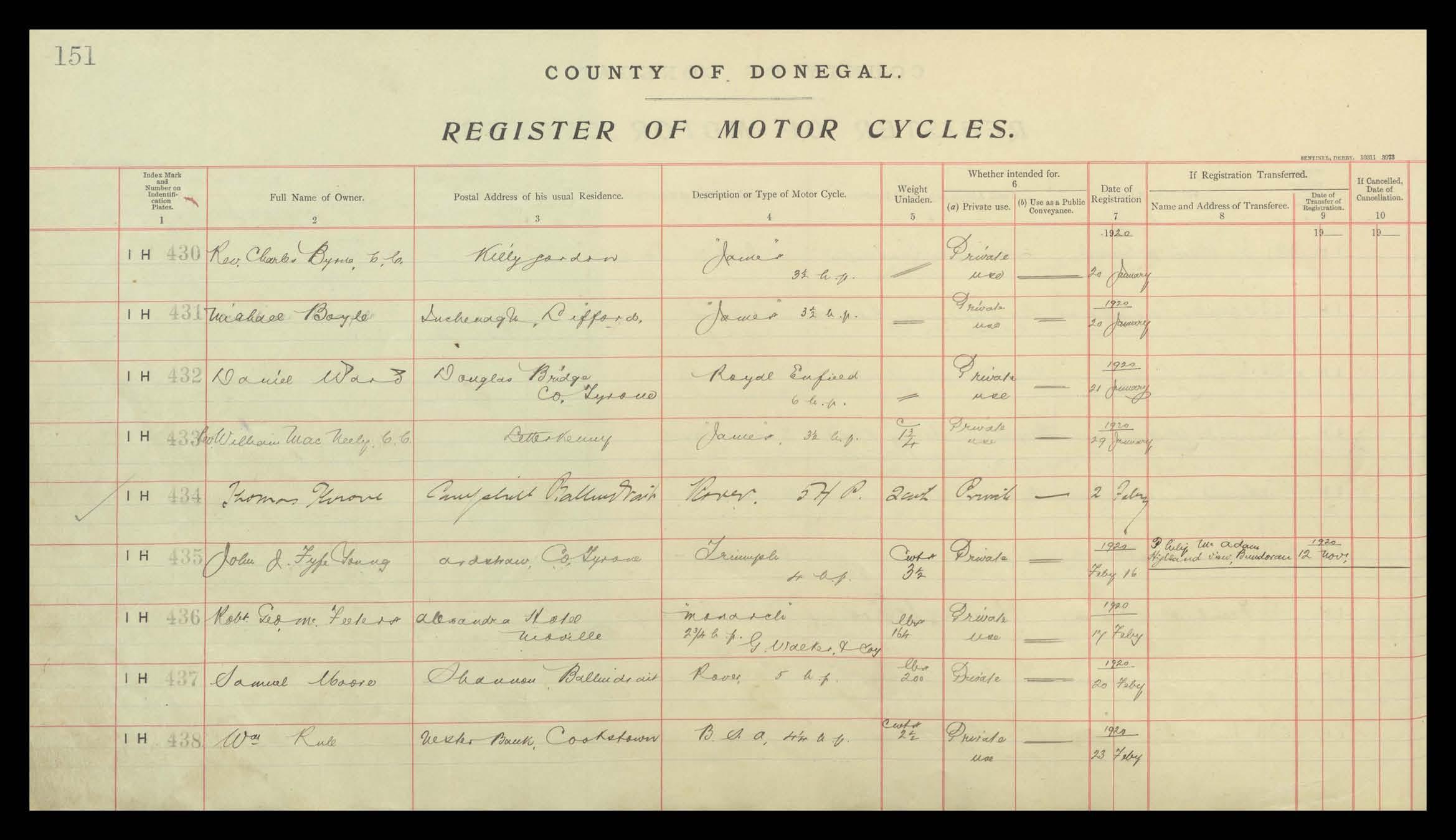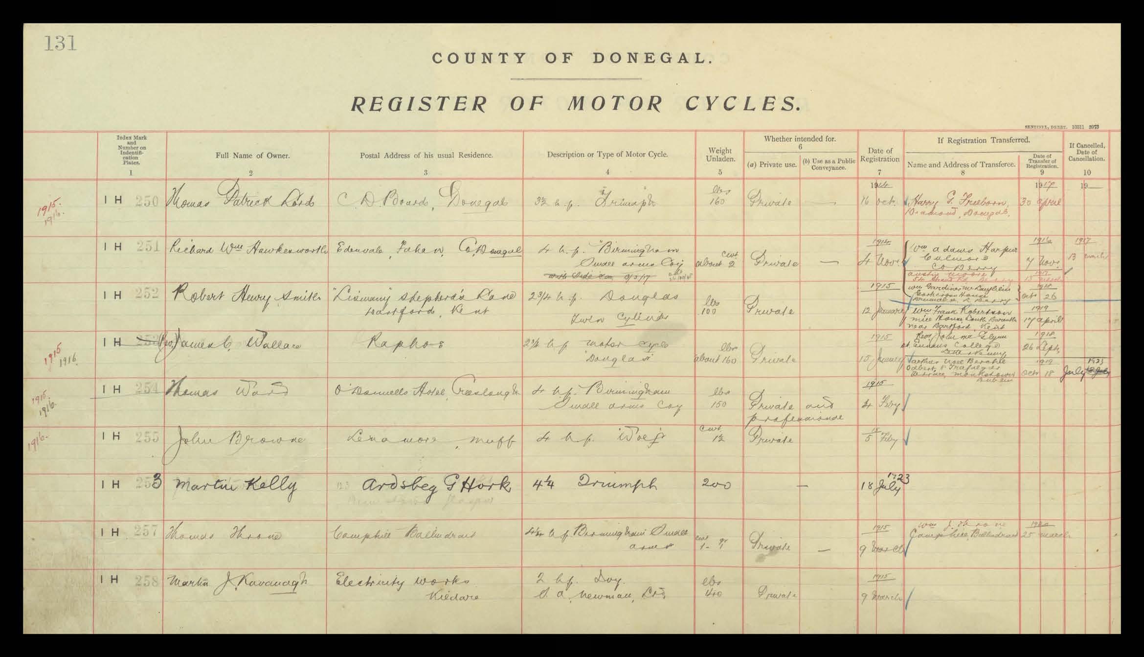 Register of Motor Vehicles, 1903 - 1923