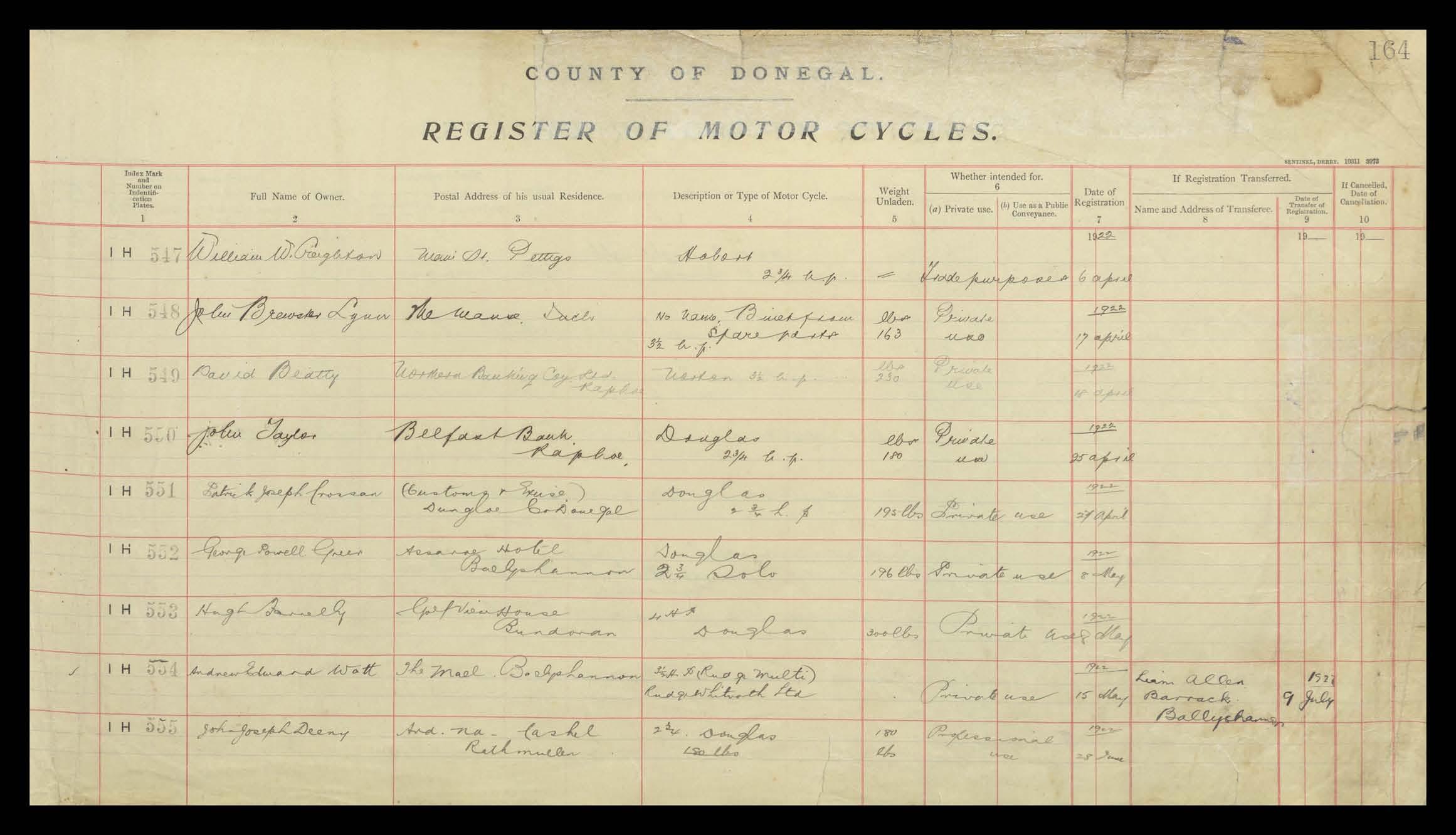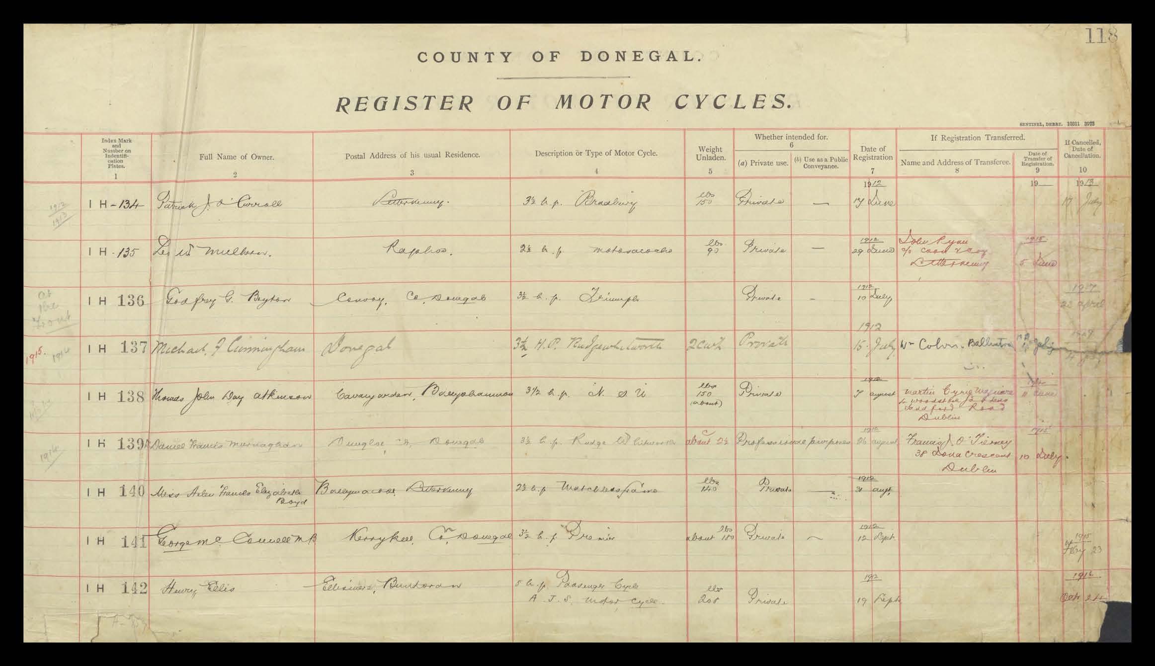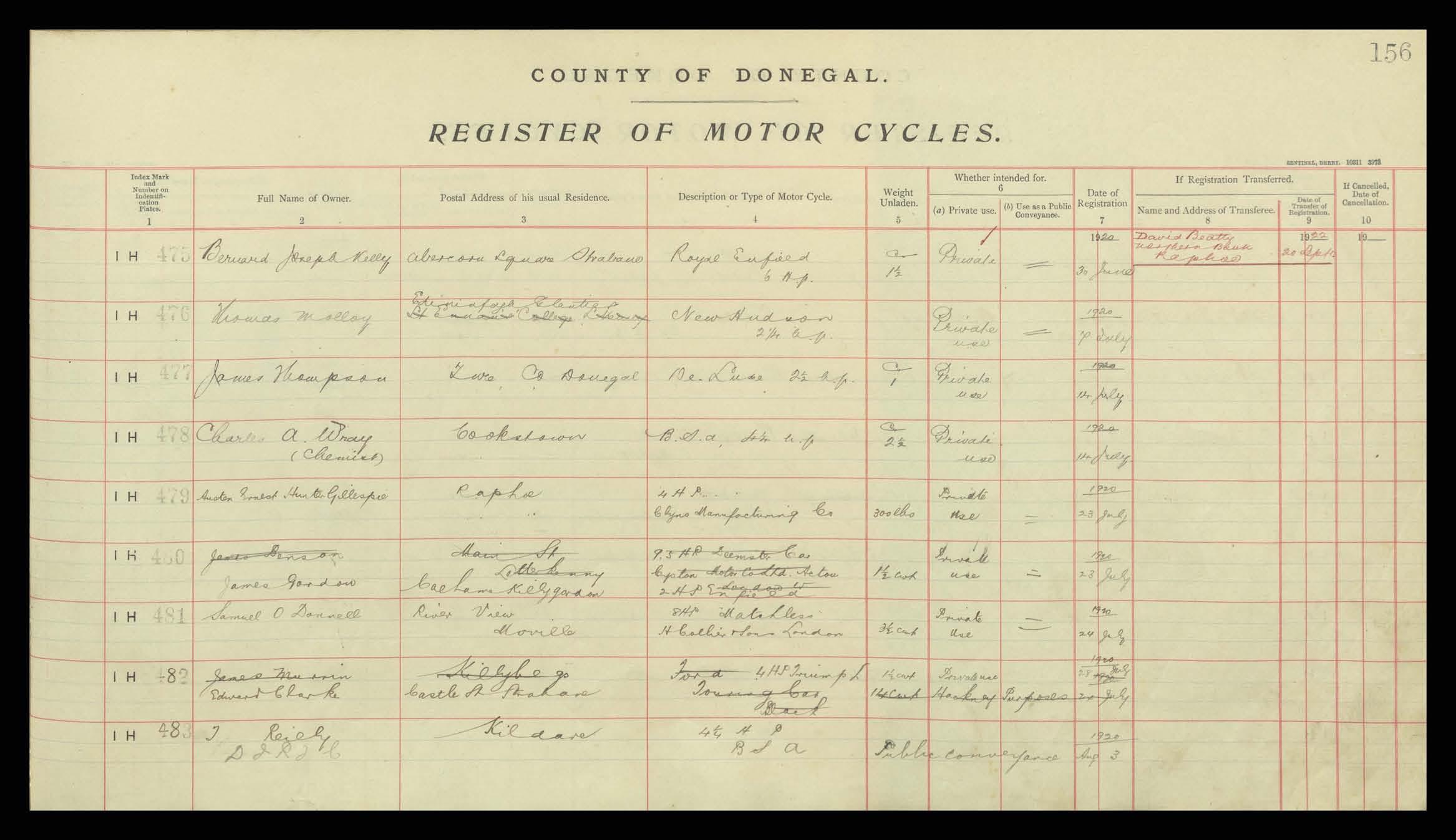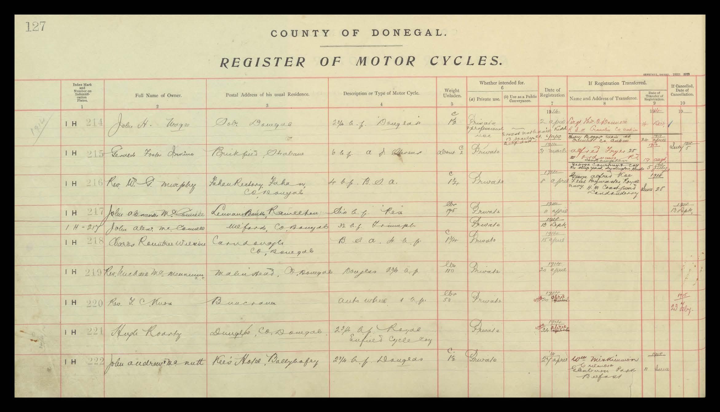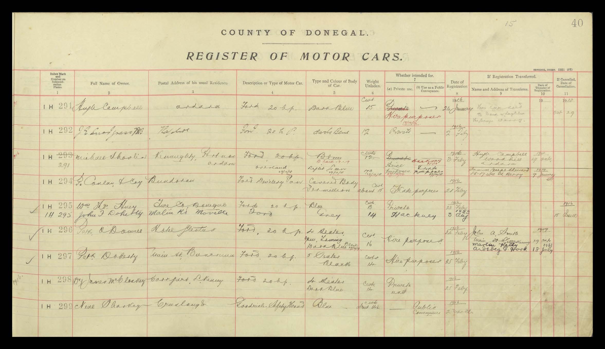 Register of Motor Vehicles, 1903 - 1923