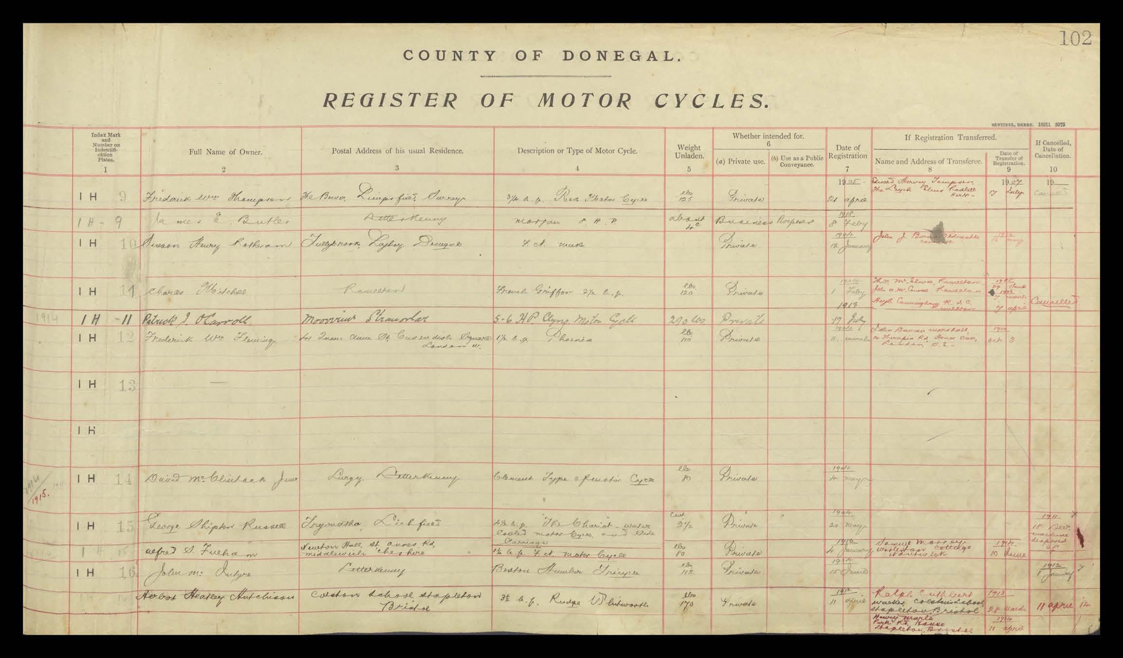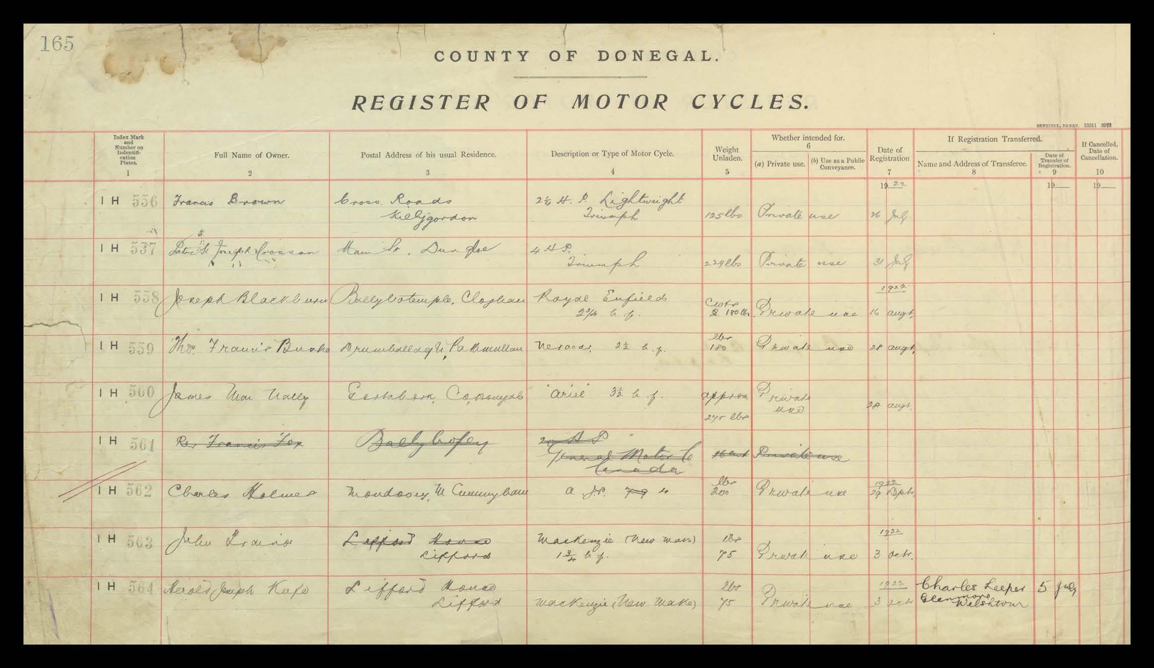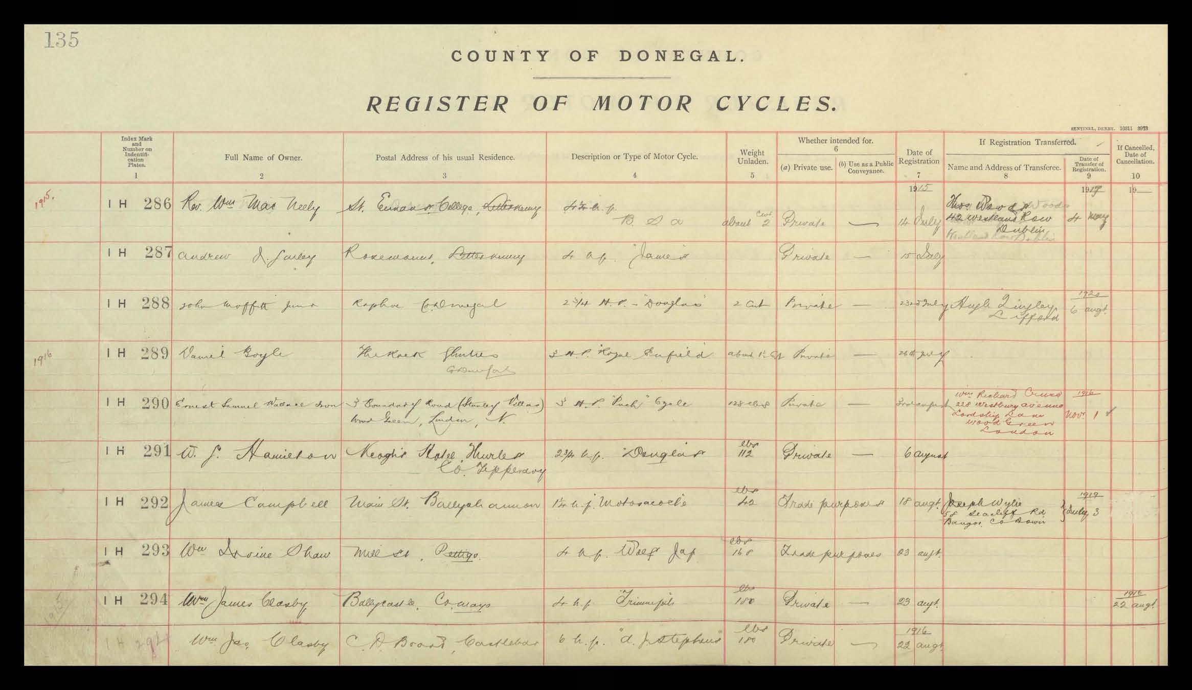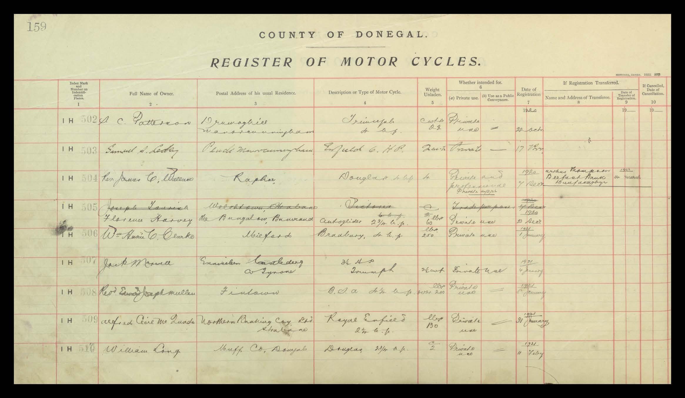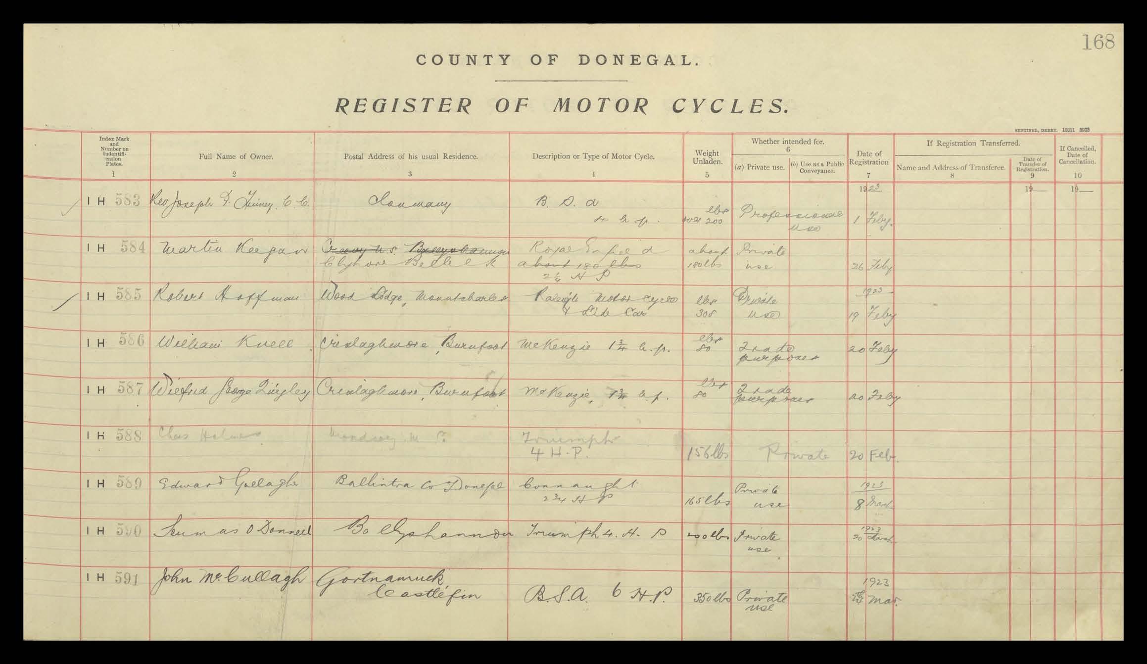 Register of Motor Vehicles, 1903 - 1923