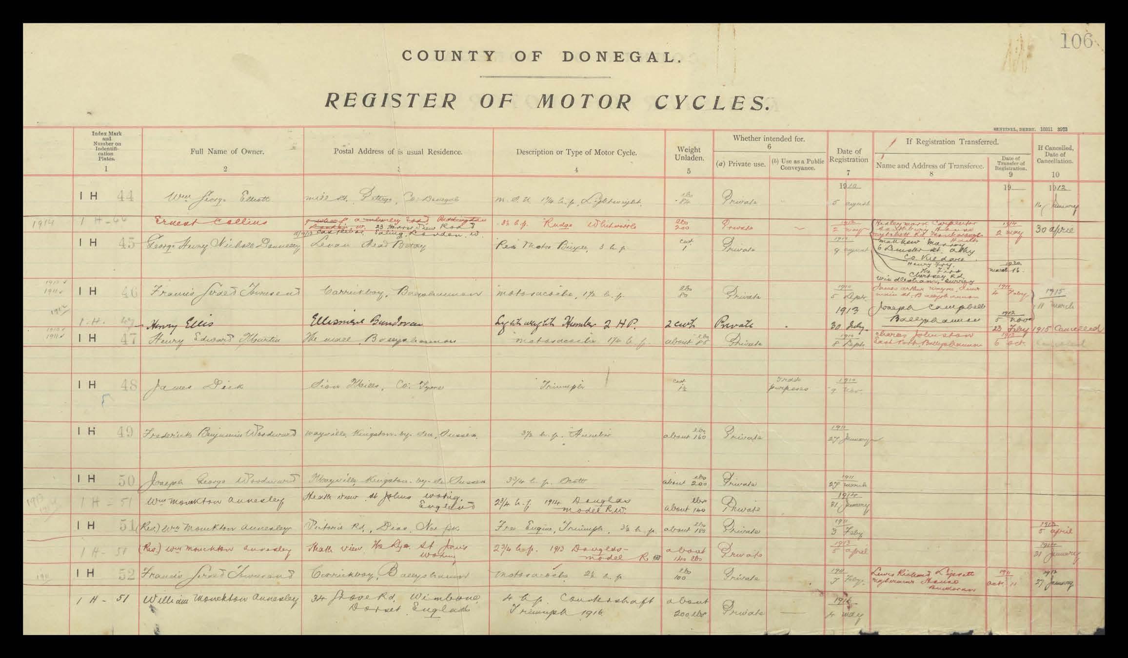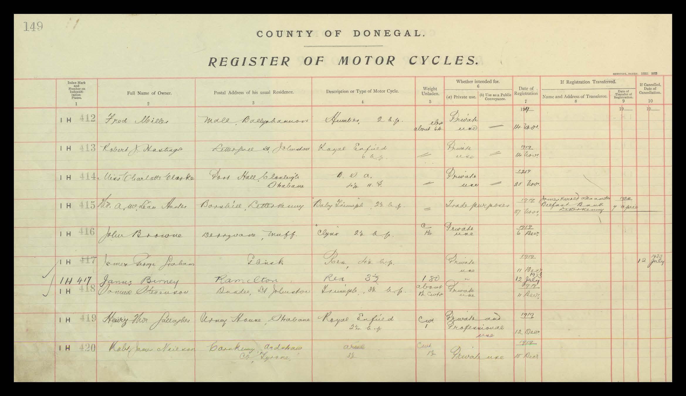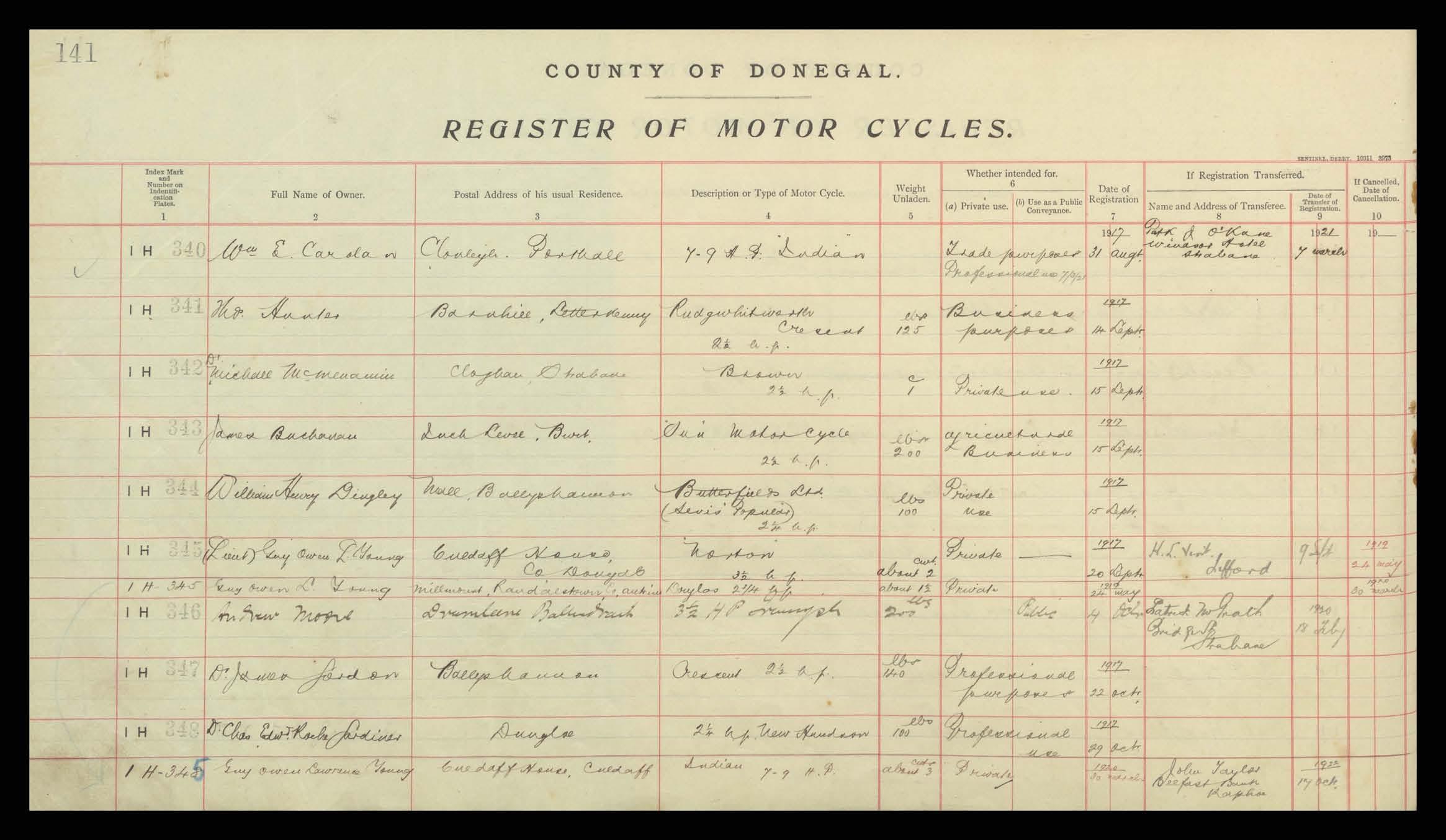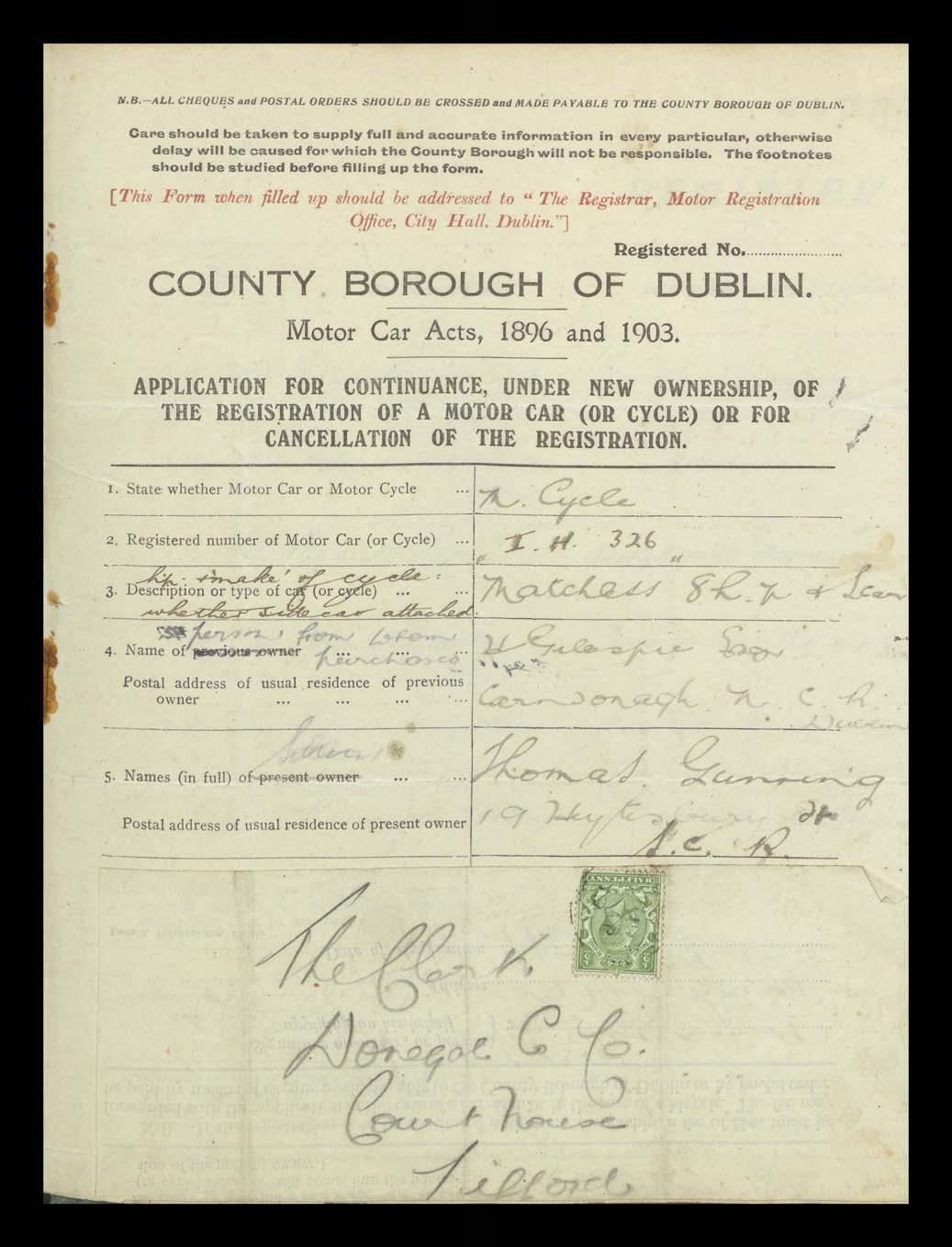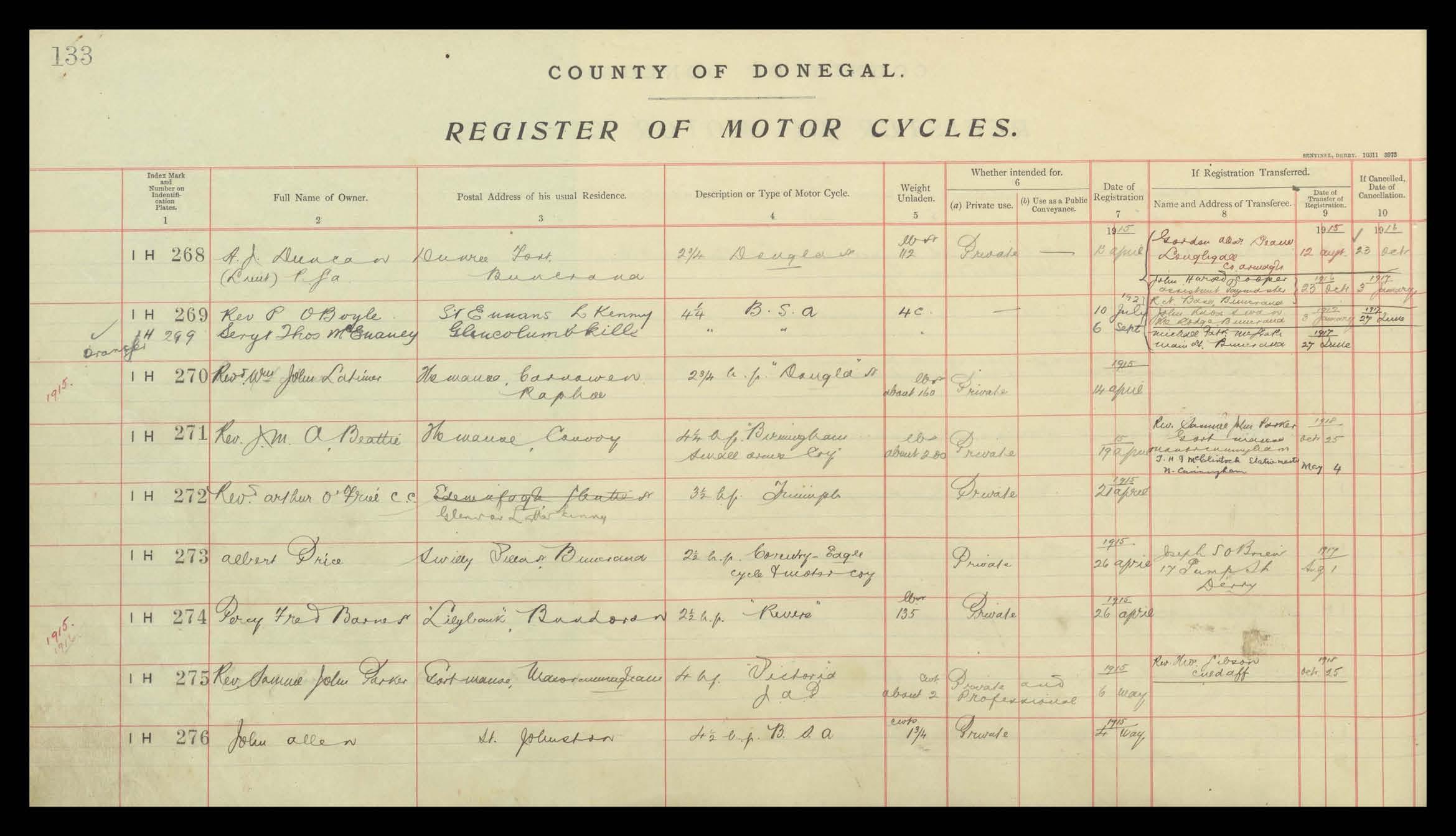 Register of Motor Vehicles, 1903 - 1923