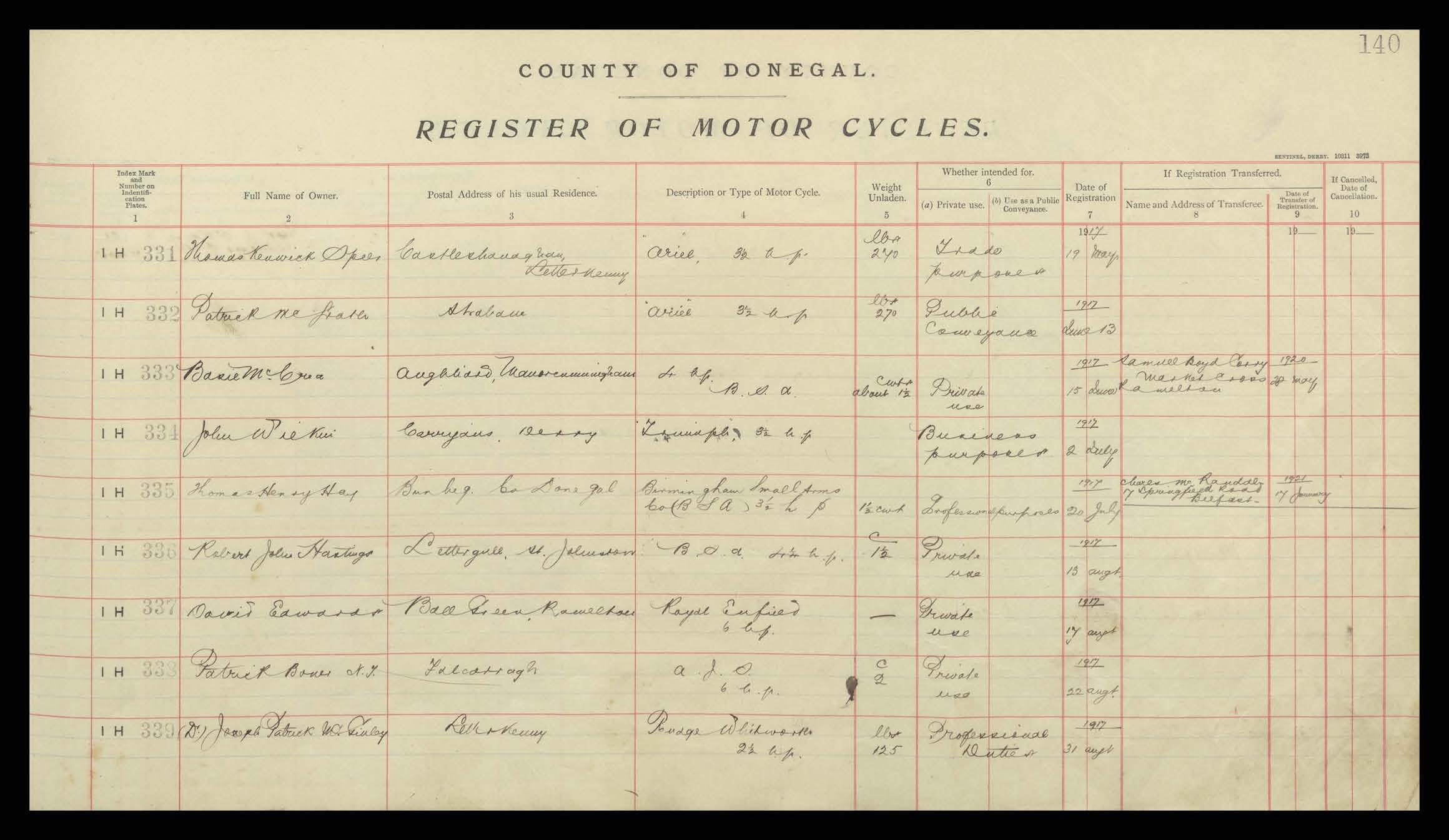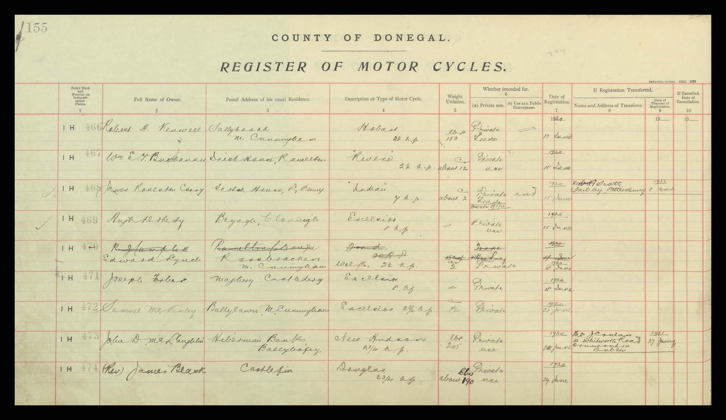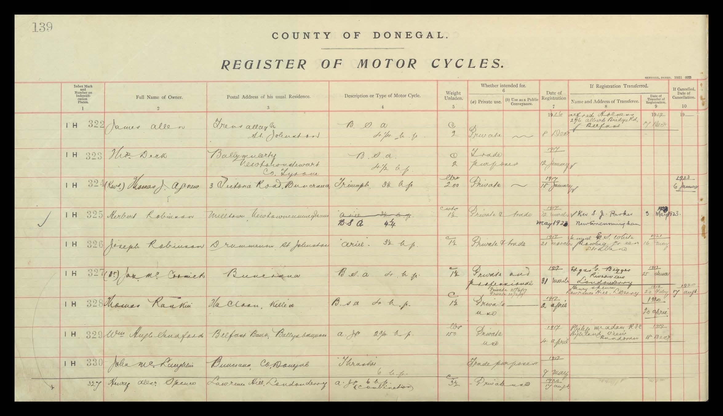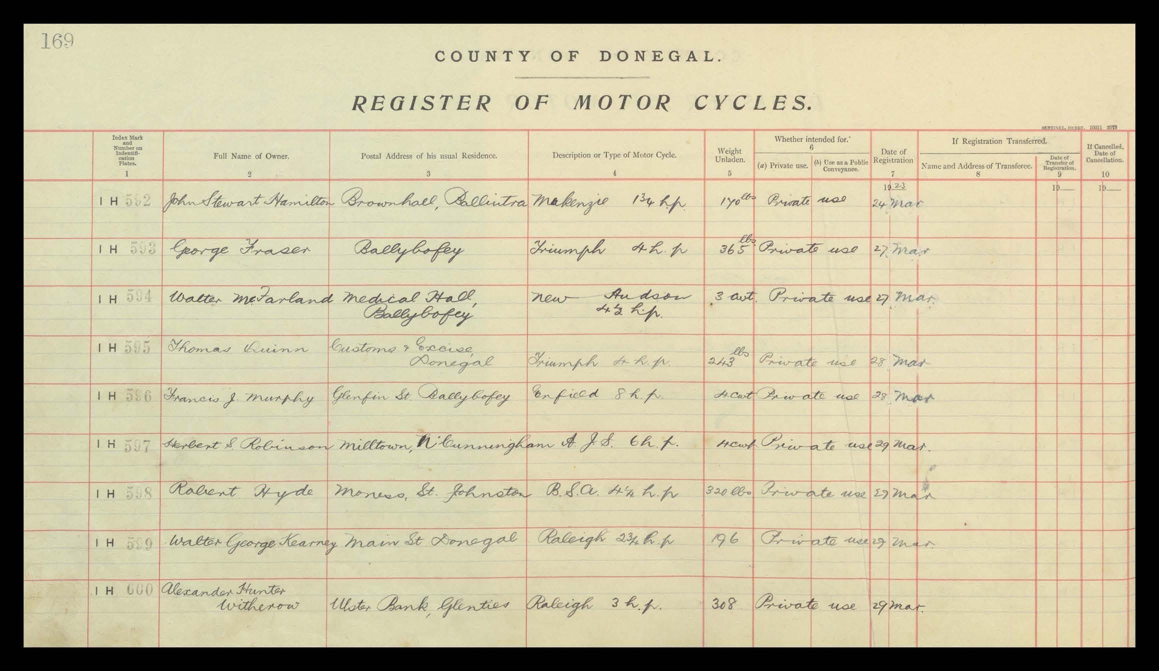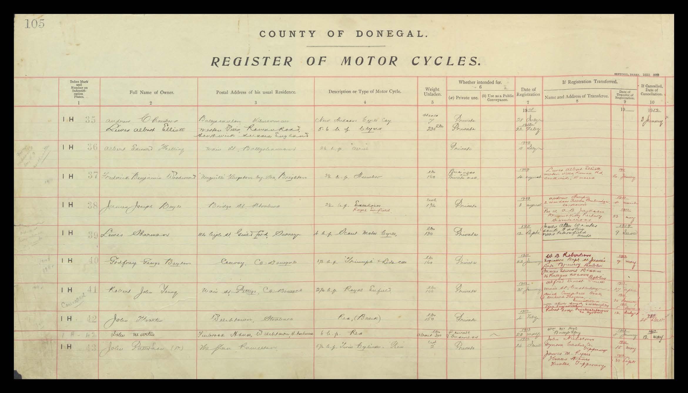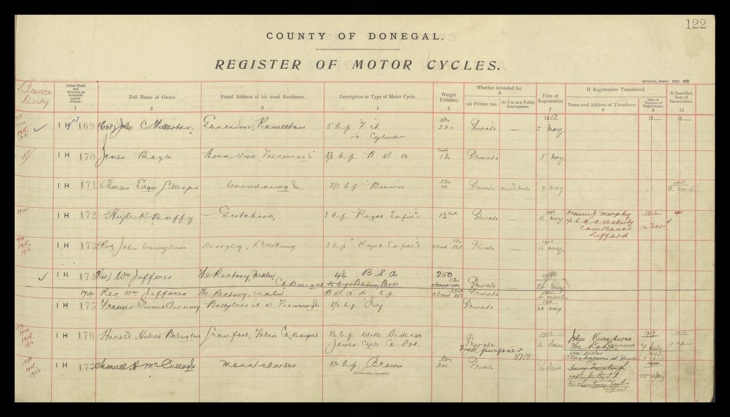 Register of Motor Vehicles, 1903 - 1923