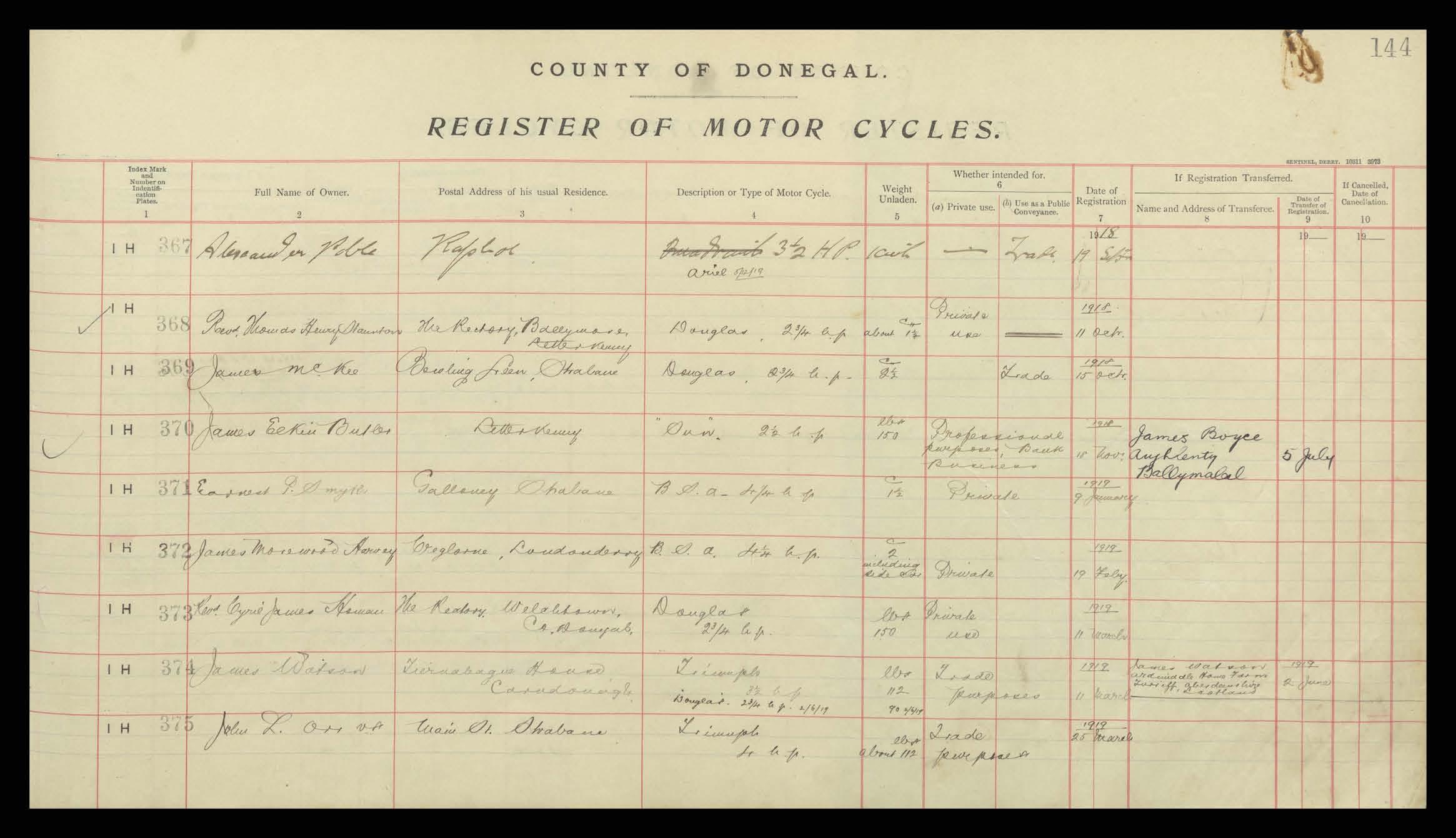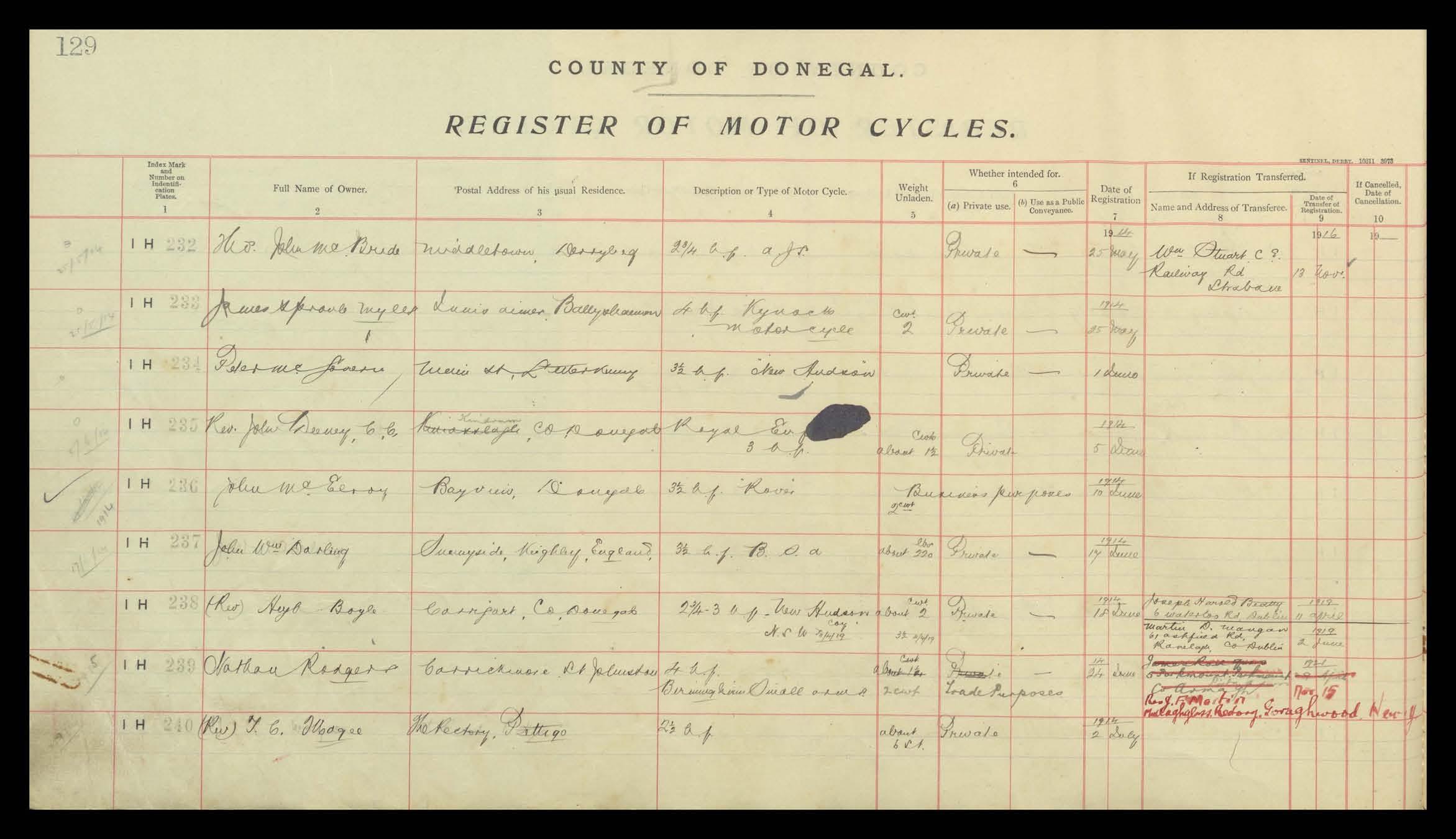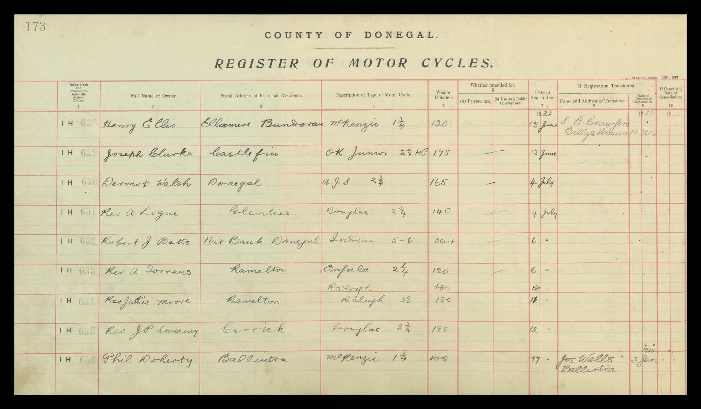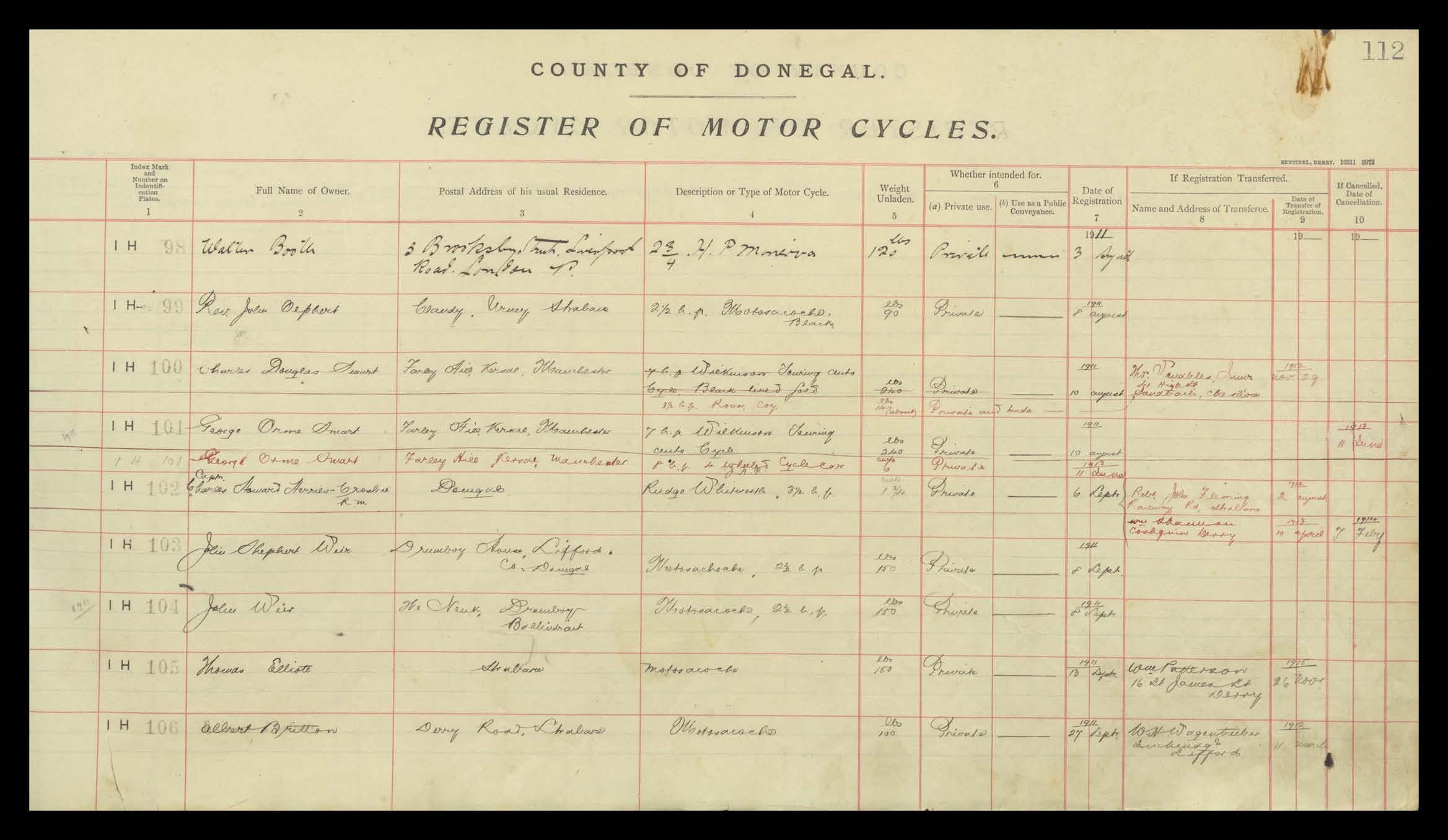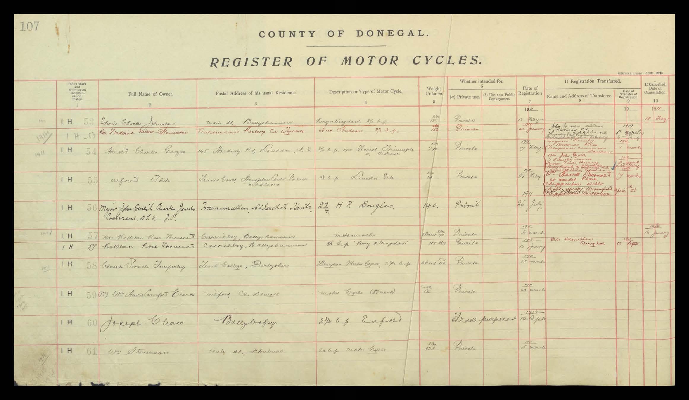 Register of Motor Vehicles, 1903 - 1923