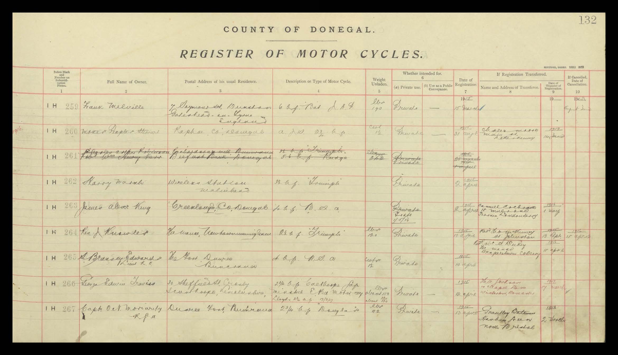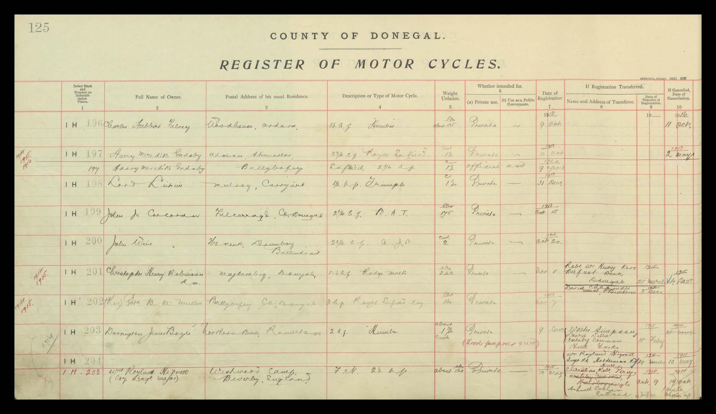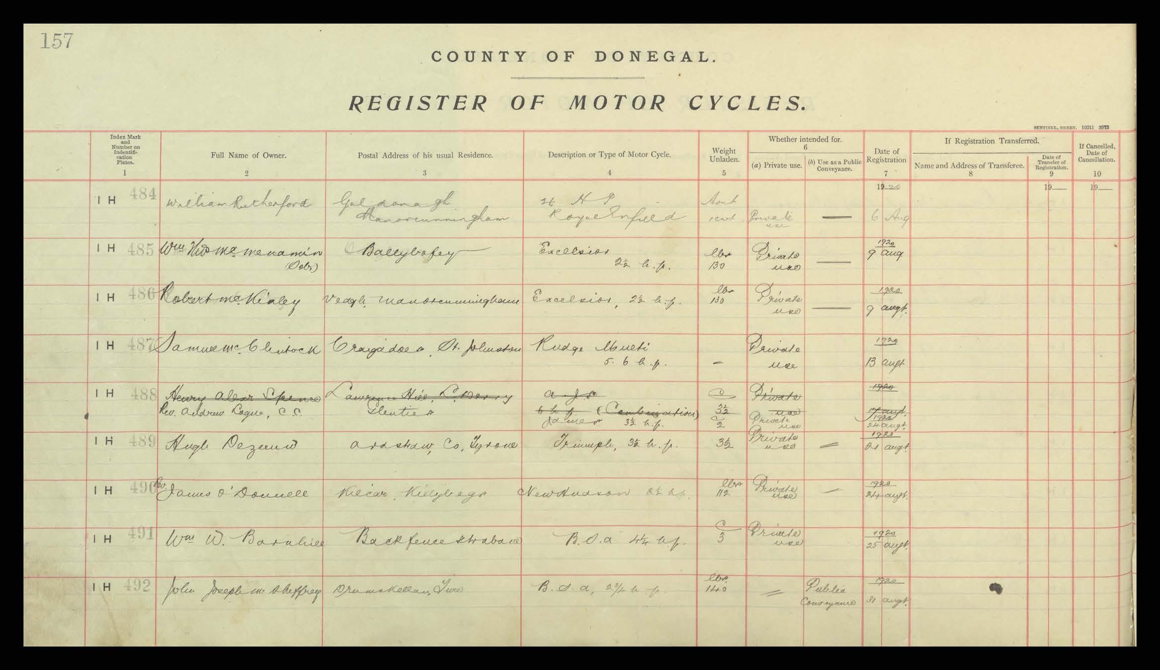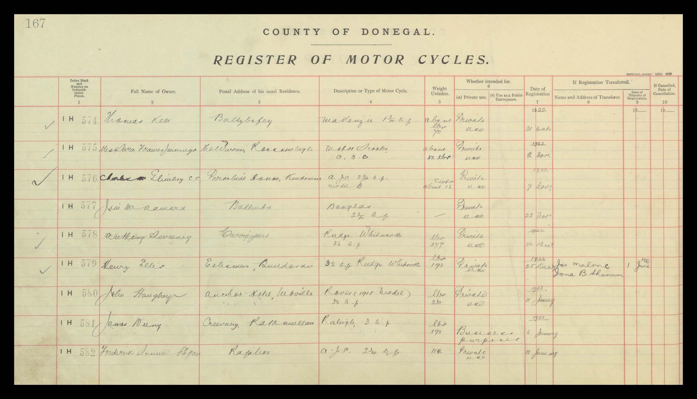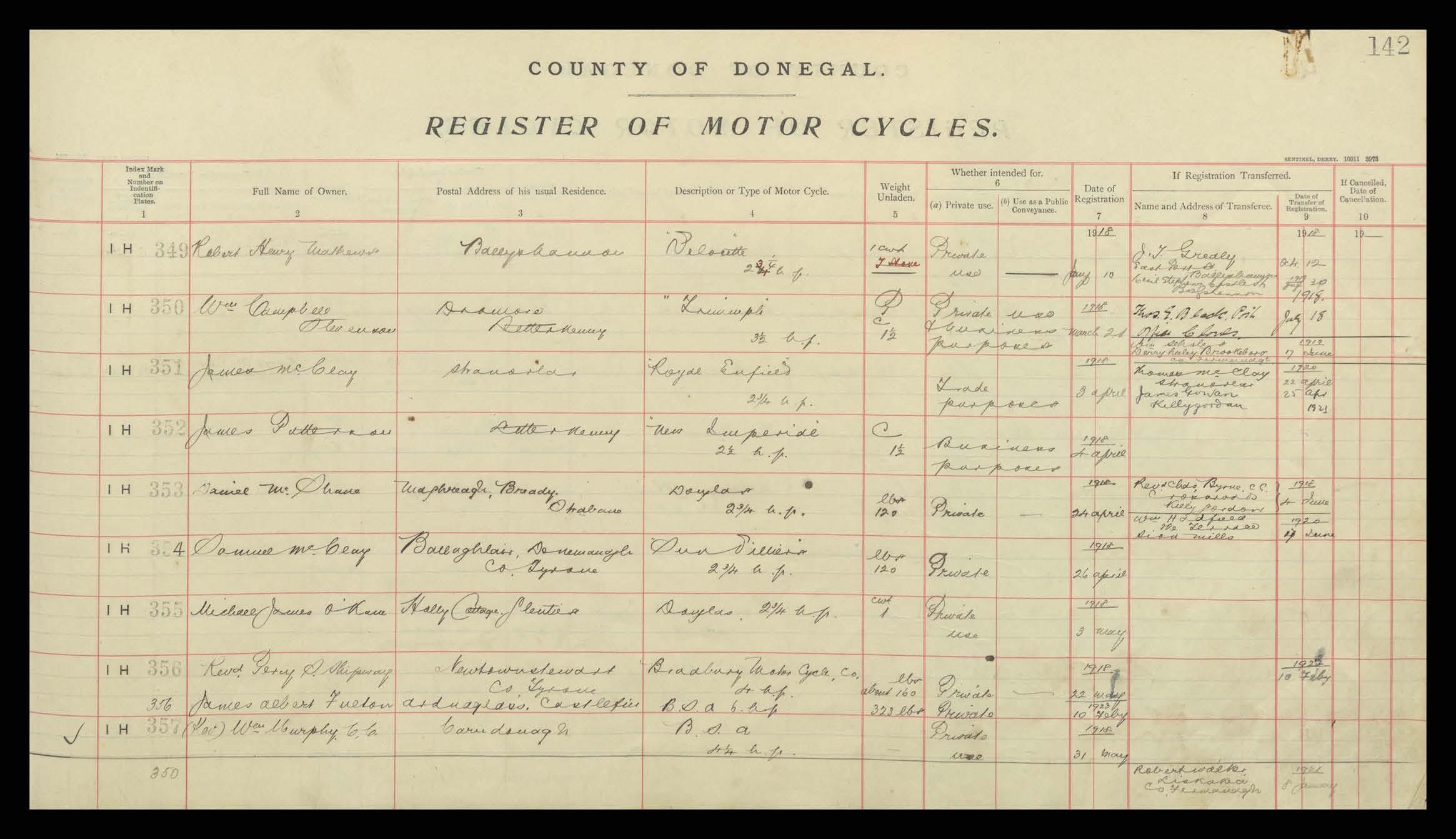 Register of Motor Vehicles, 1903 - 1923