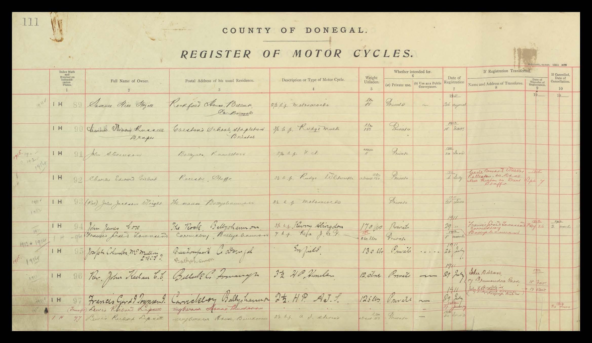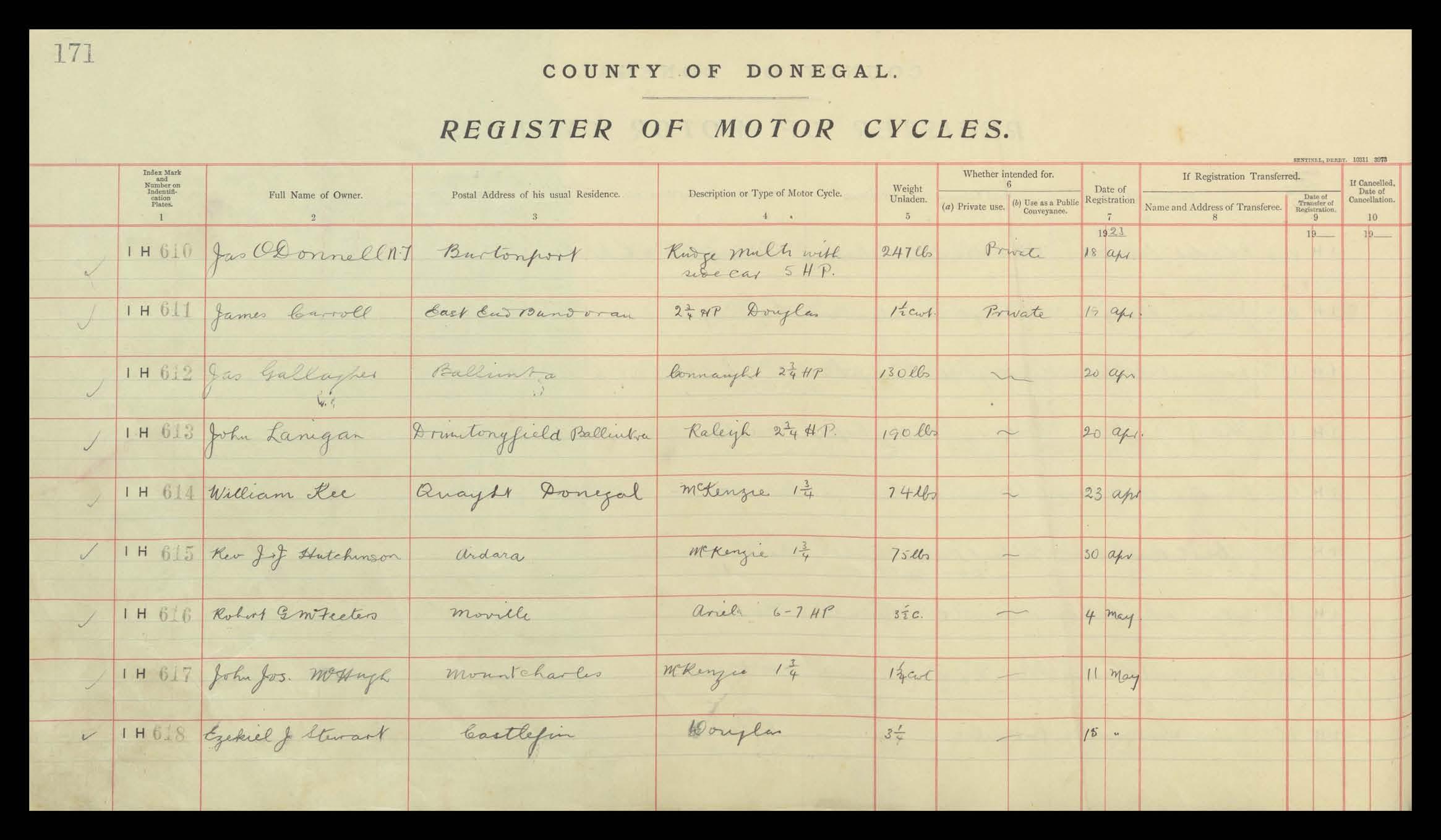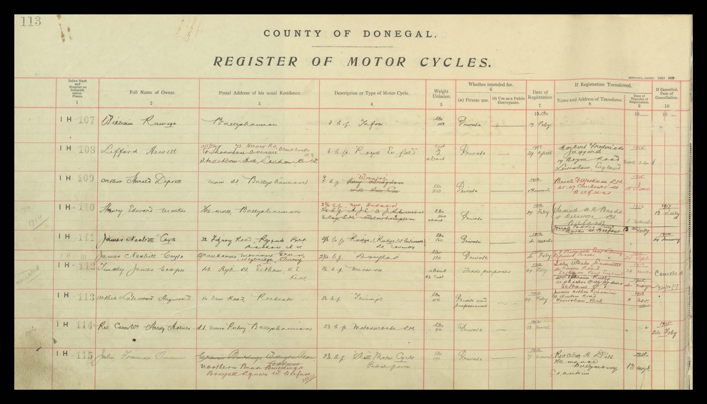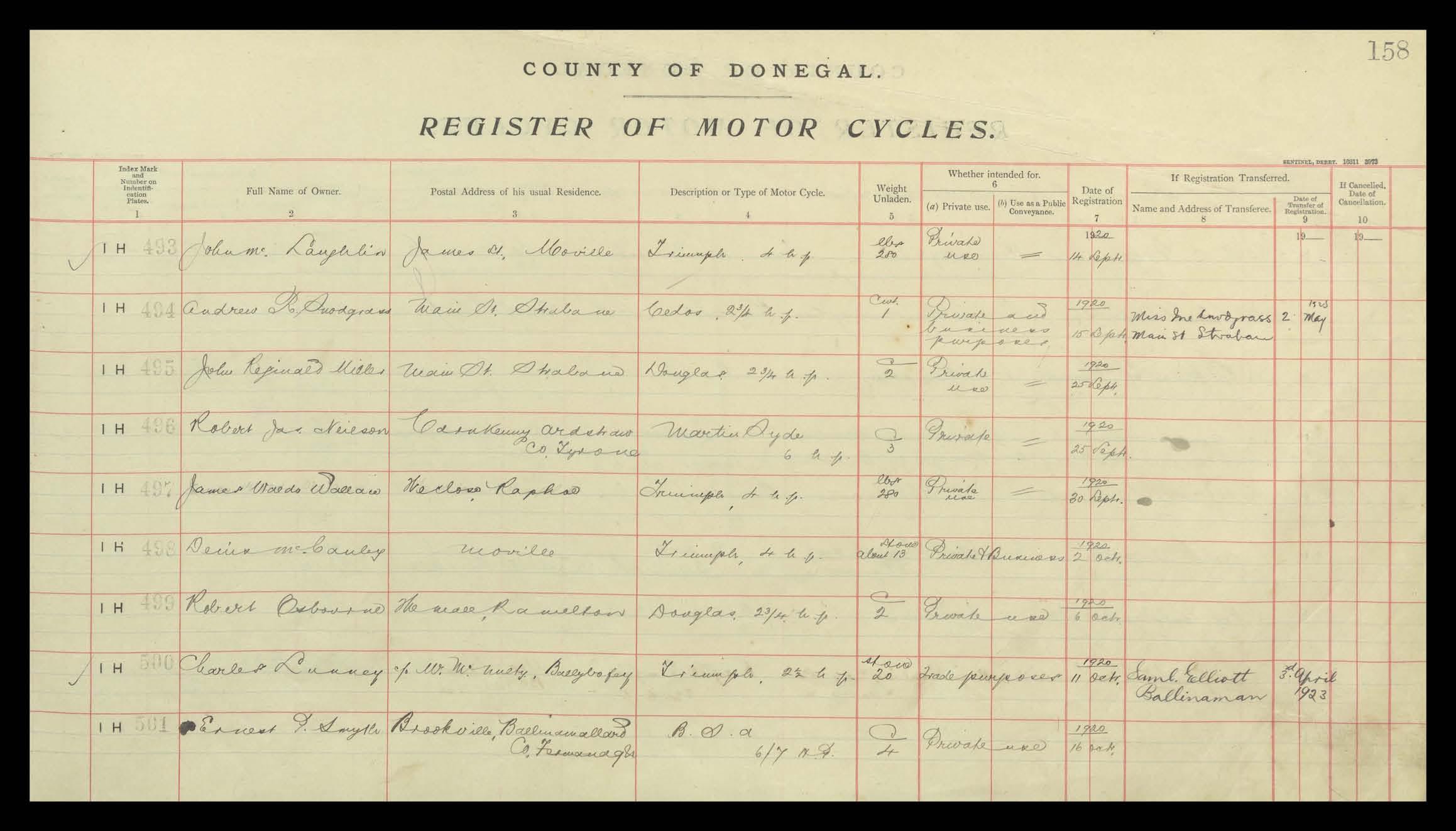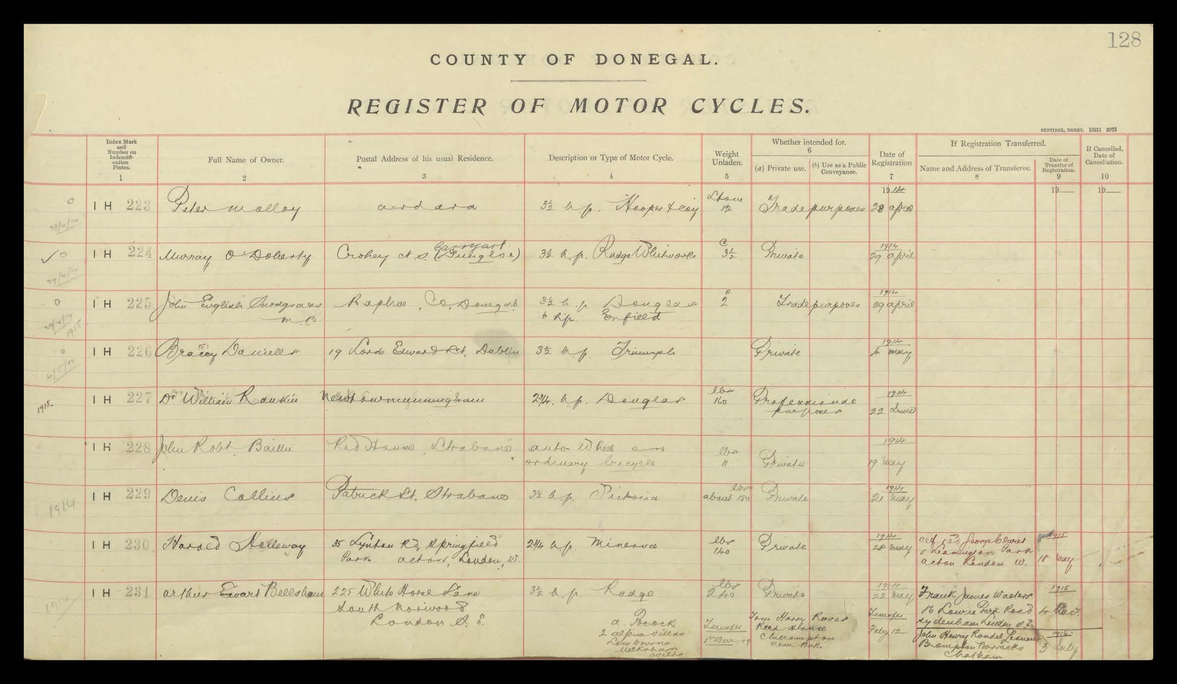 Register of Motor Vehicles, 1903 - 1923
