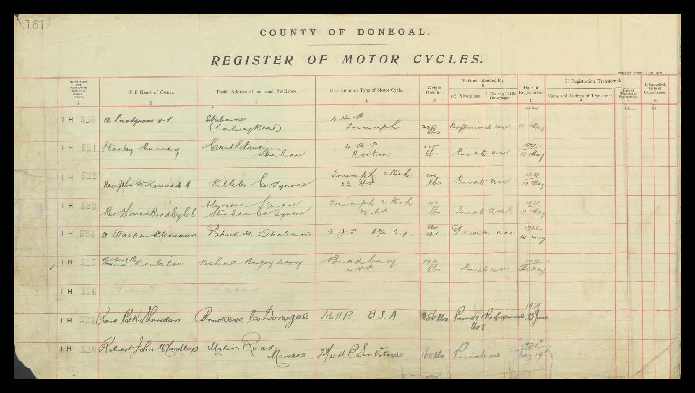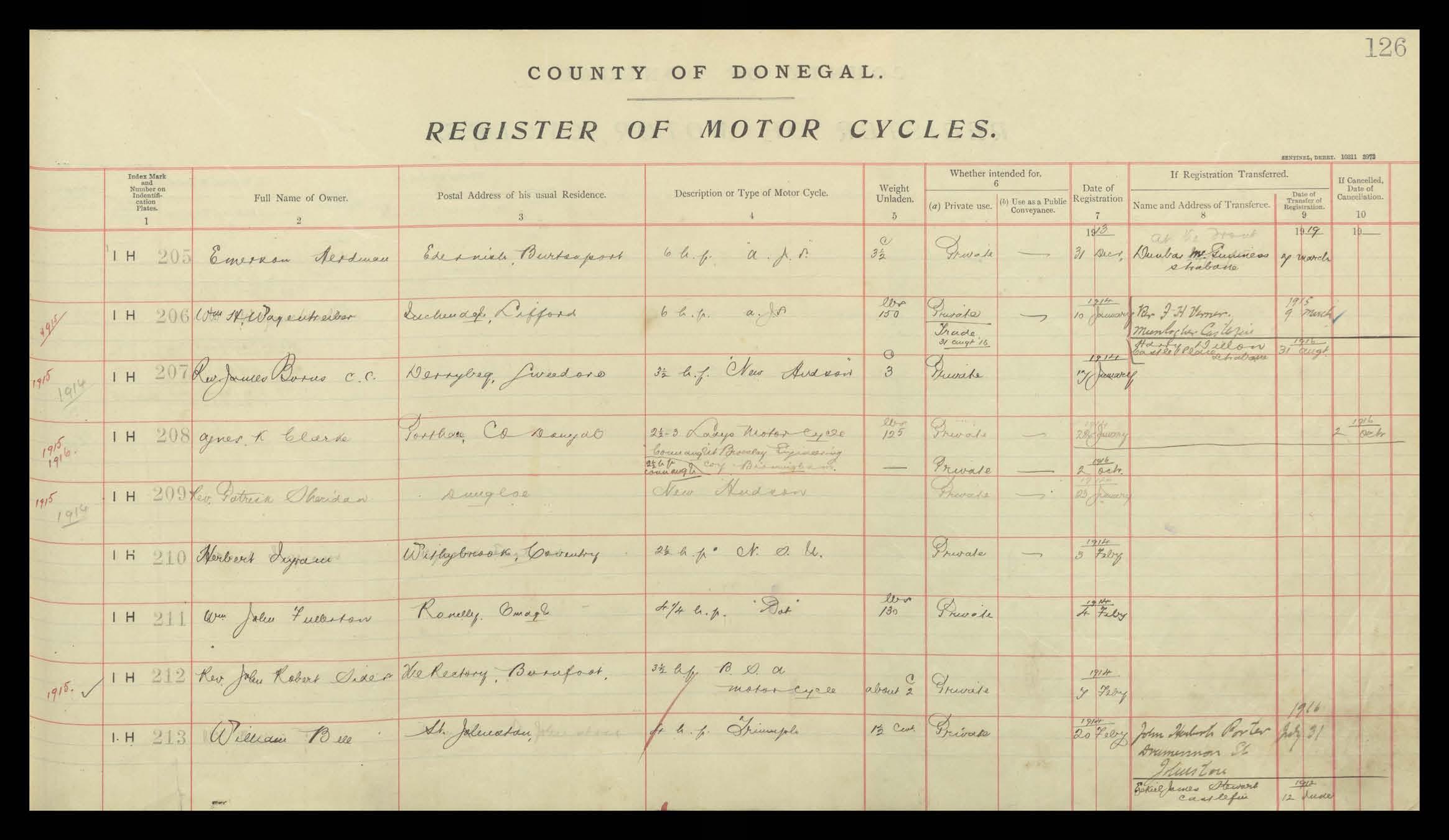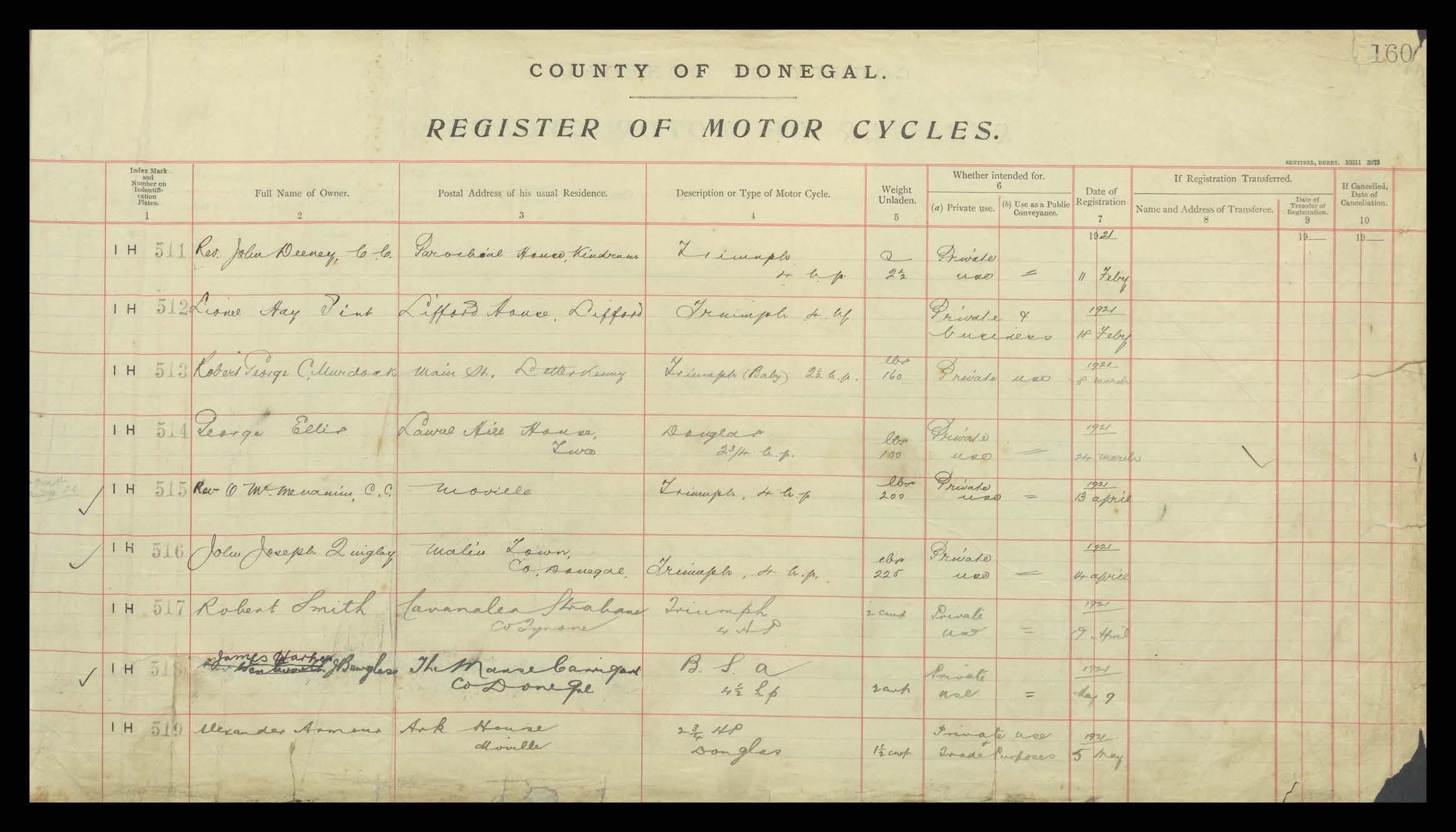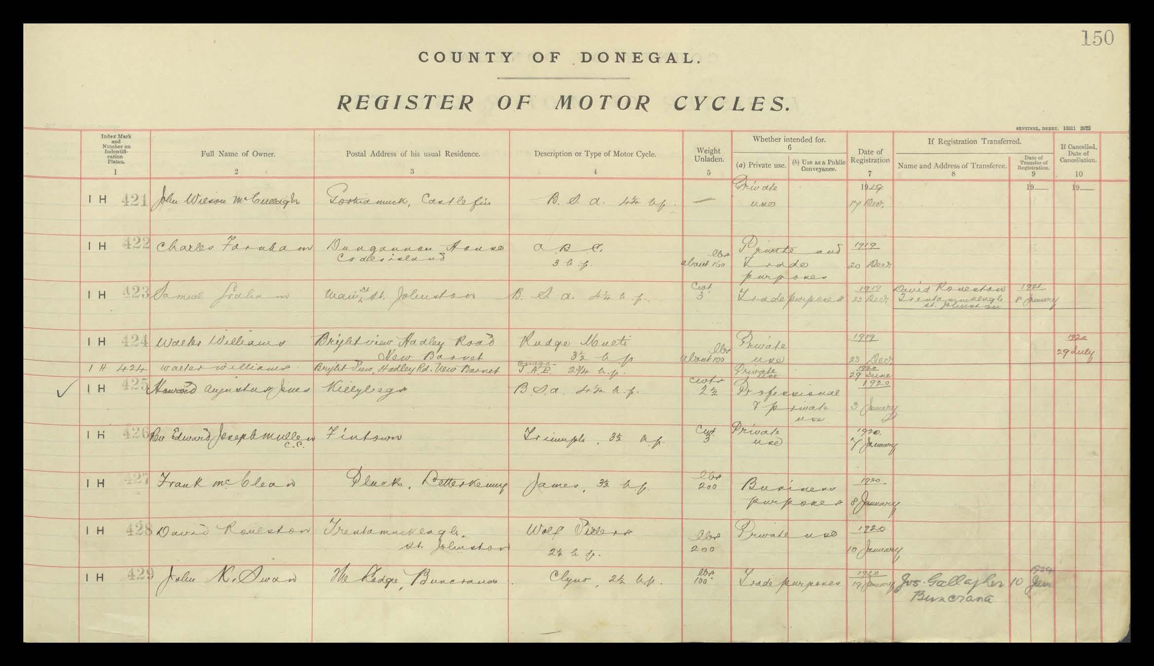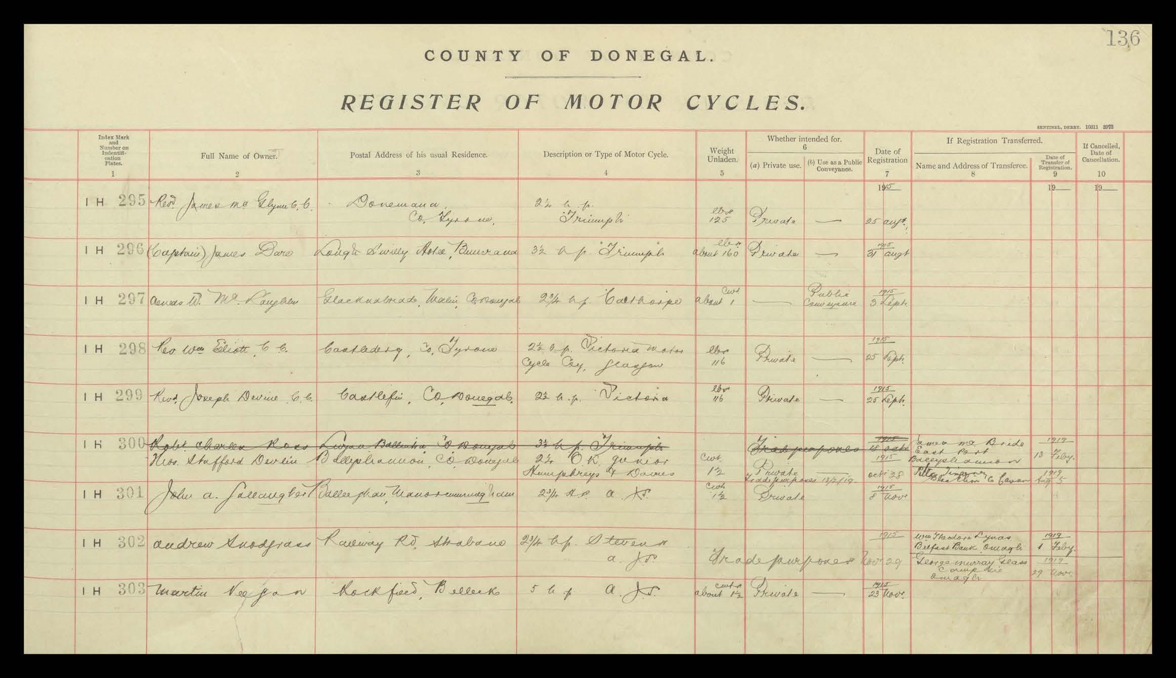 Register of Motor Vehicles, 1903 - 1923