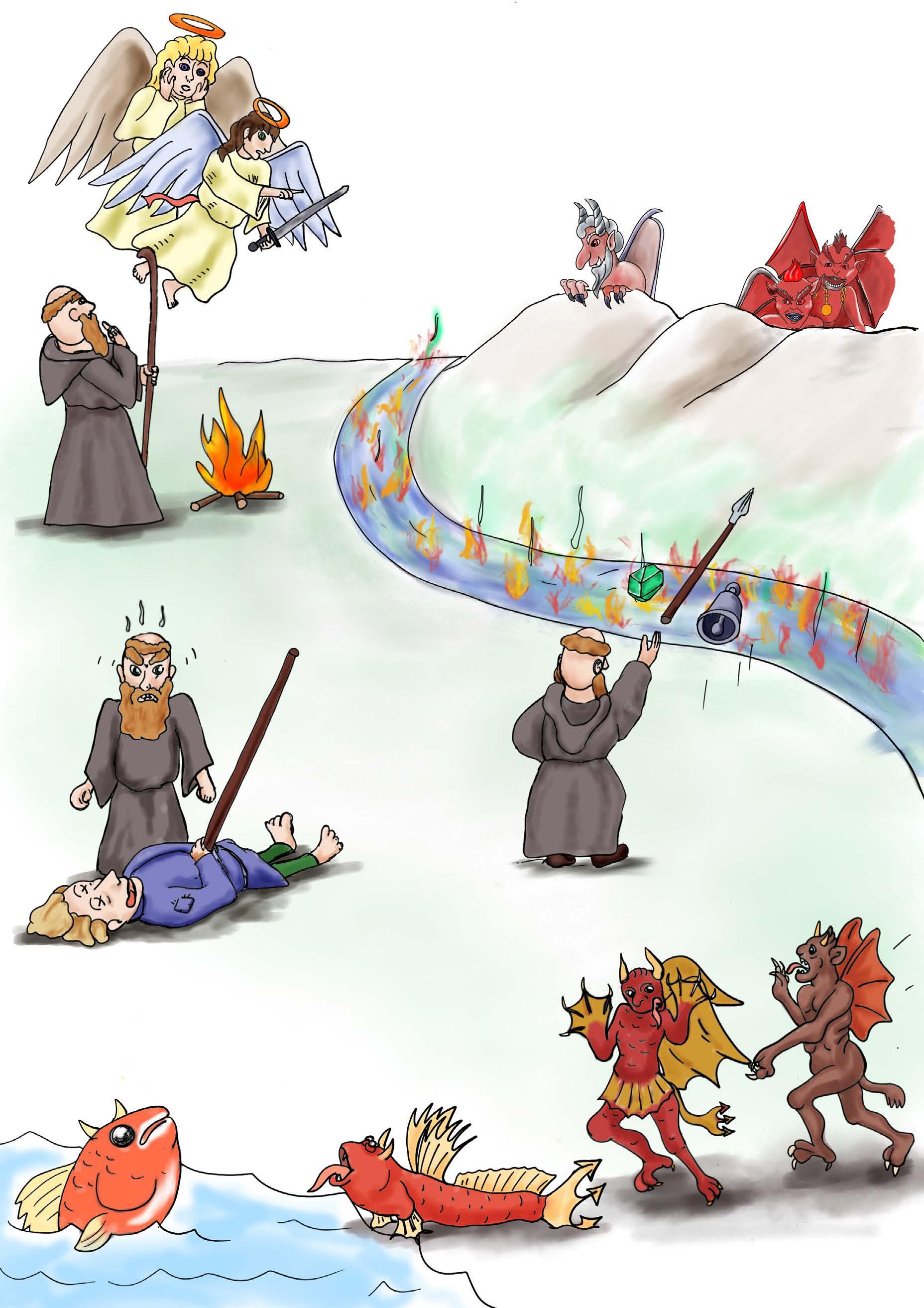 Unfortunately, I couldn’t stay long because a terrible plague came. It caused people to swell up and say very strange things. Nothing could stop this plague; it even killed our great teacher. Page 3: St. Colmcille’s