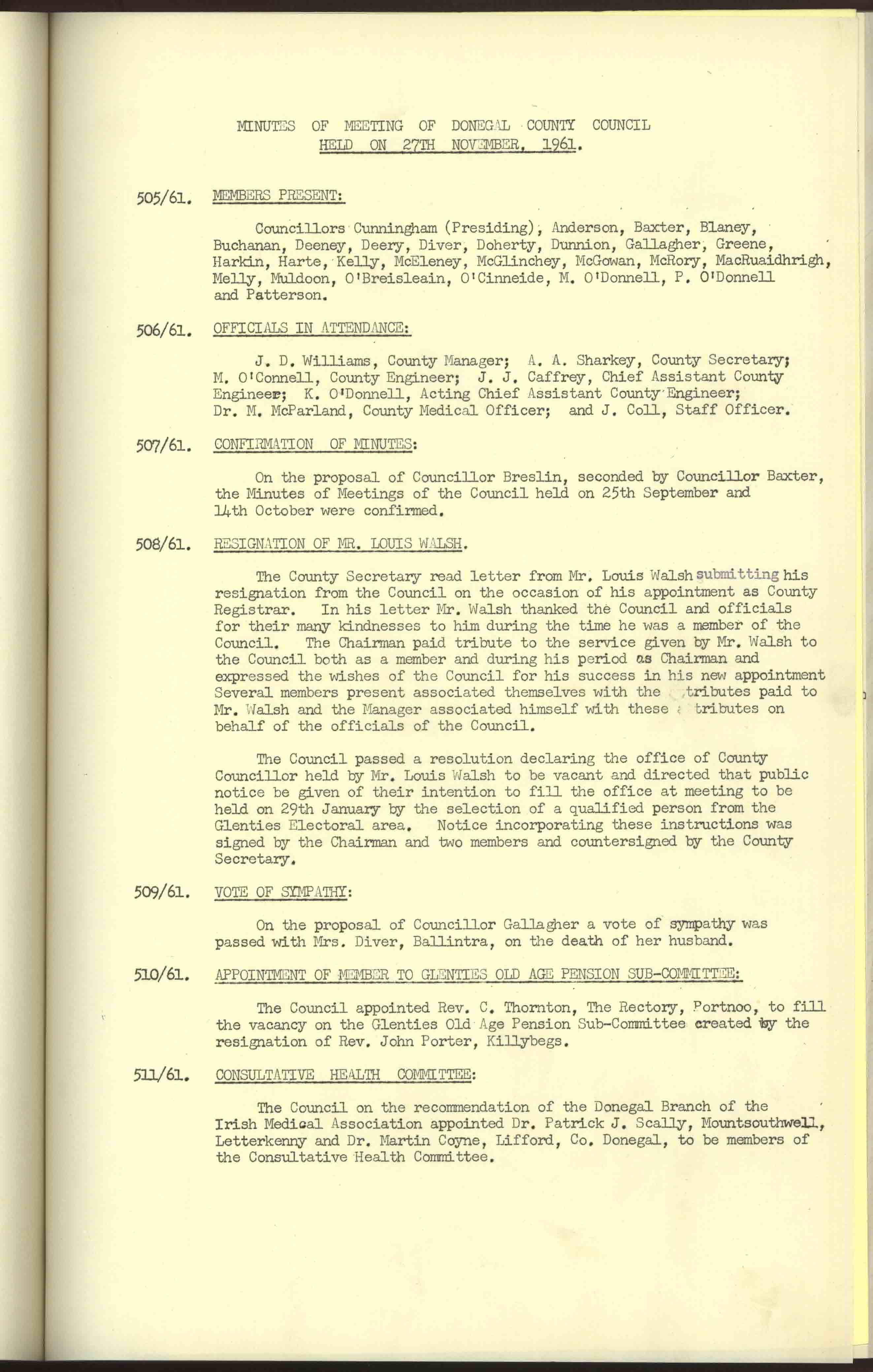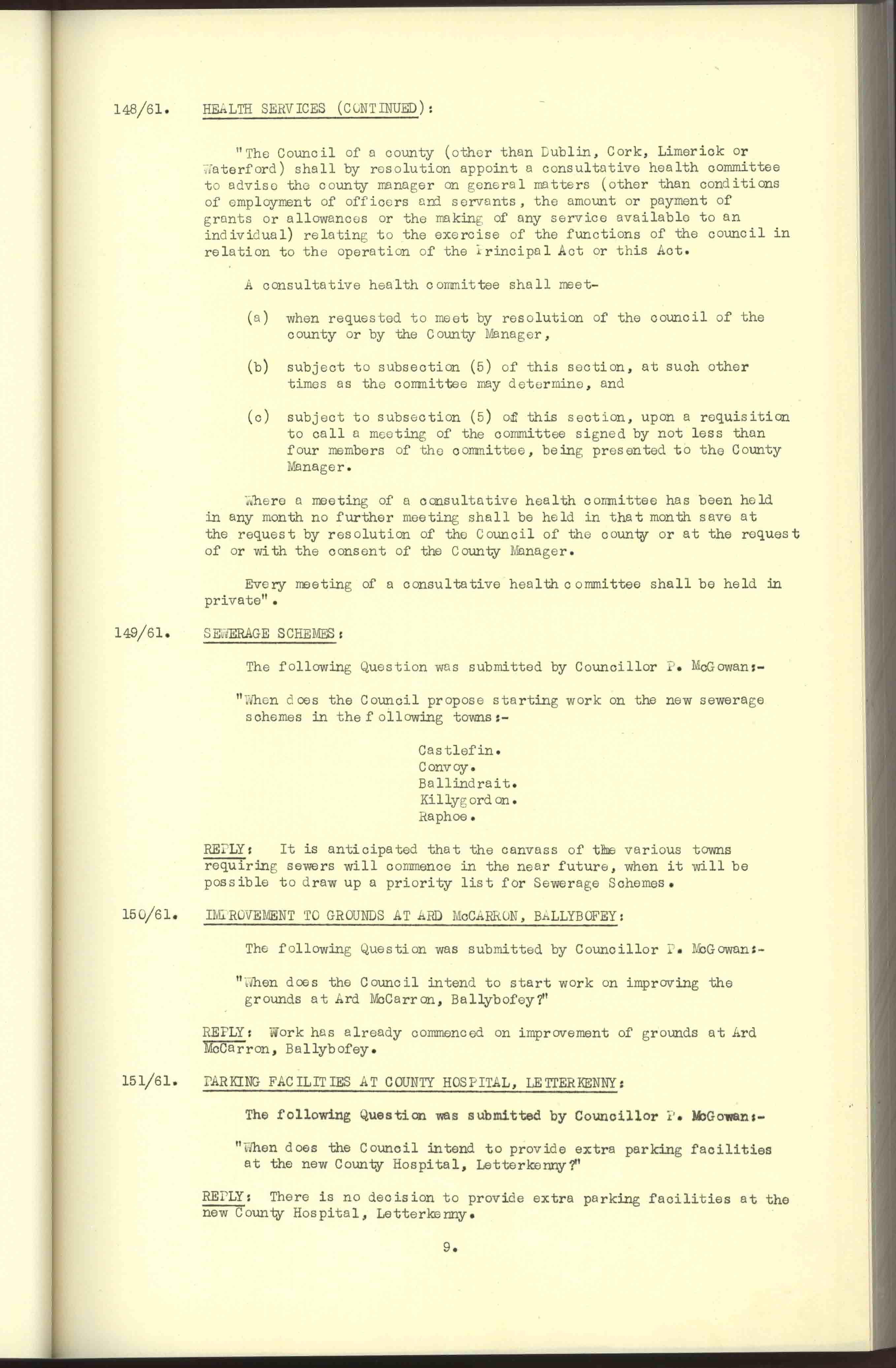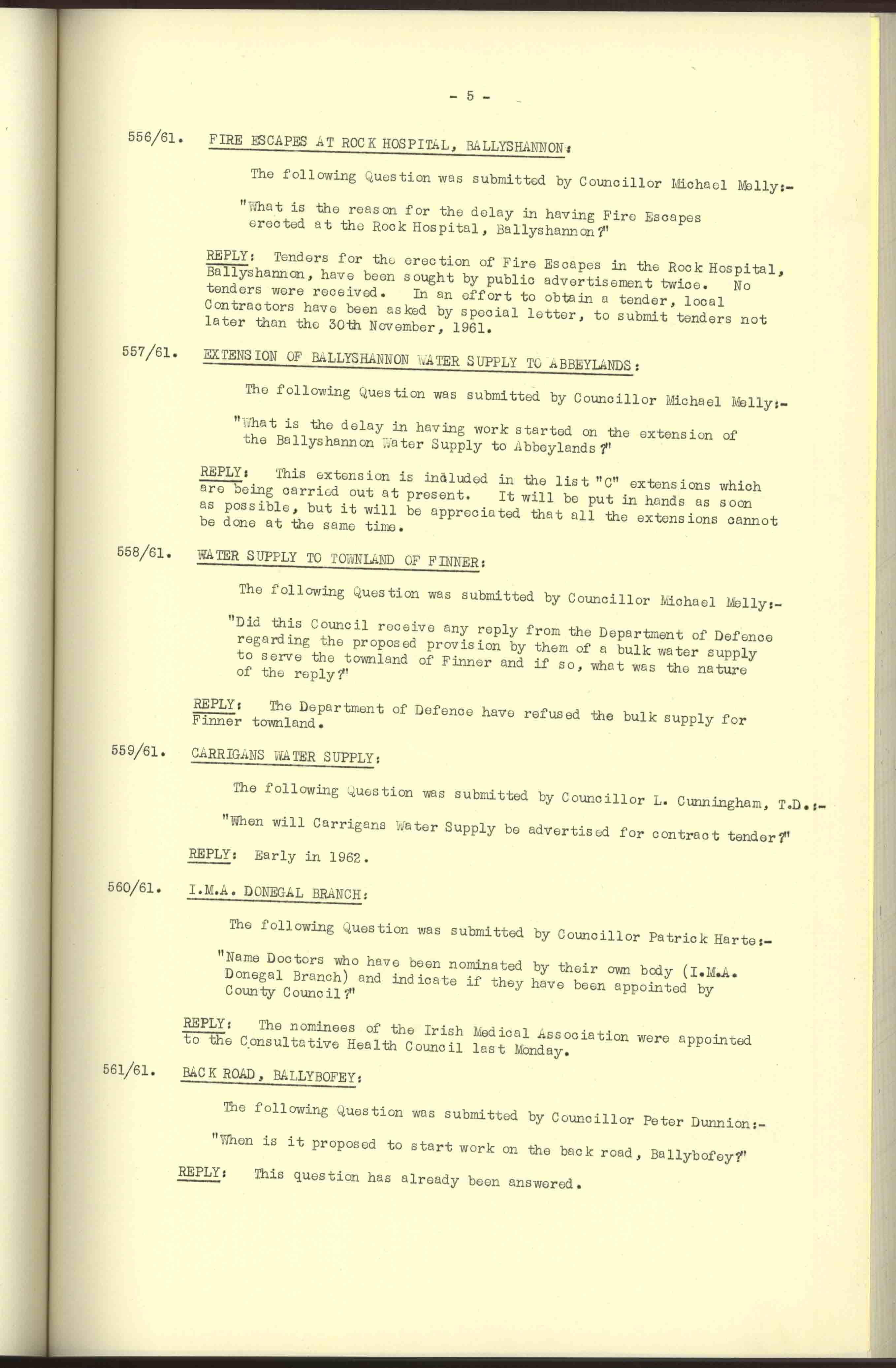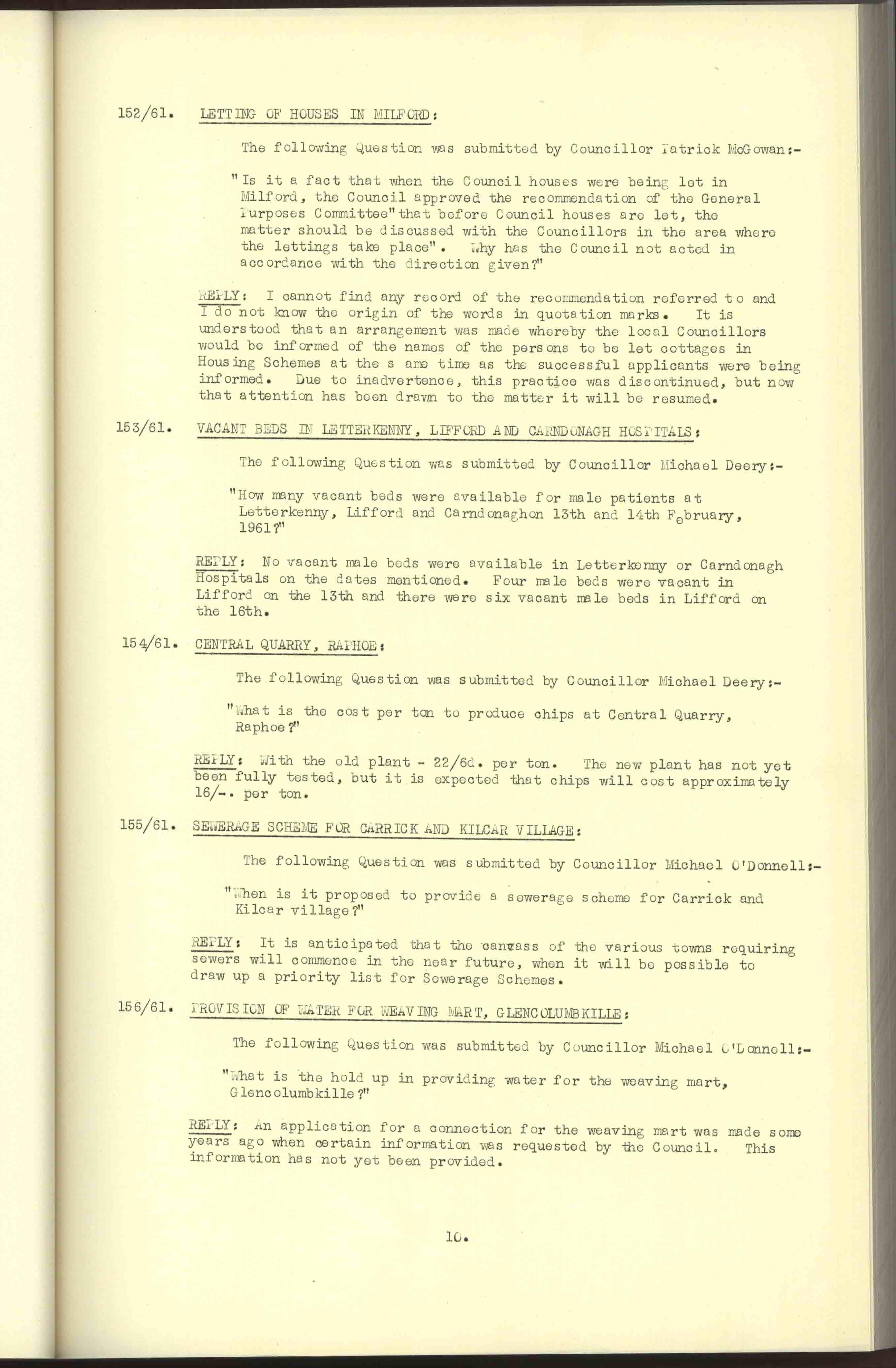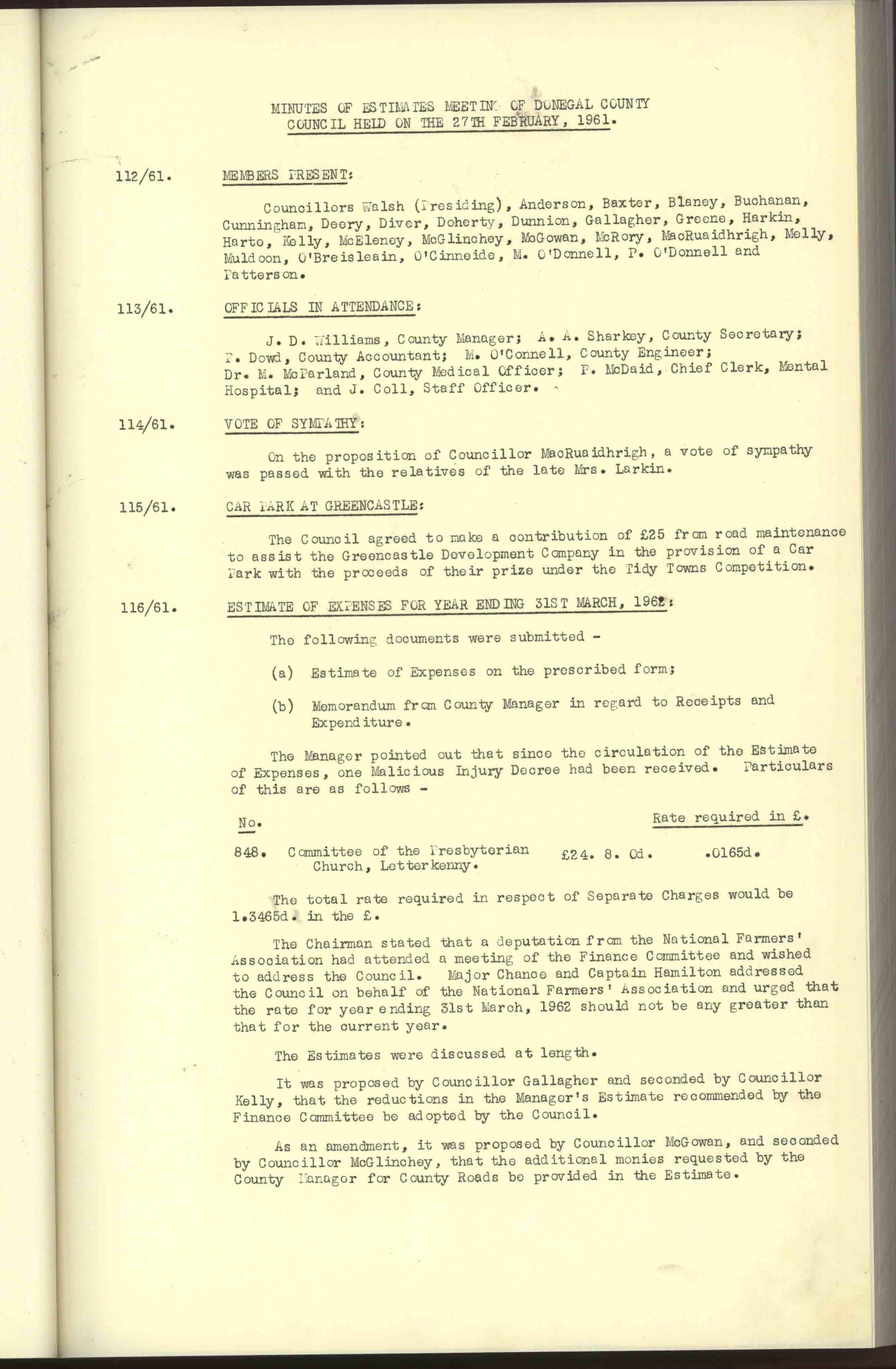 Donegal County Council Minutes, 1961