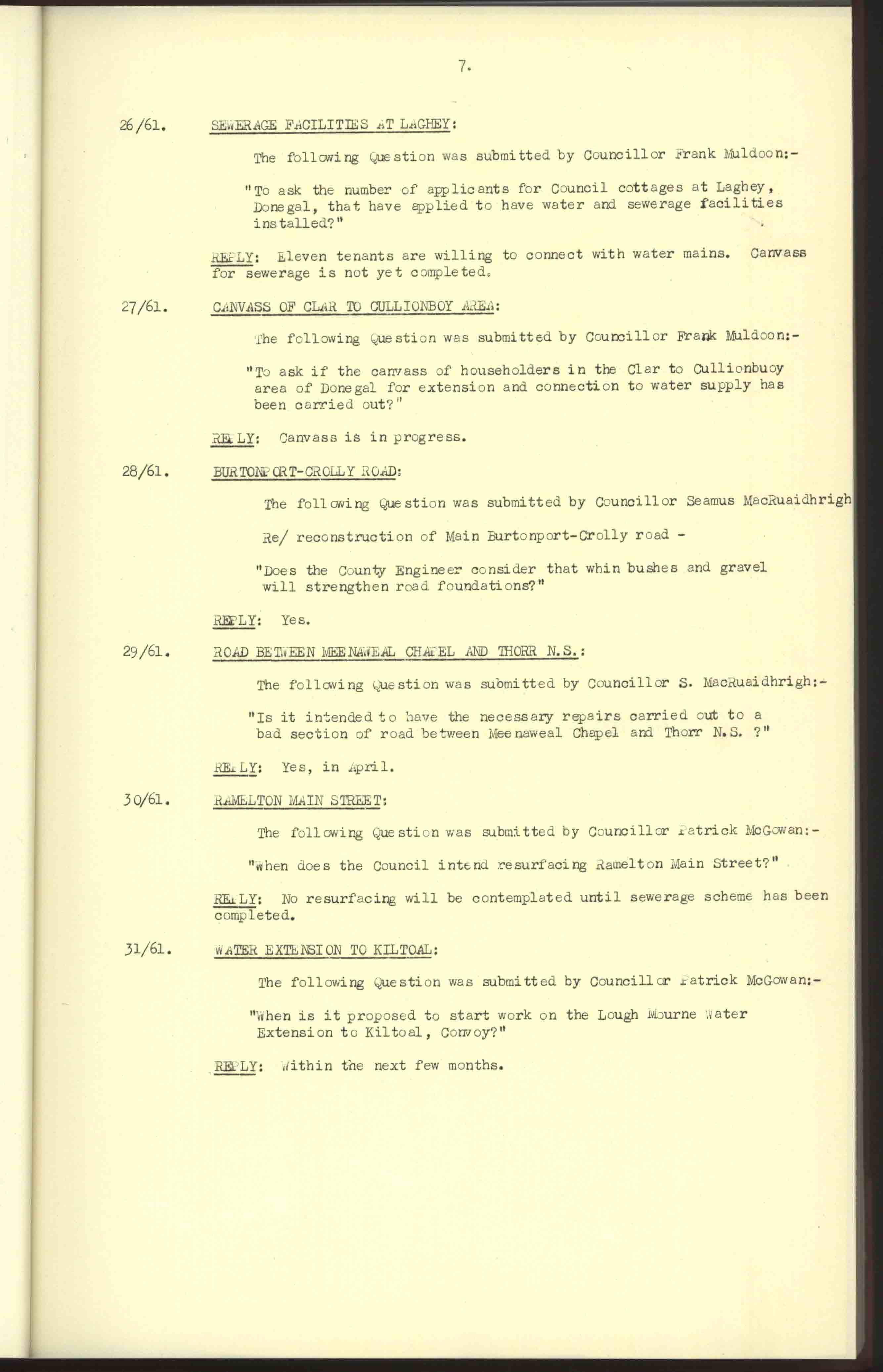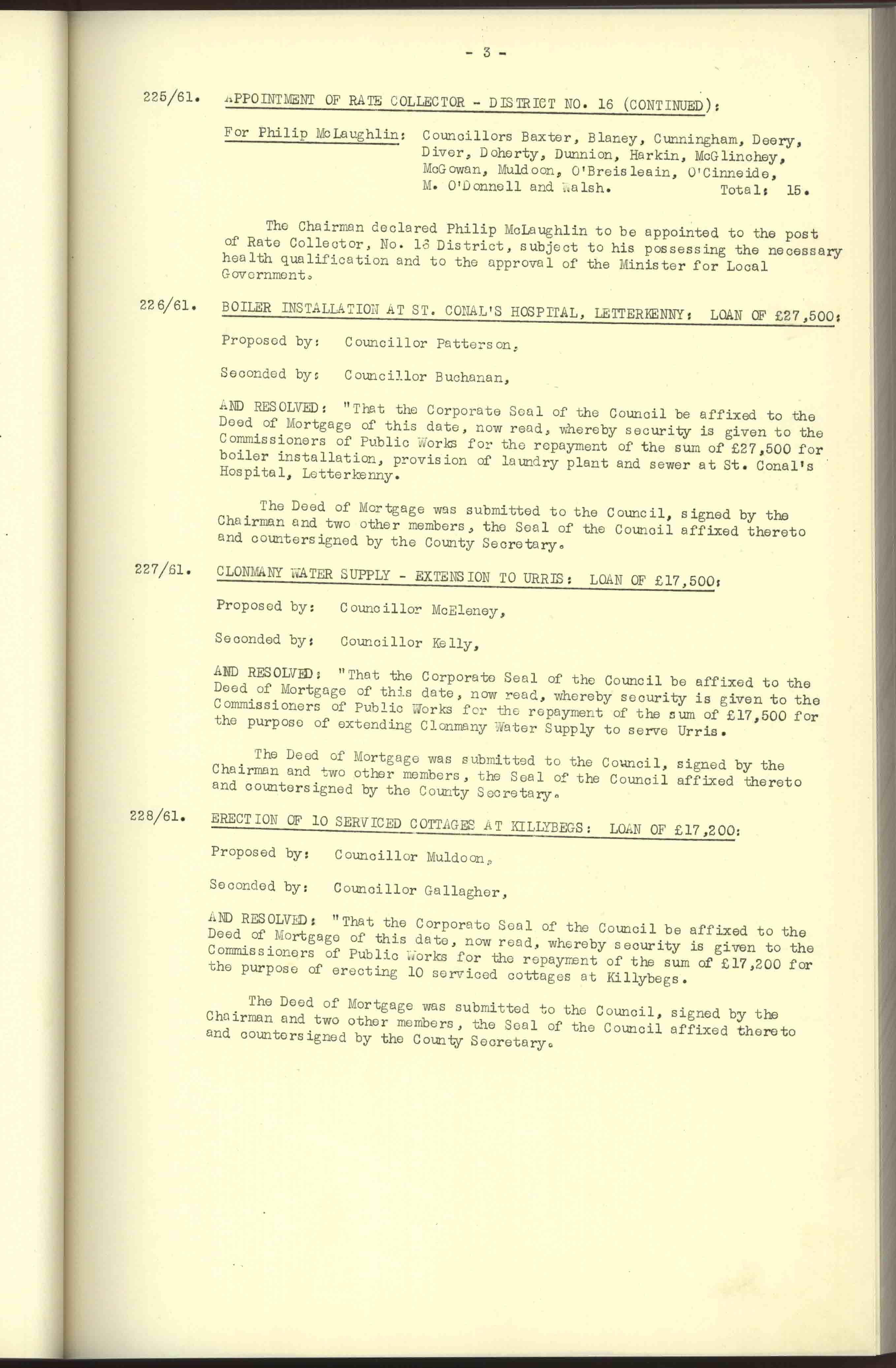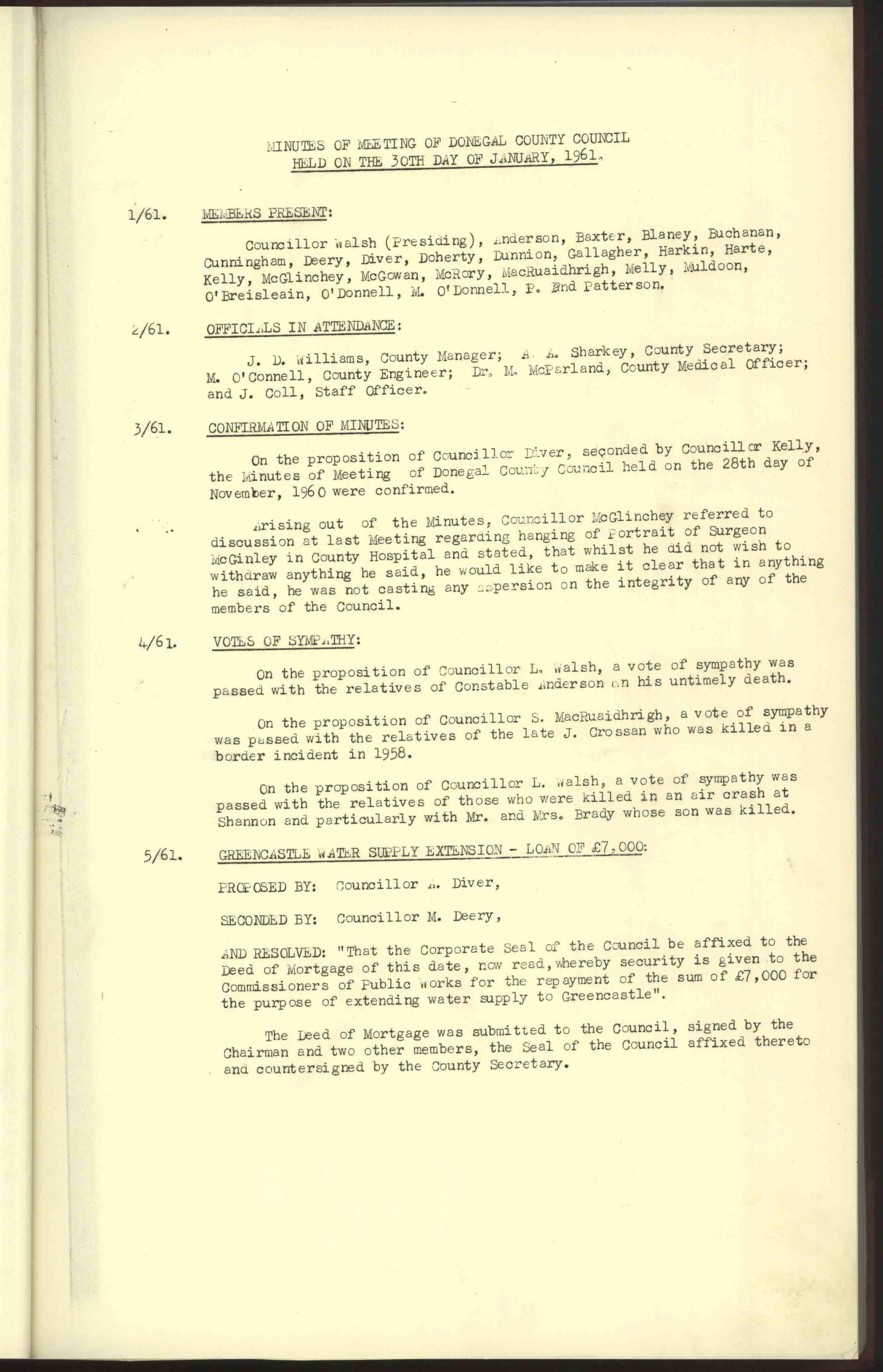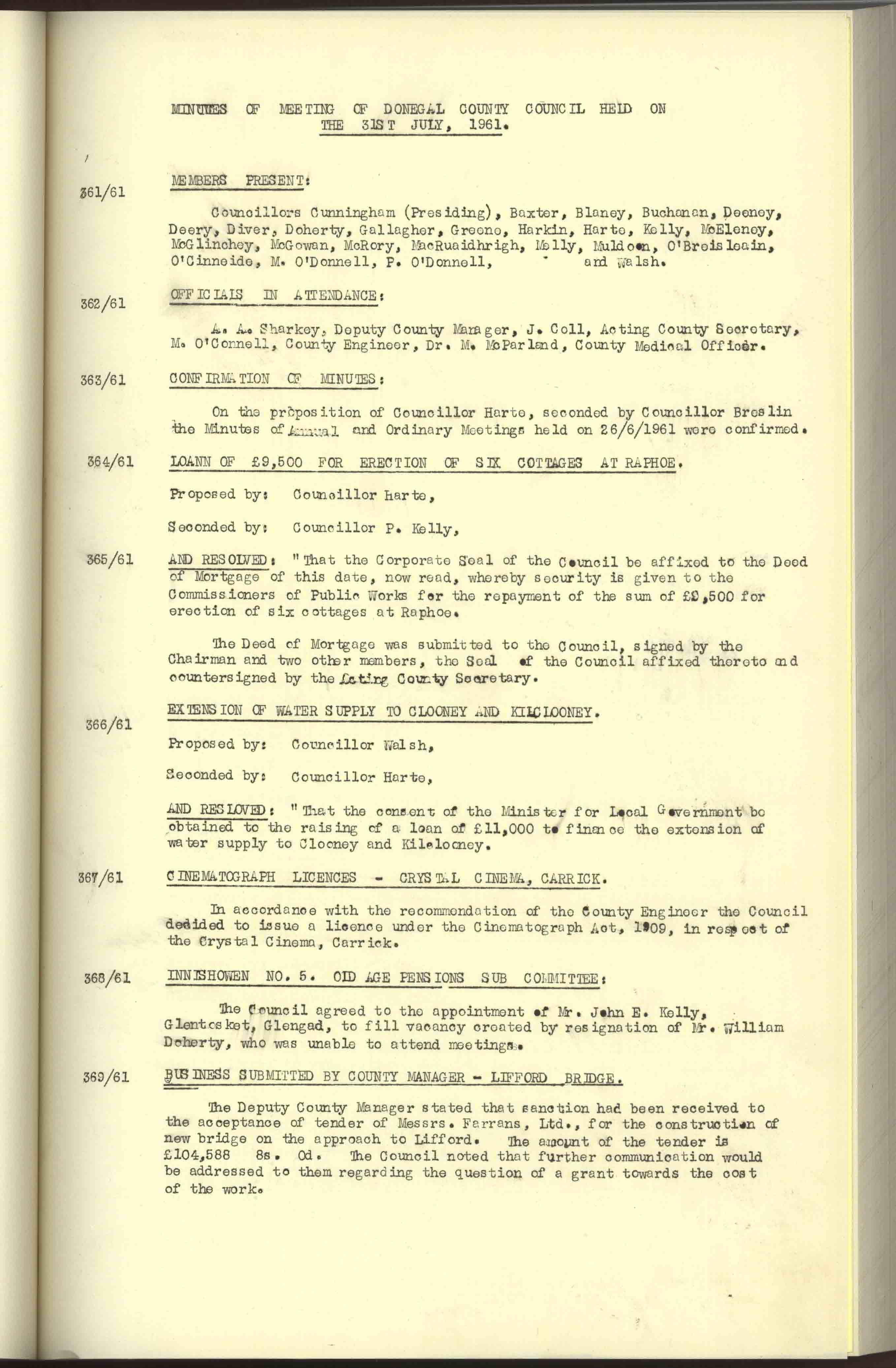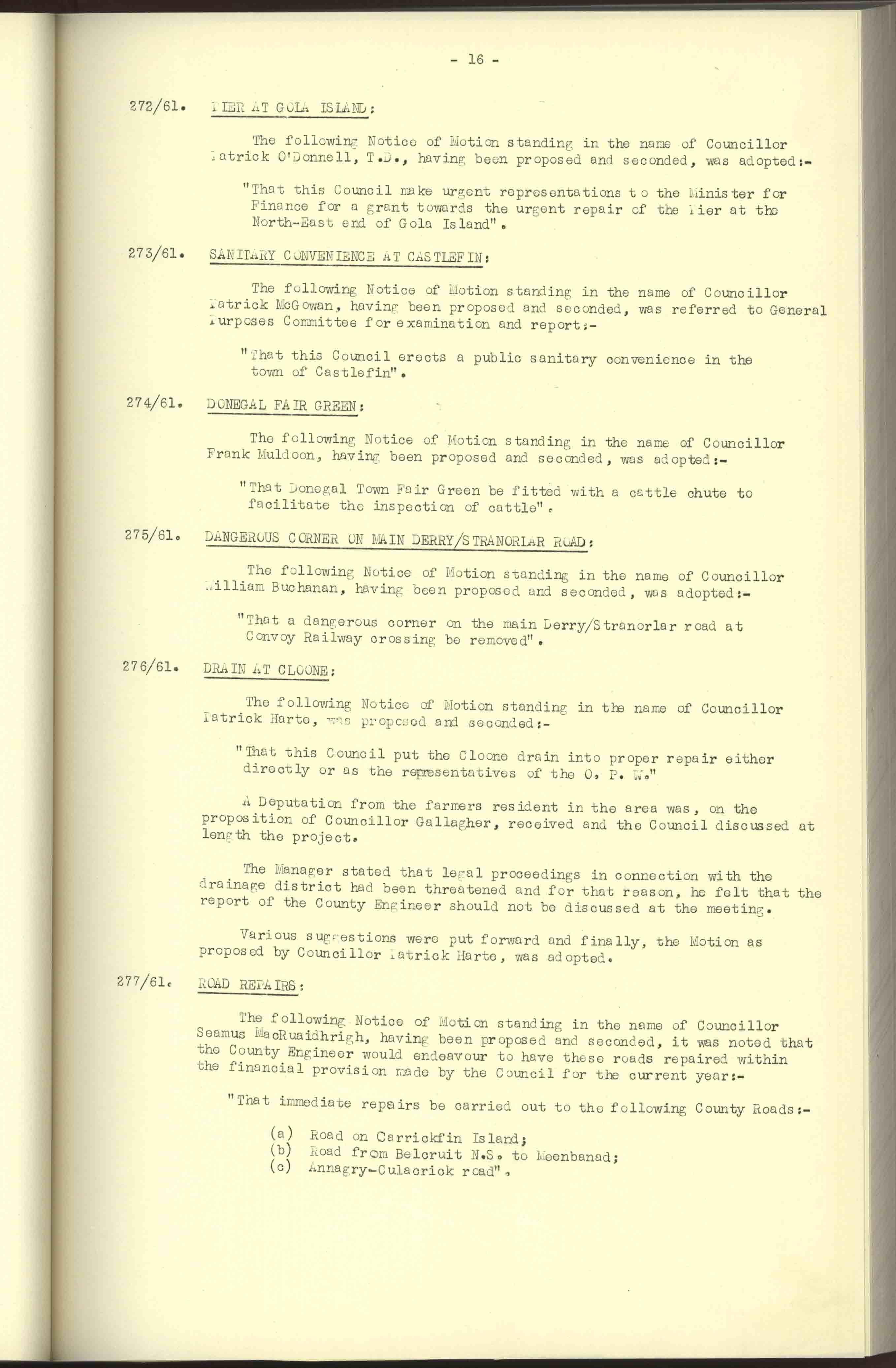 Donegal County Council Minutes, 1961