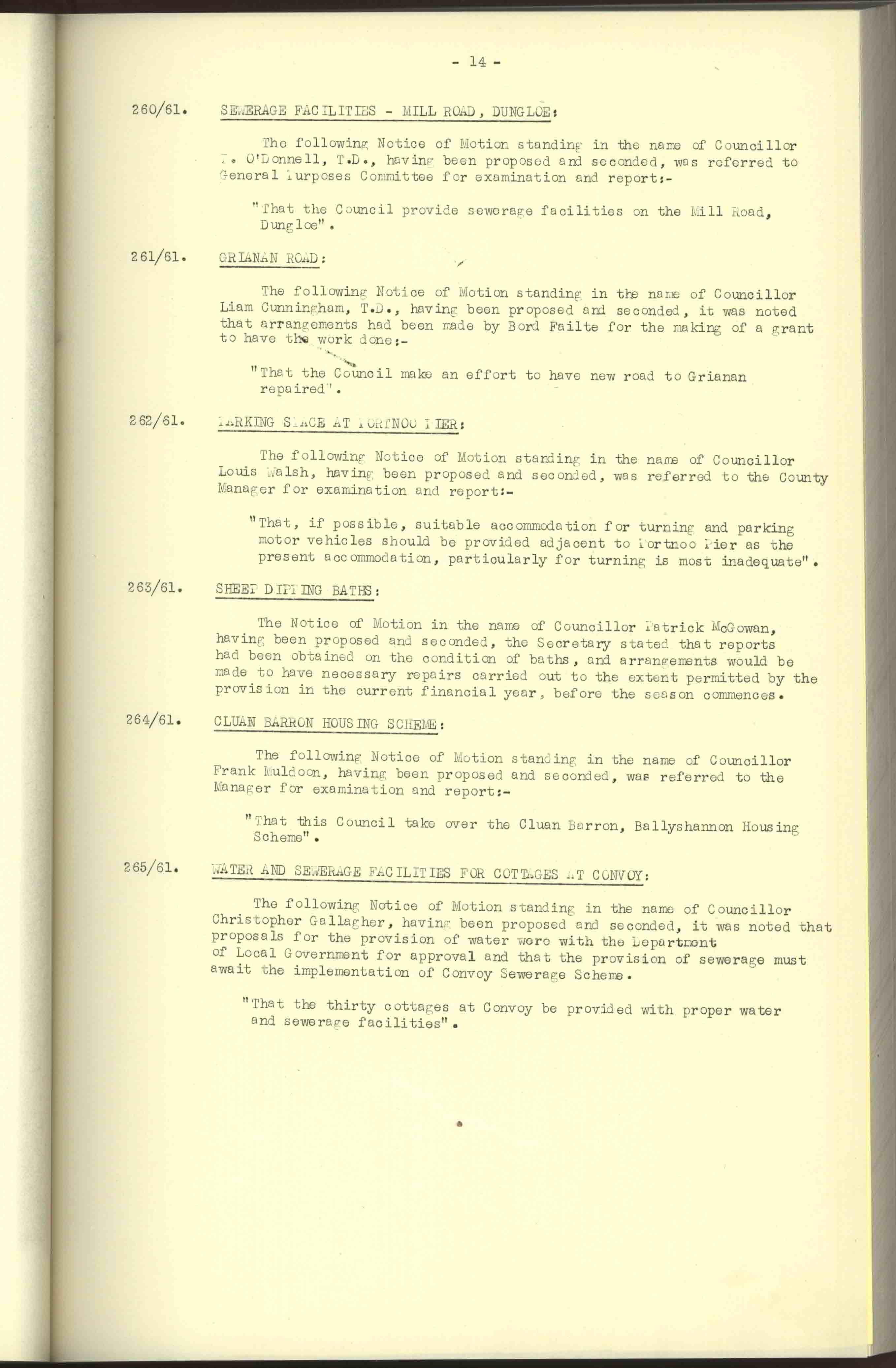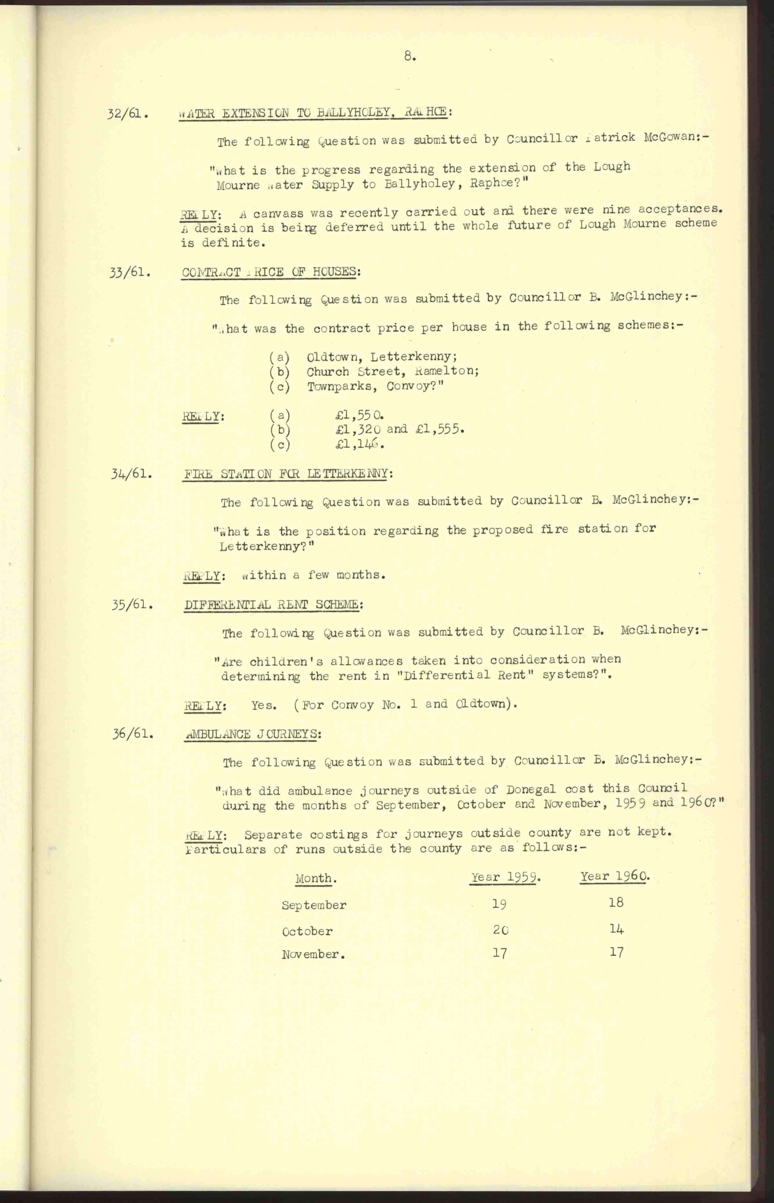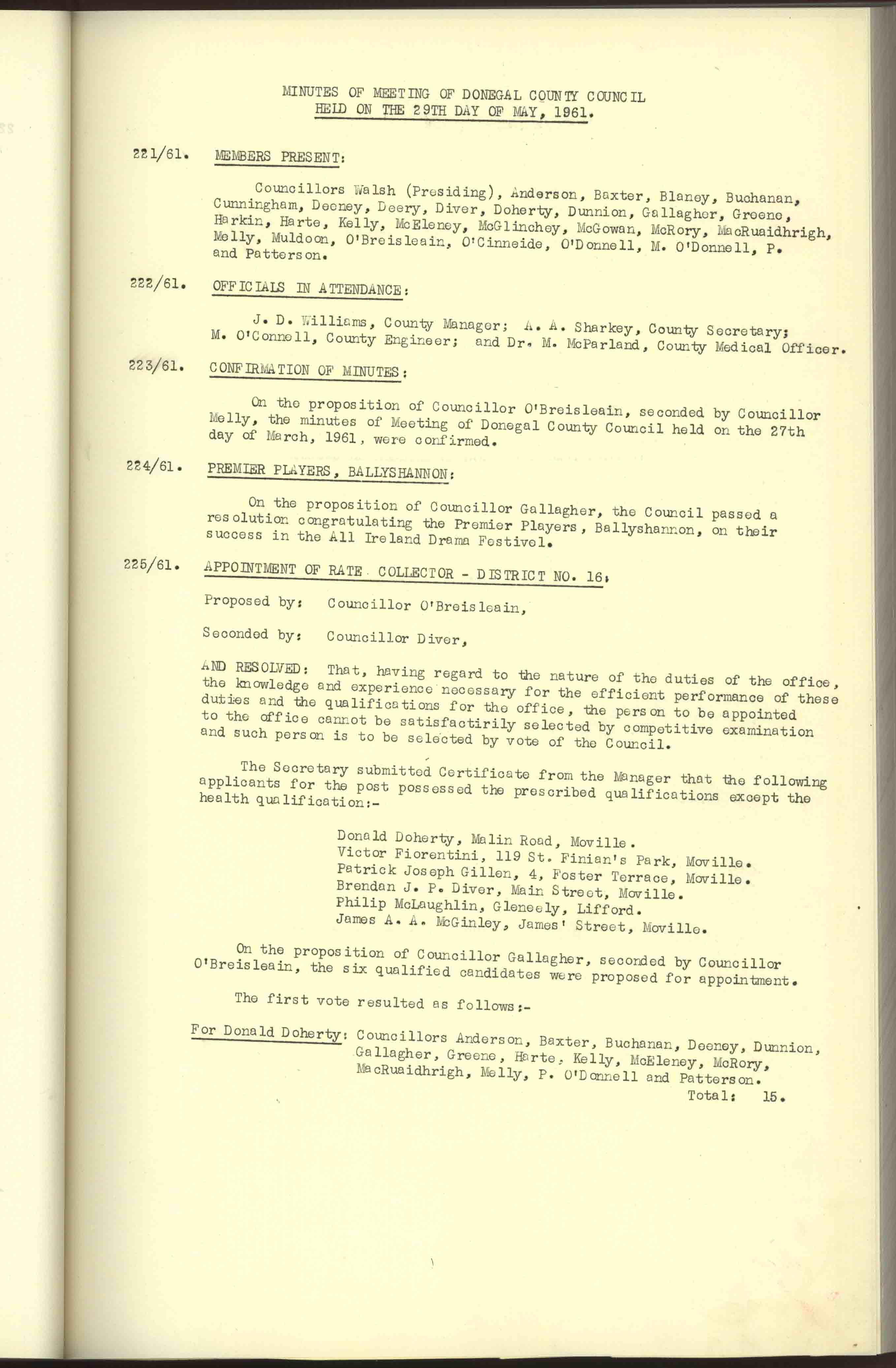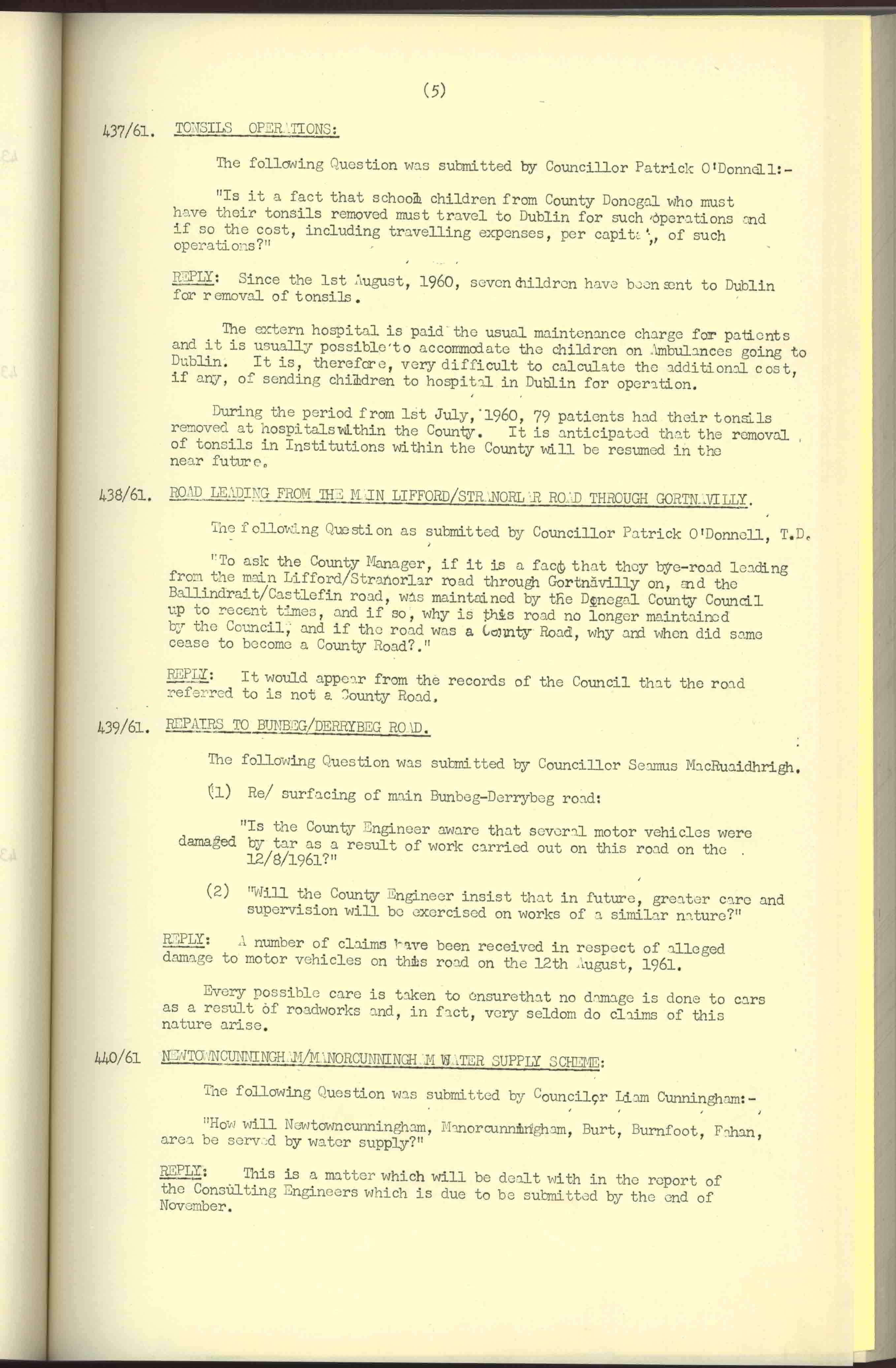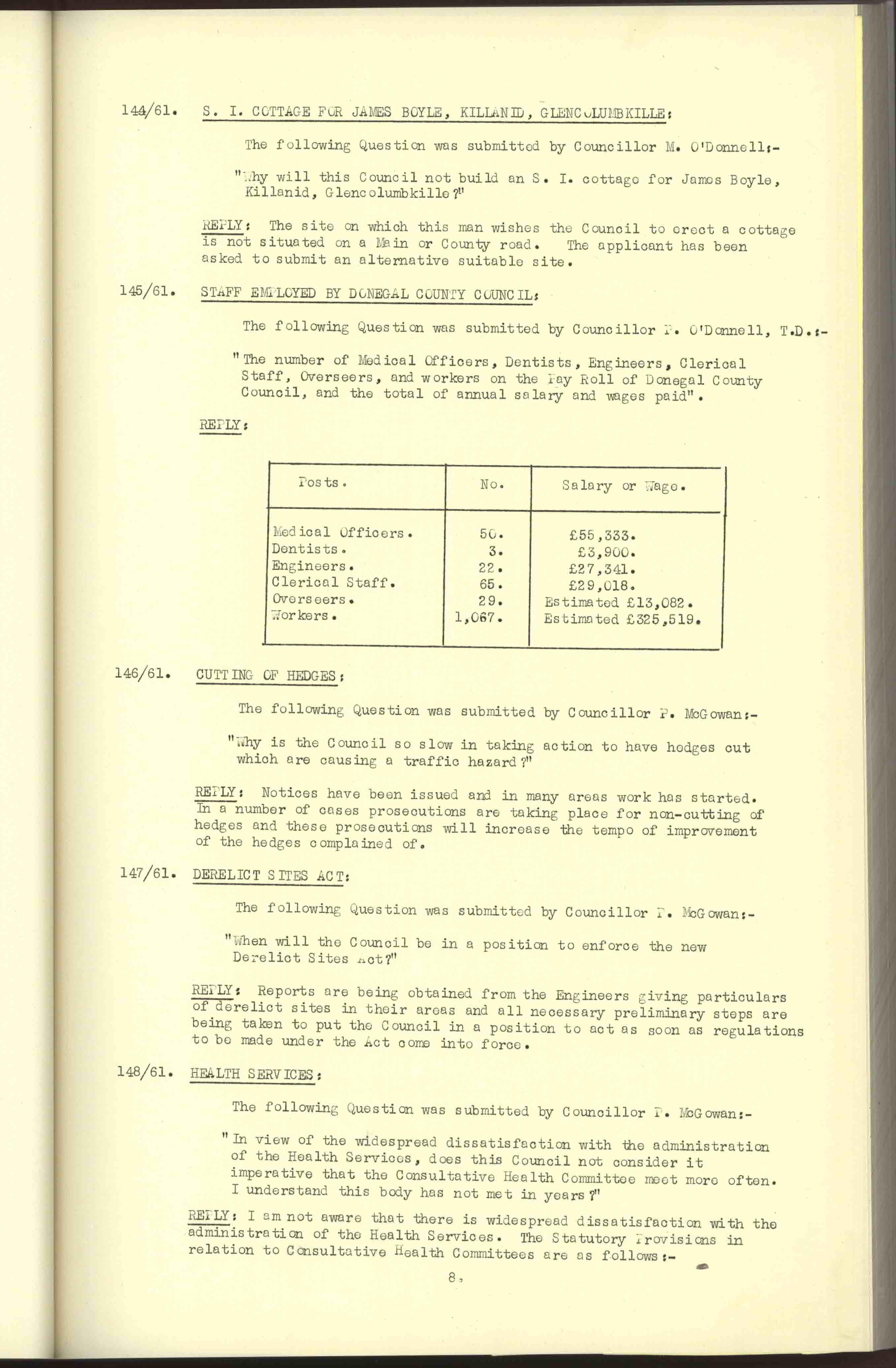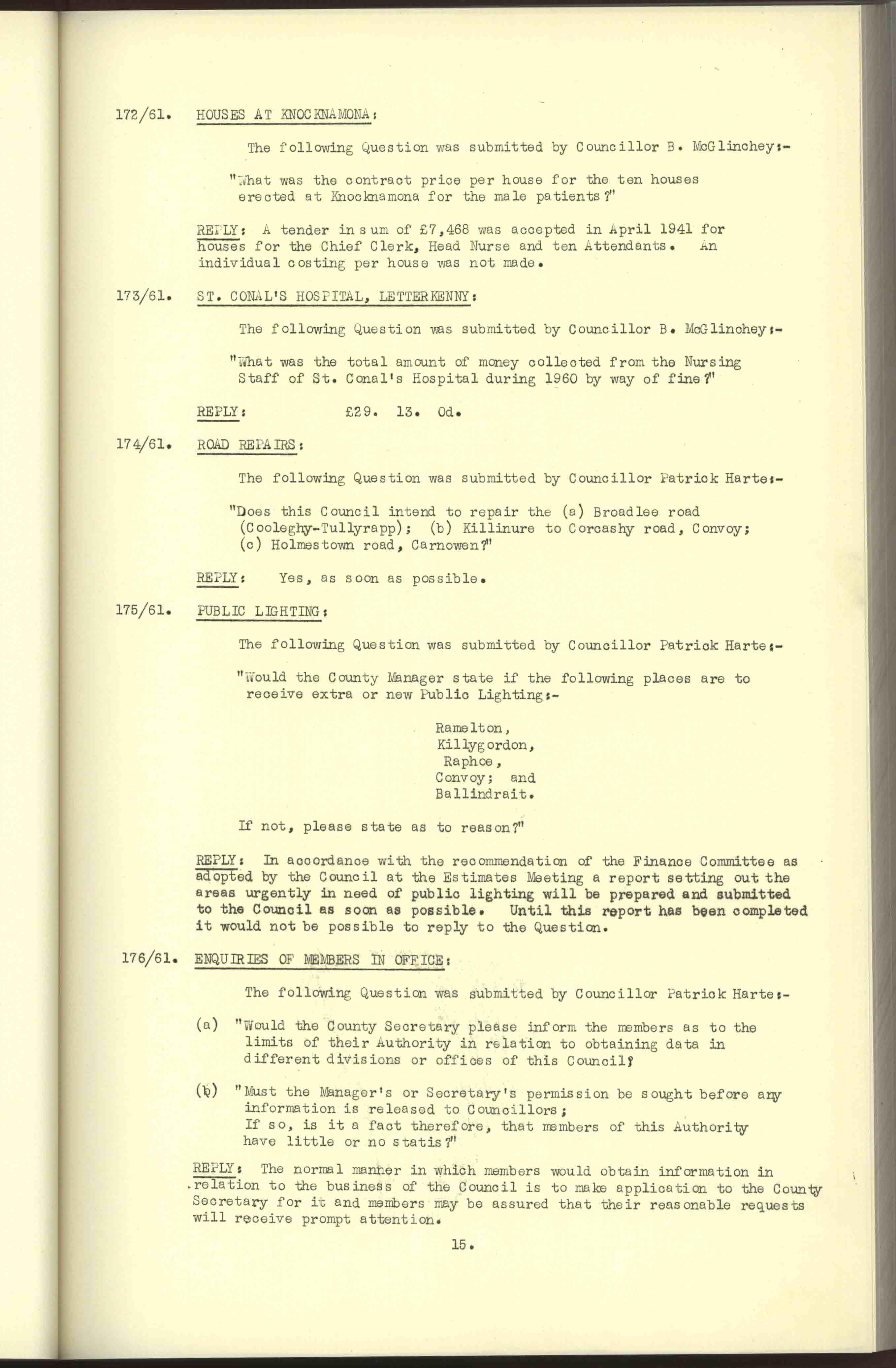 Donegal County Council Minutes, 1961