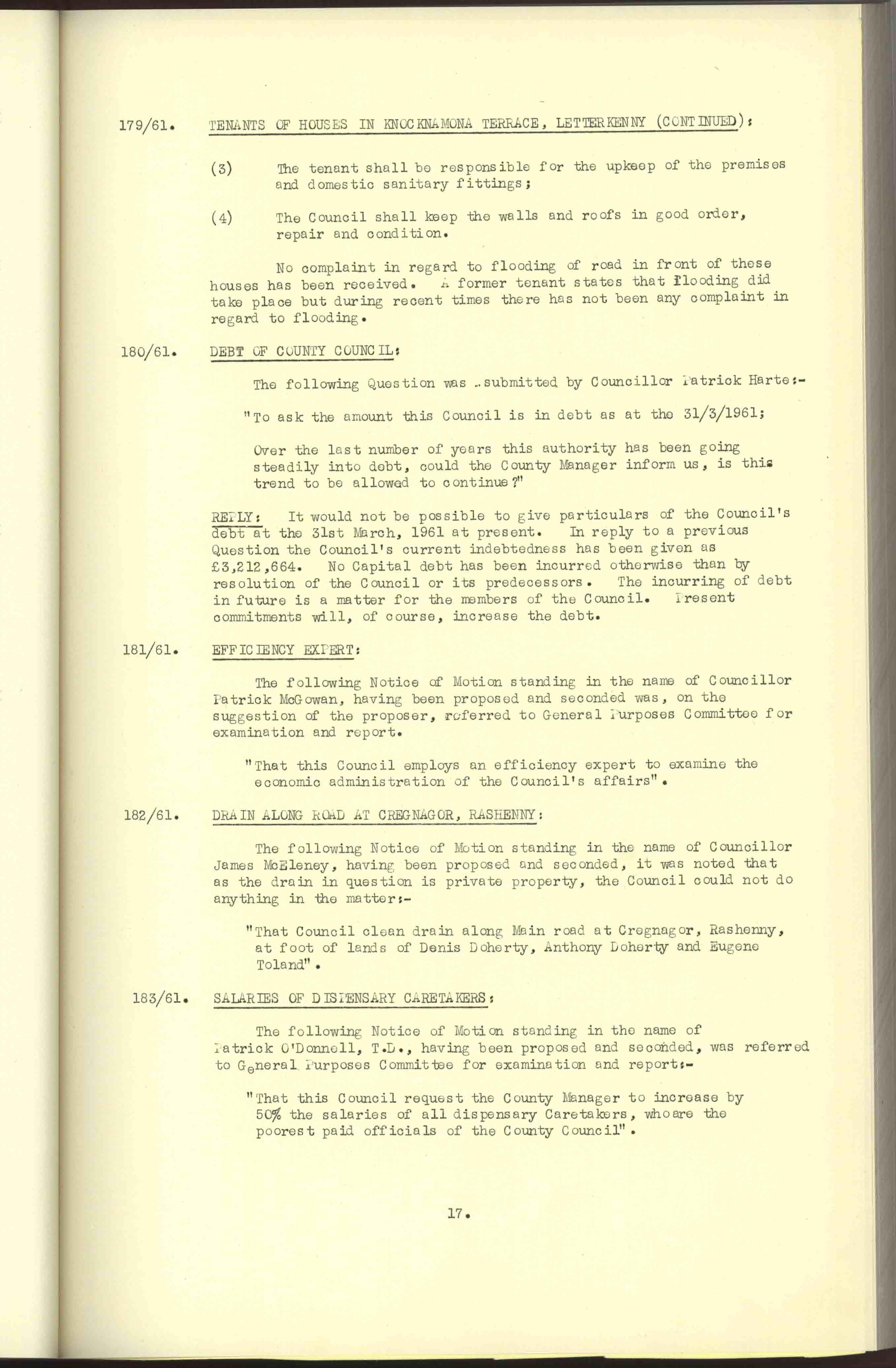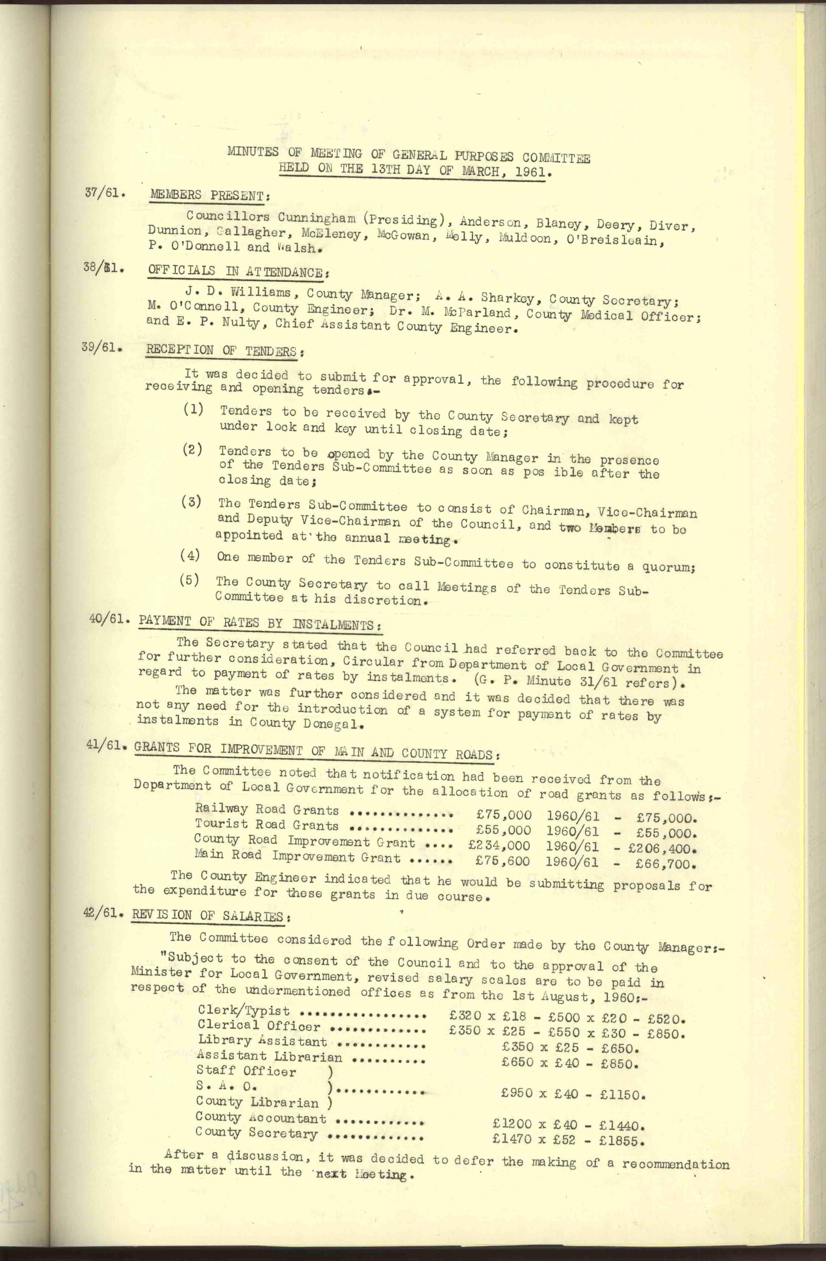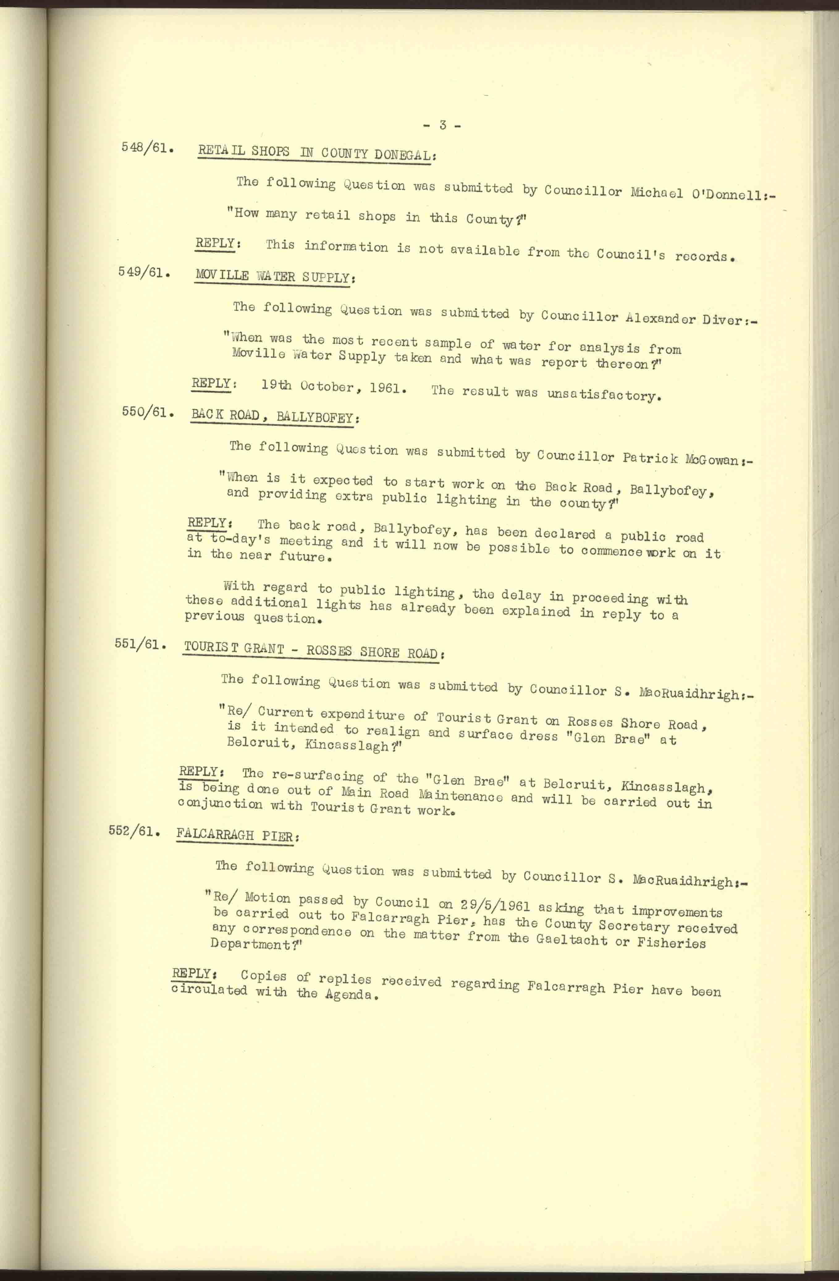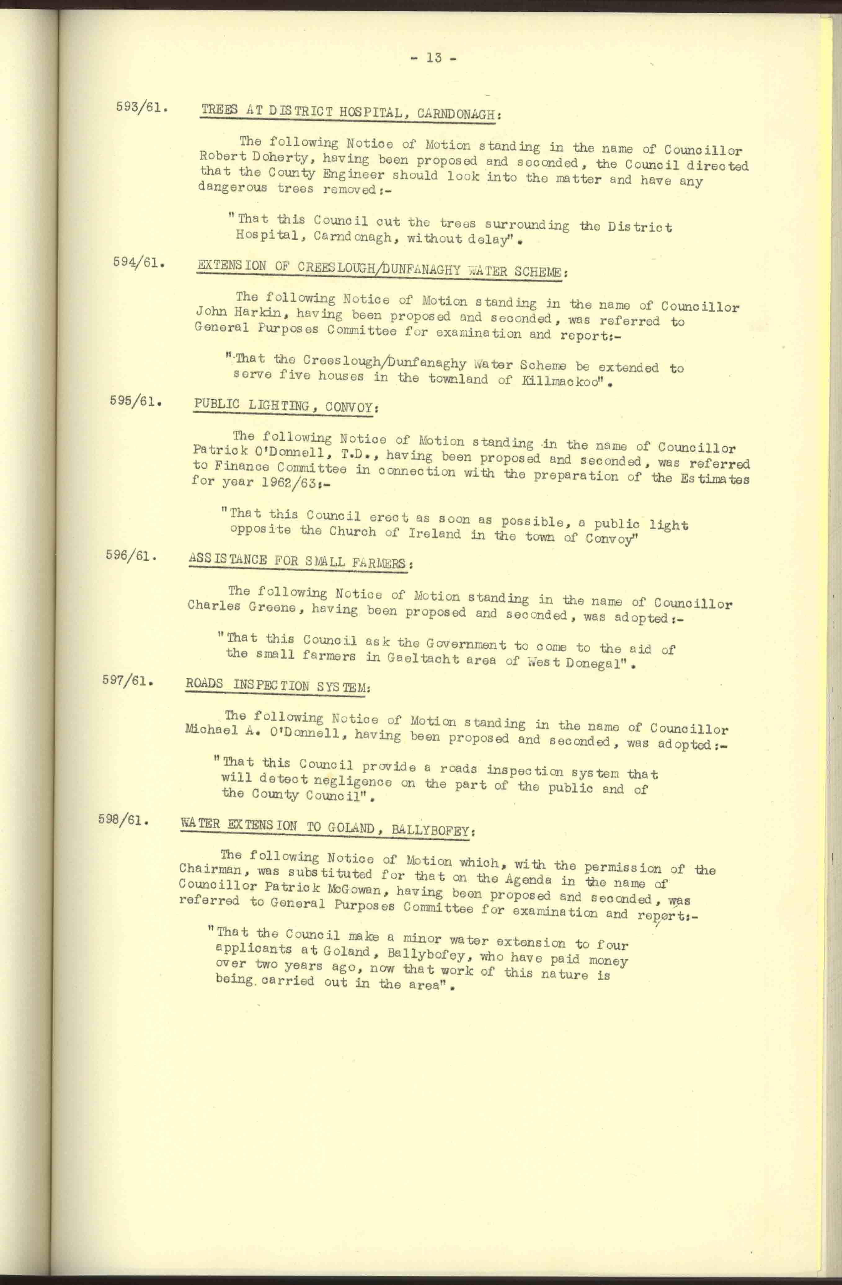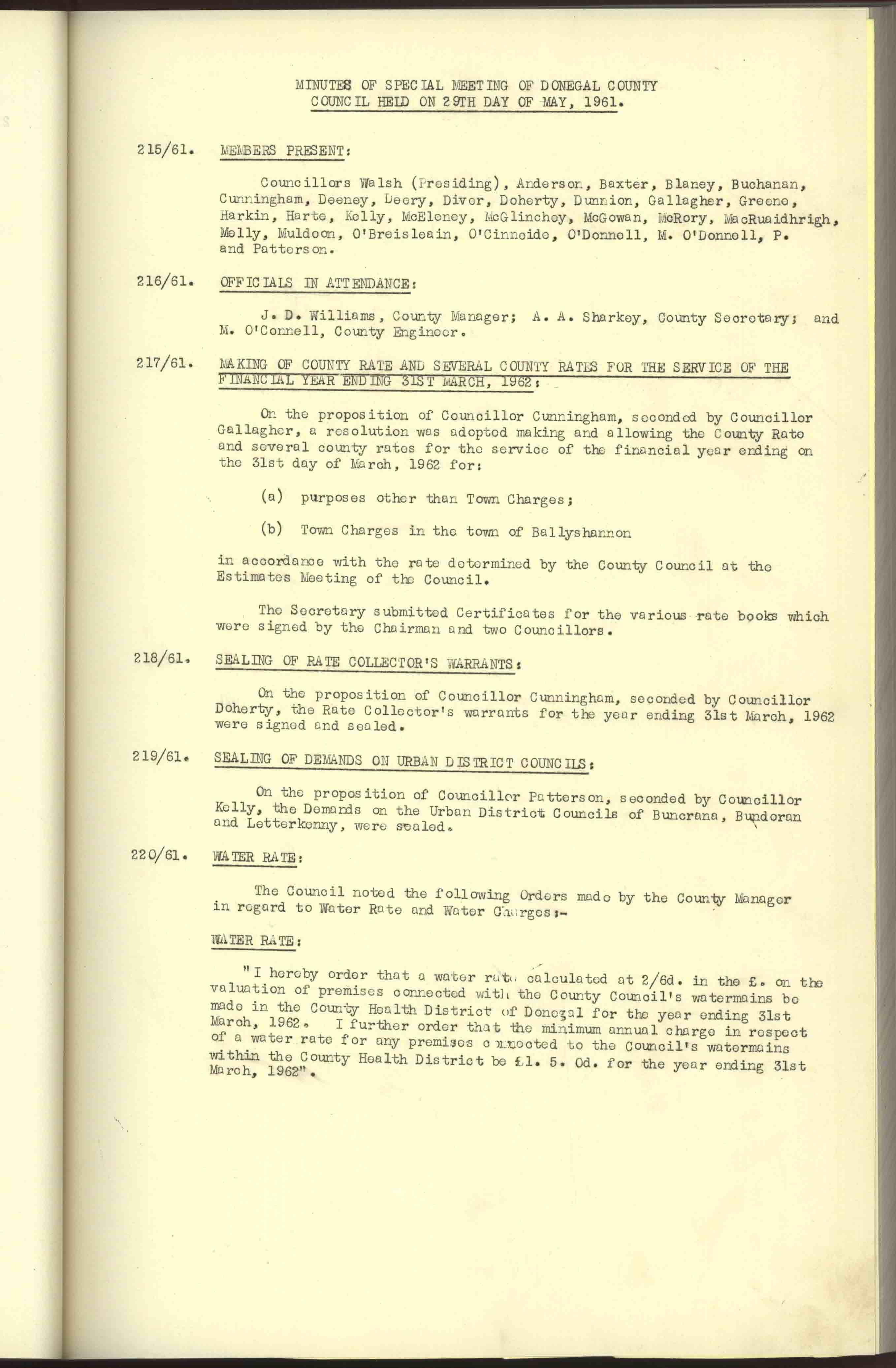 Donegal County Council Minutes, 1961