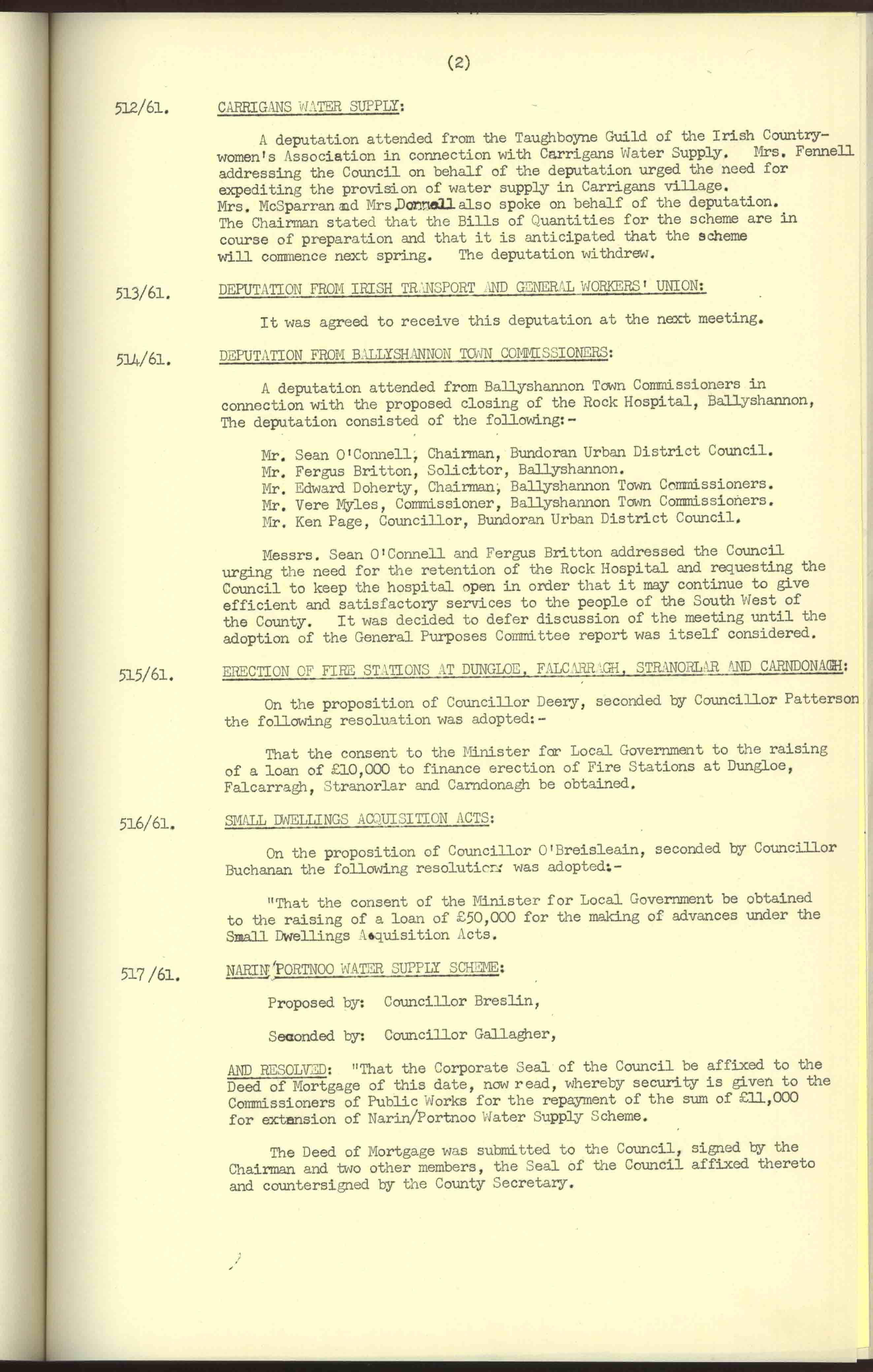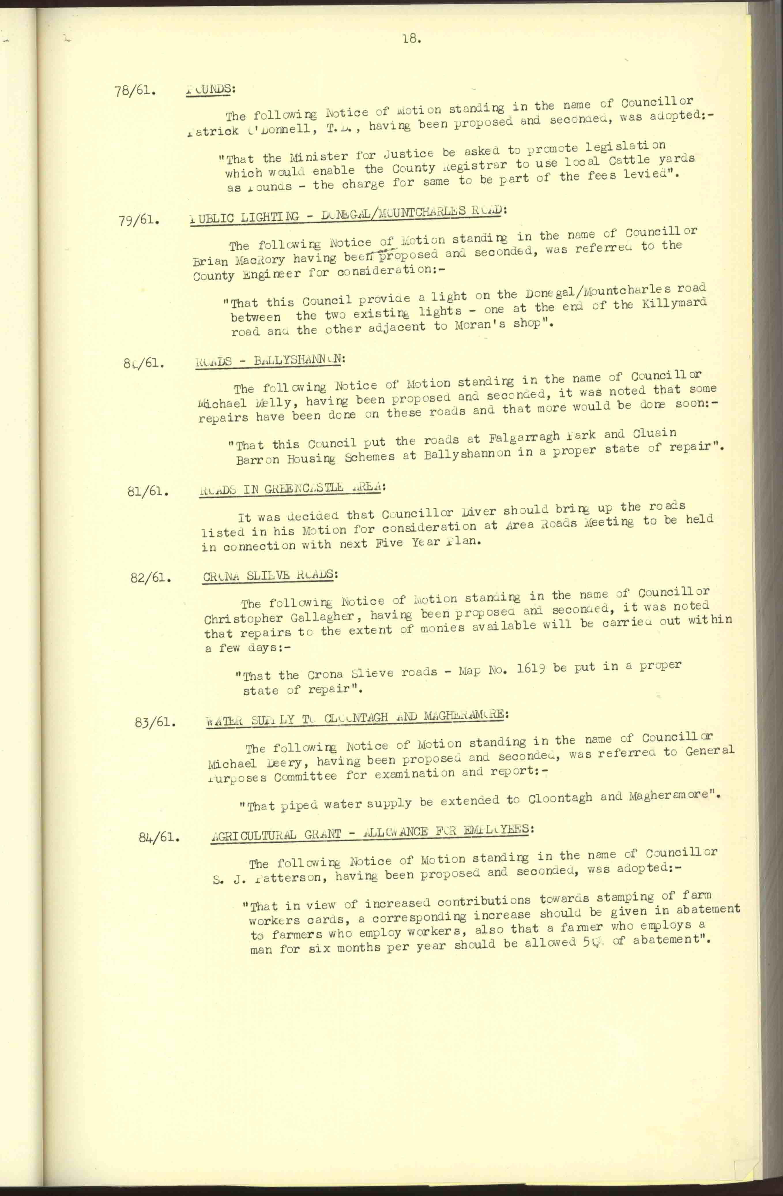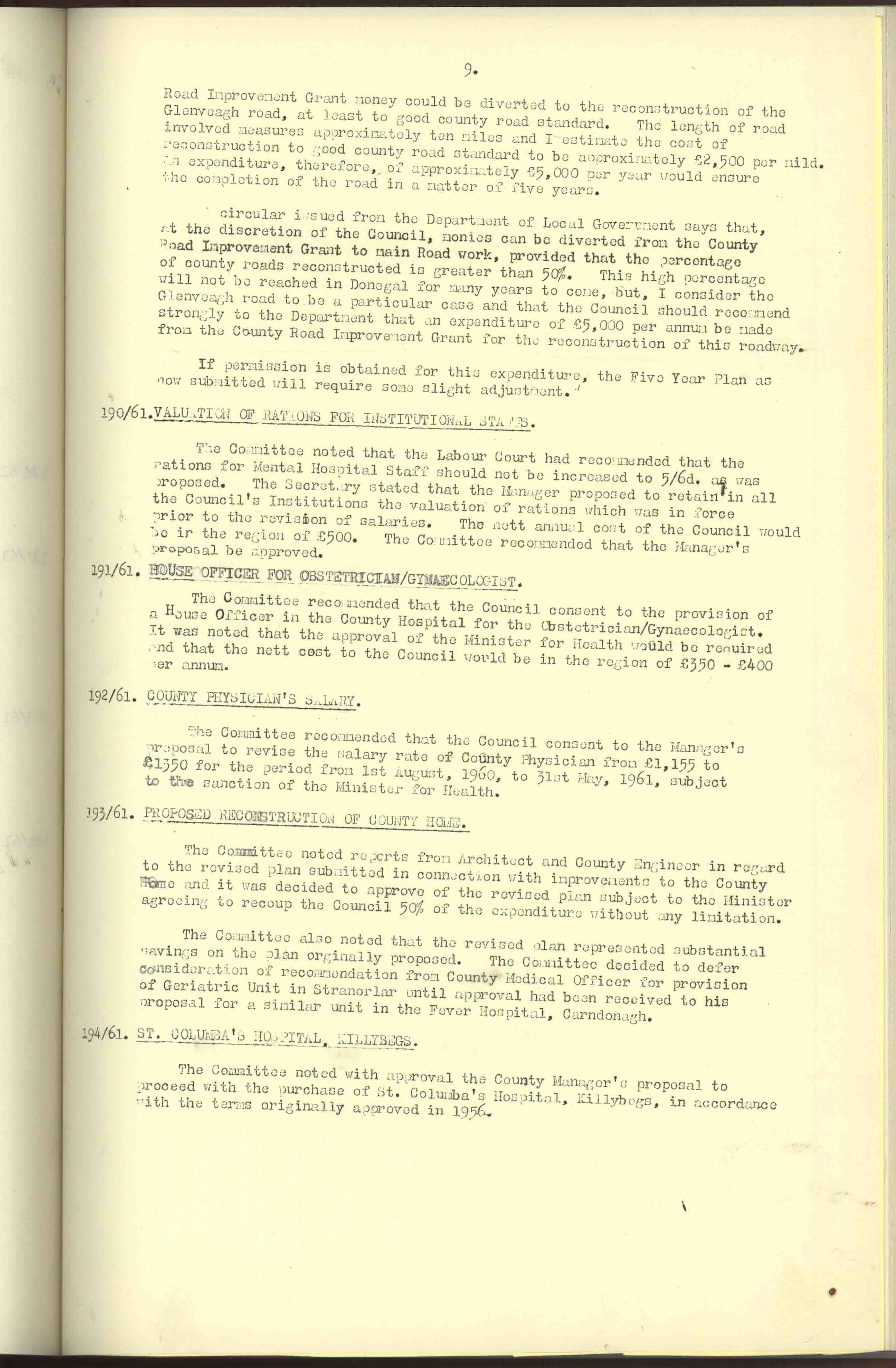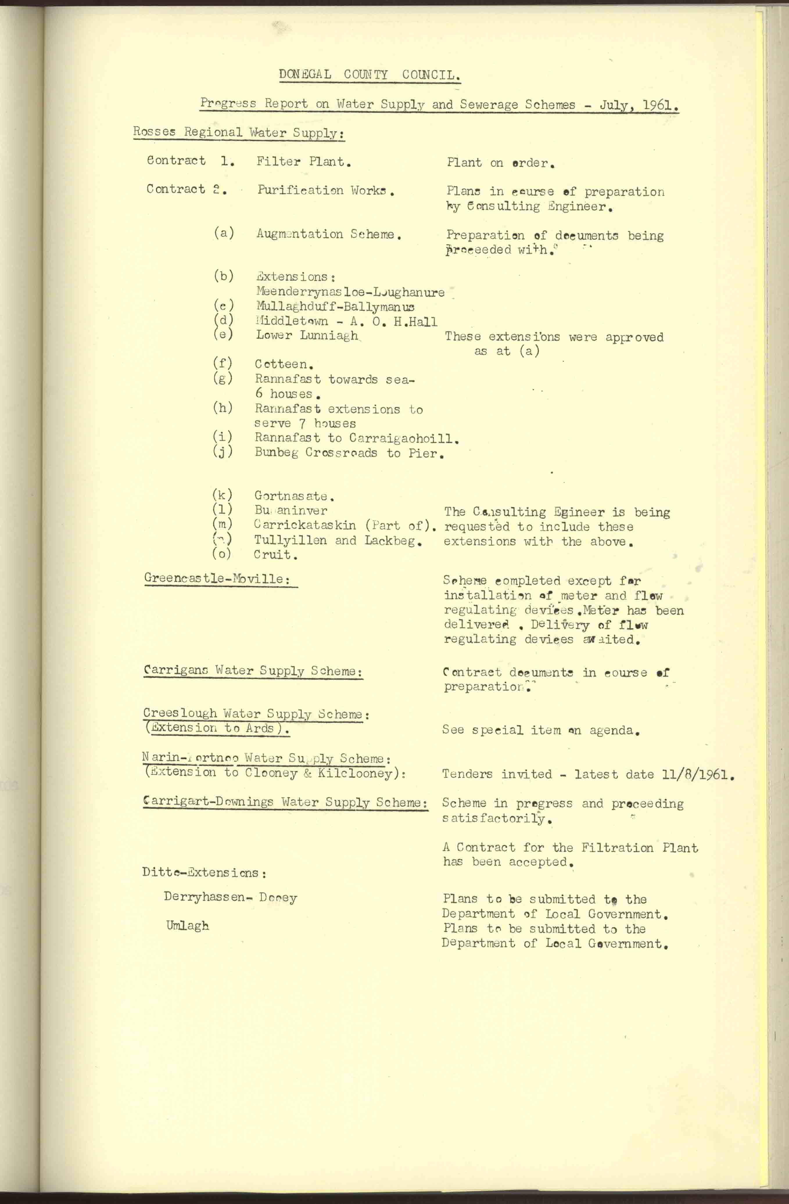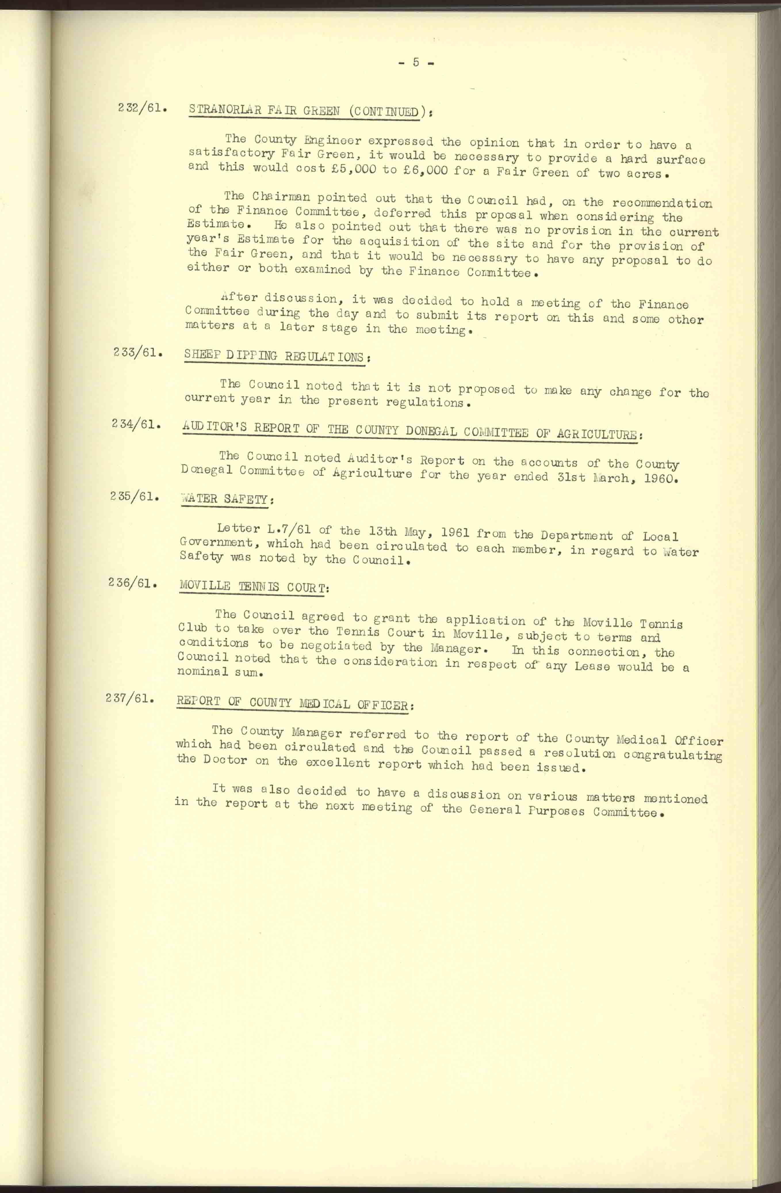 Donegal County Council Minutes, 1961