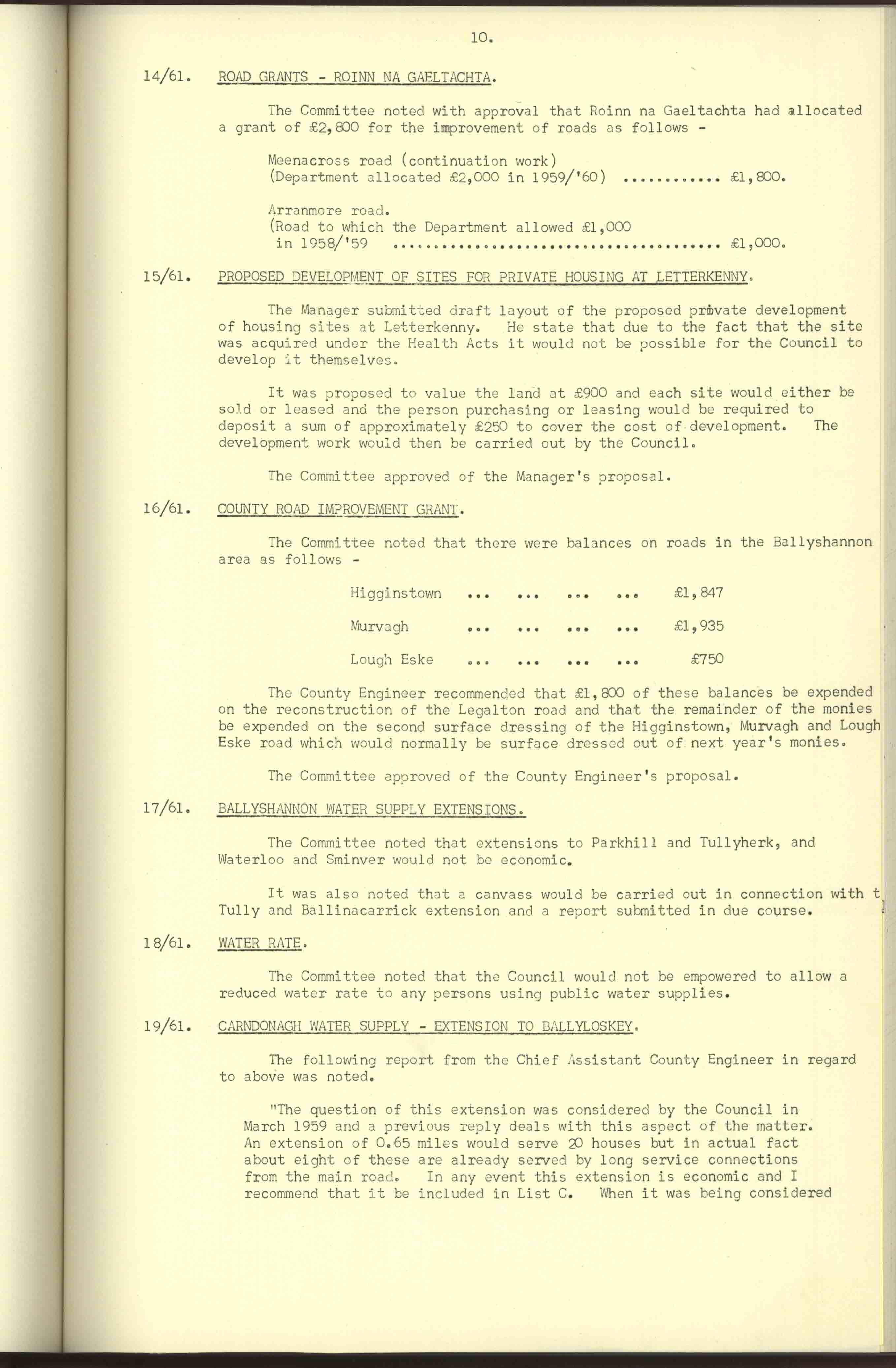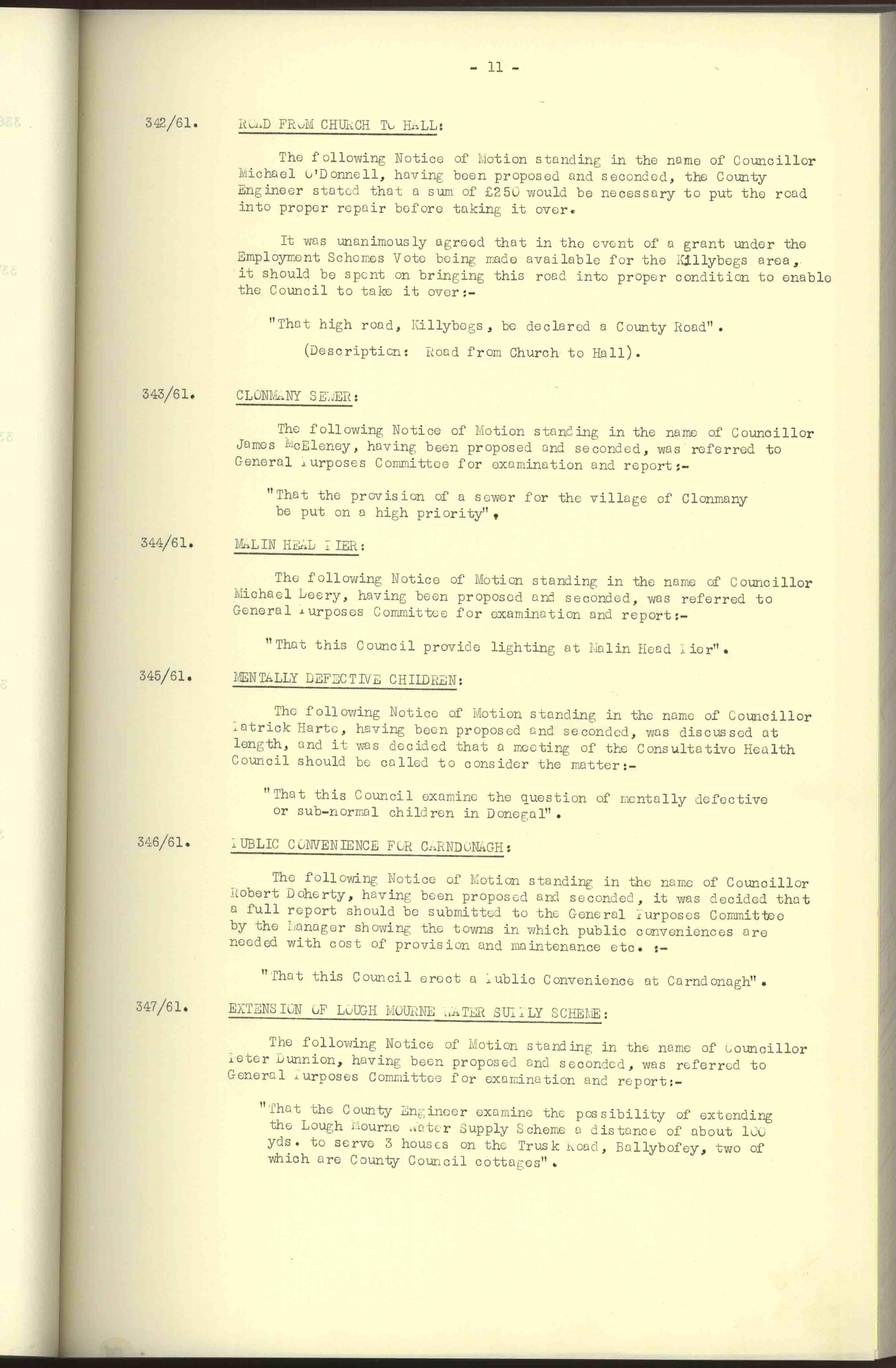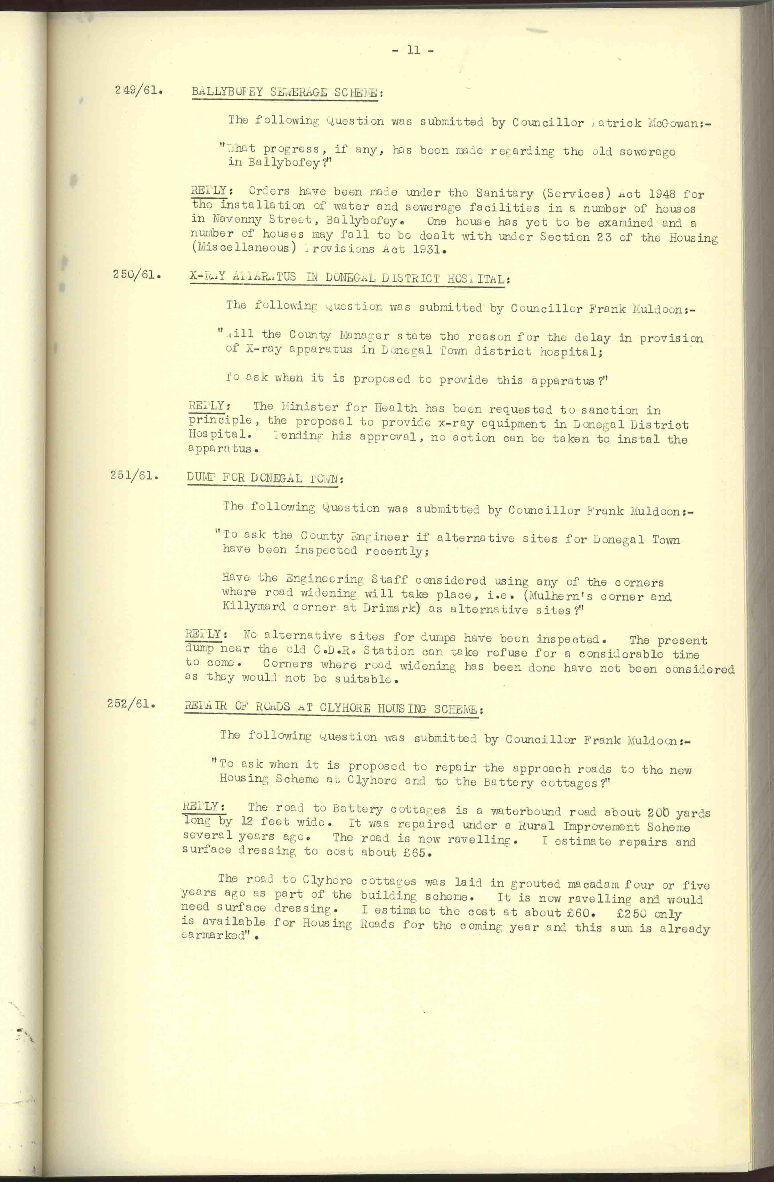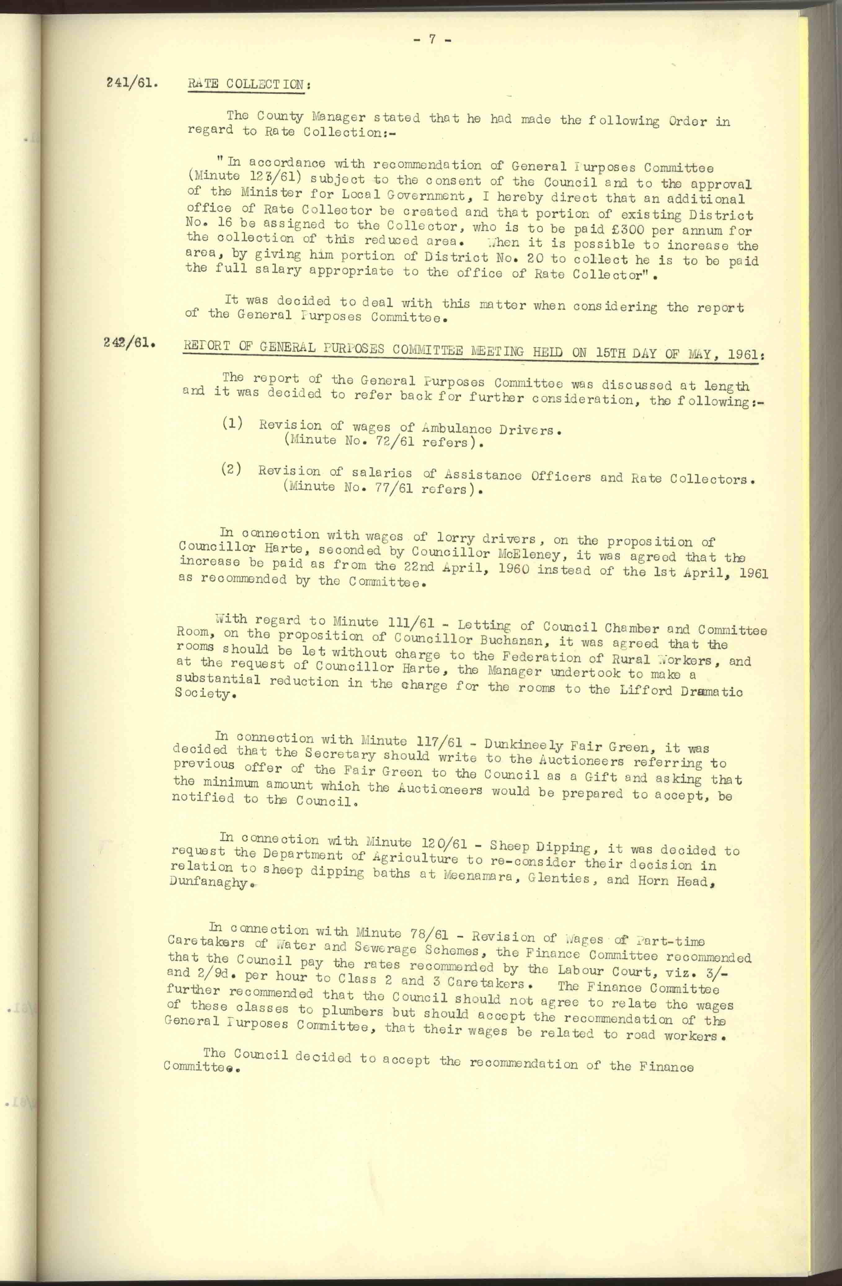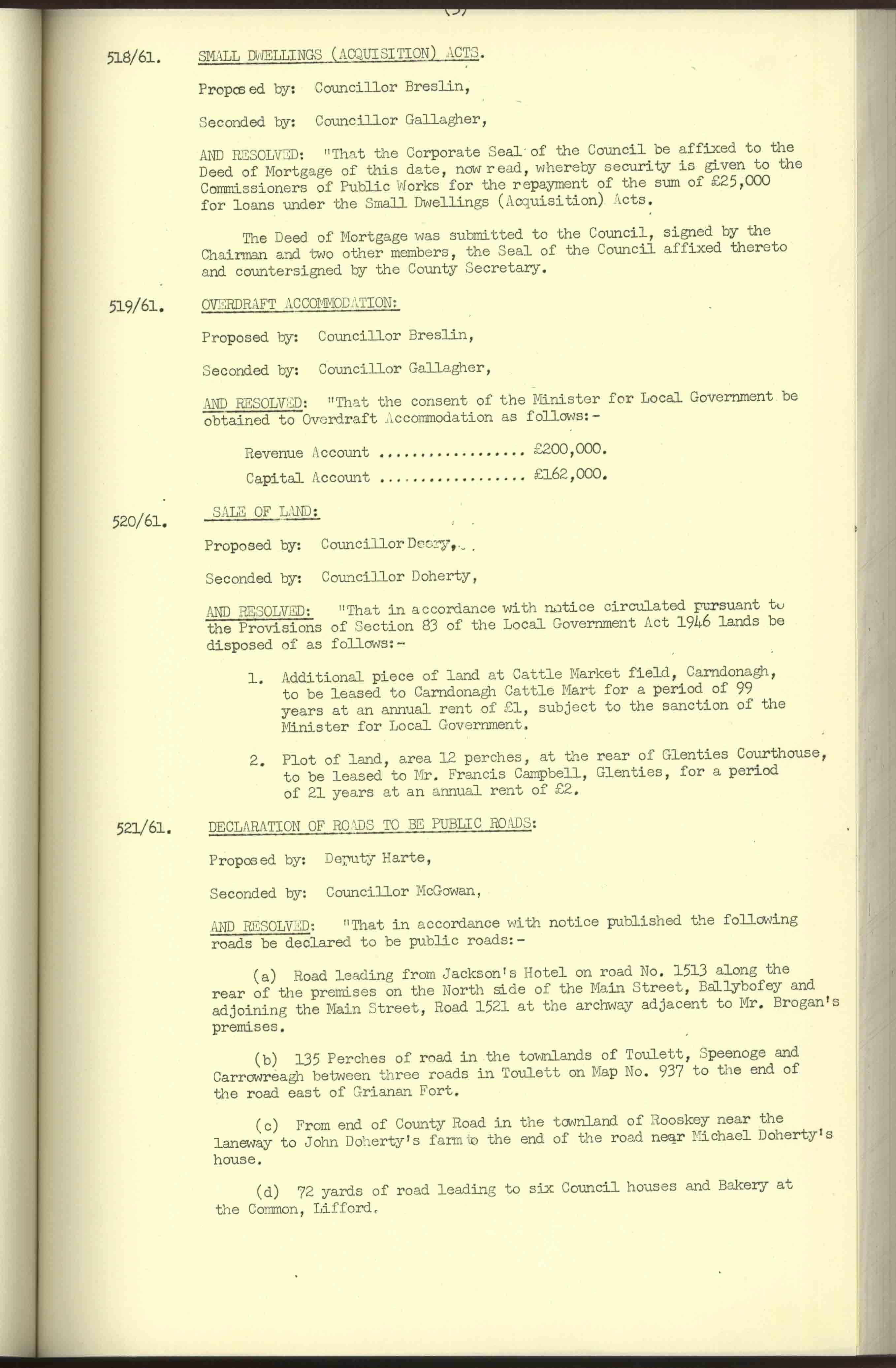 Donegal County Council Minutes, 1961