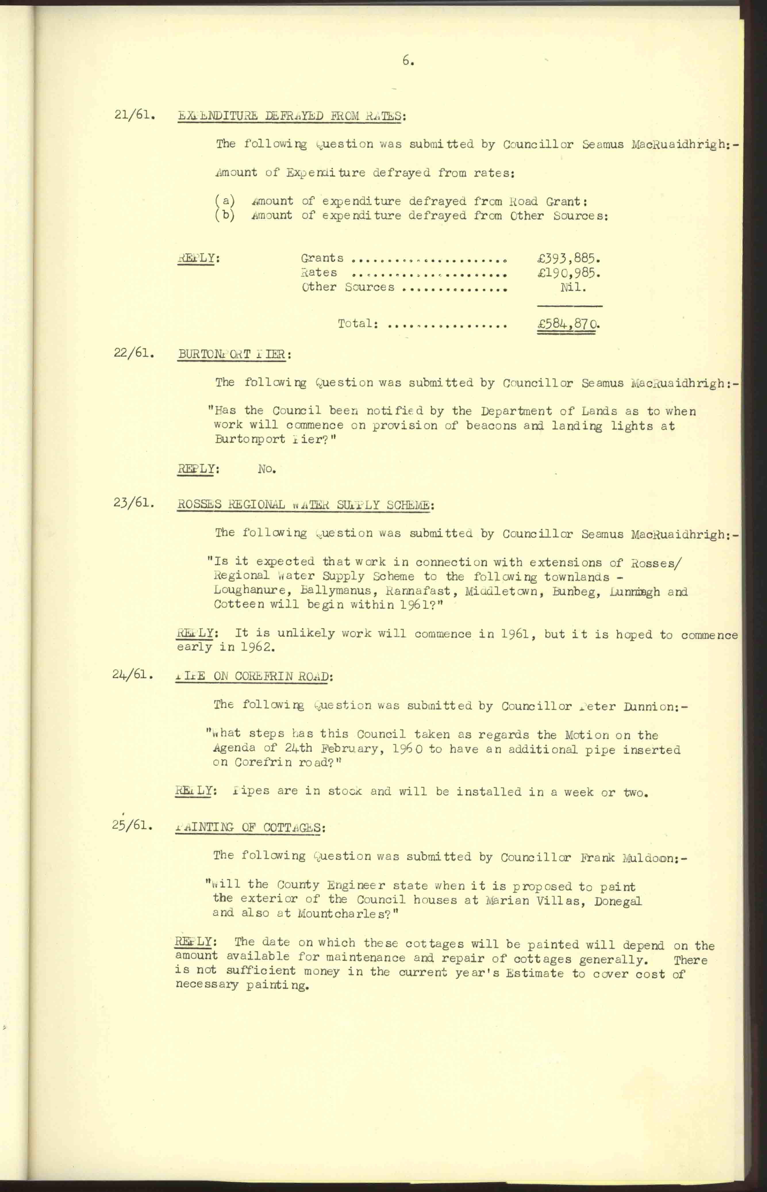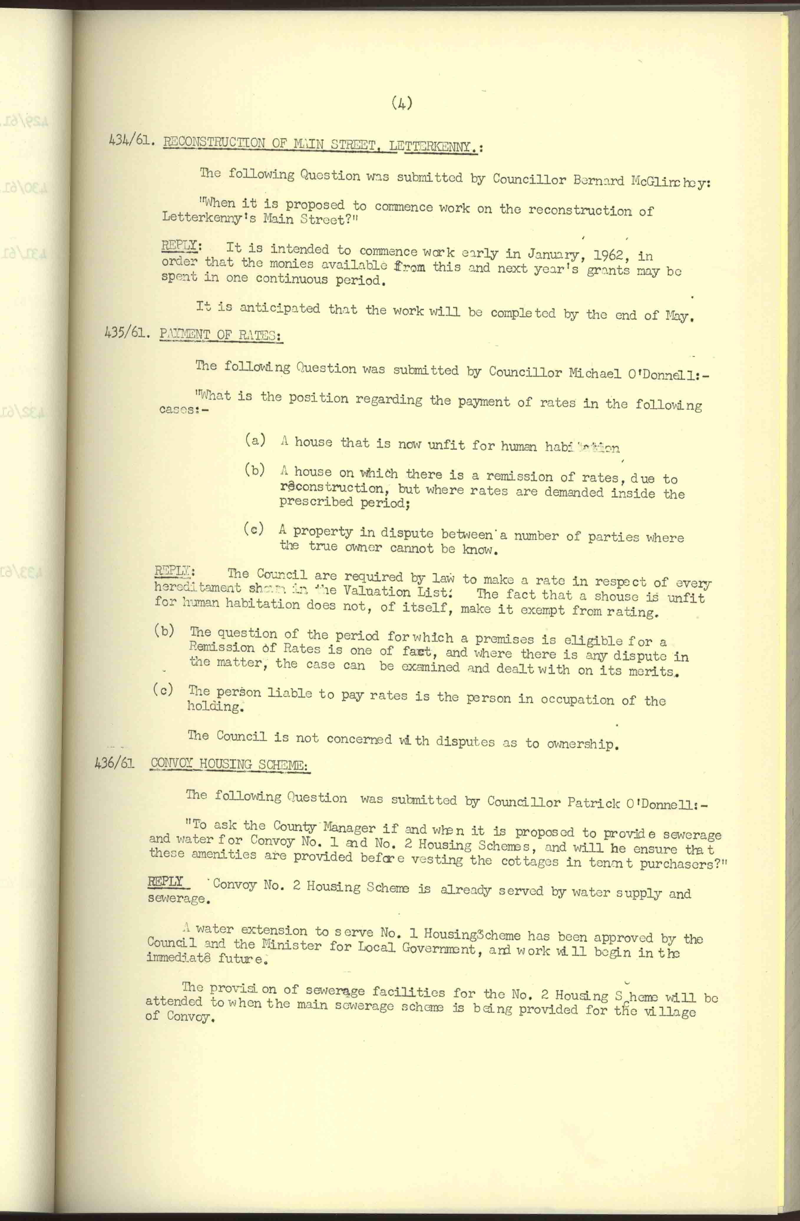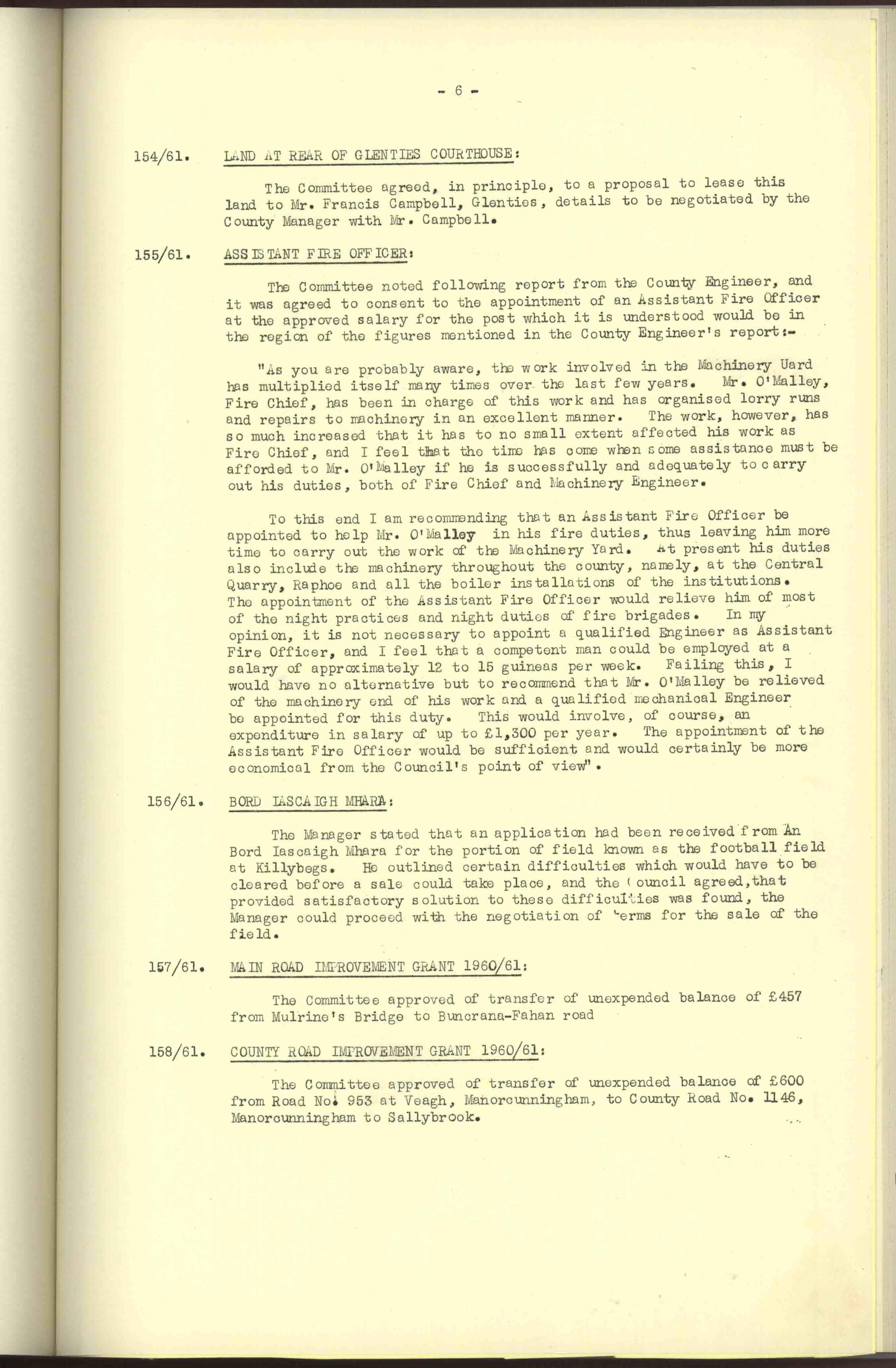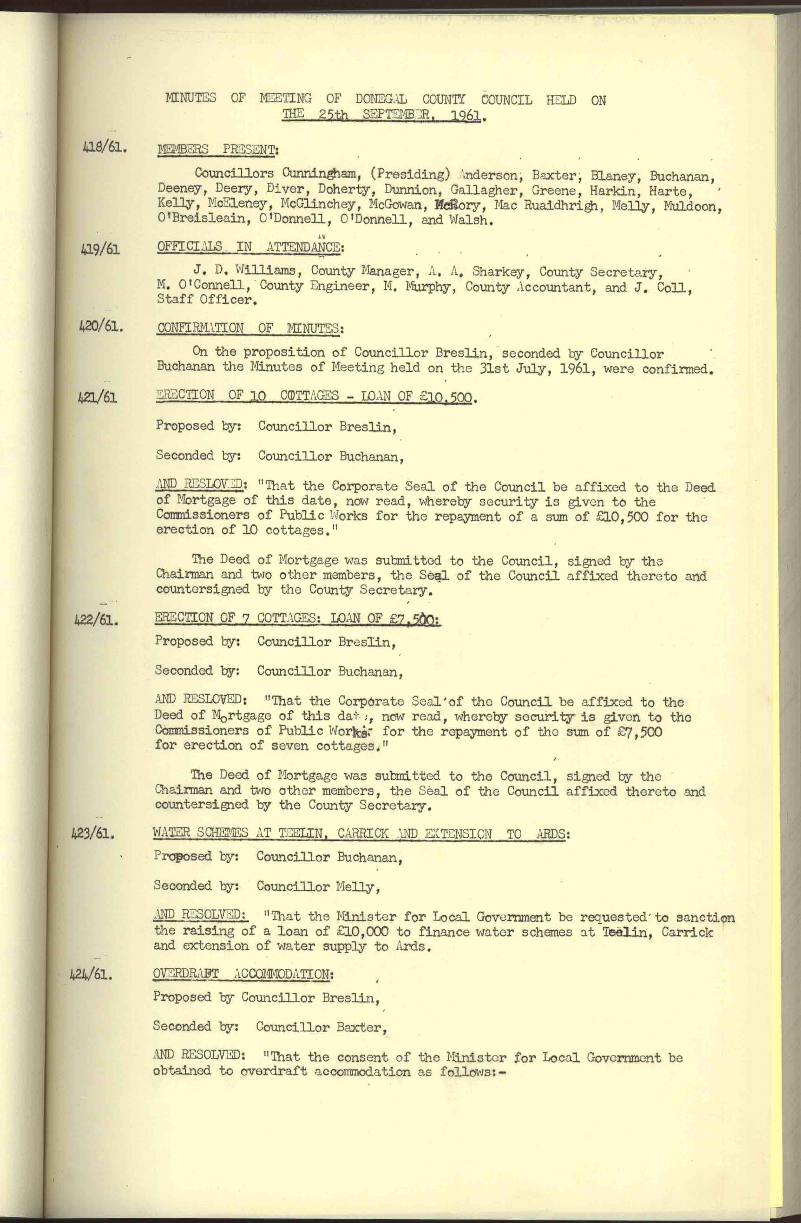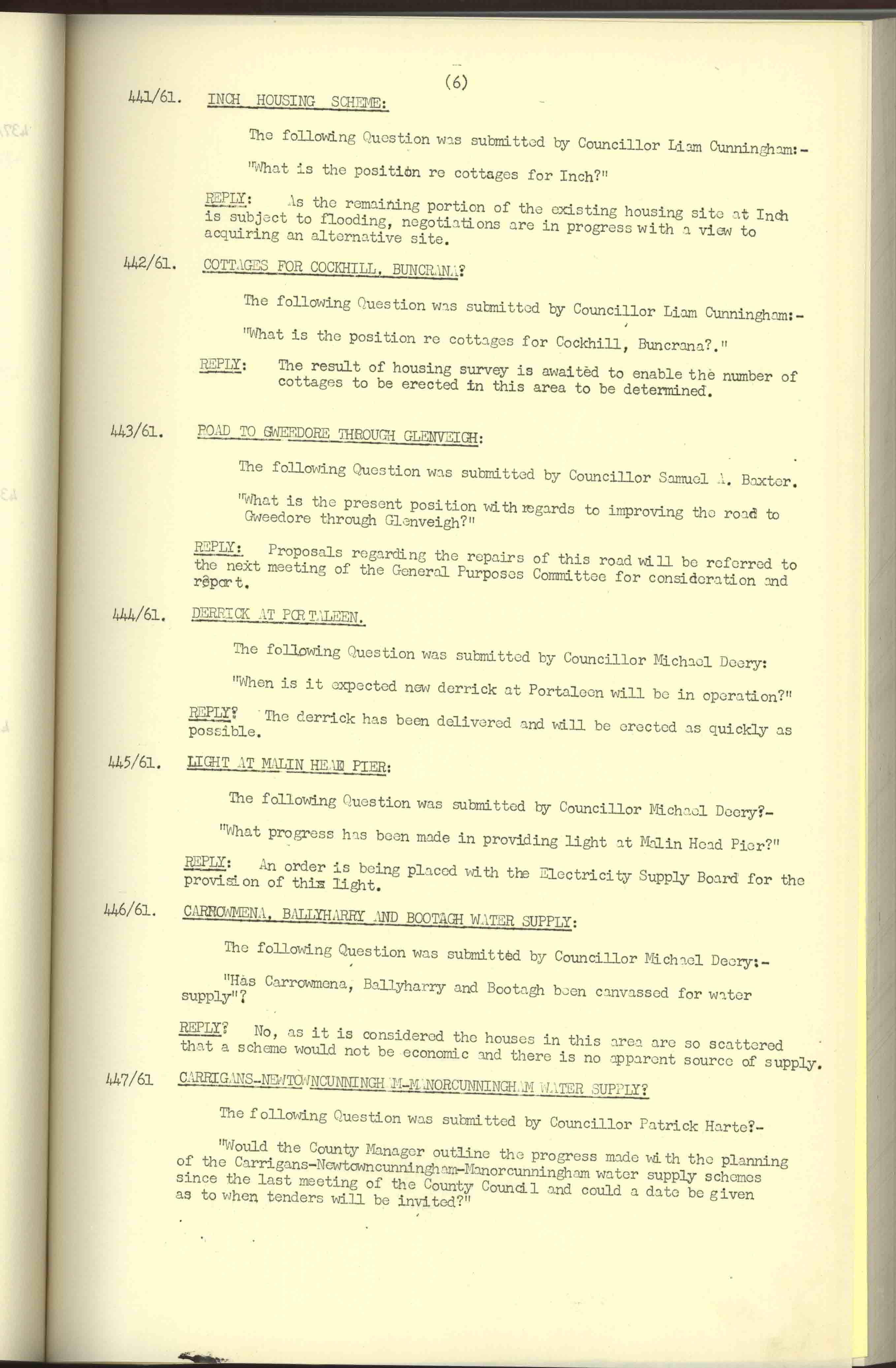 Donegal County Council Minutes, 1961