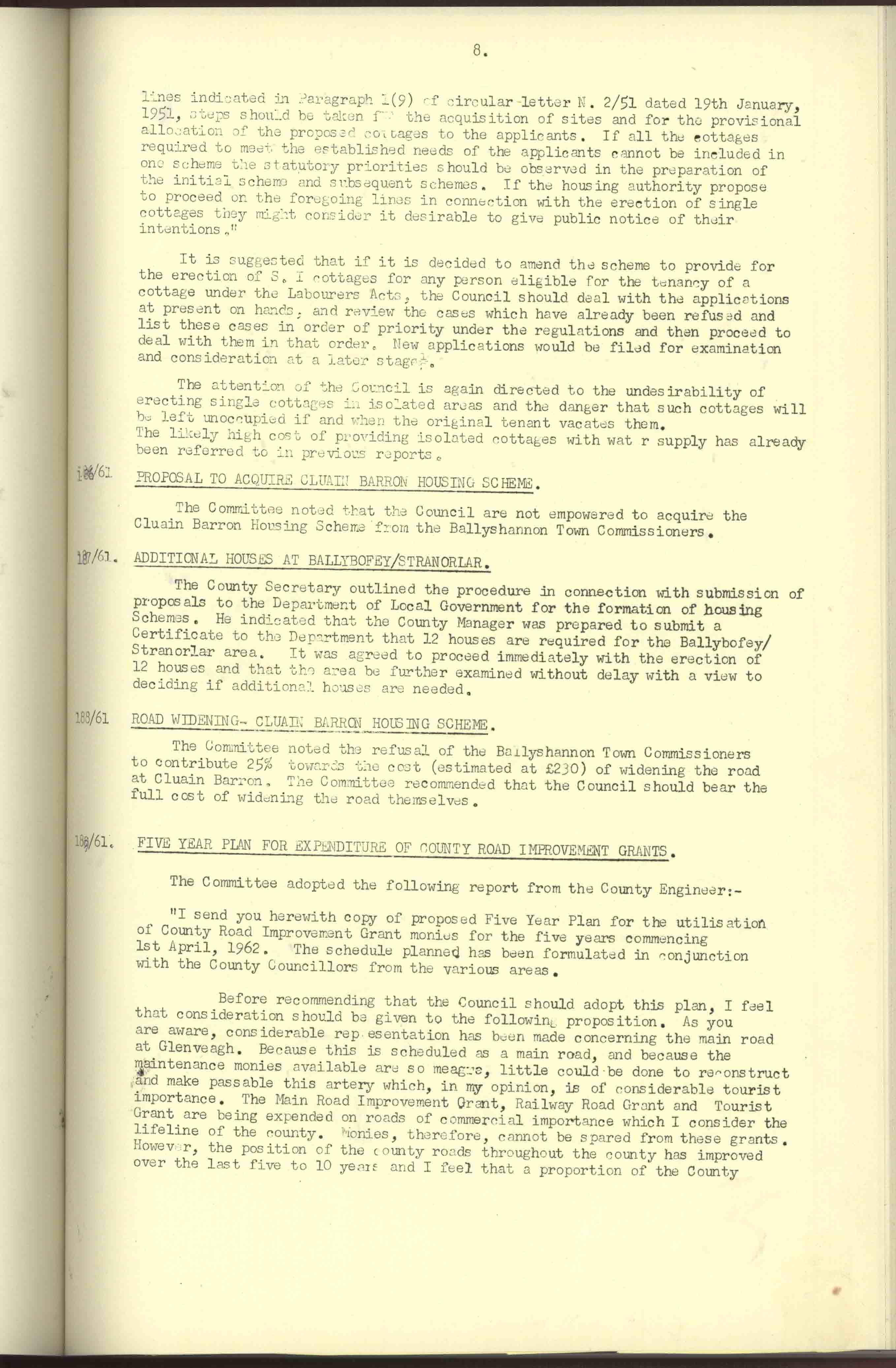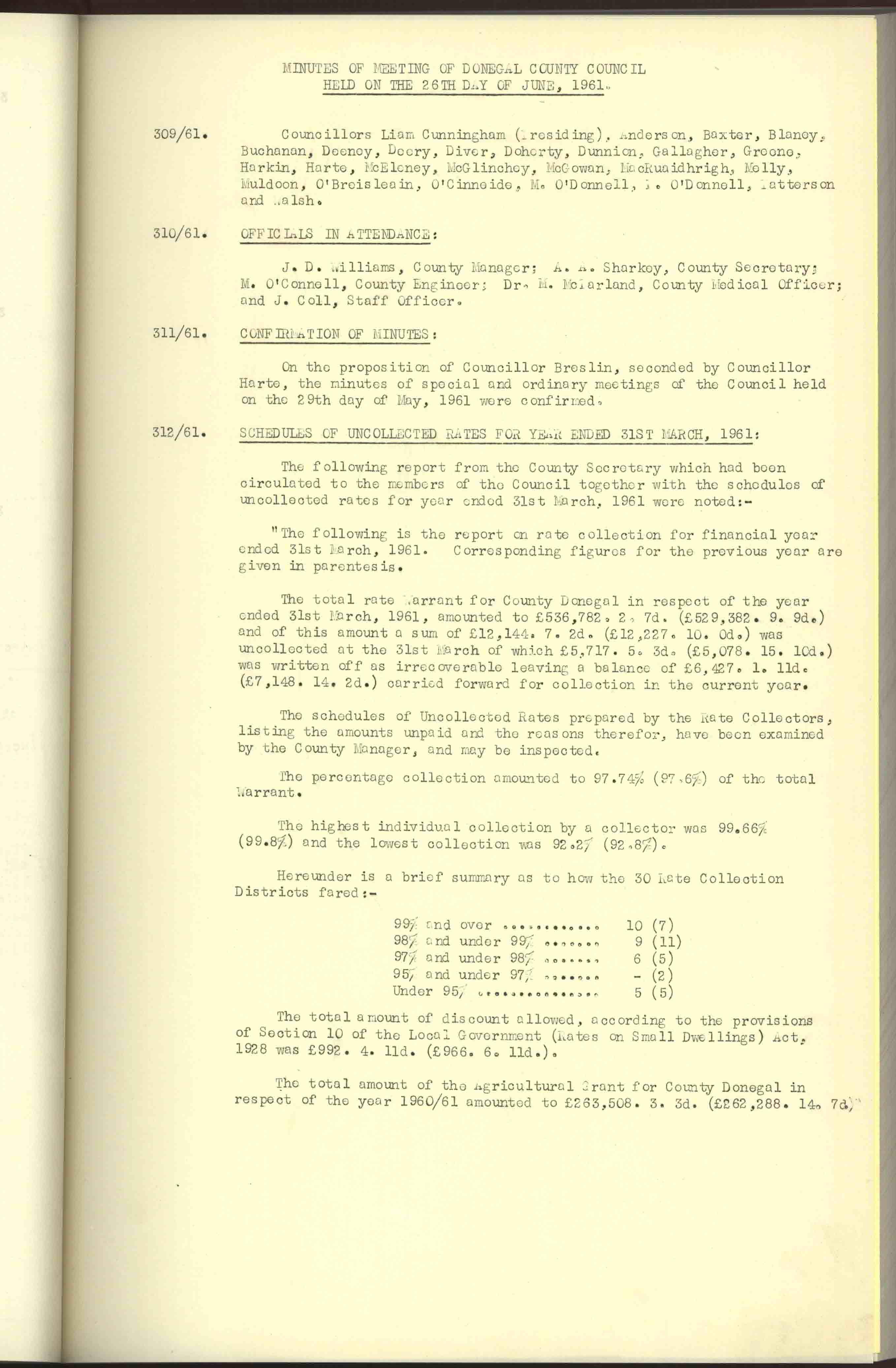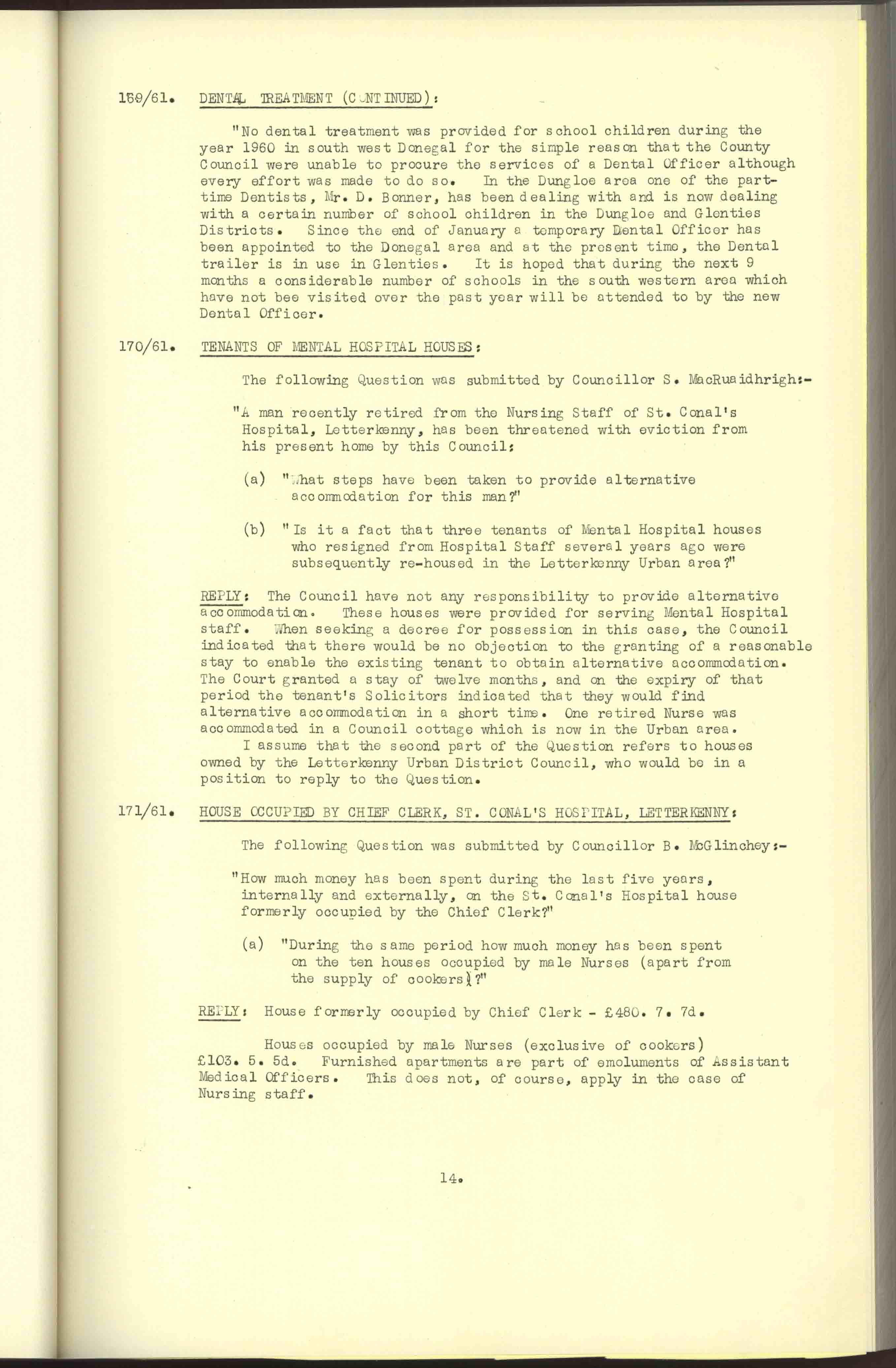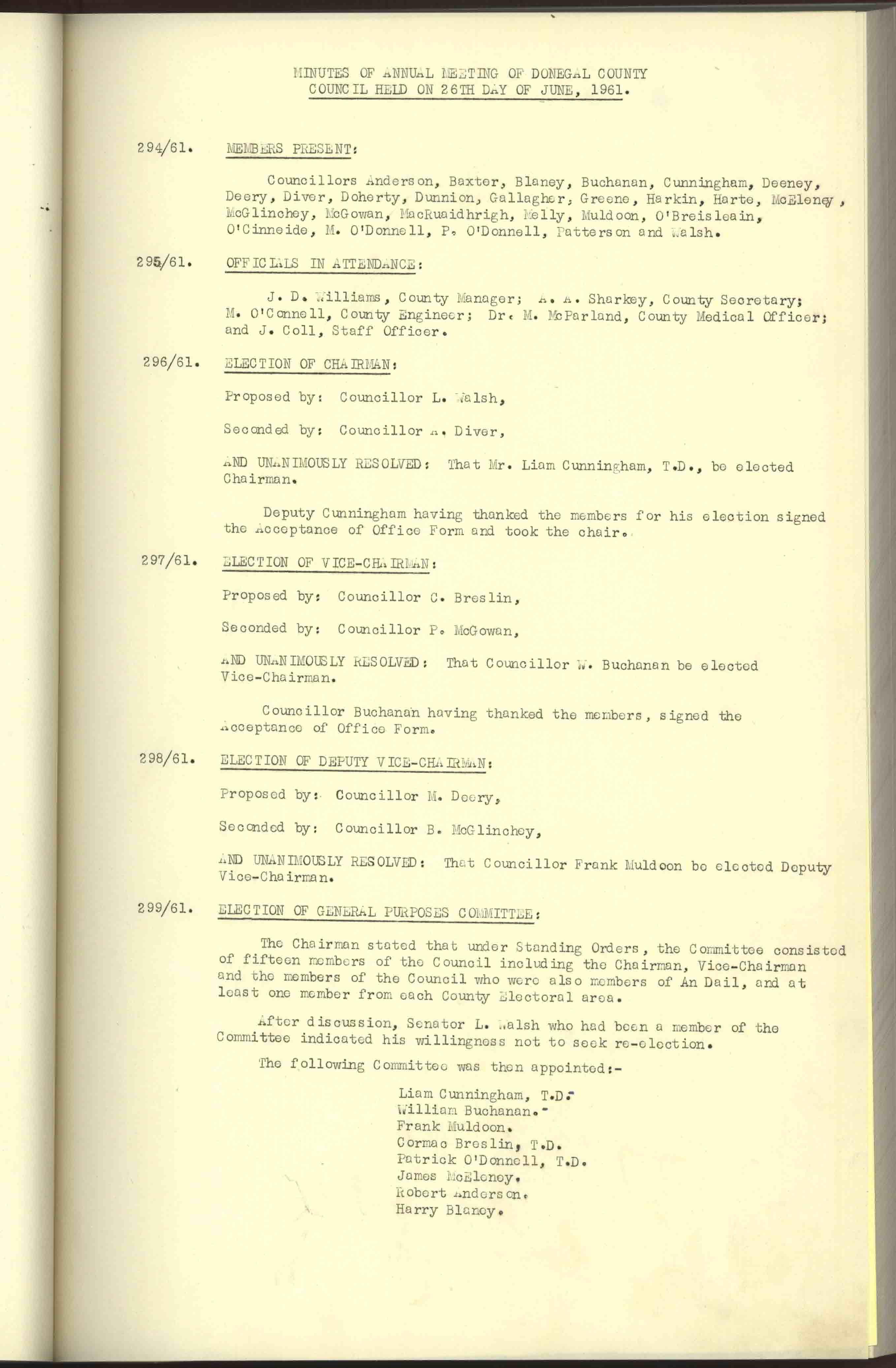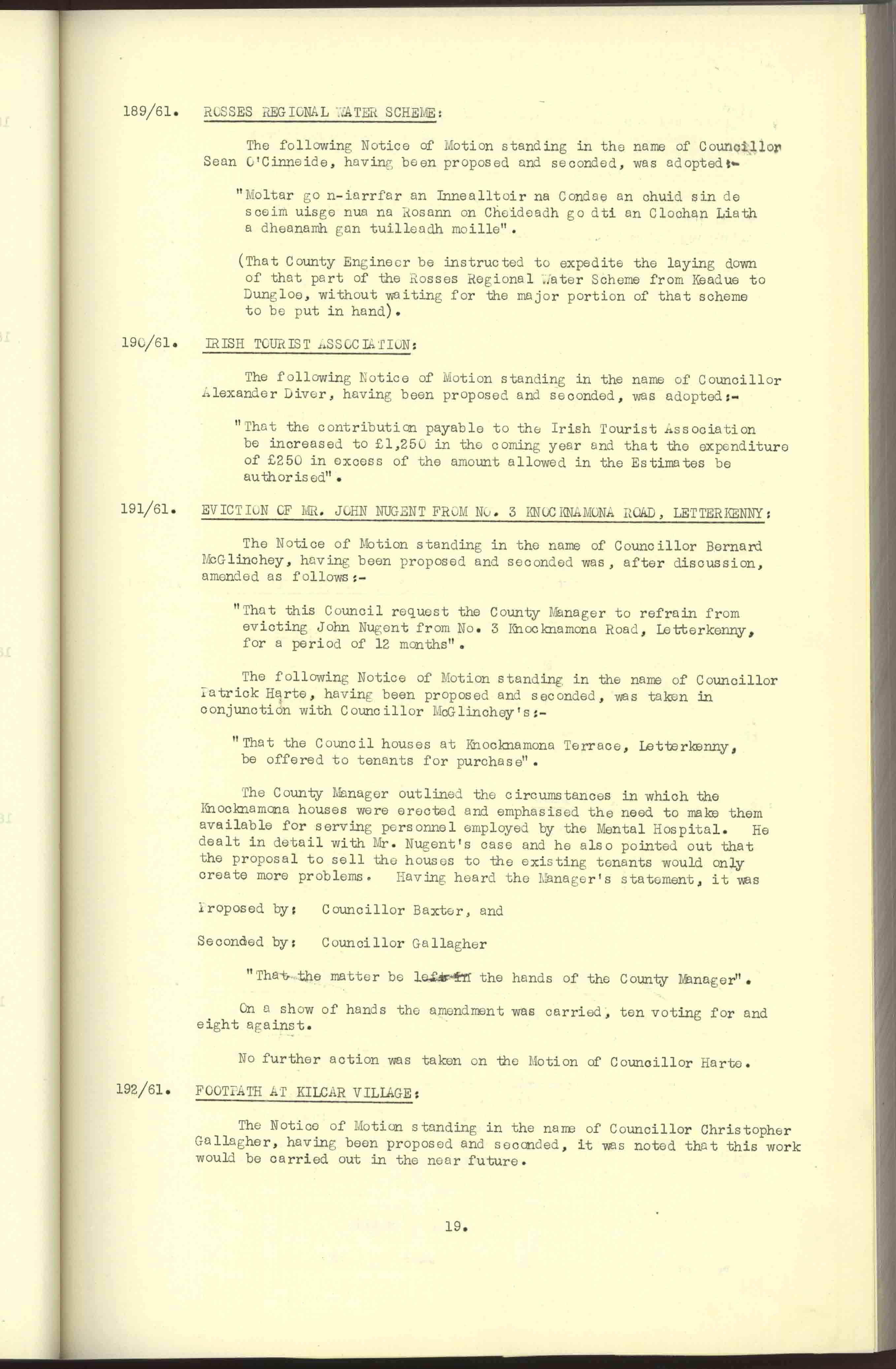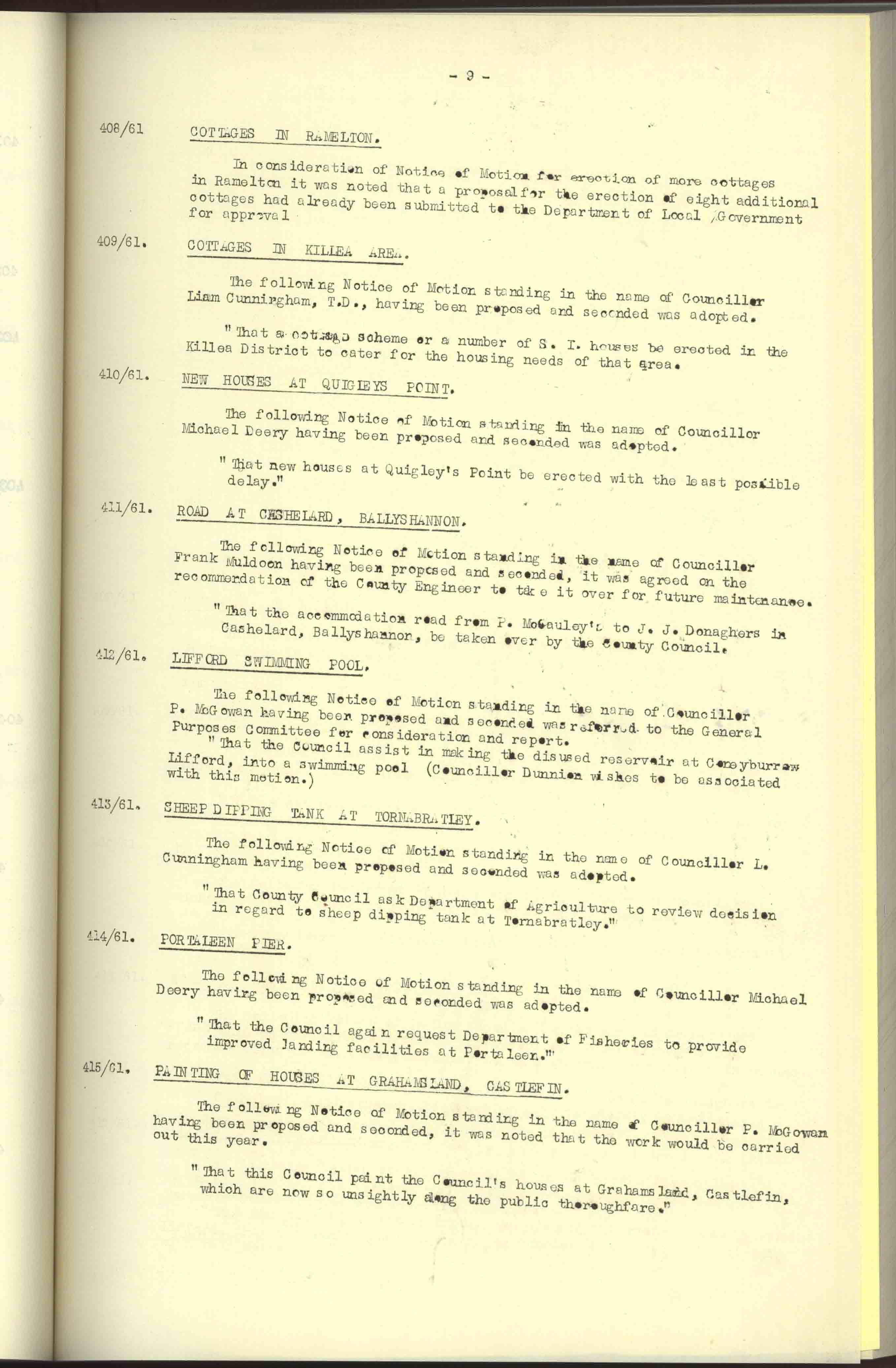 Donegal County Council Minutes, 1961