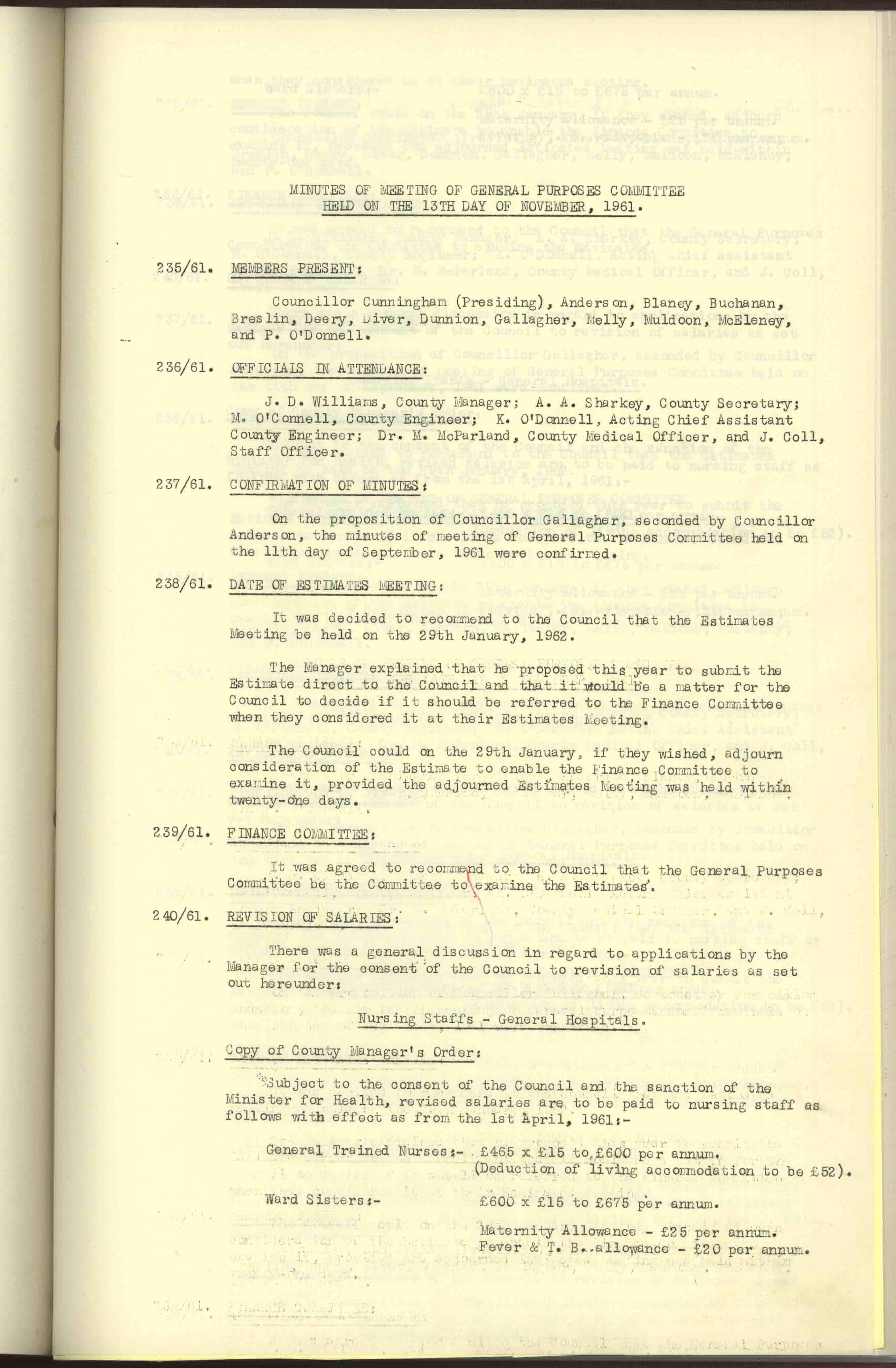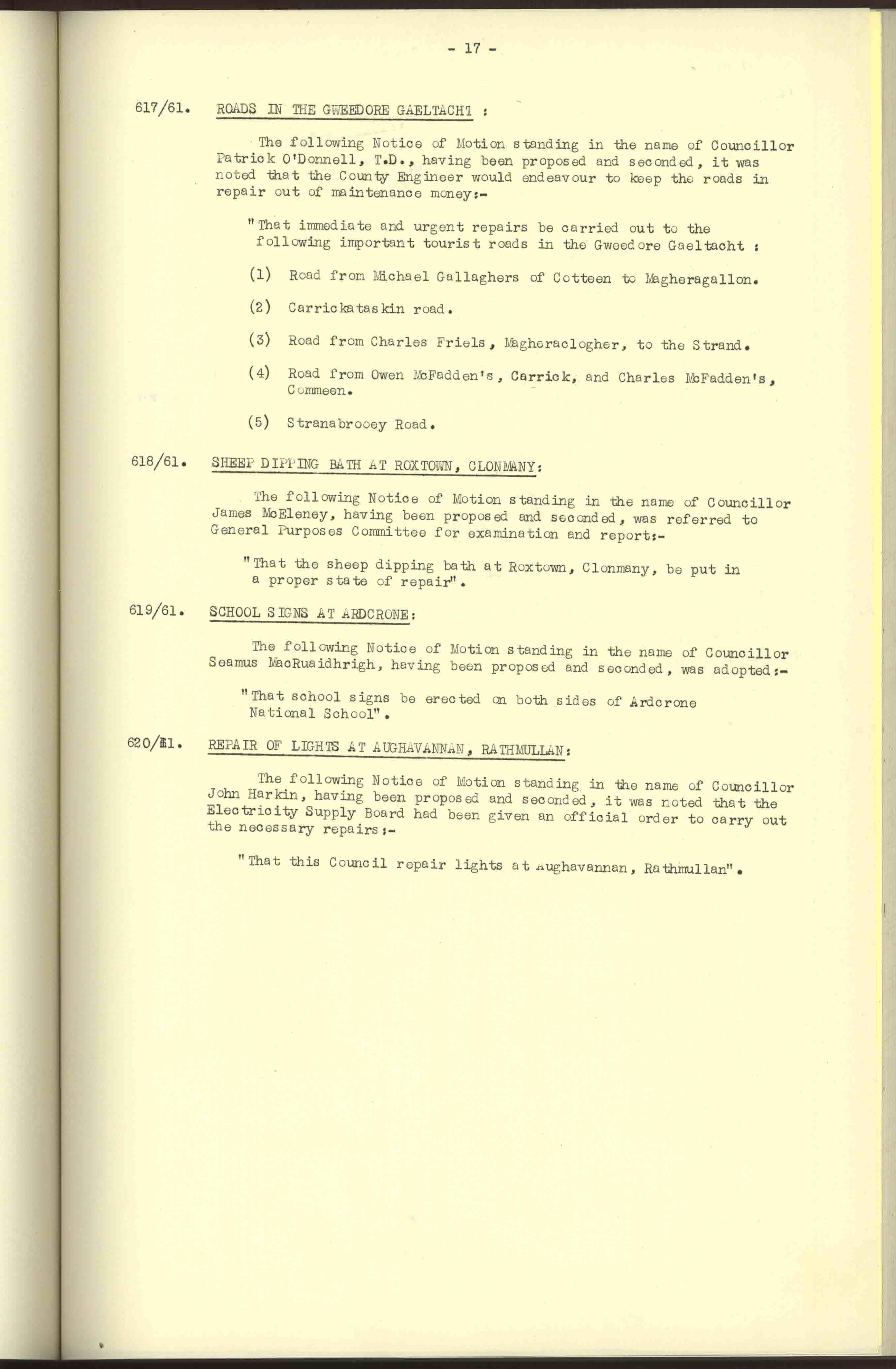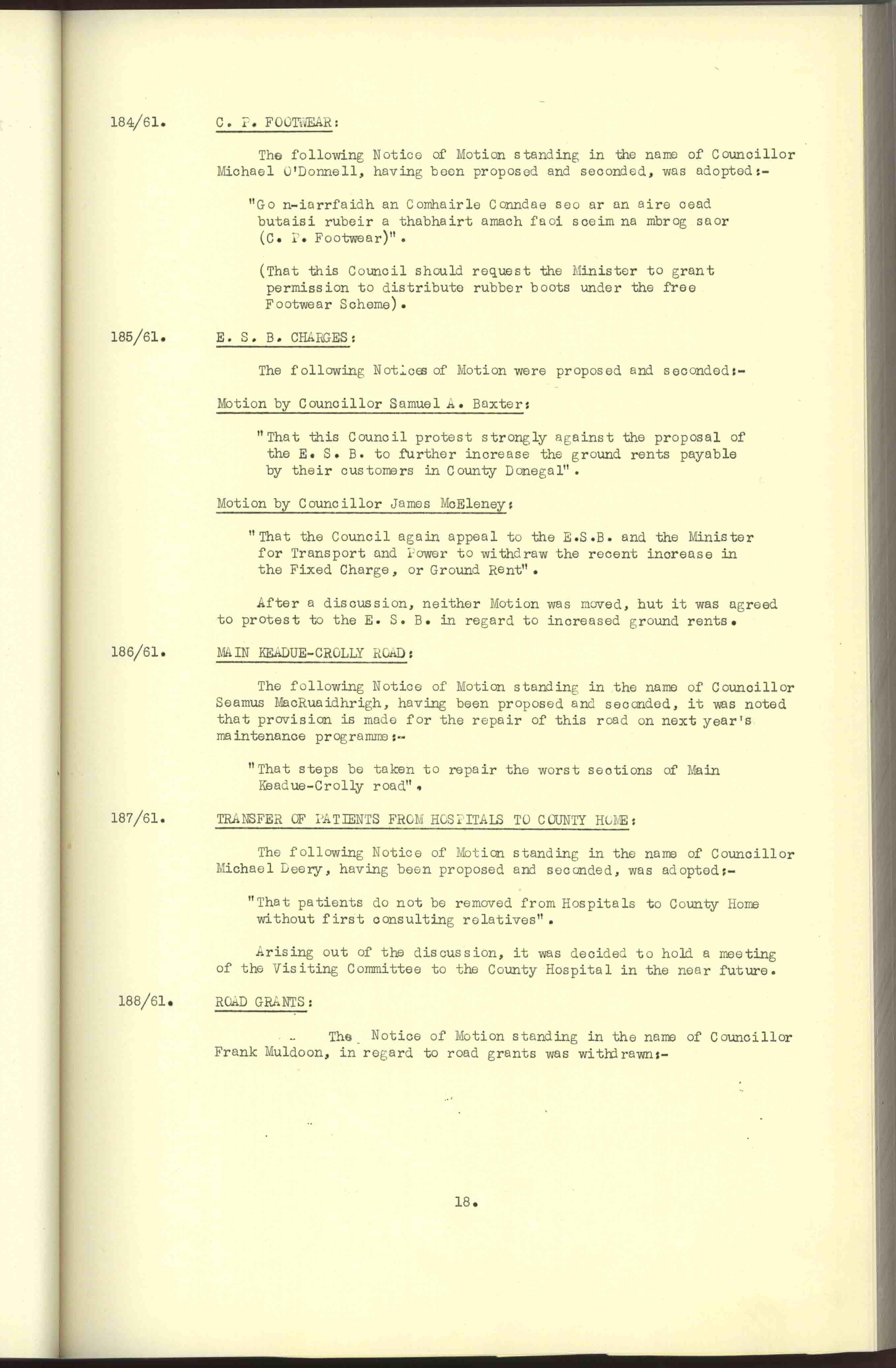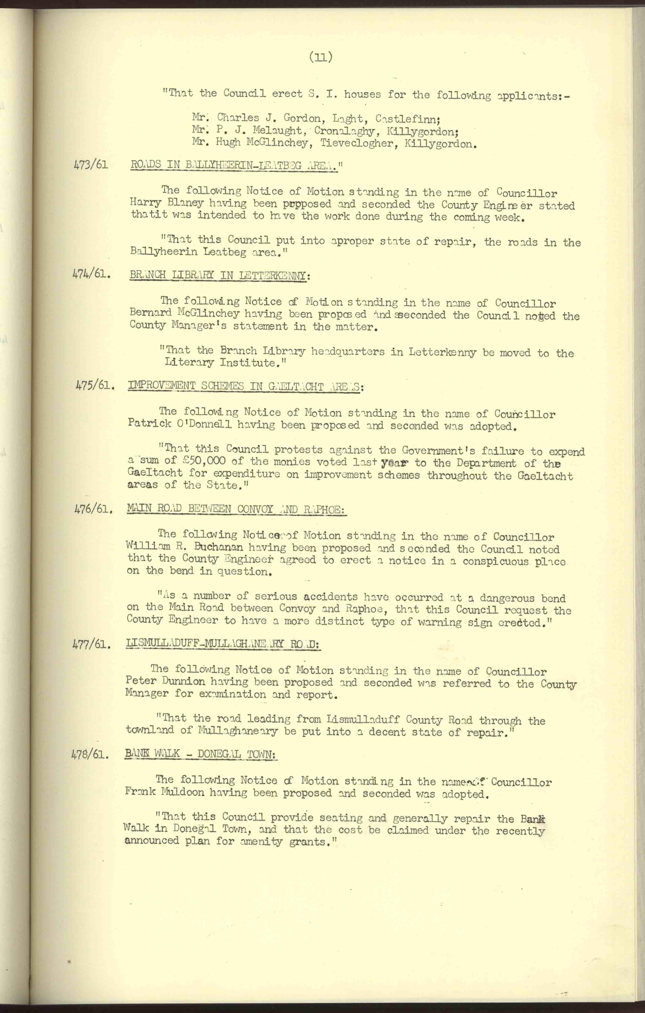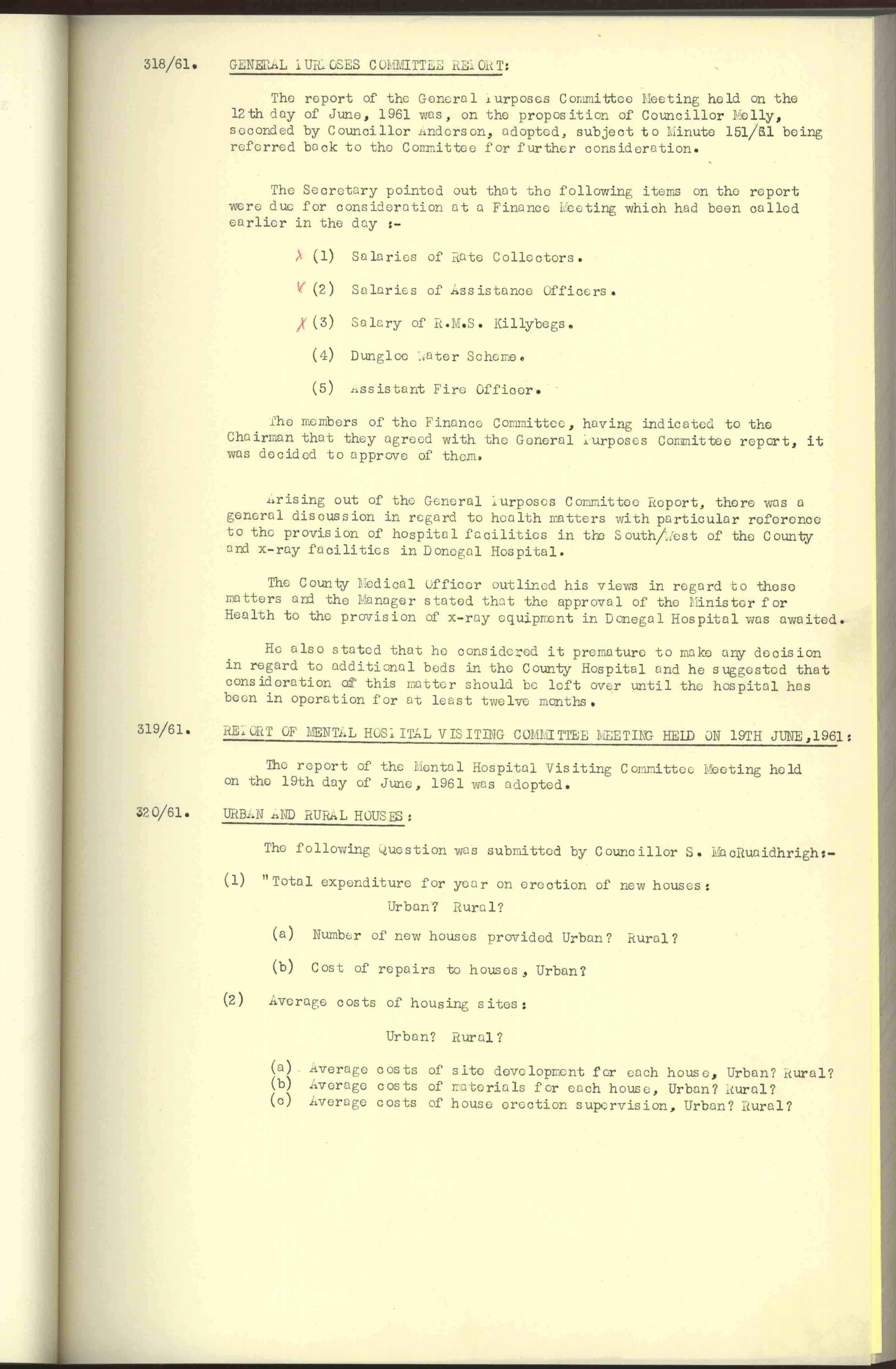 Donegal County Council Minutes, 1961
