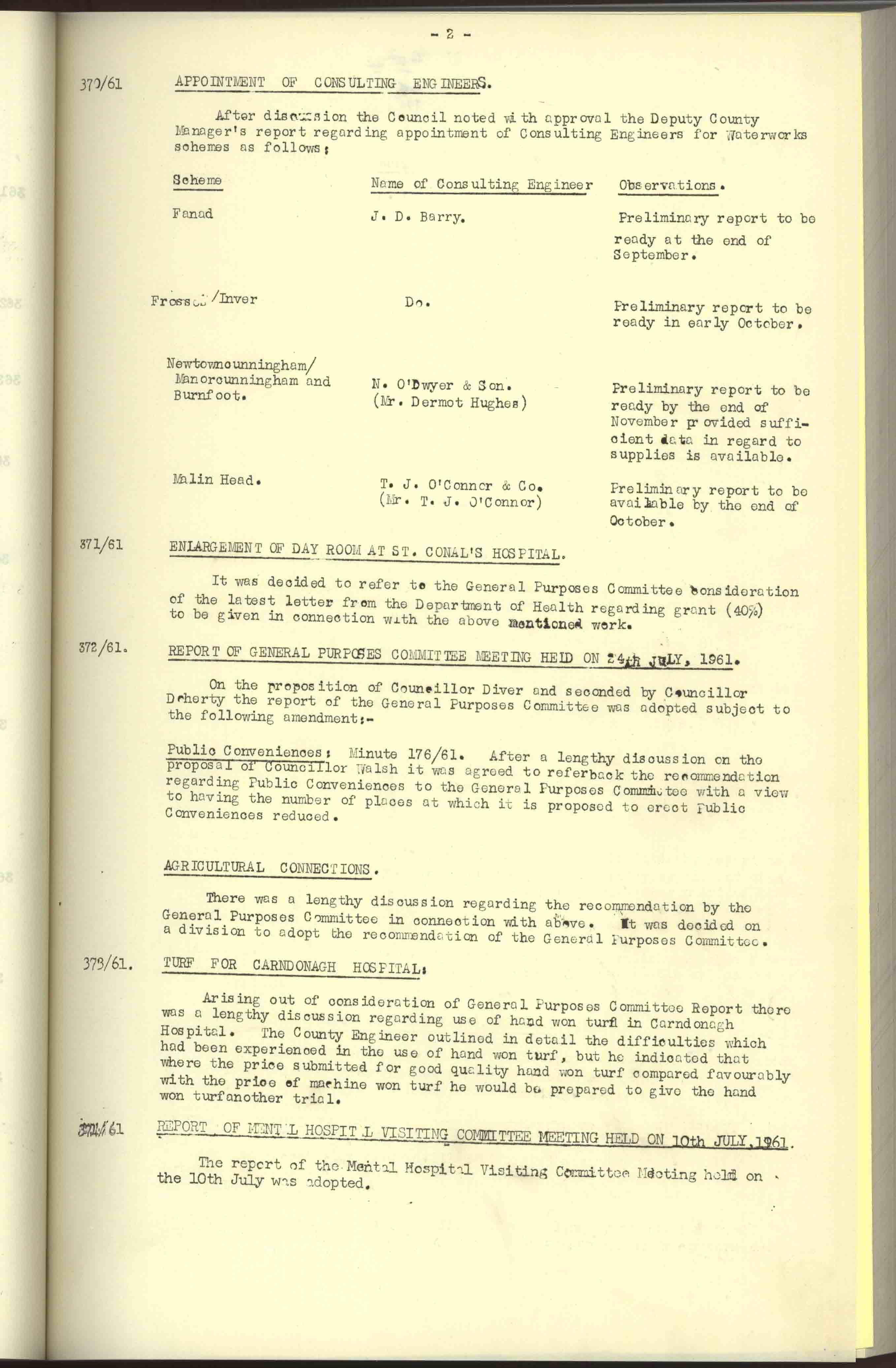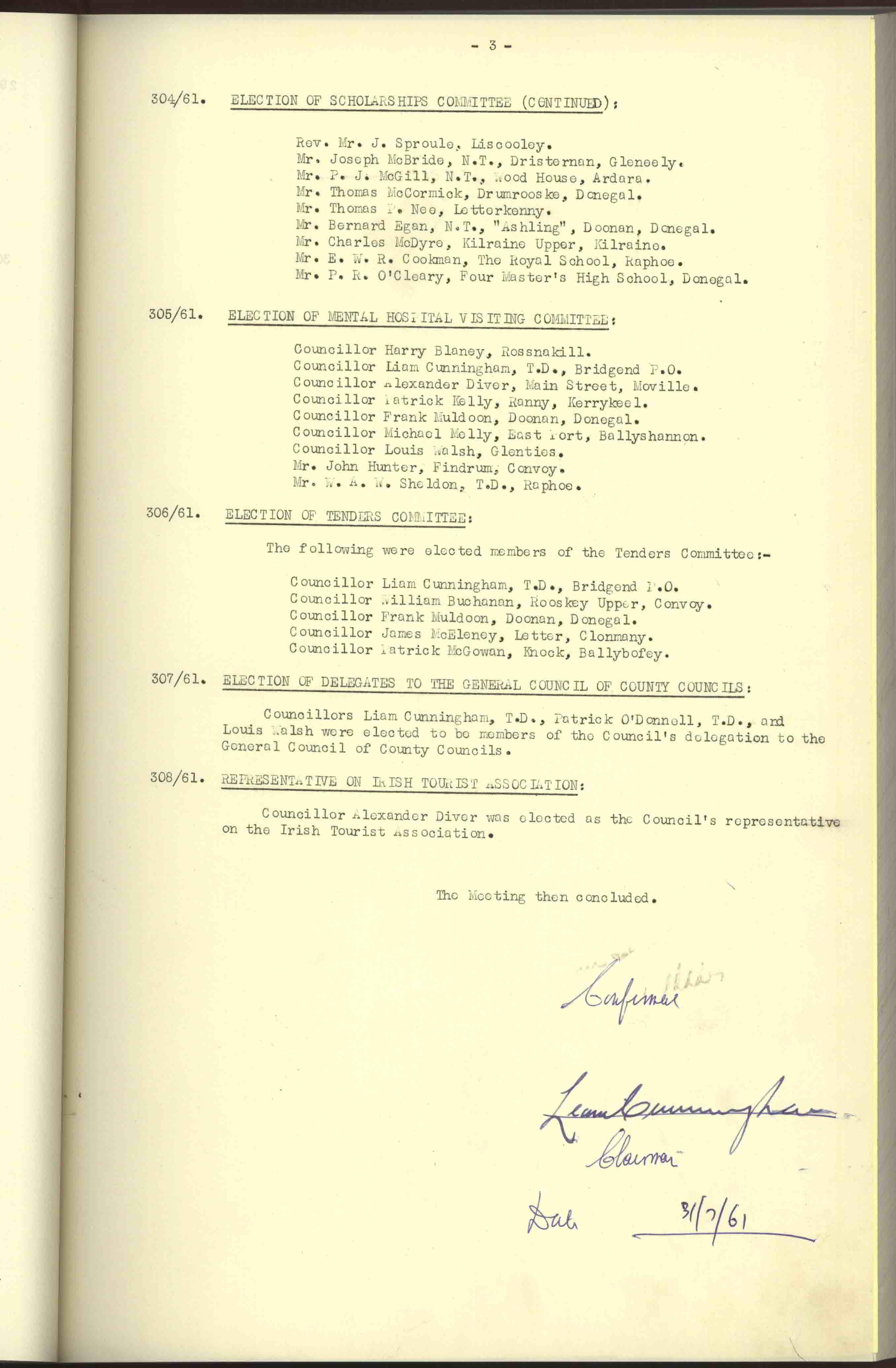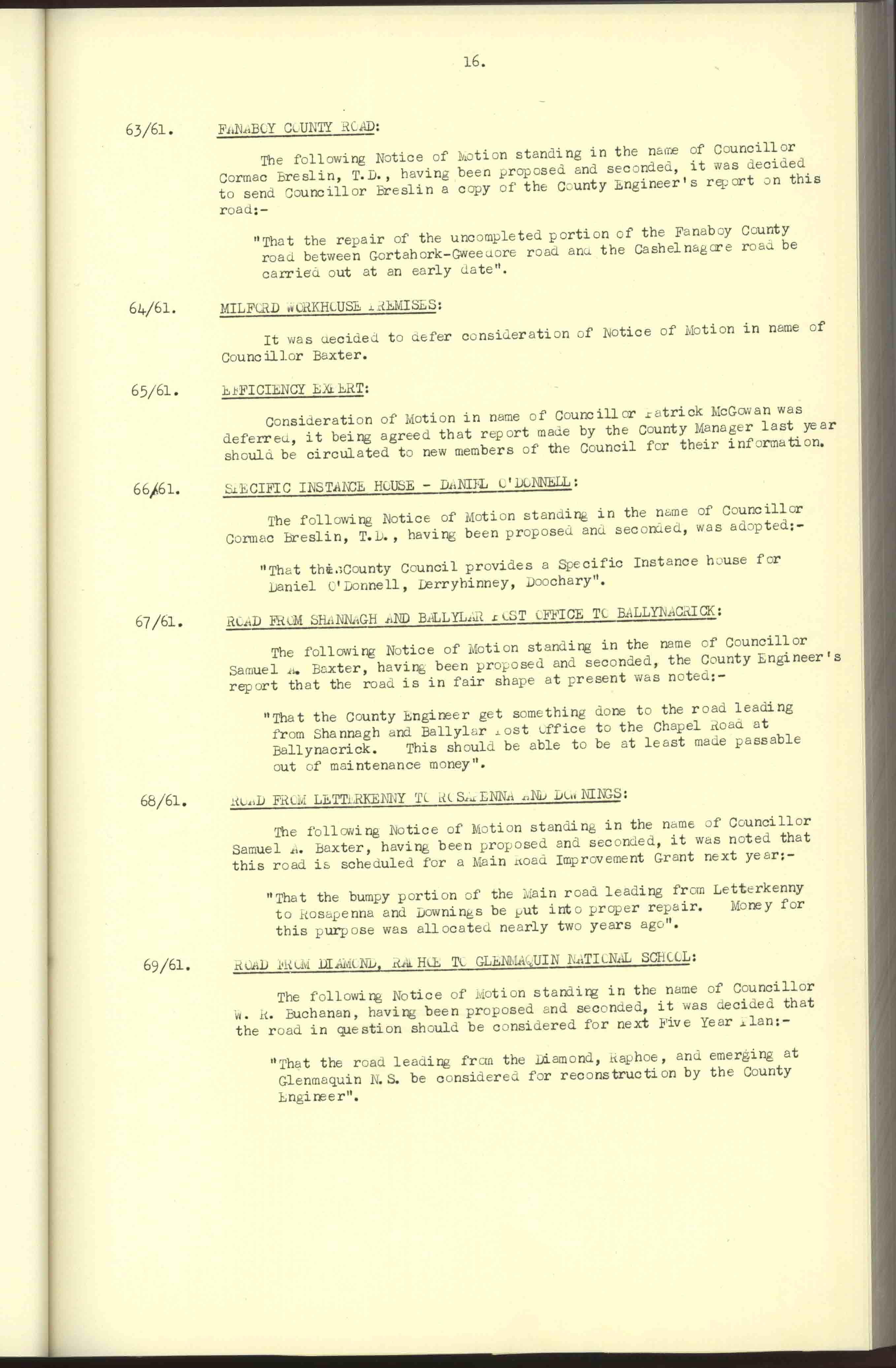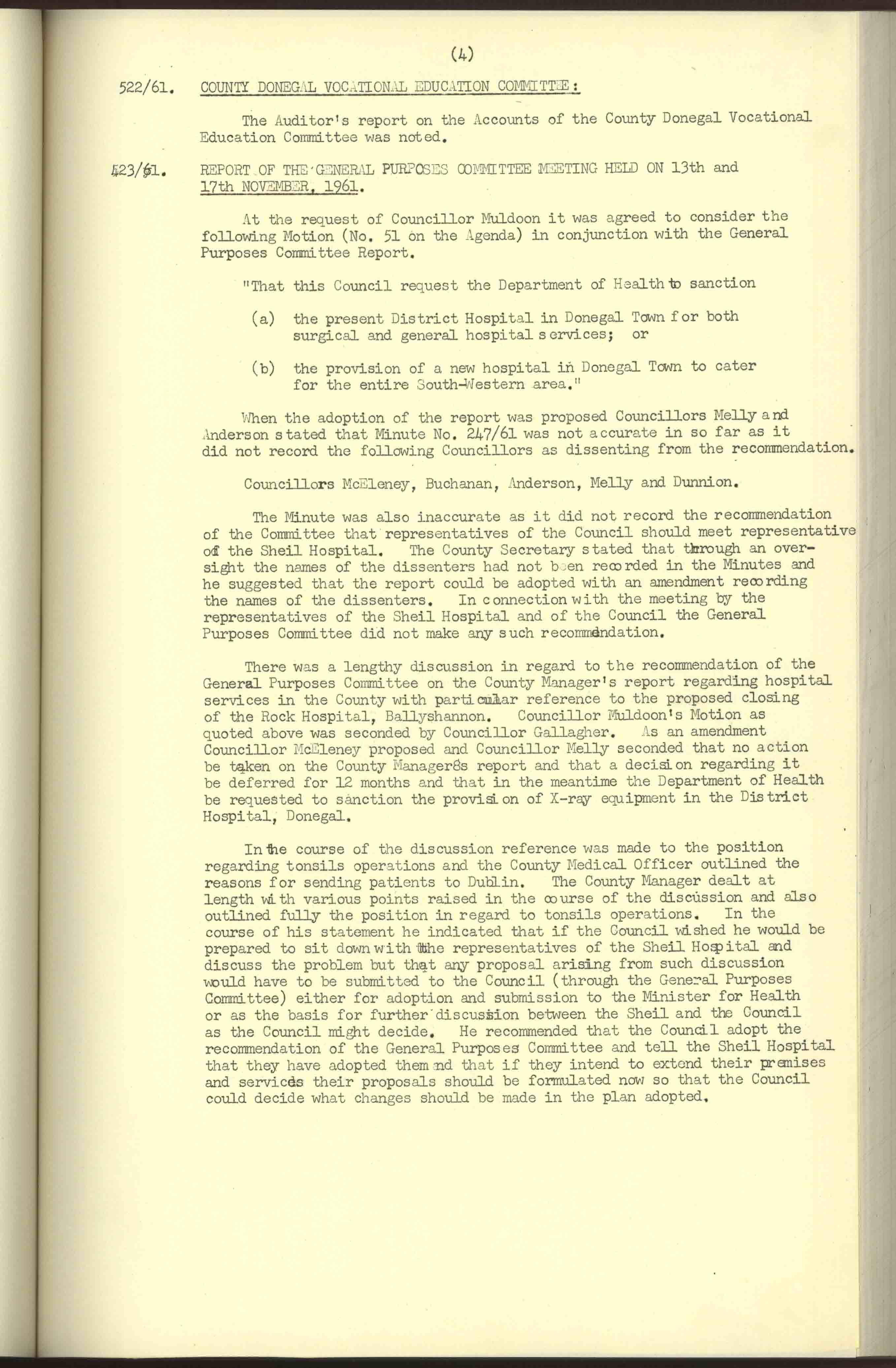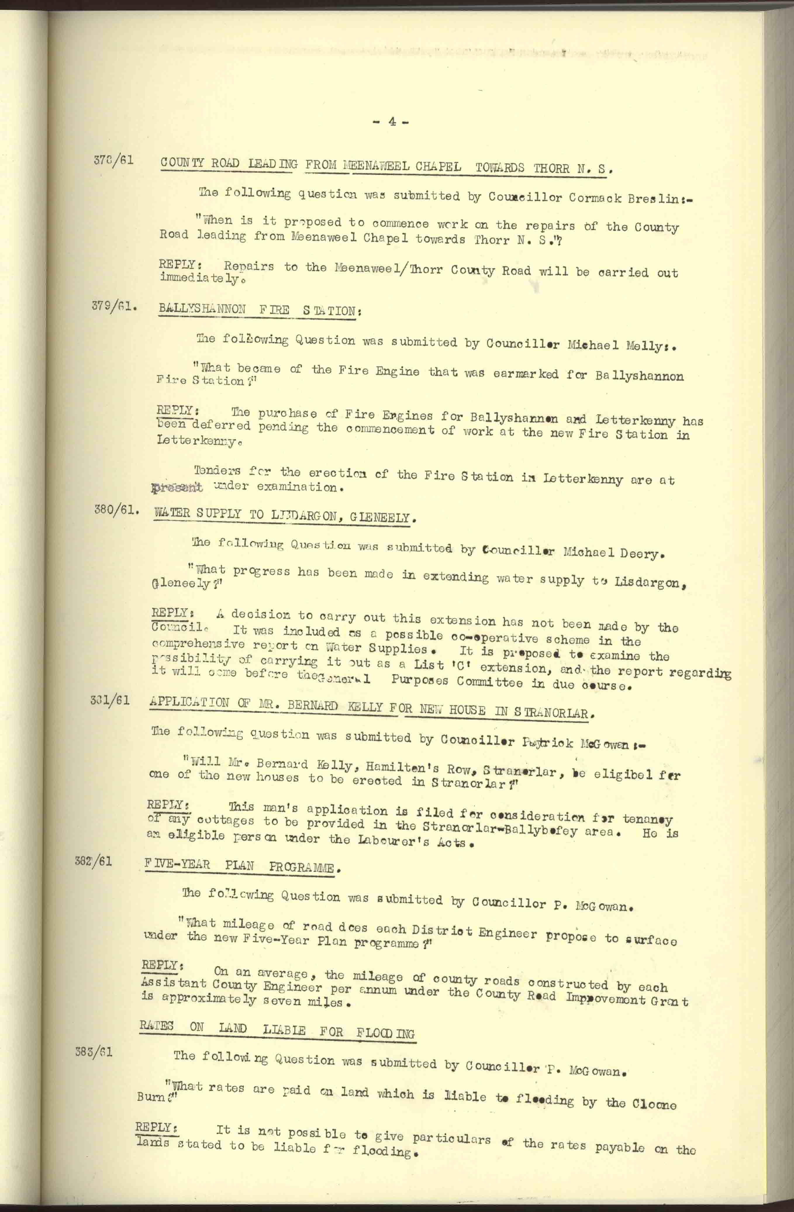 Donegal County Council Minutes, 1961