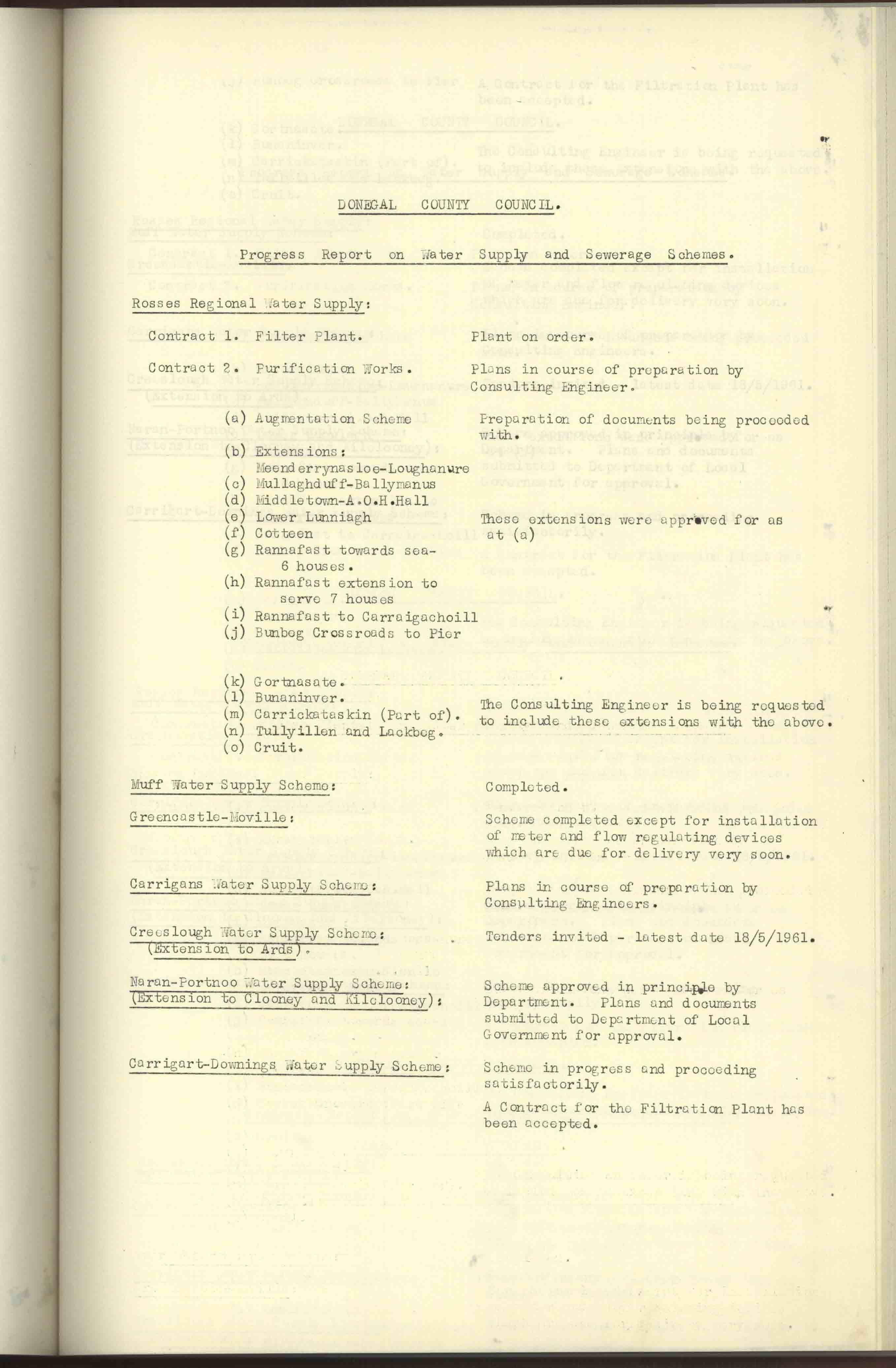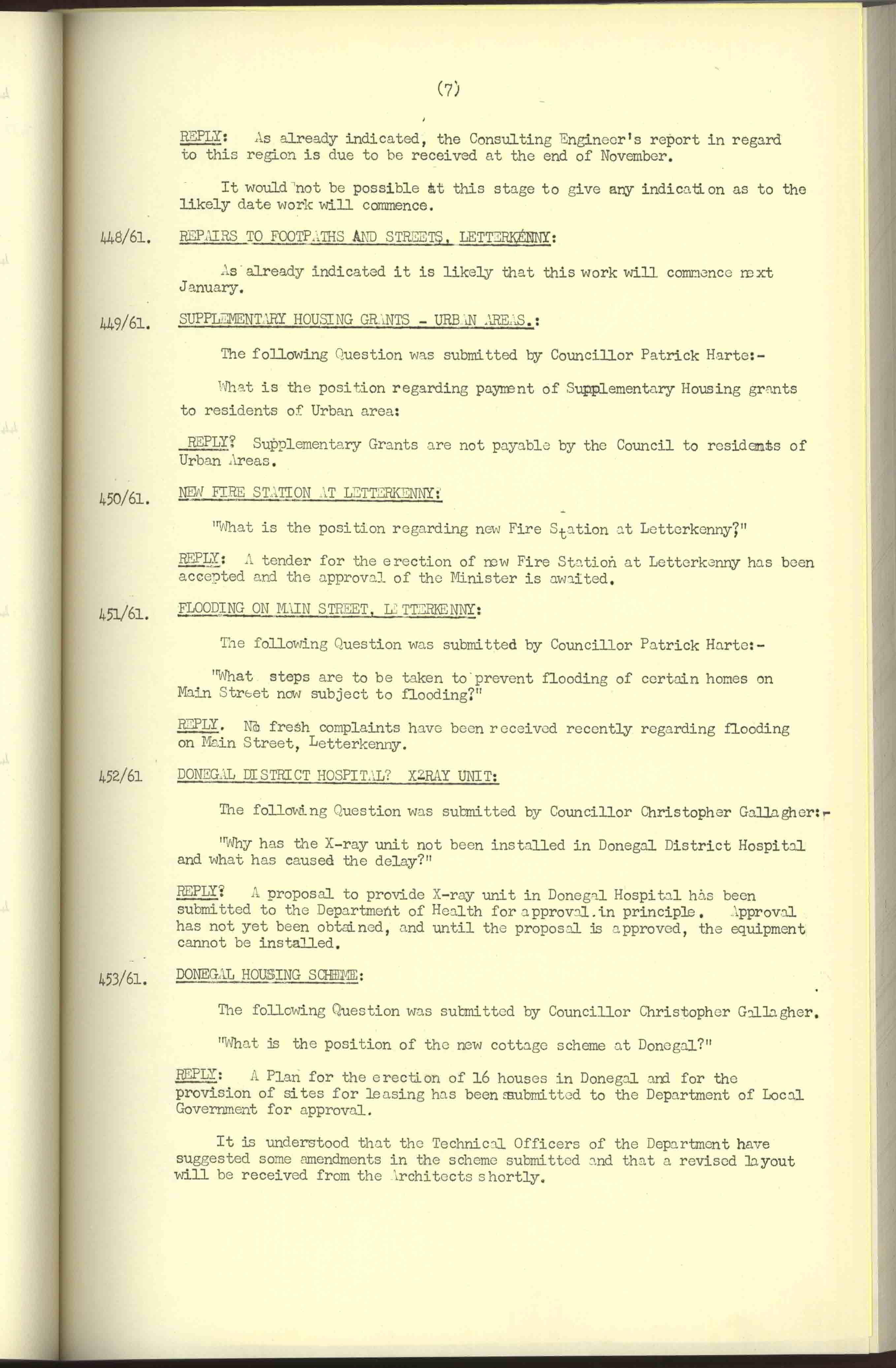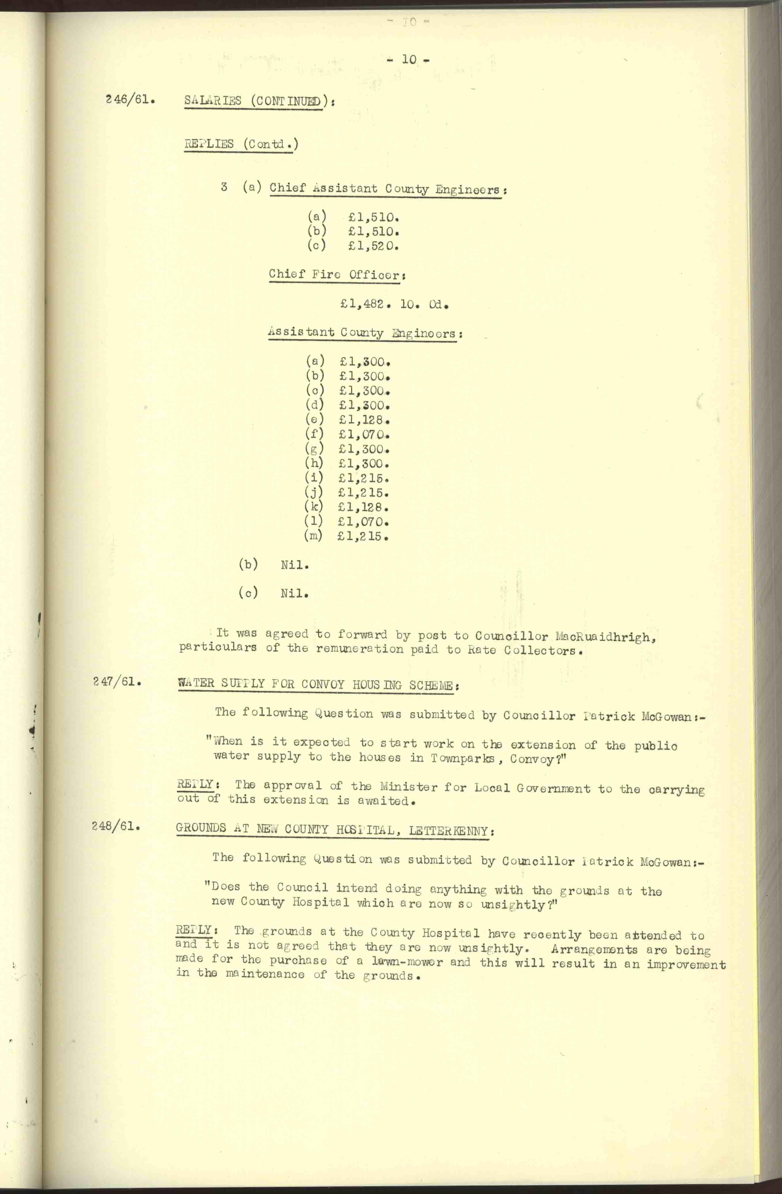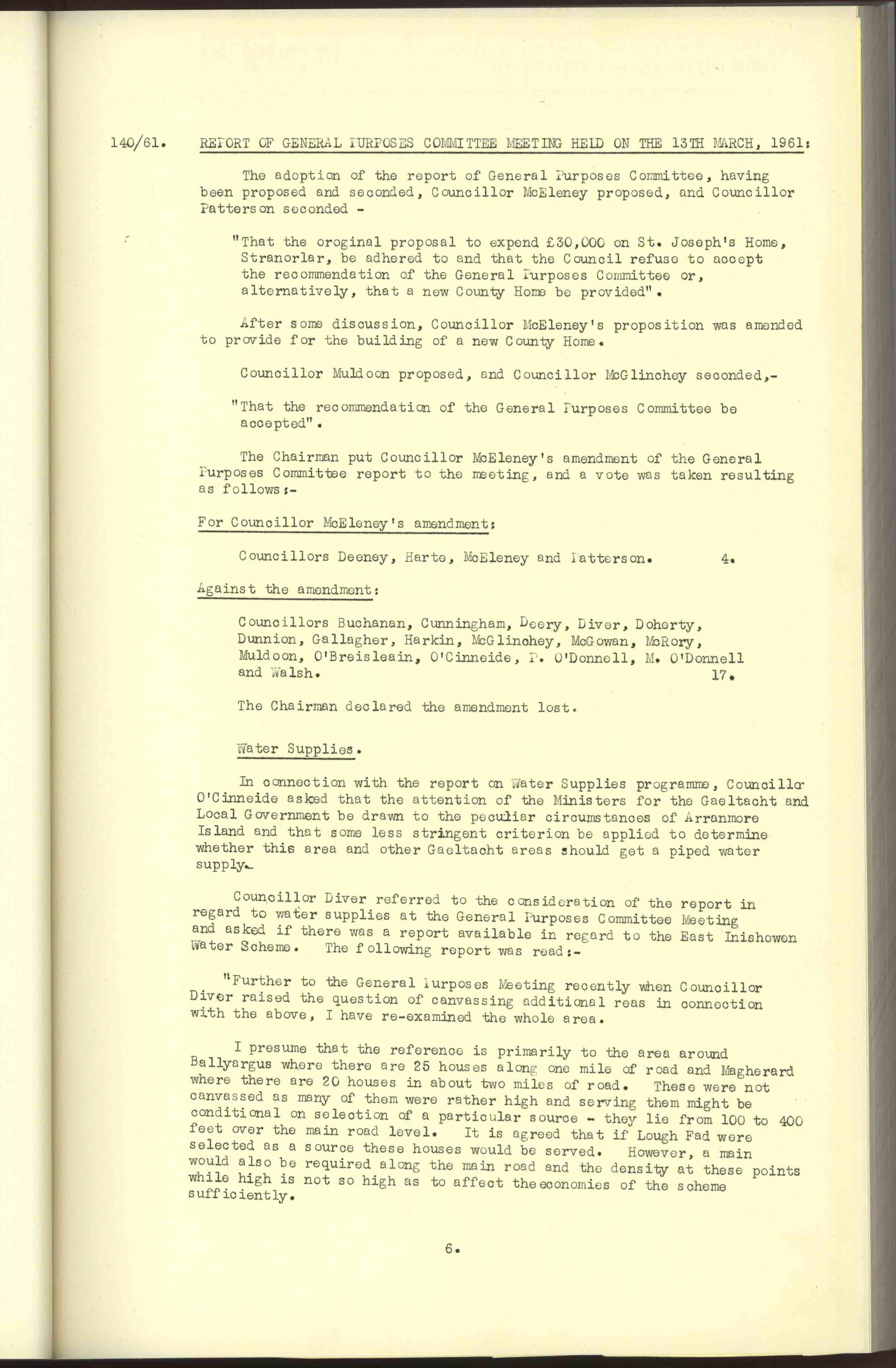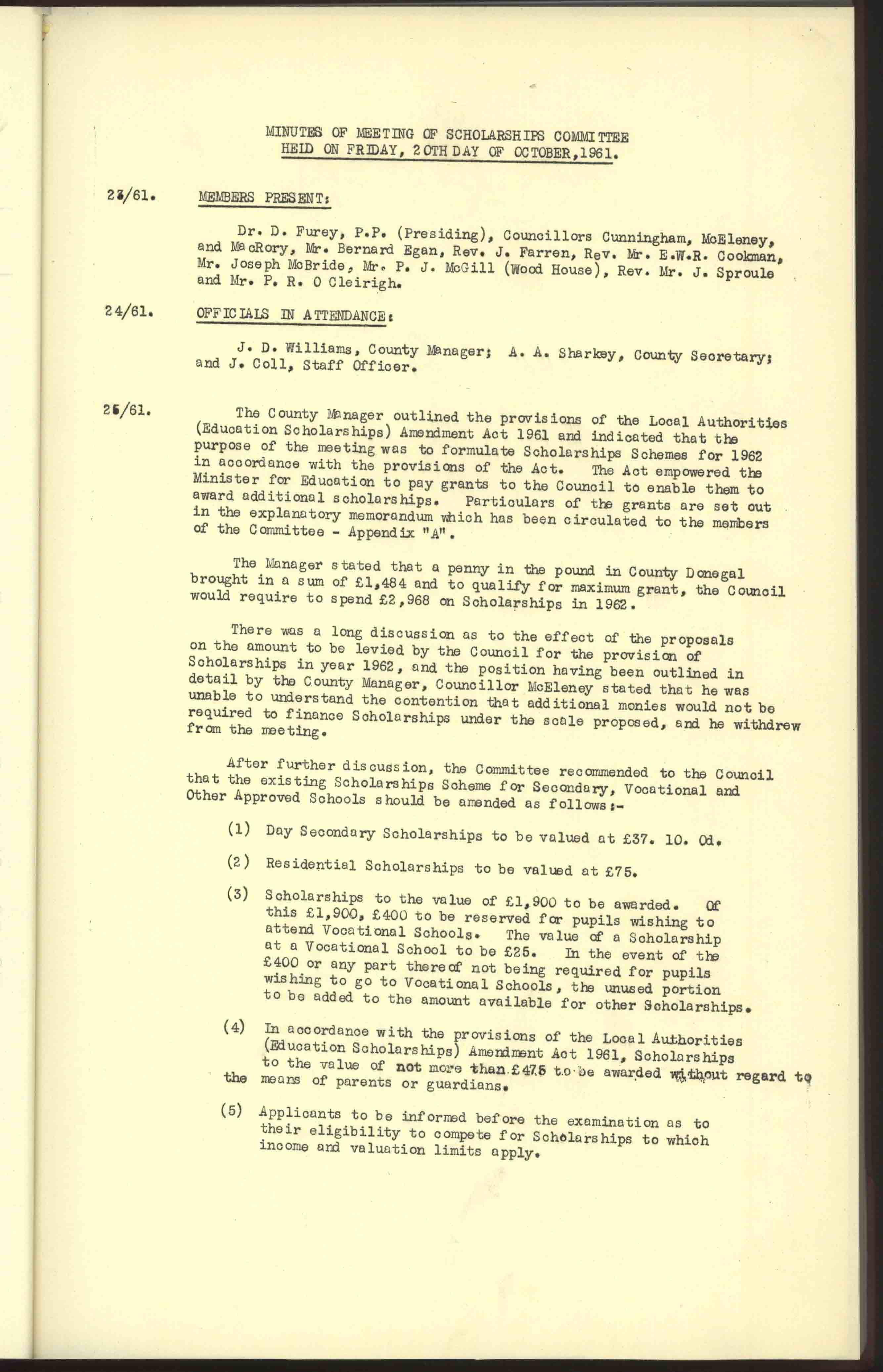 Donegal County Council Minutes, 1961