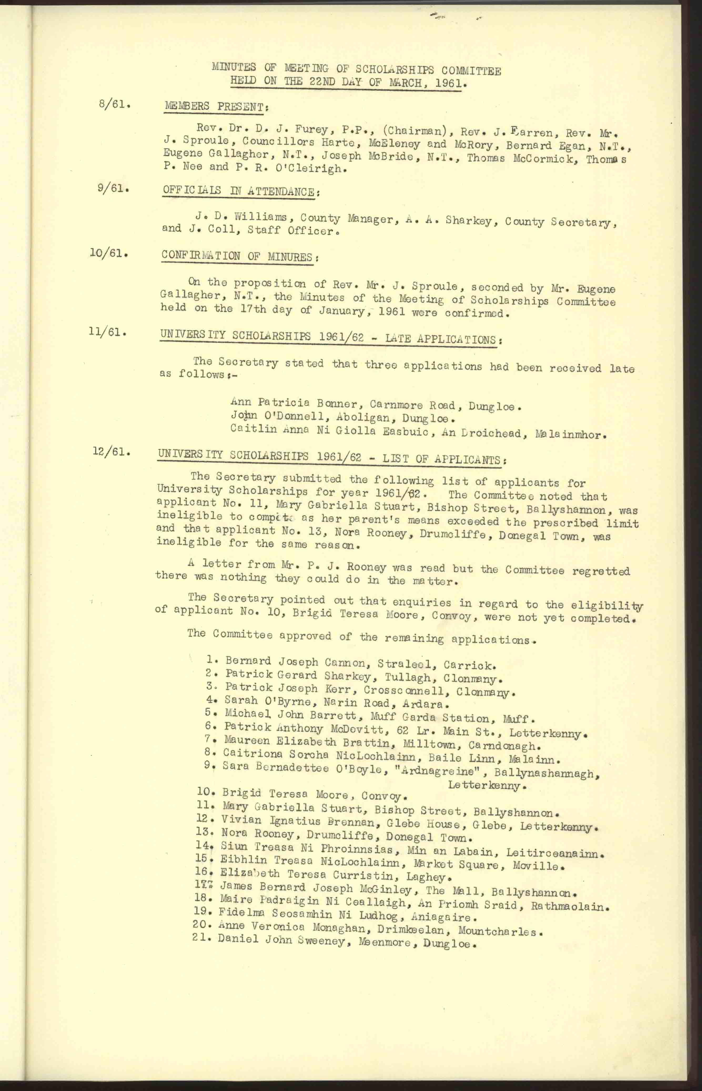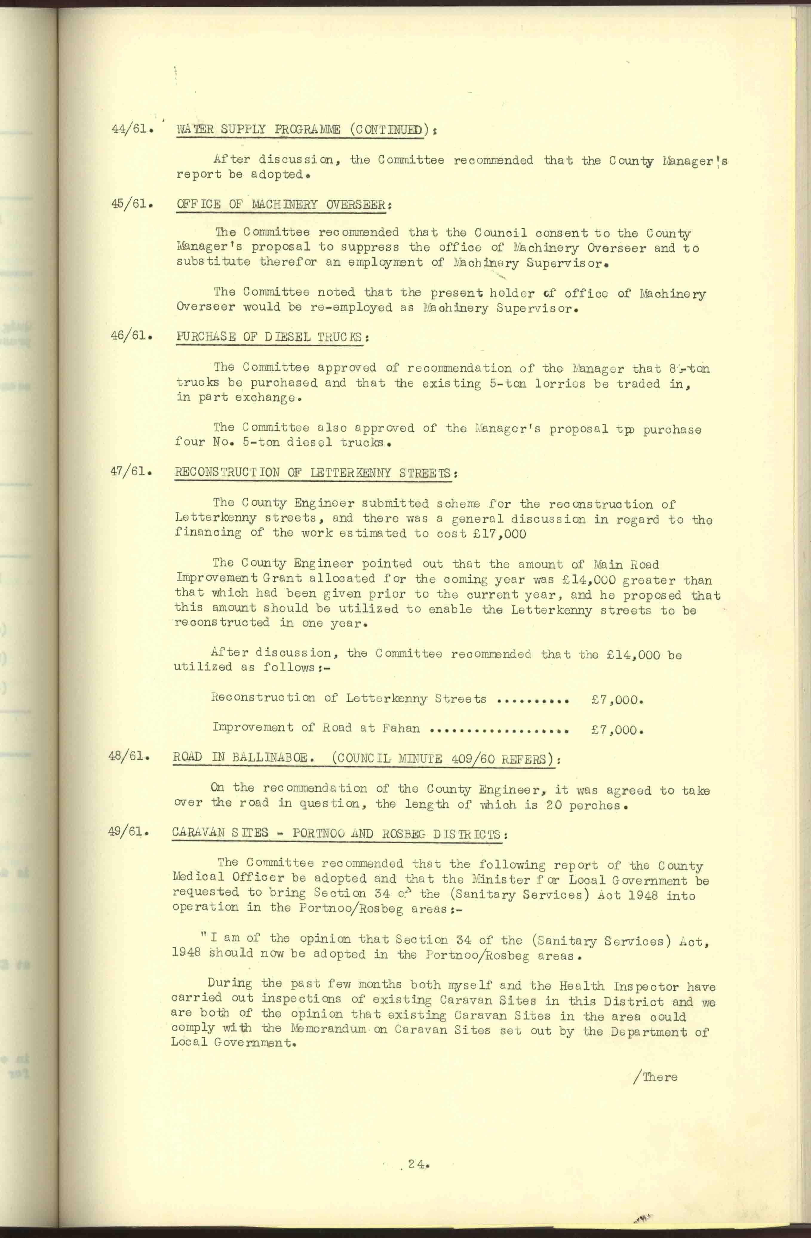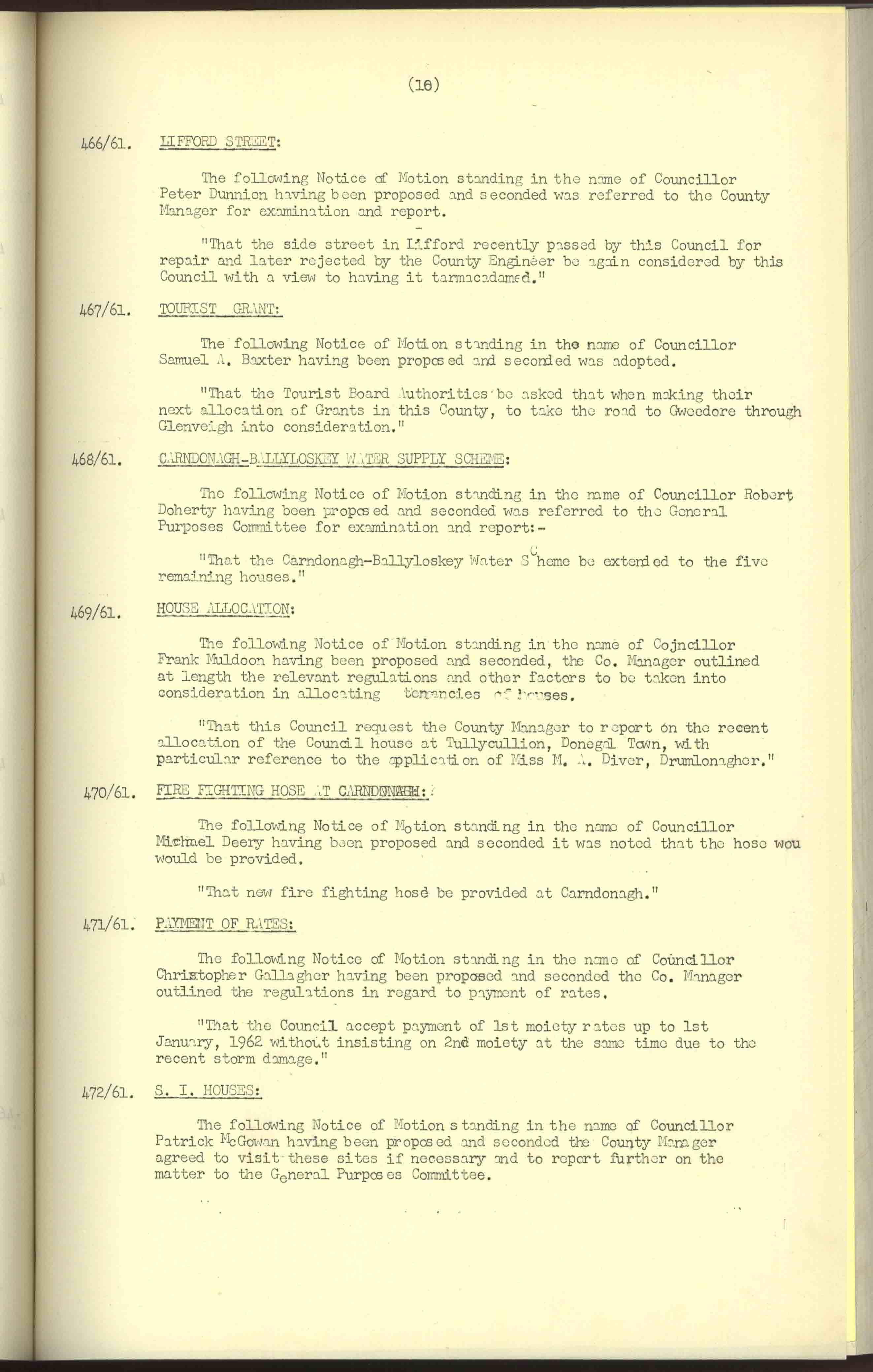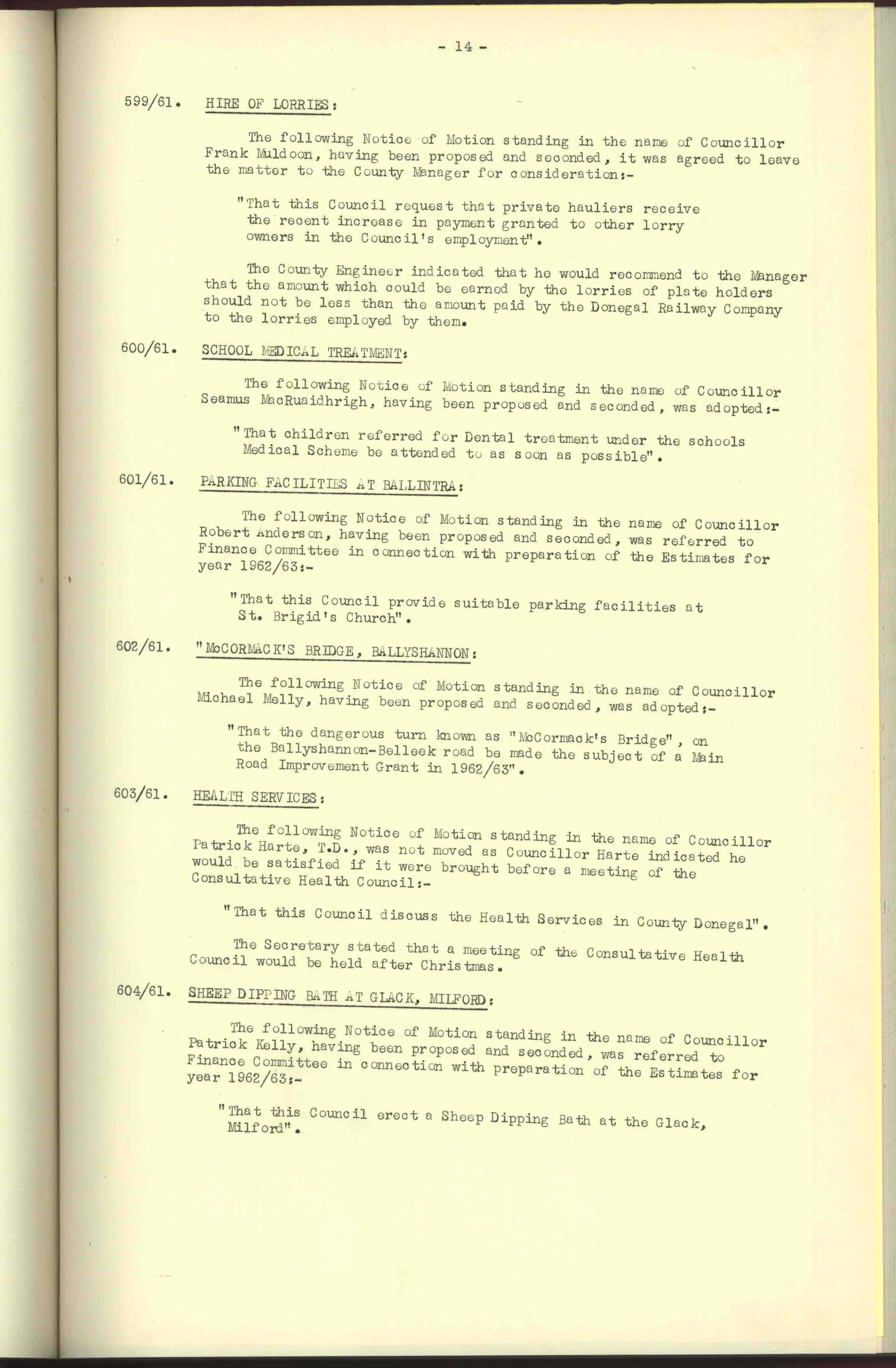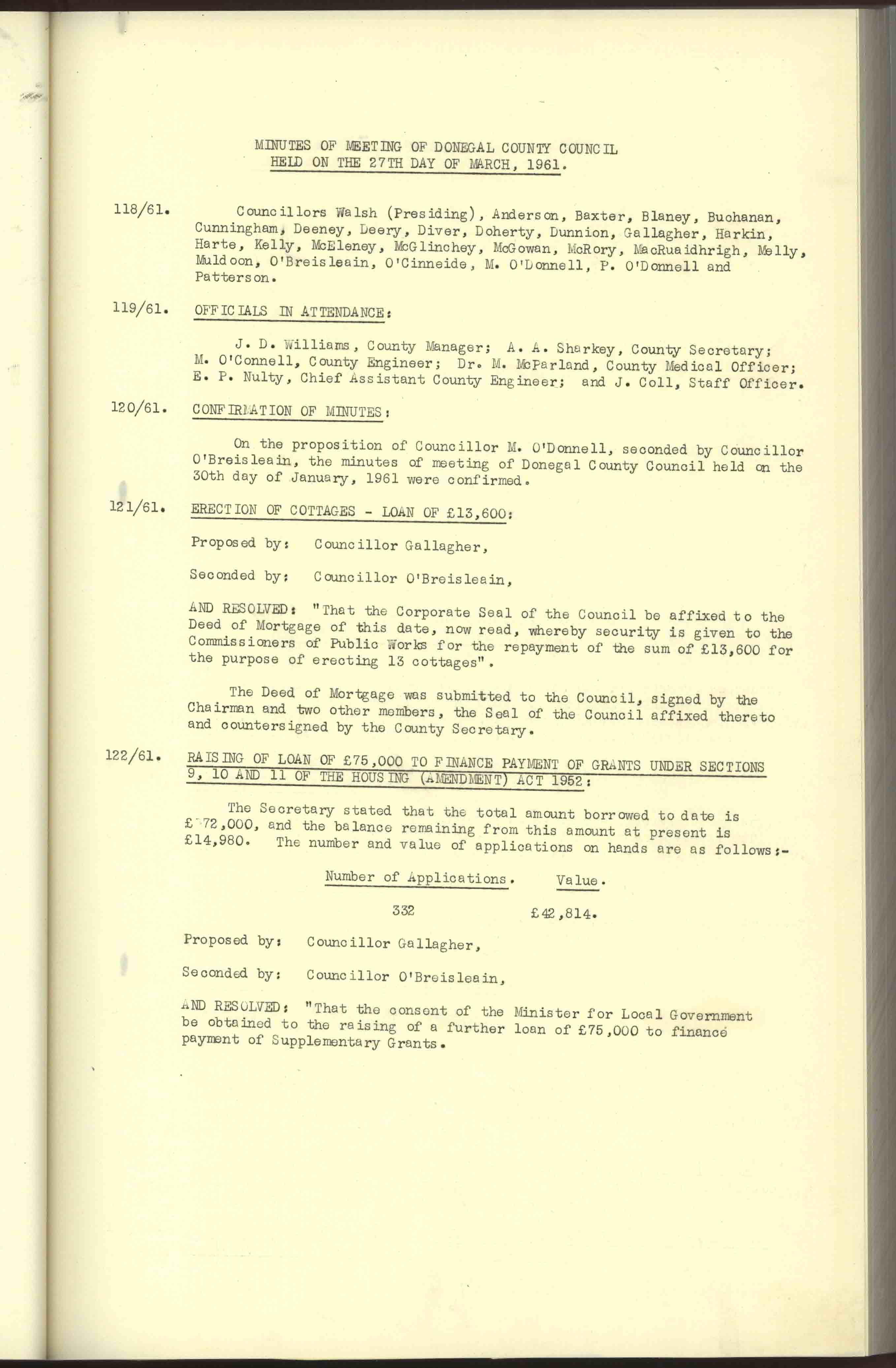 Donegal County Council Minutes, 1961