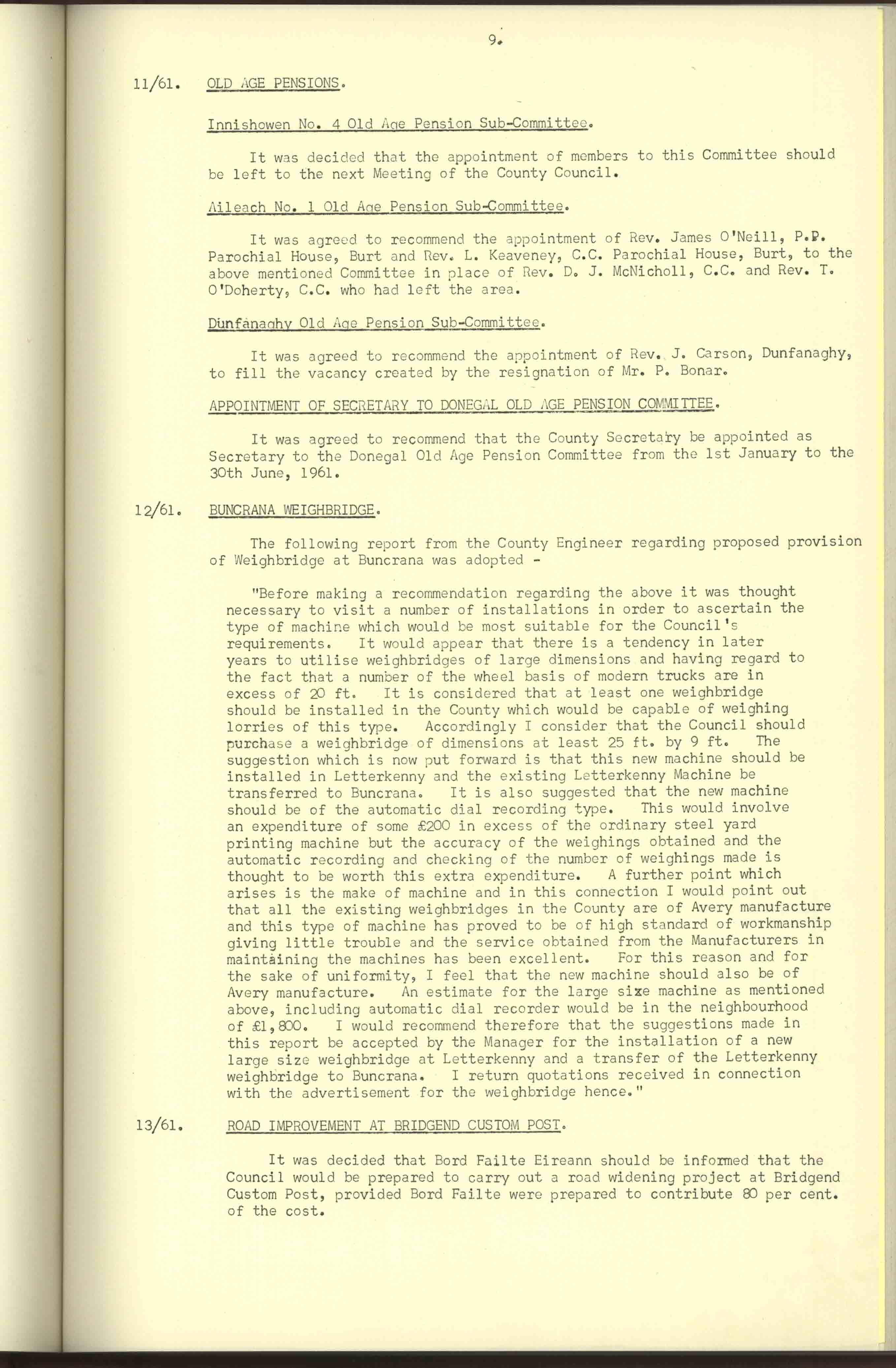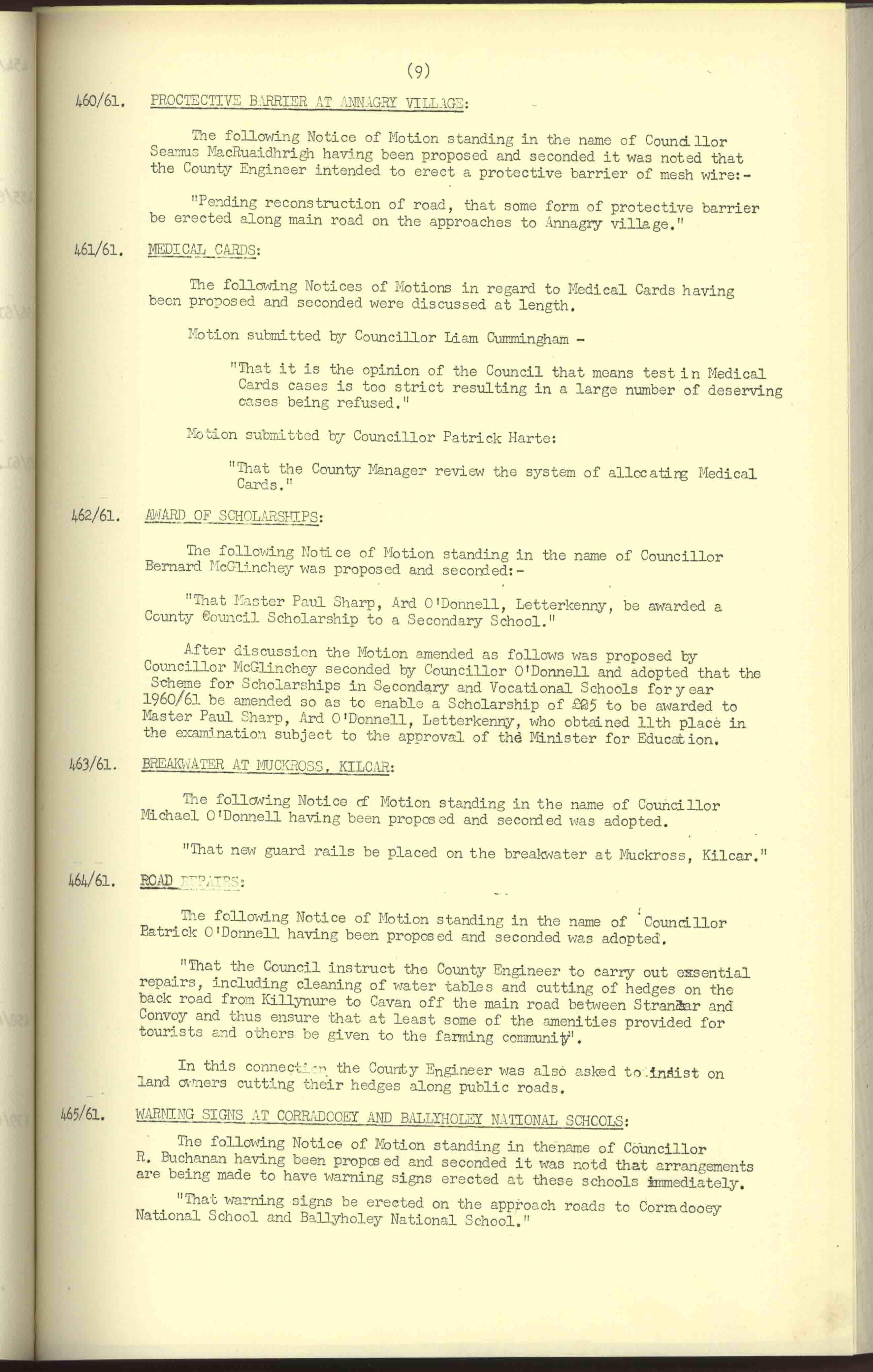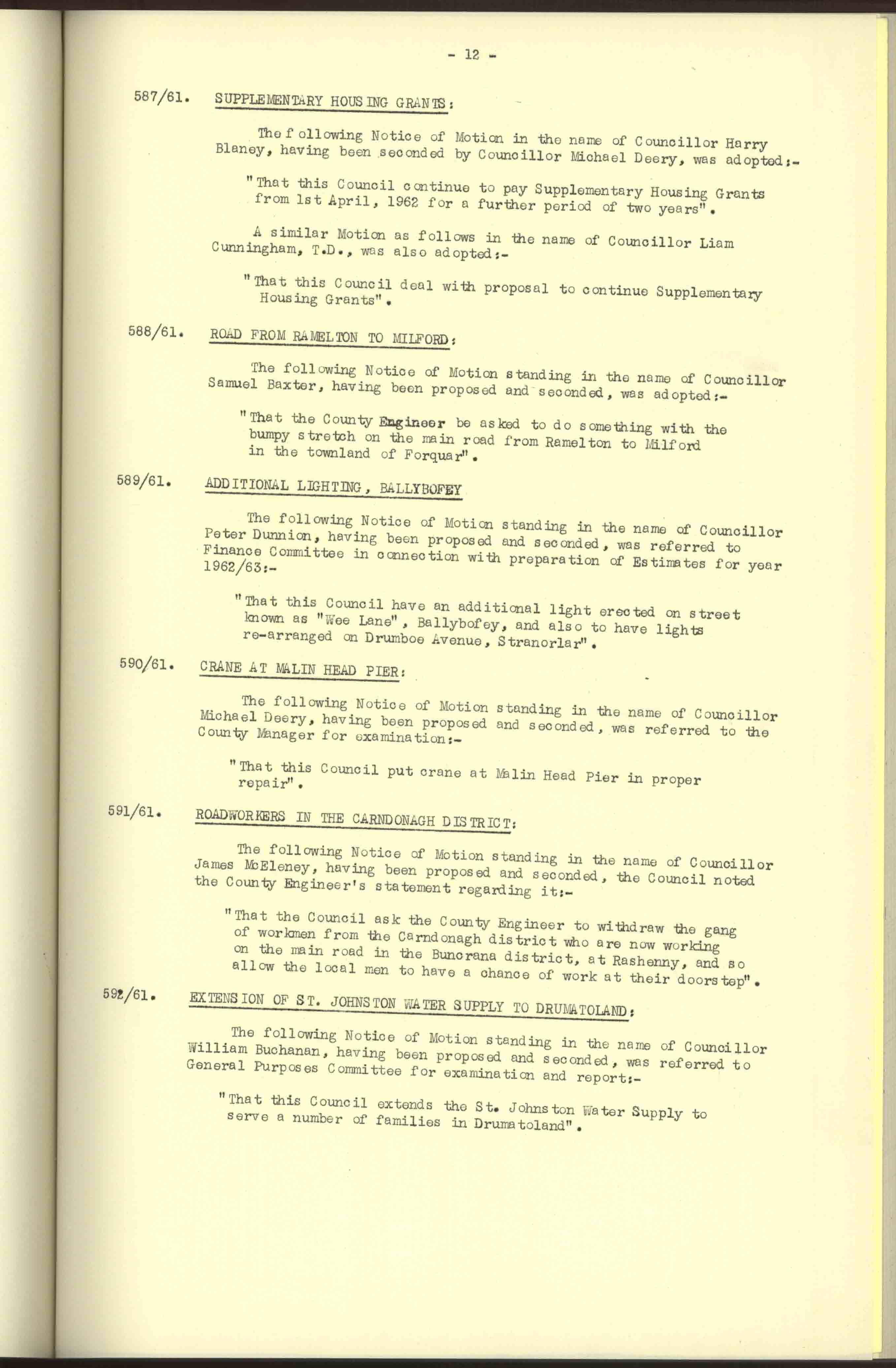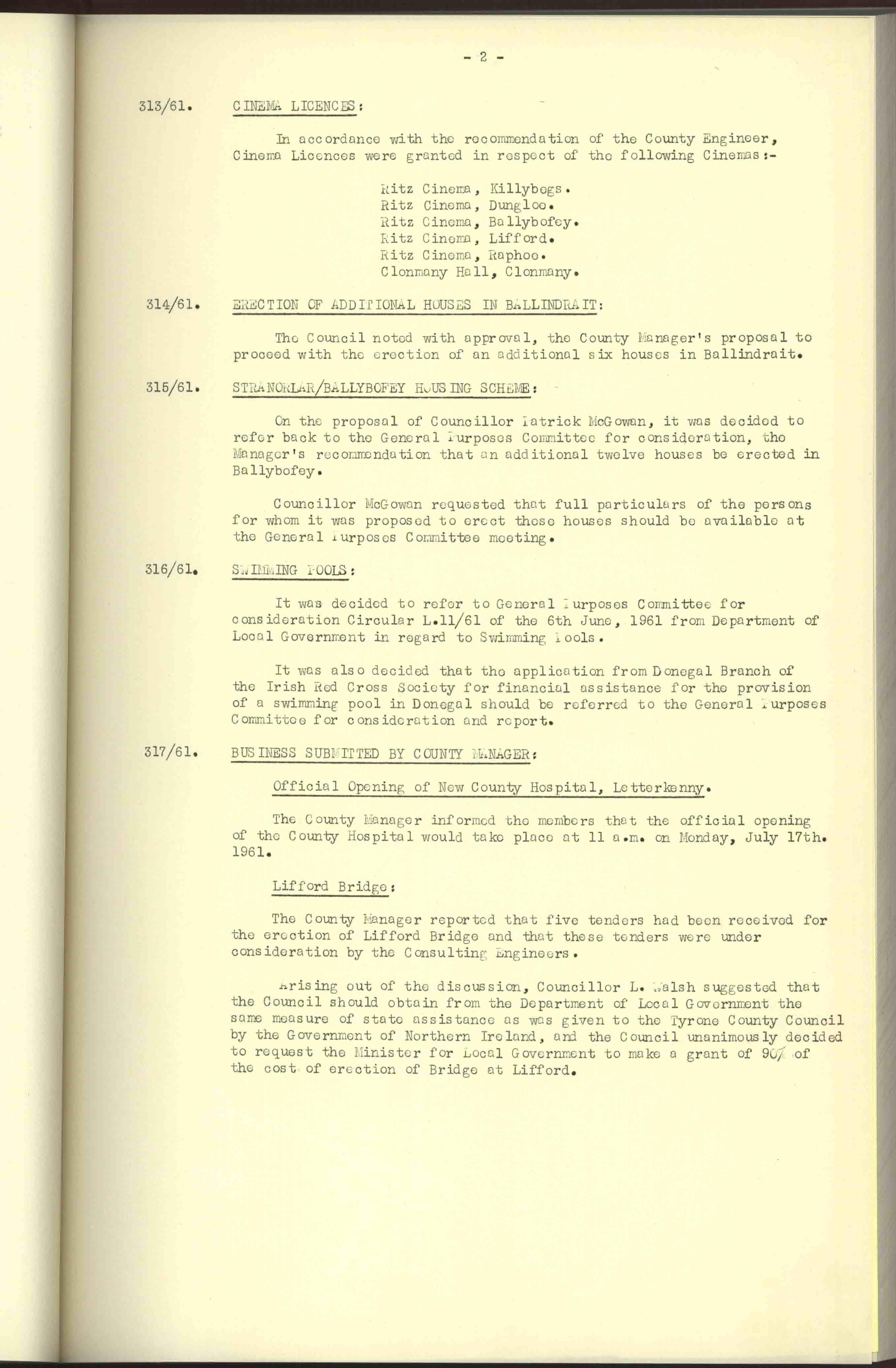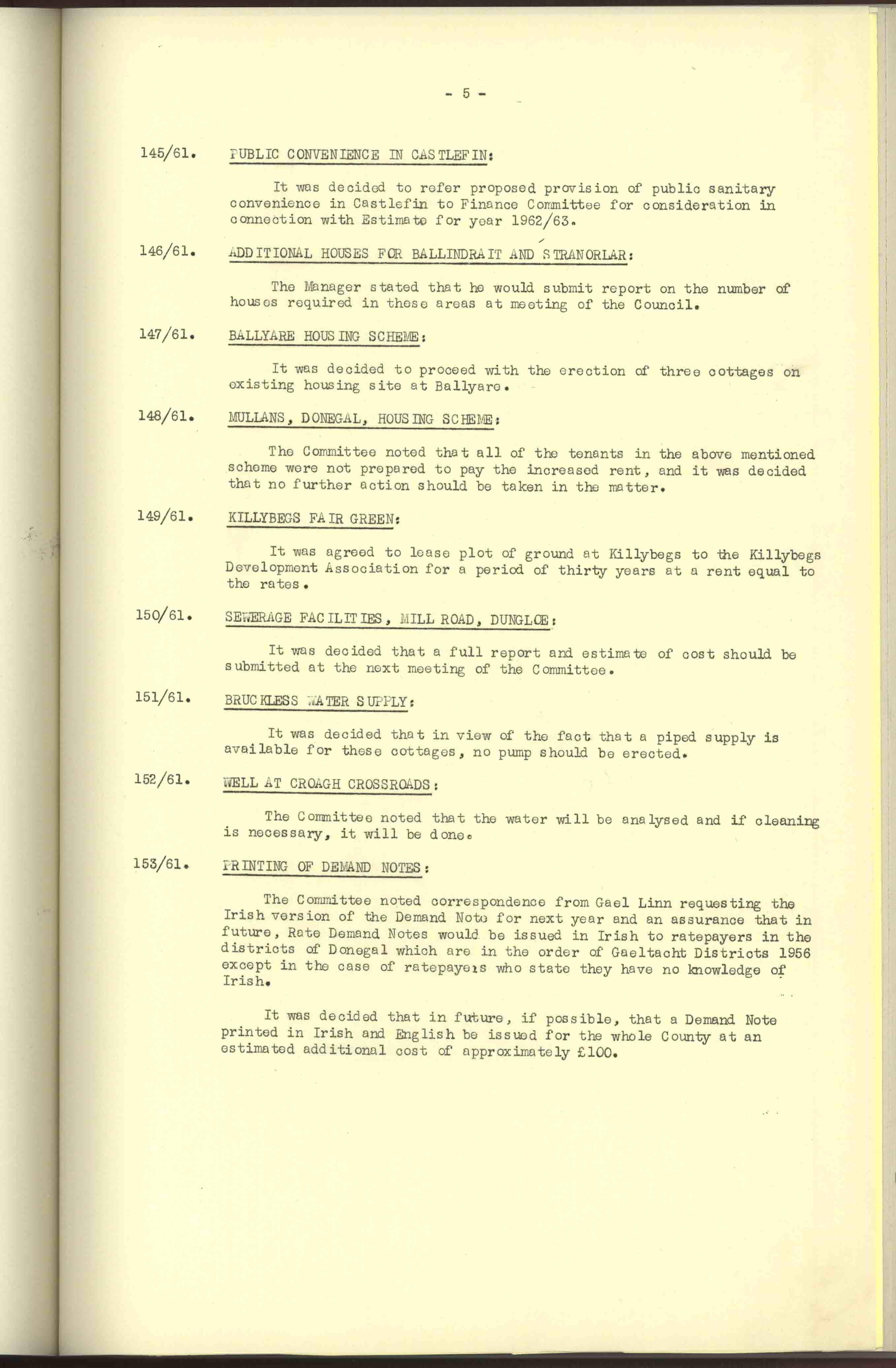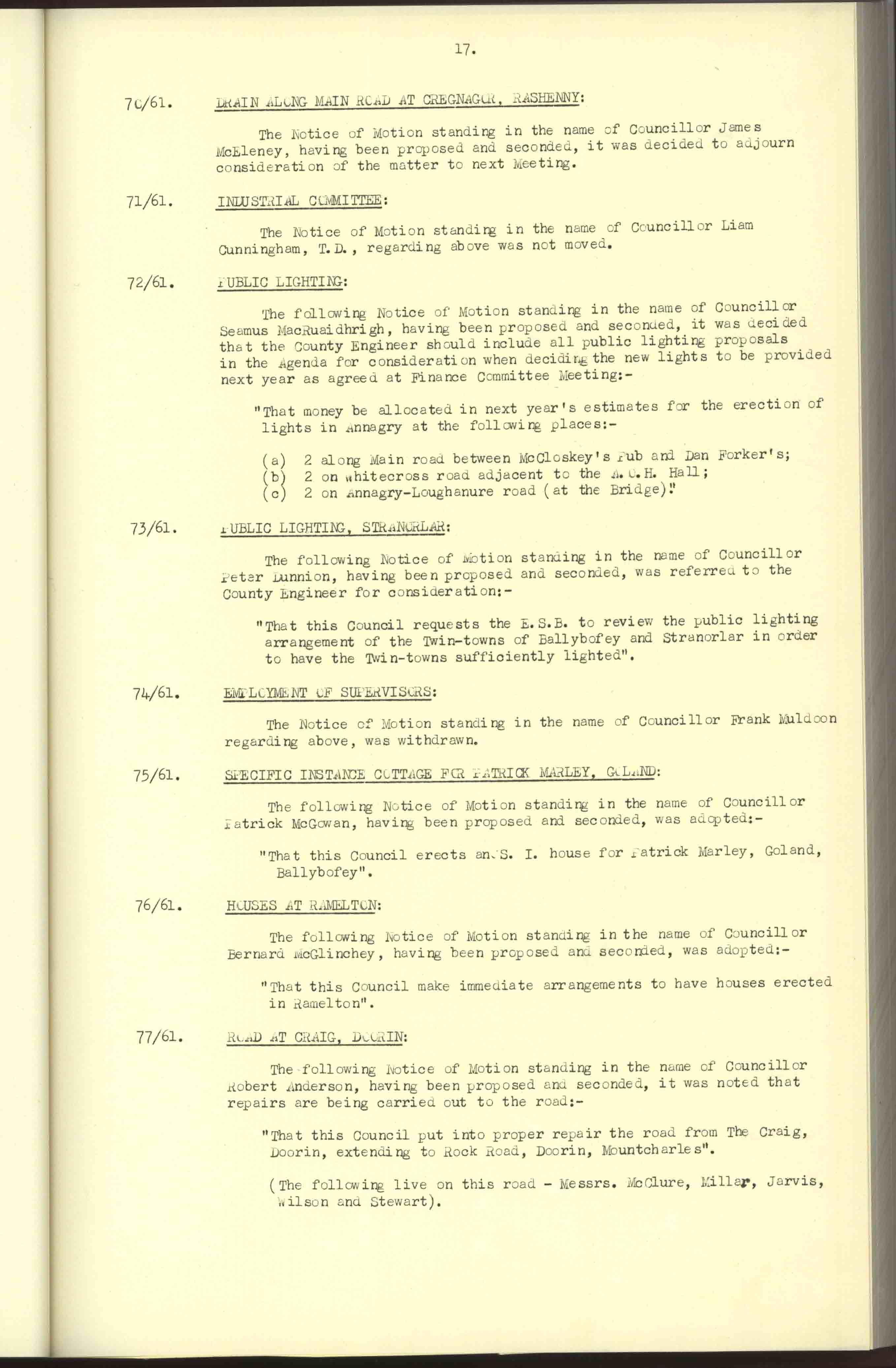 Donegal County Council Minutes, 1961