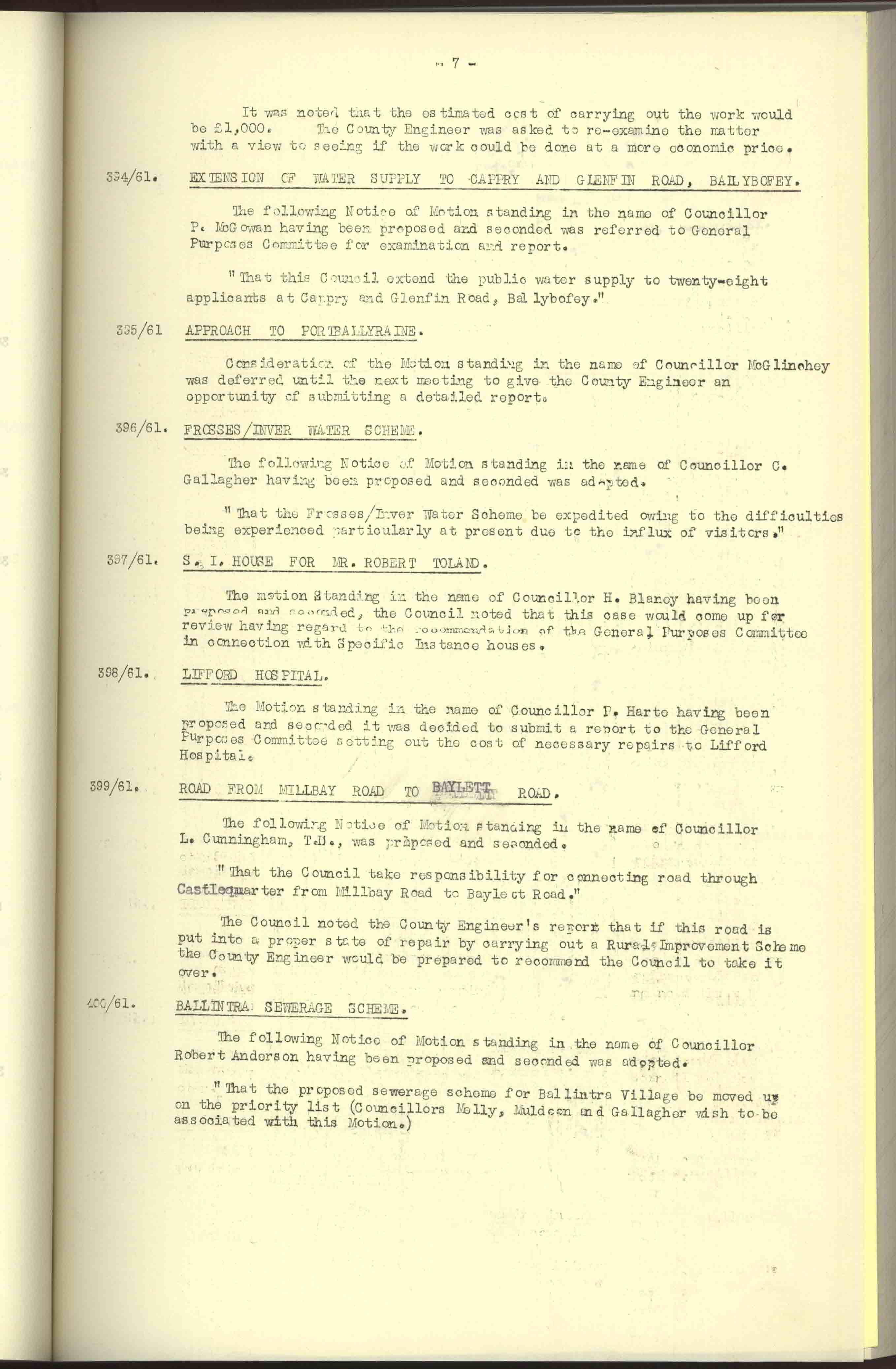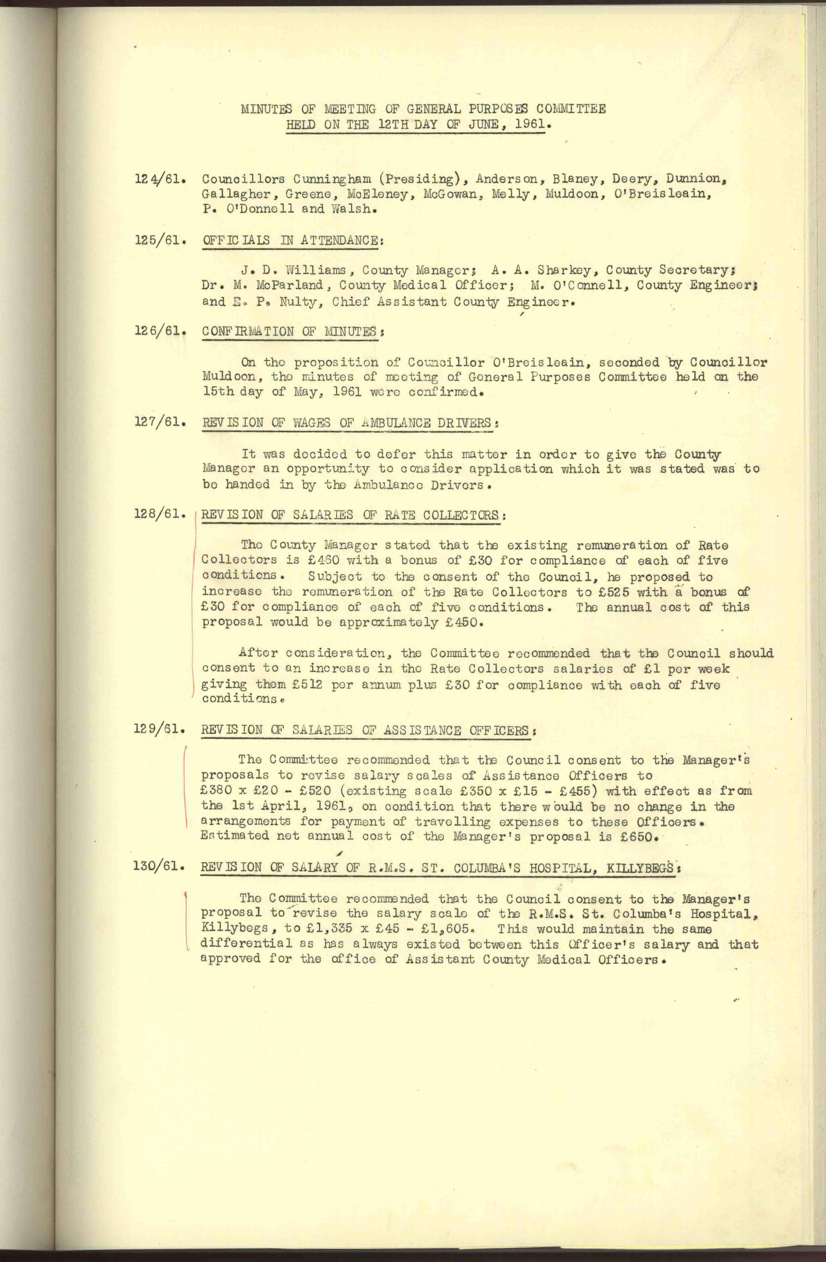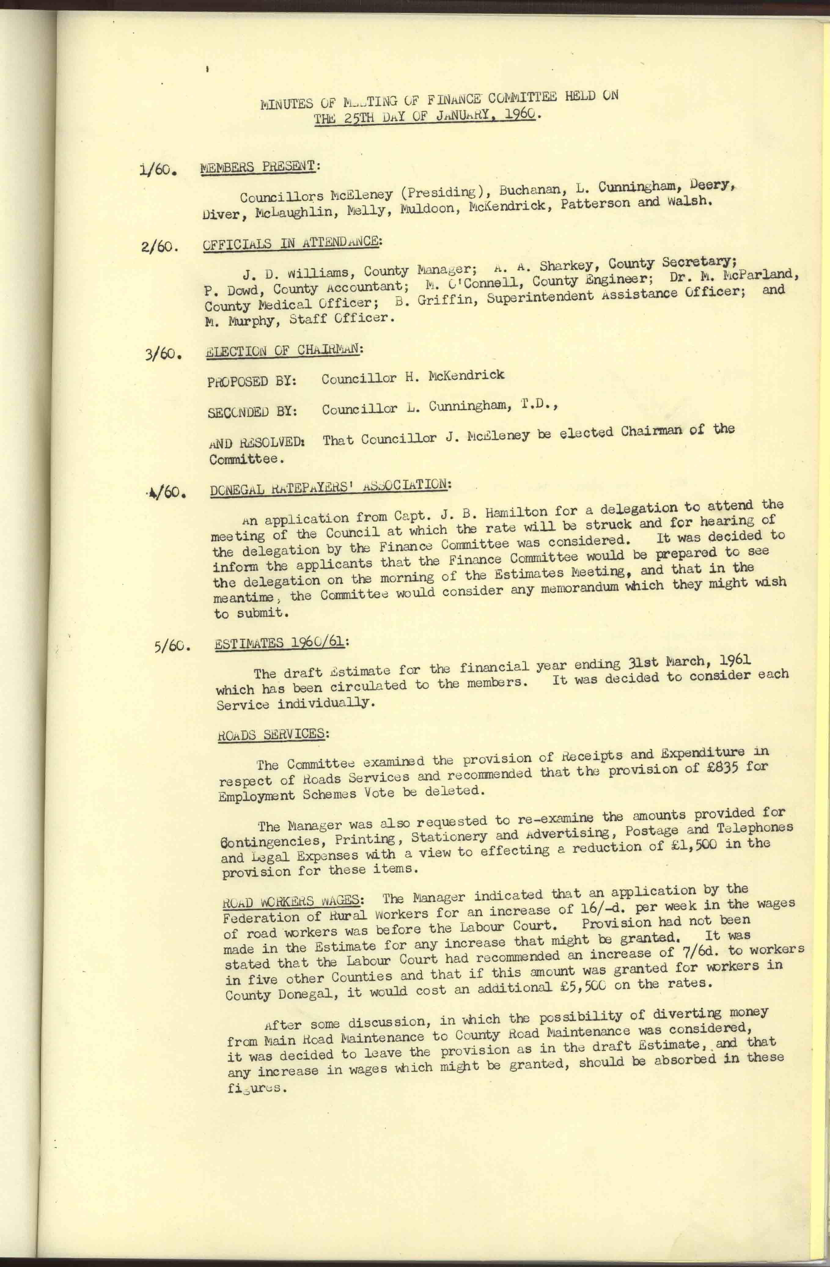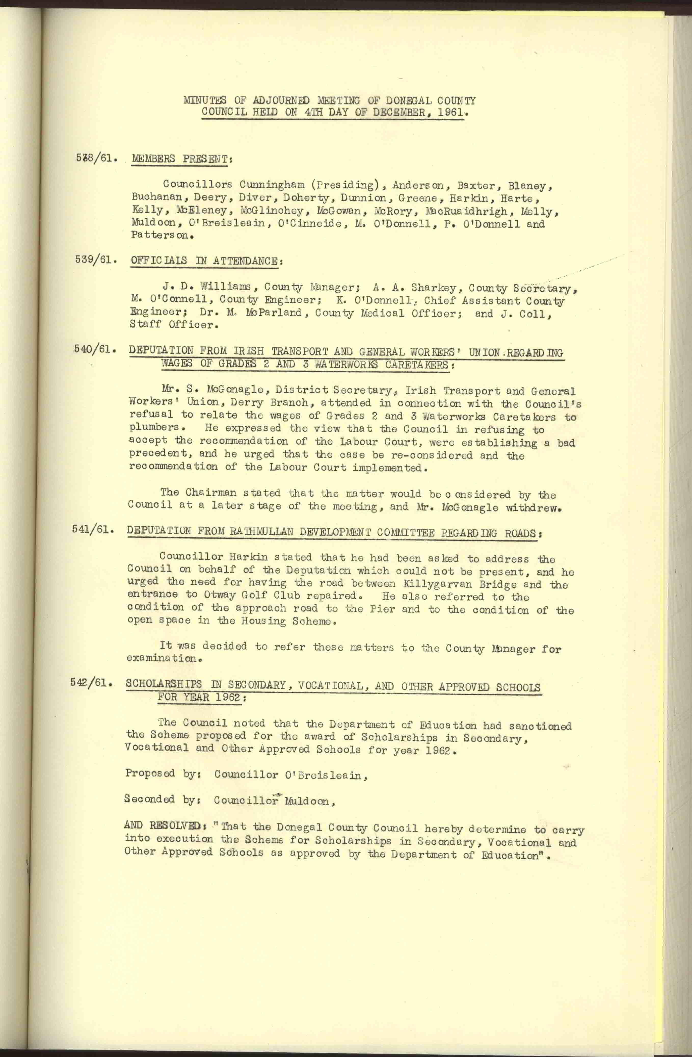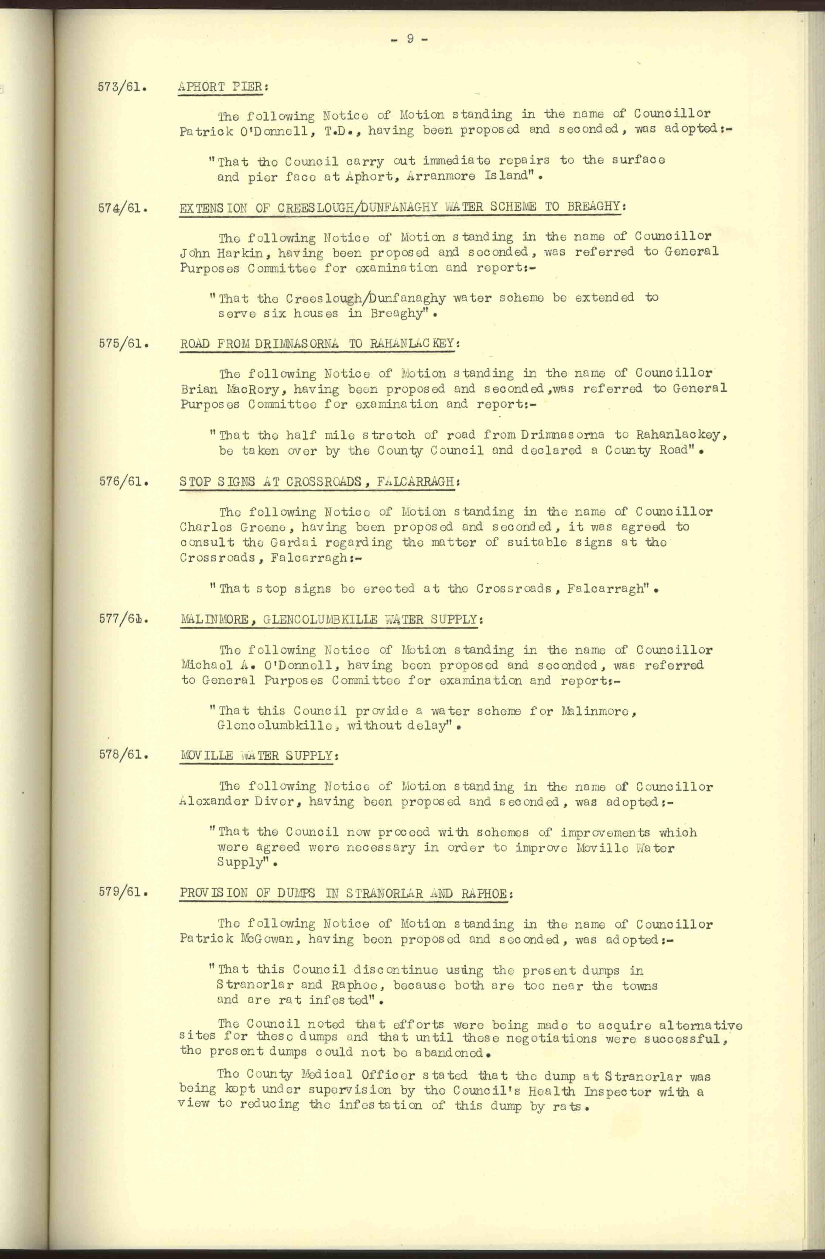 Donegal County Council Minutes, 1961