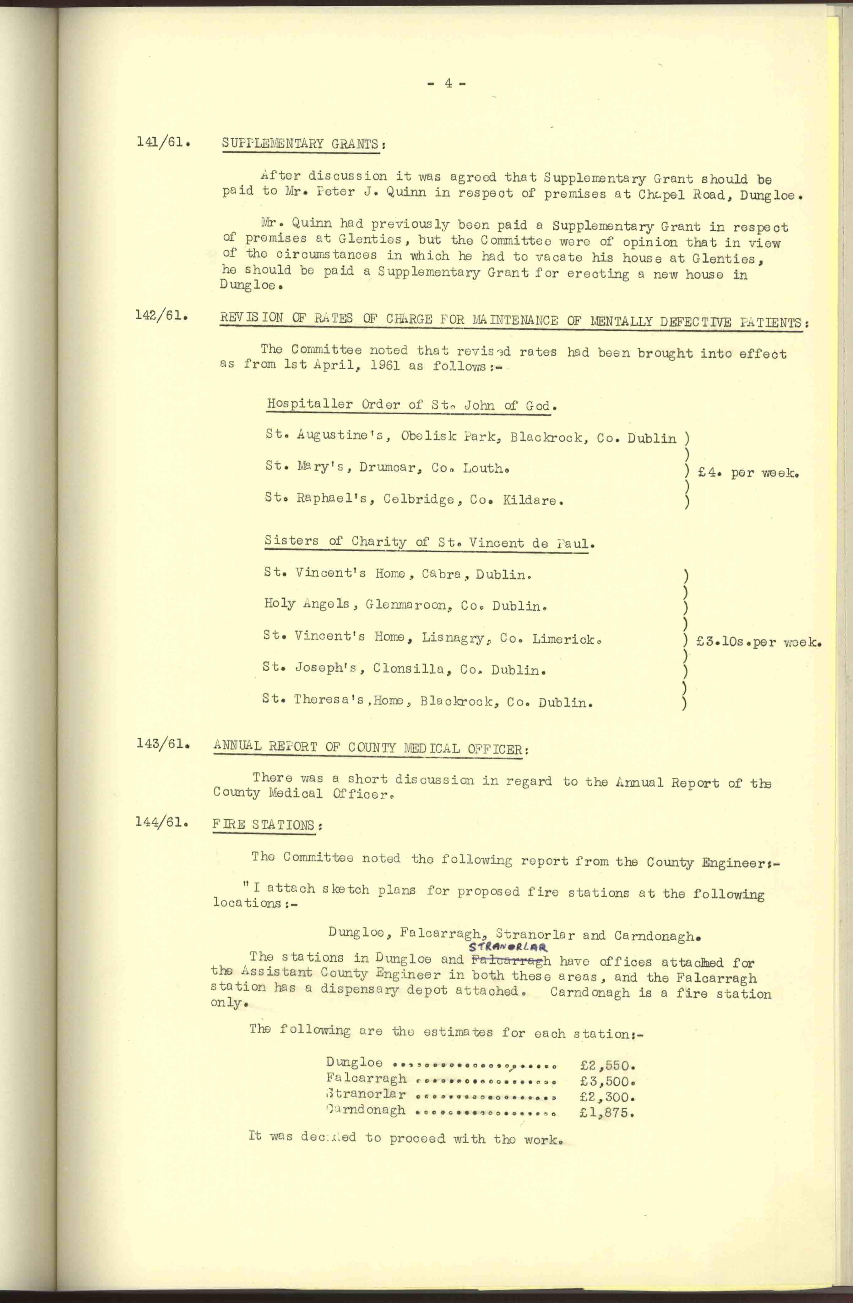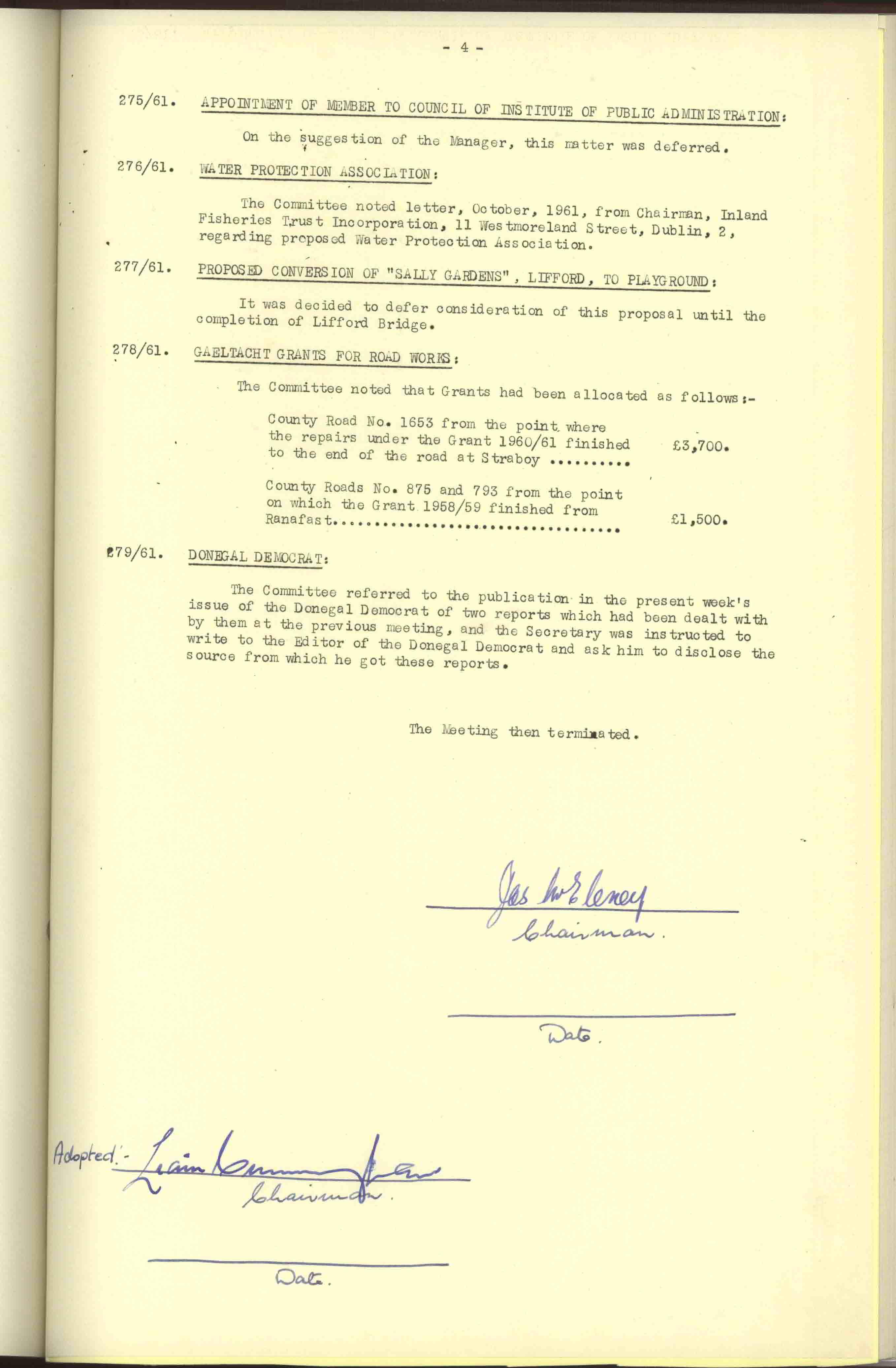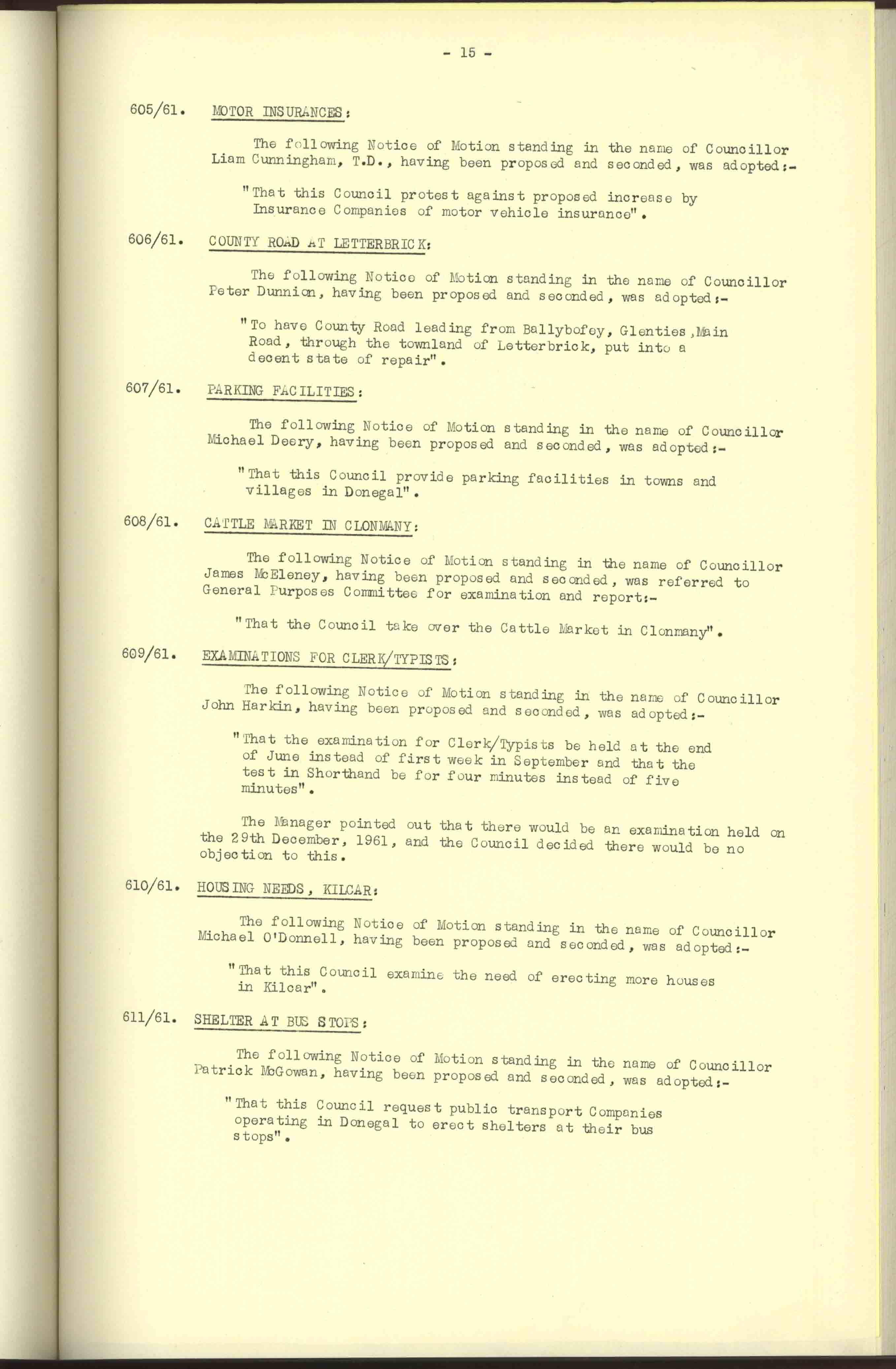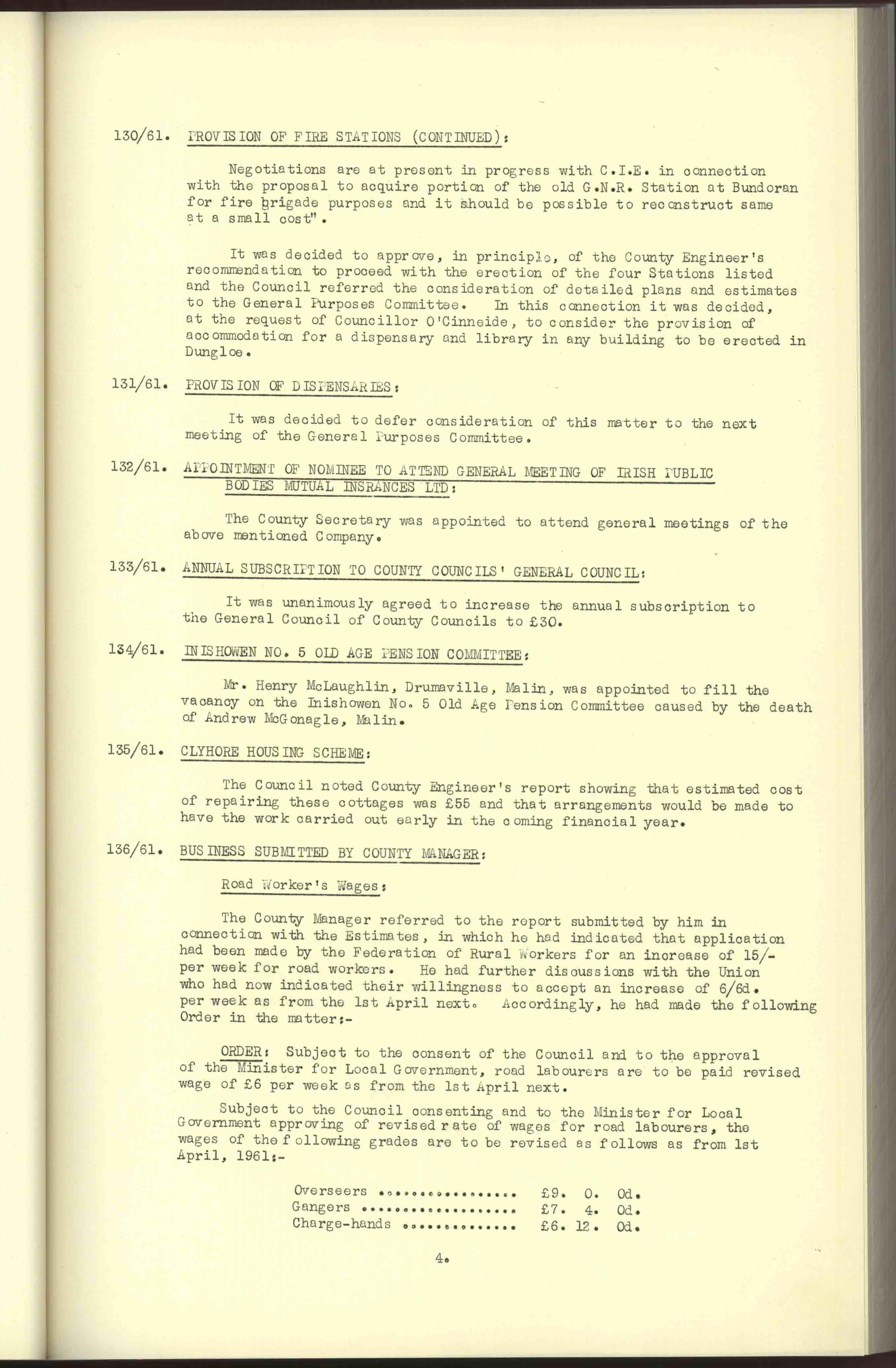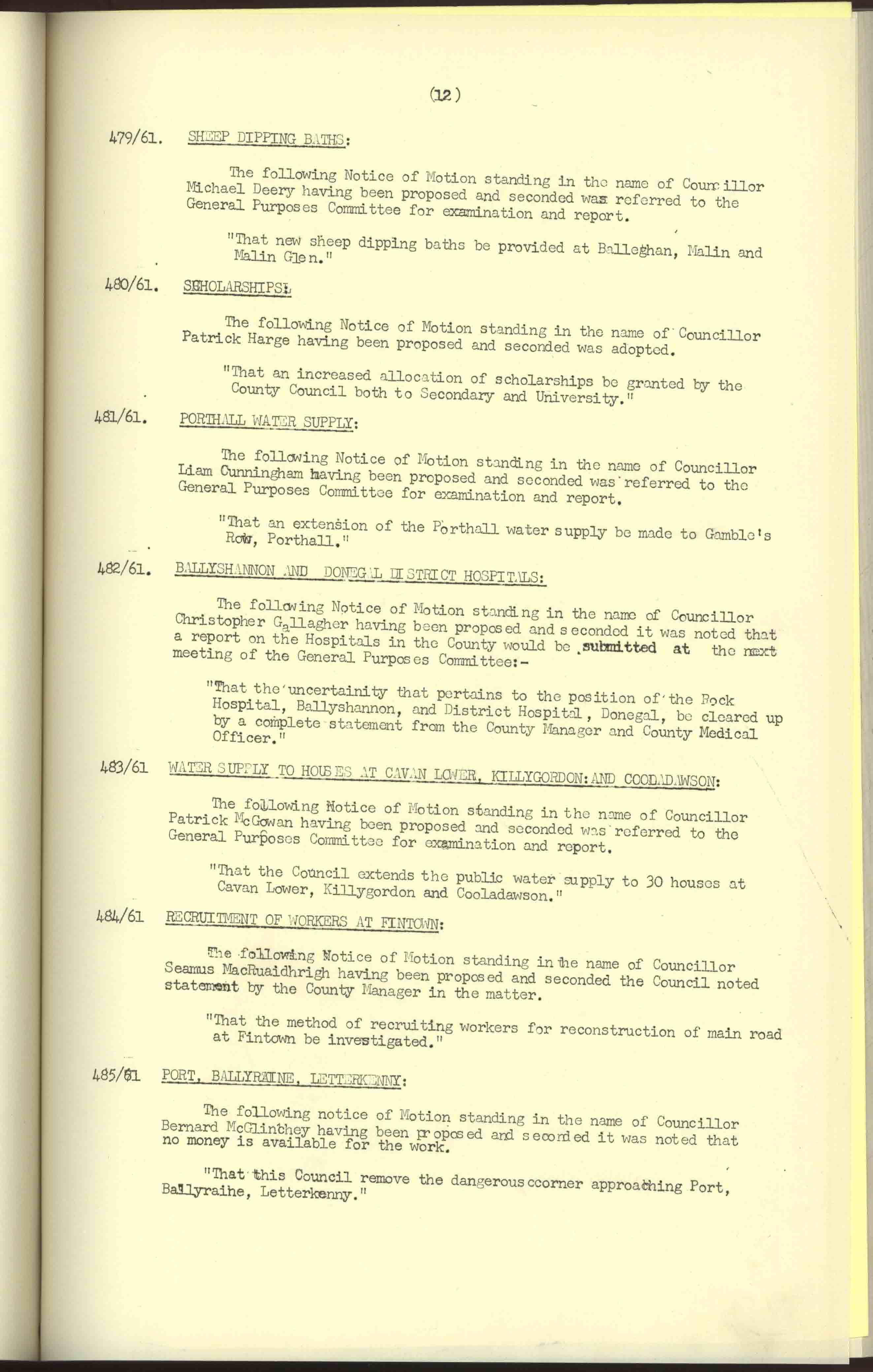 Donegal County Council Minutes, 1961
