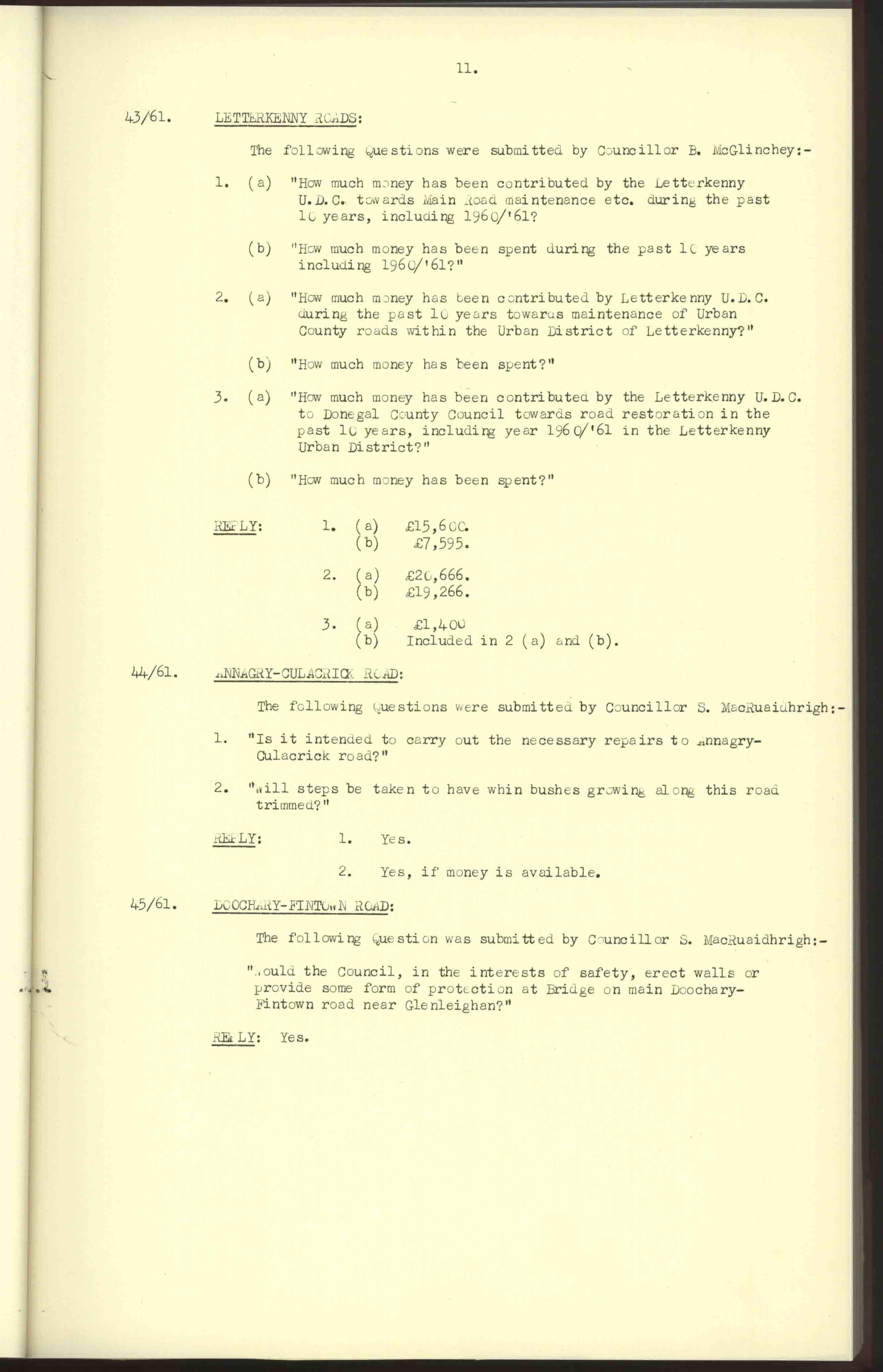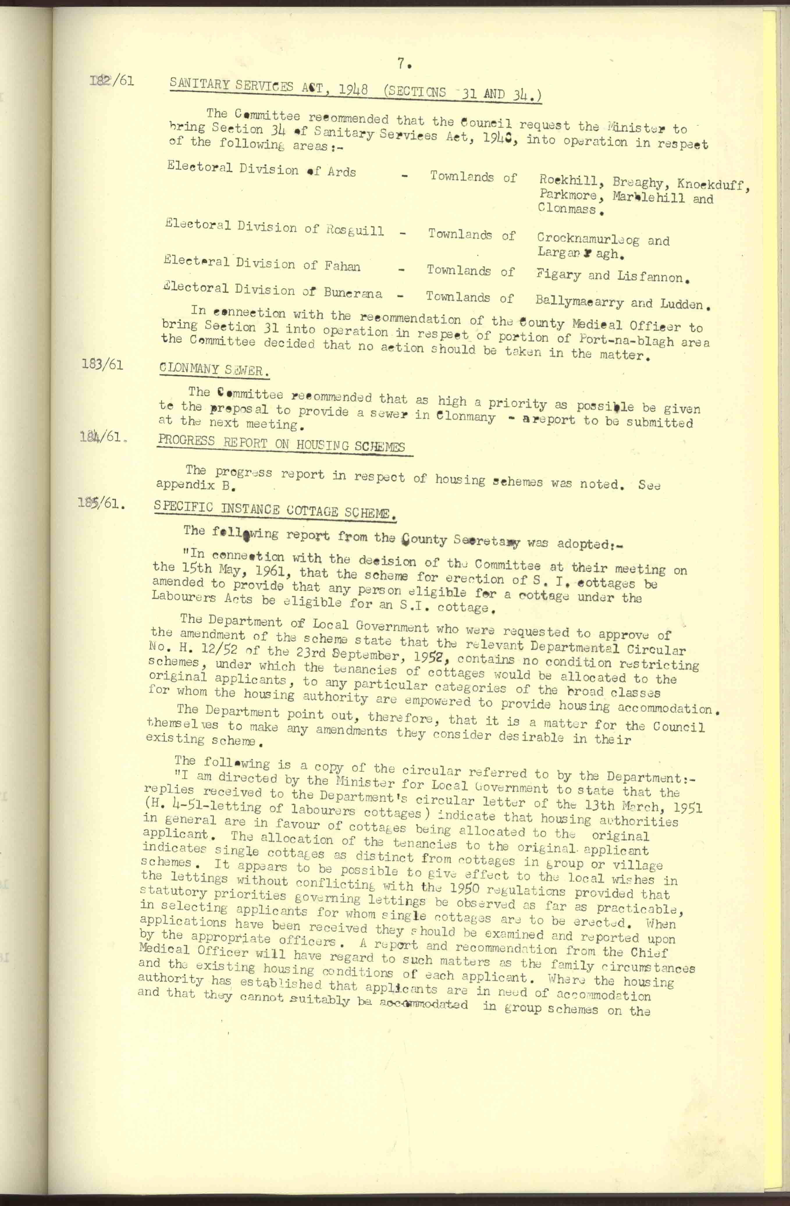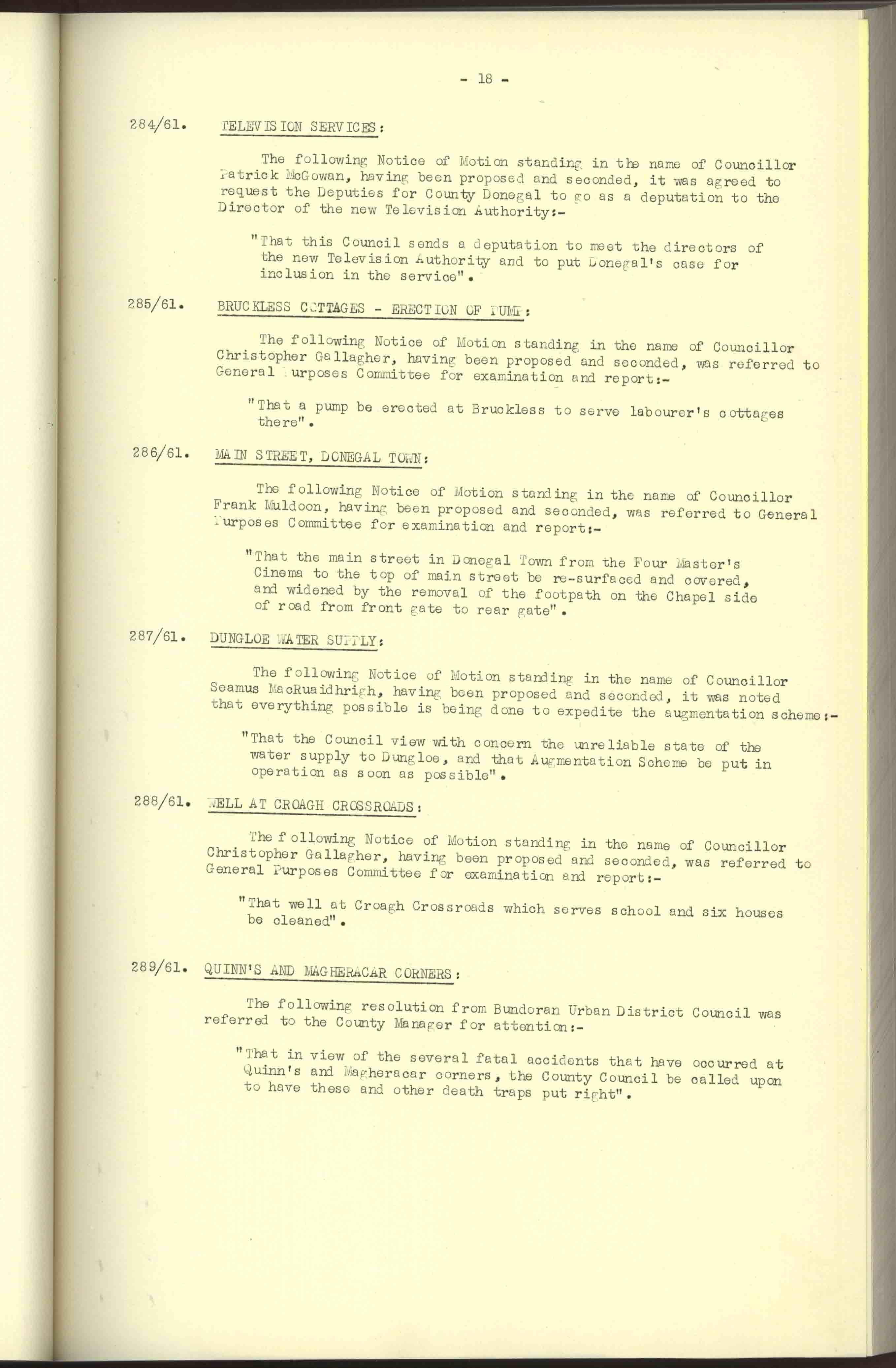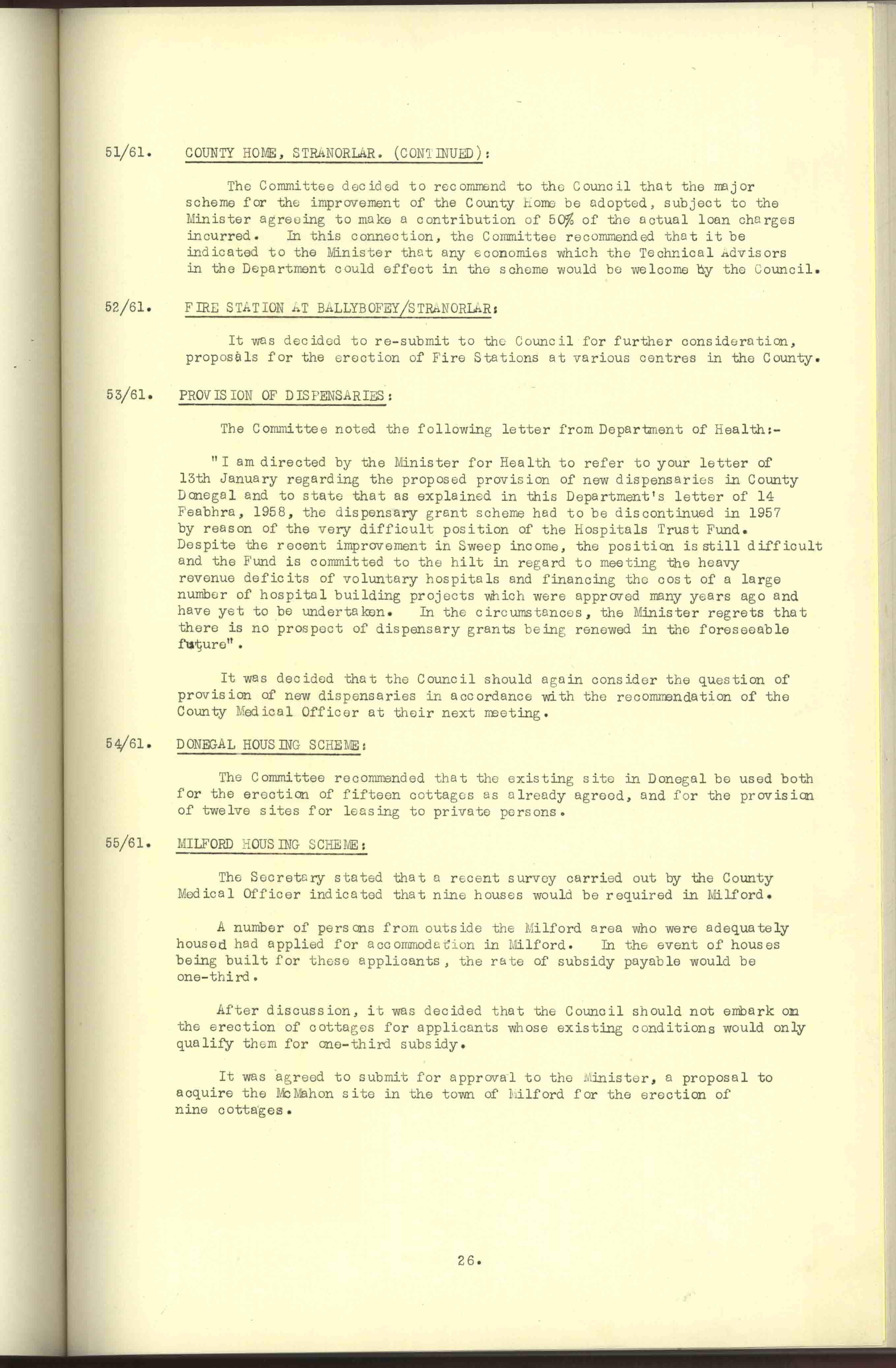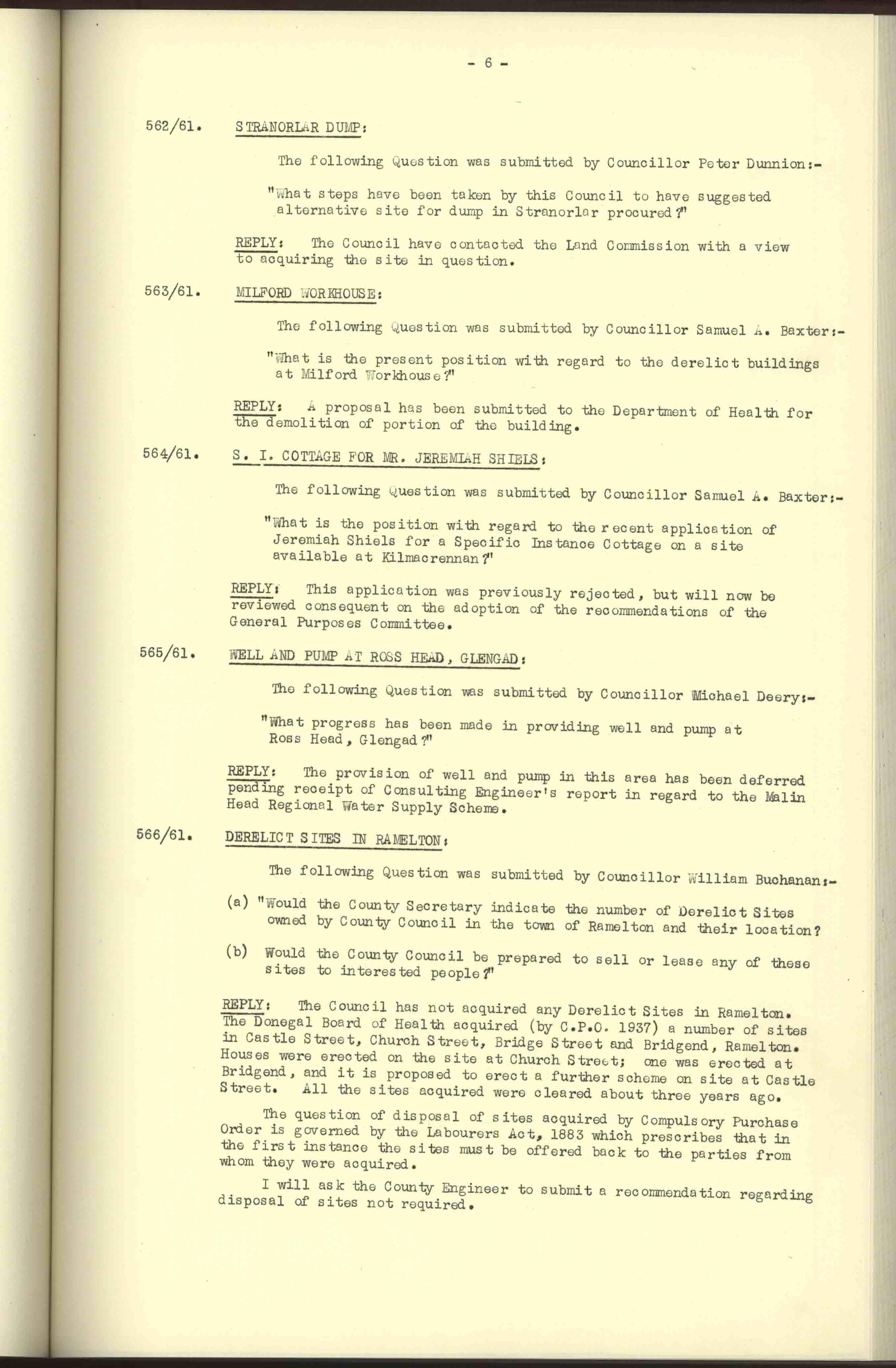 Donegal County Council Minutes, 1961