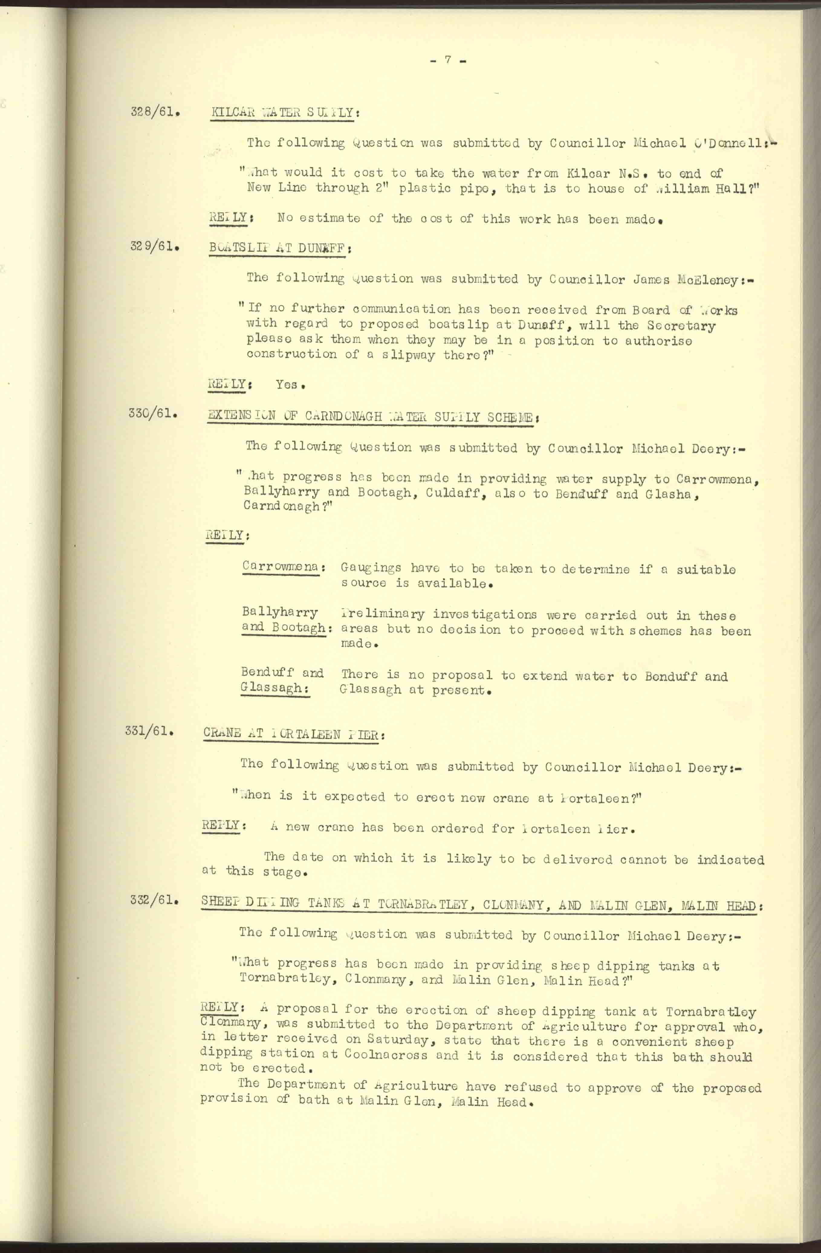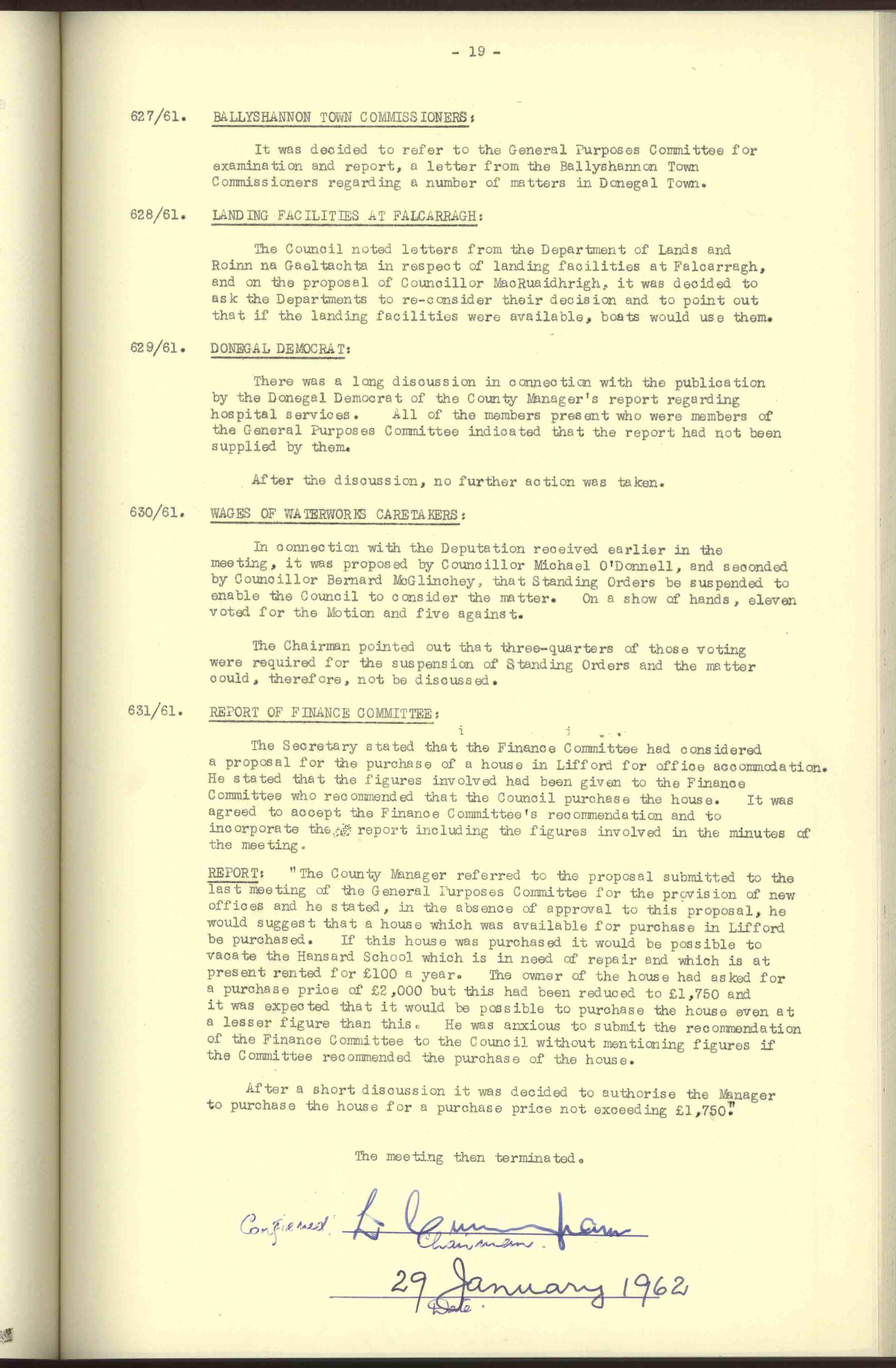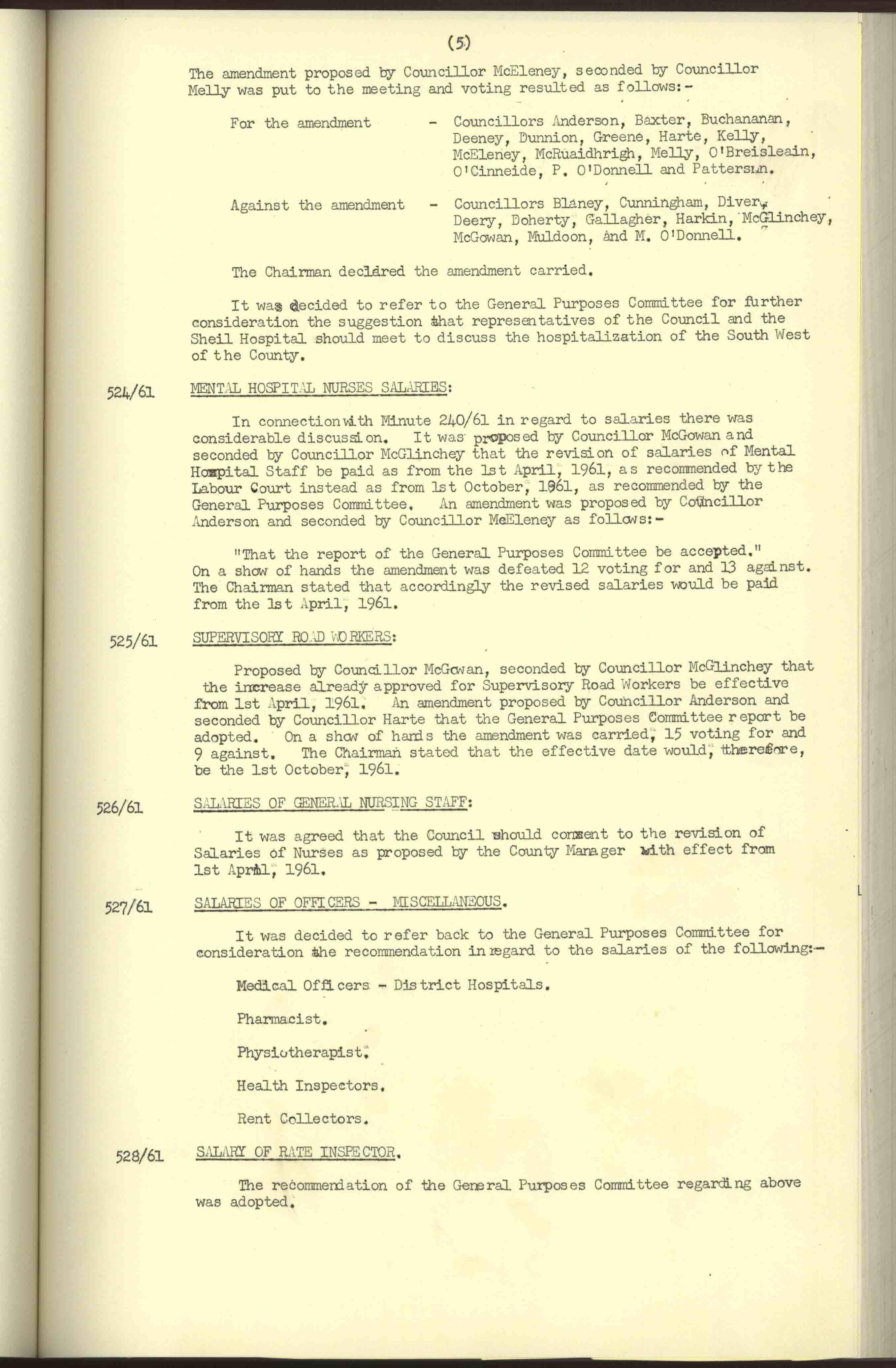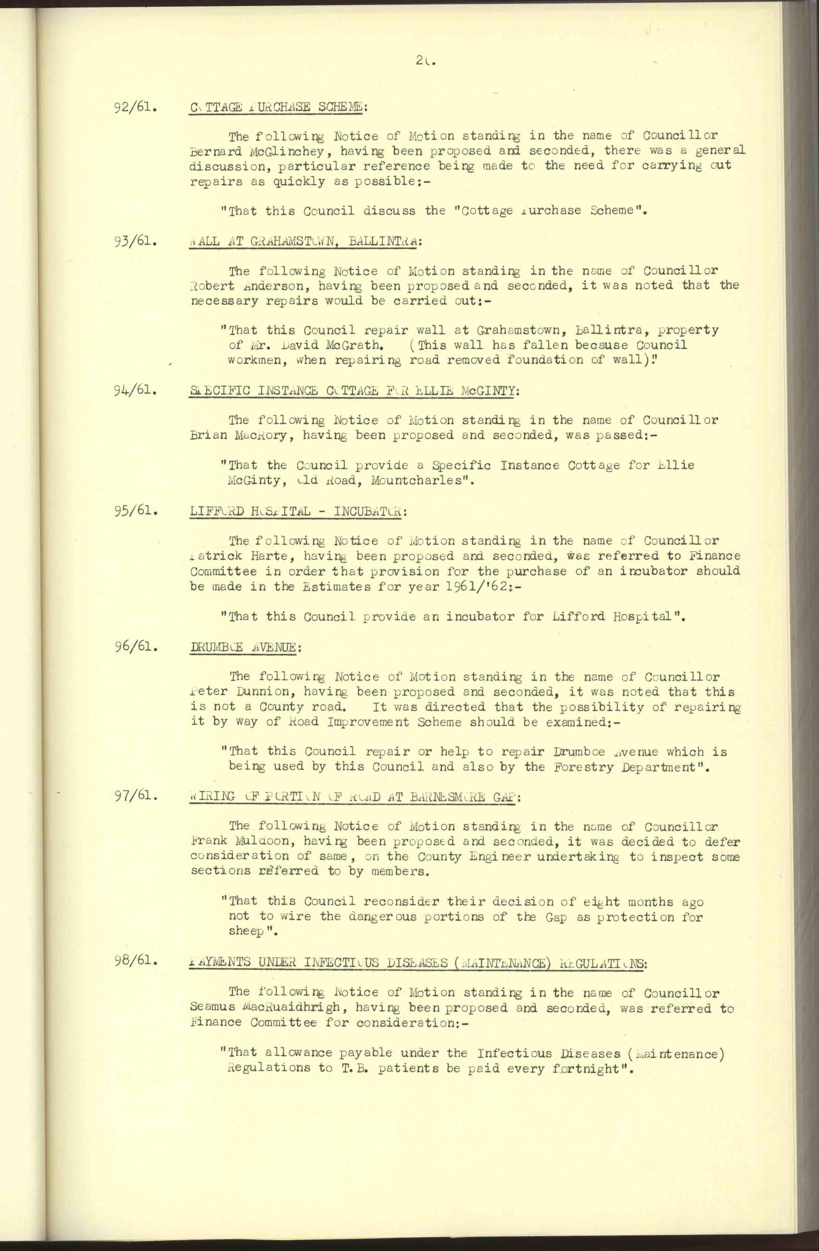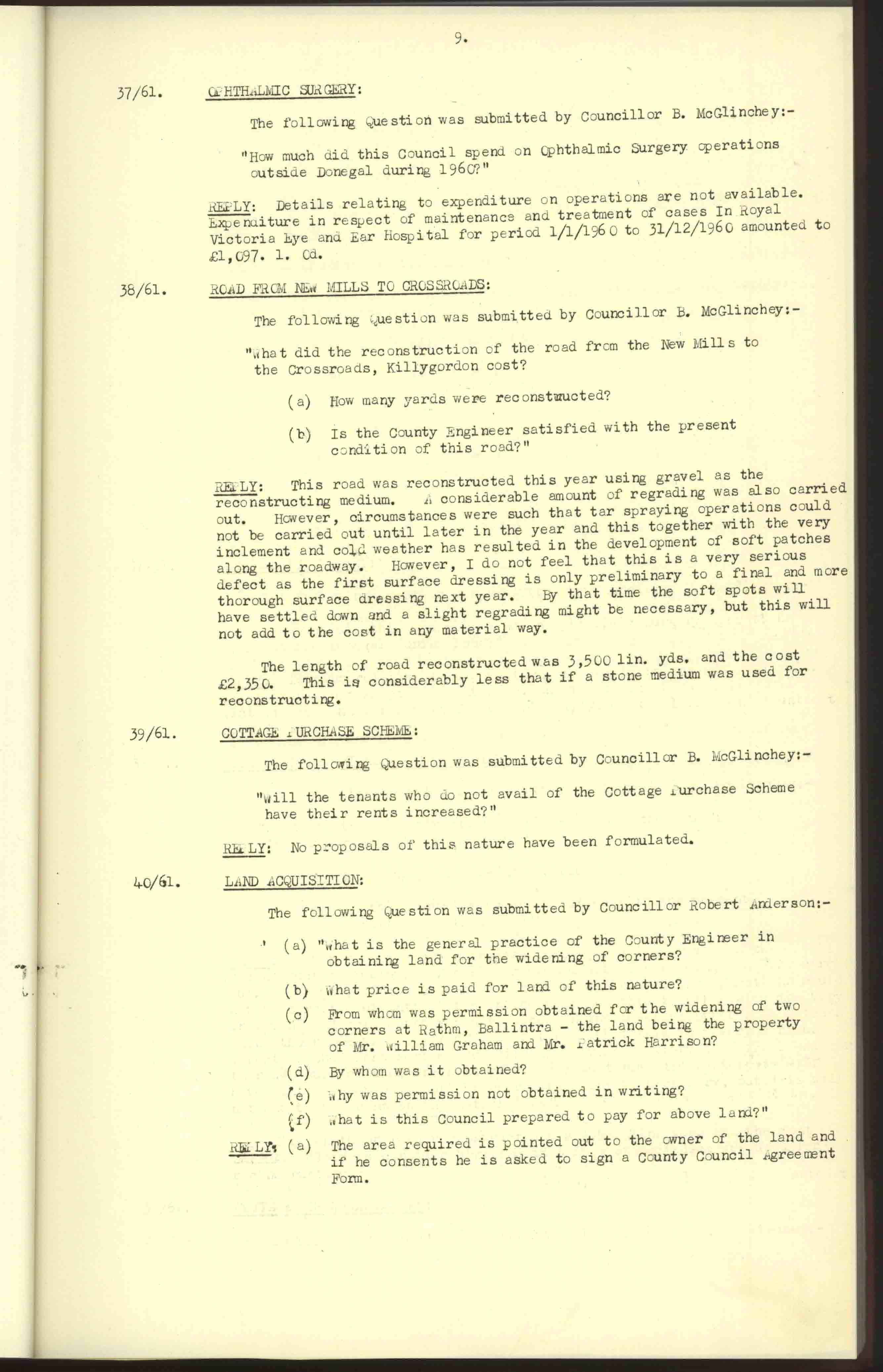 Donegal County Council Minutes, 1961