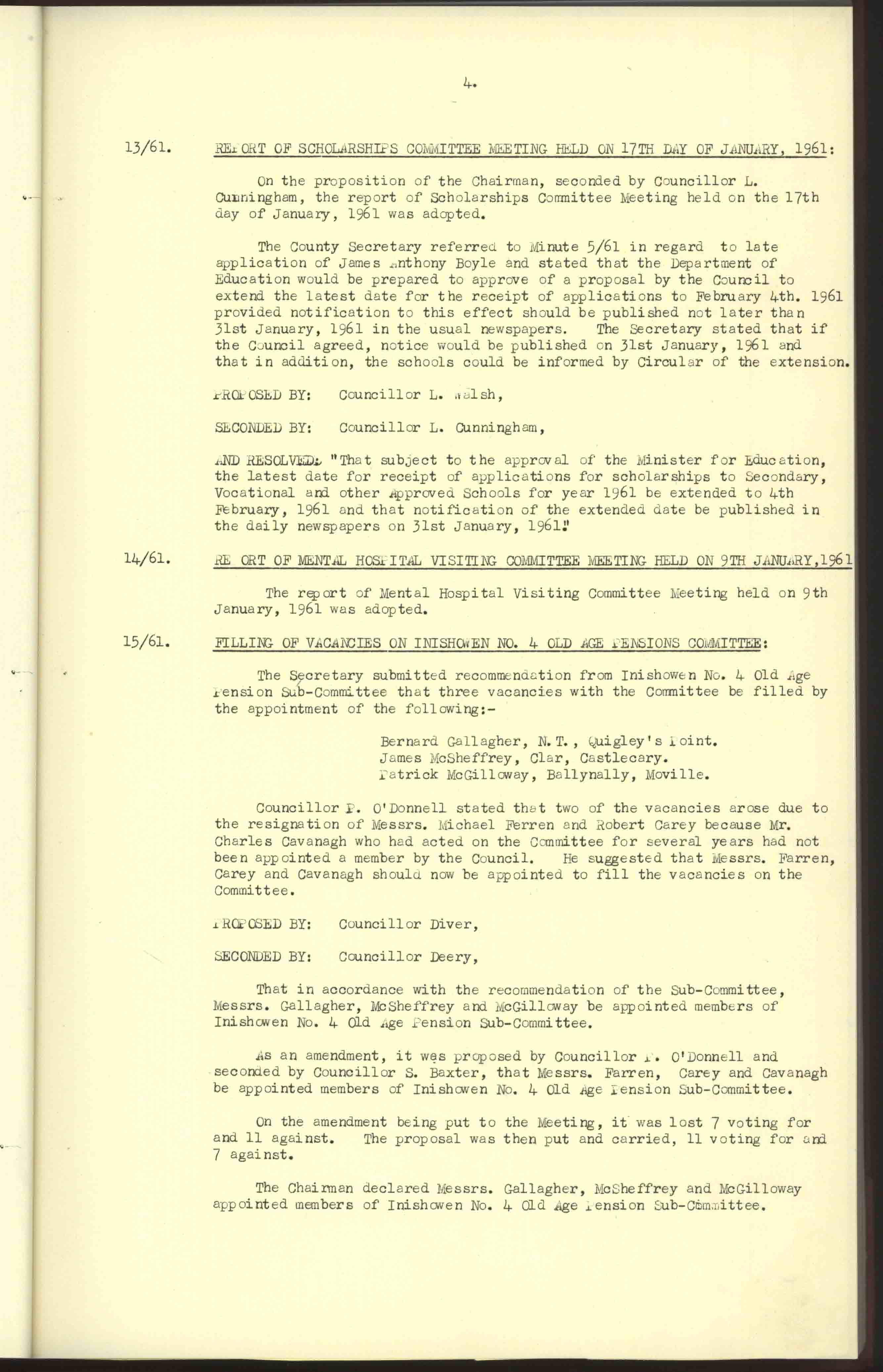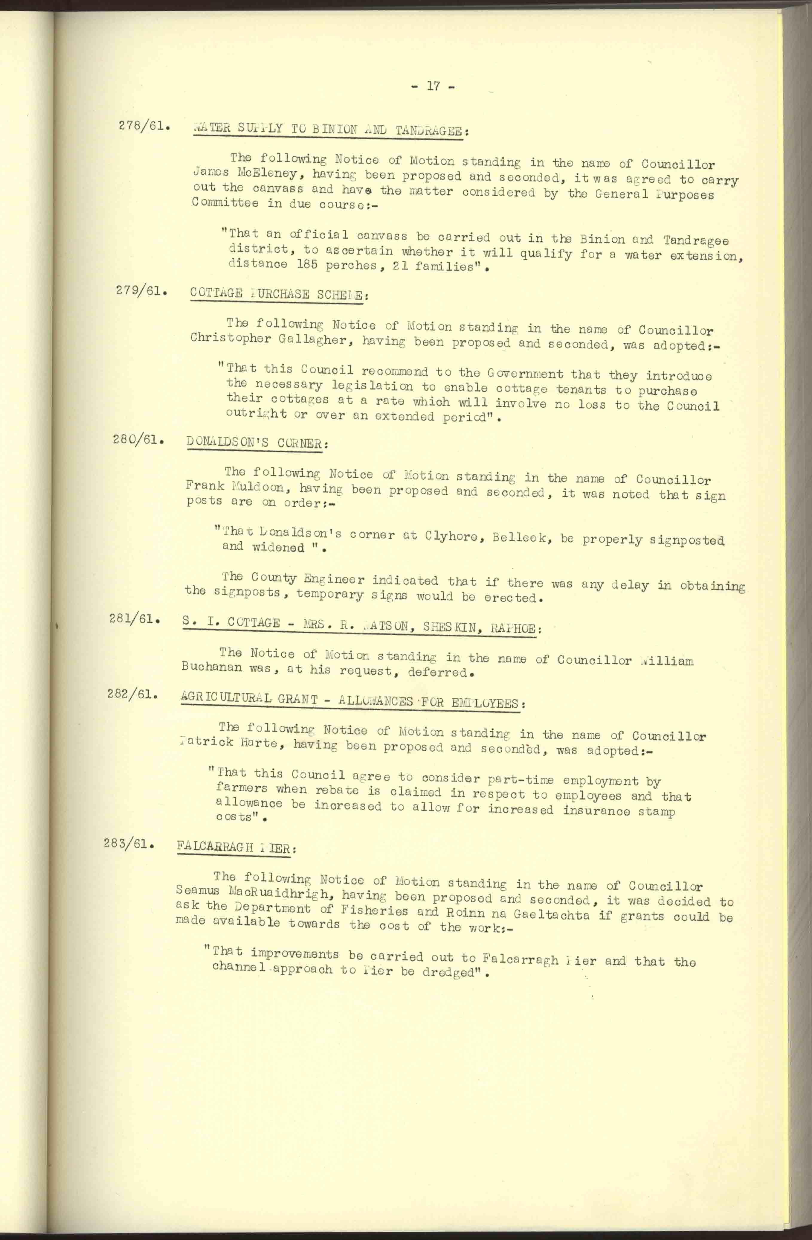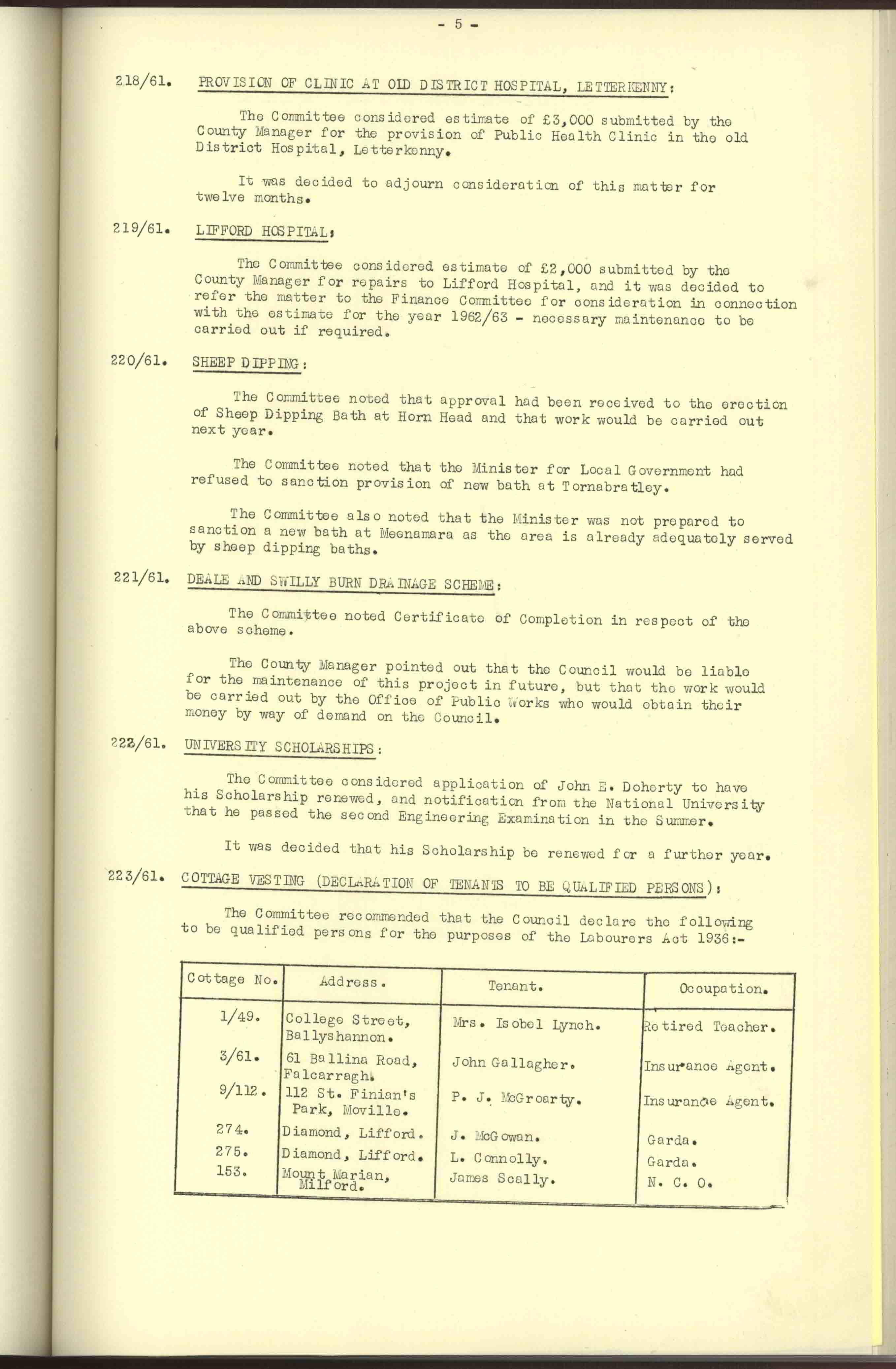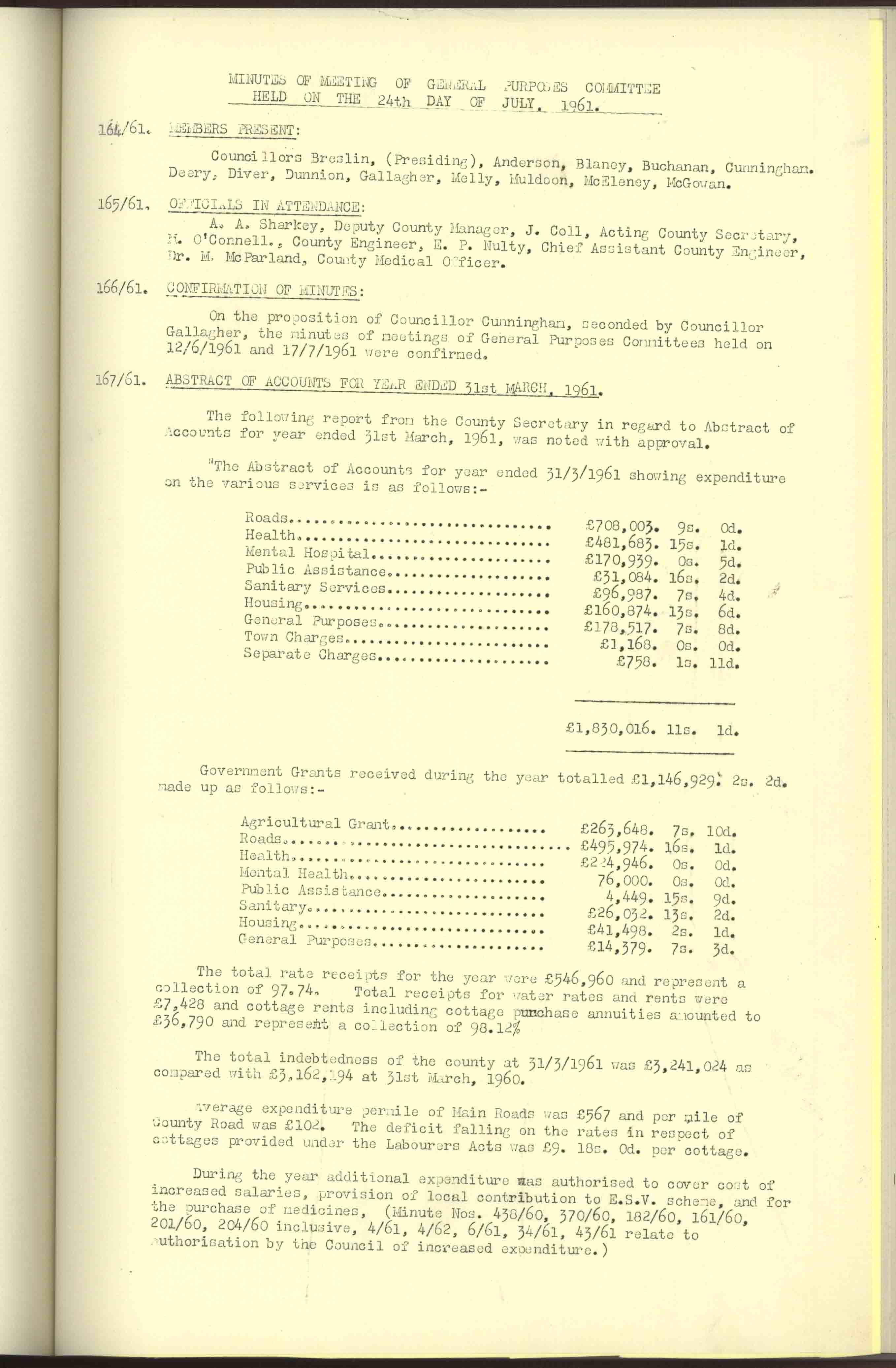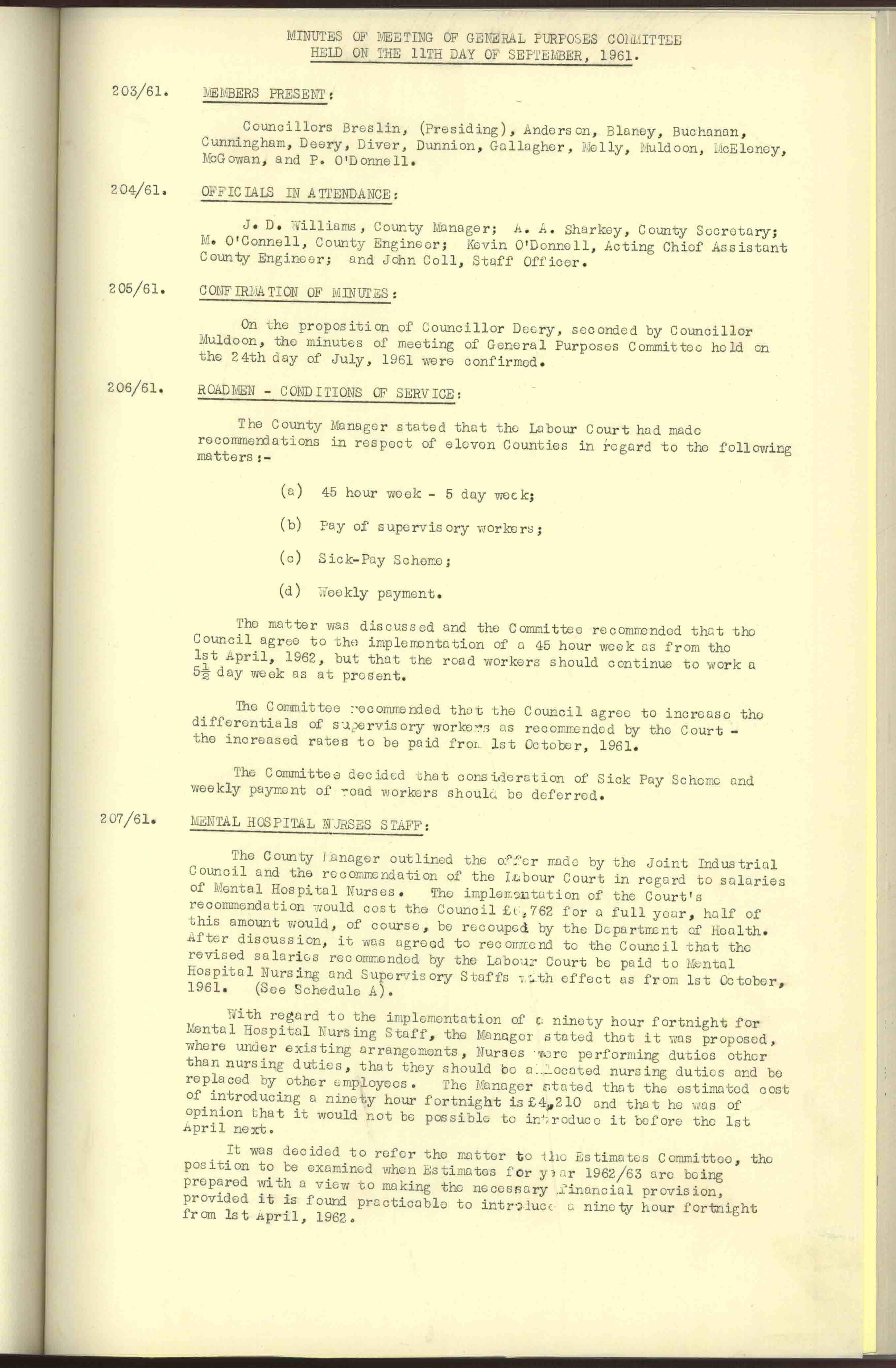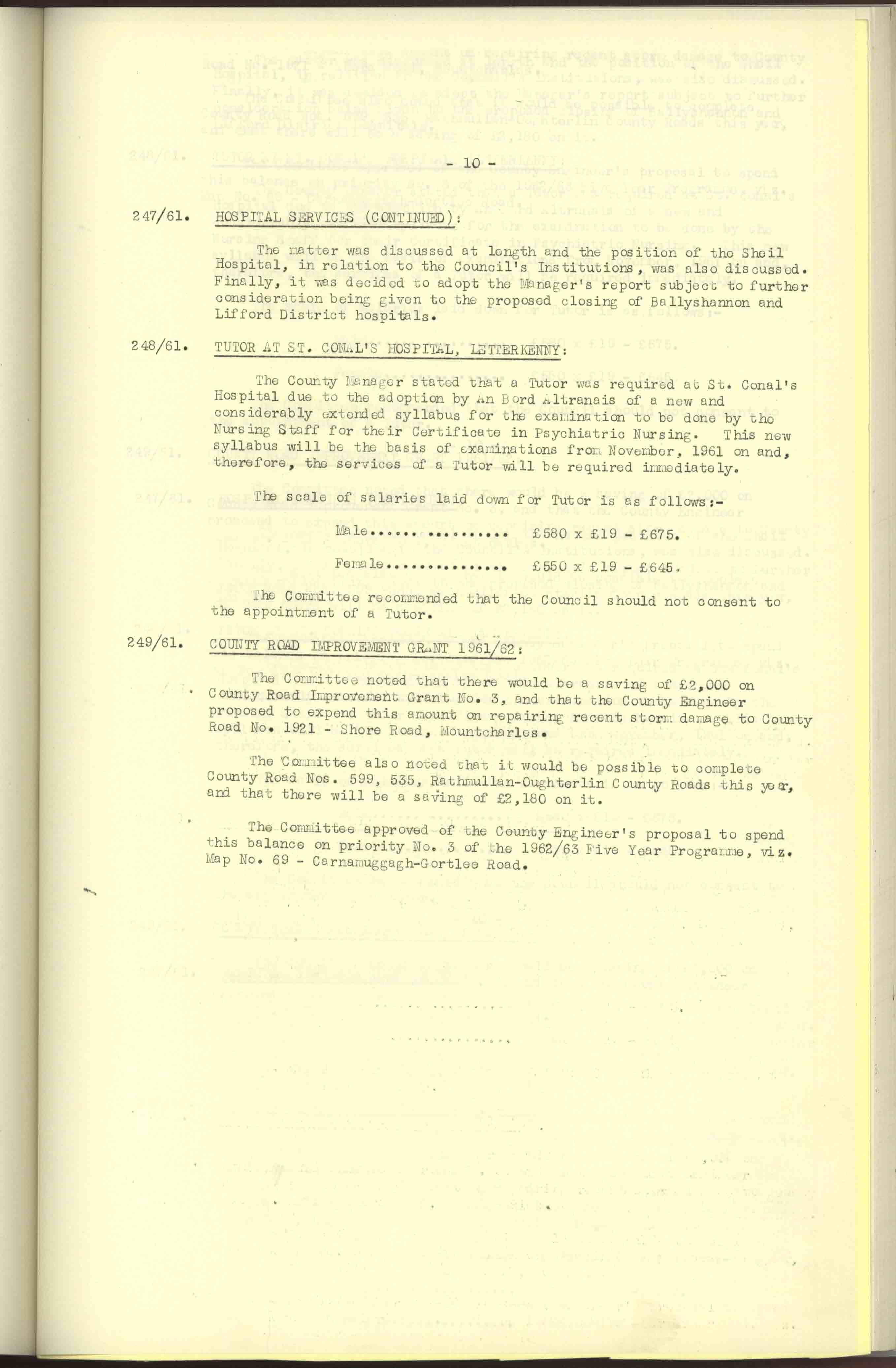 Donegal County Council Minutes, 1961