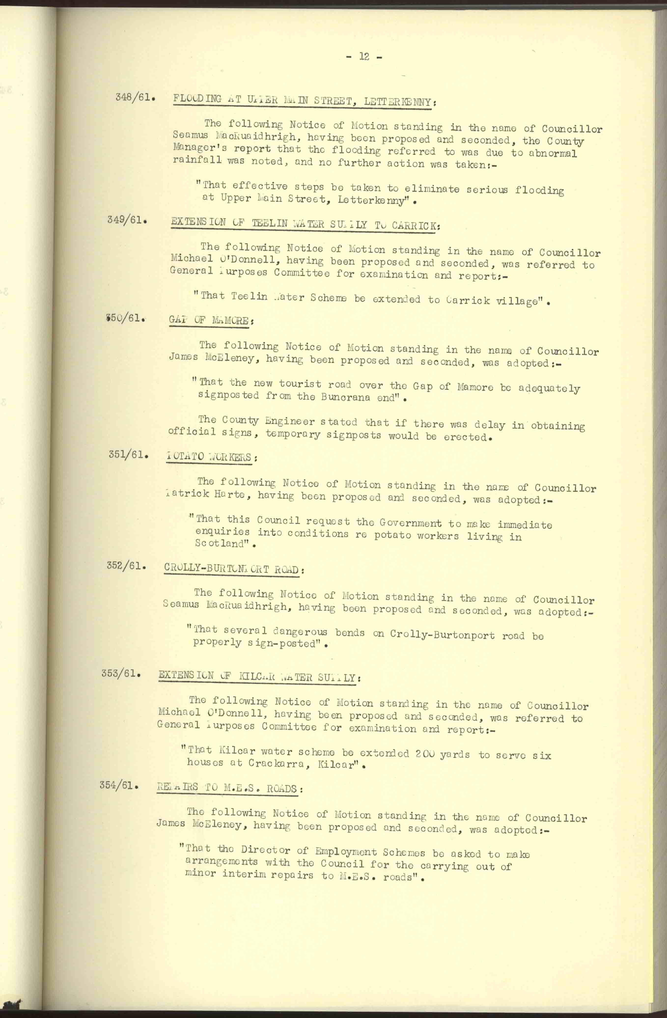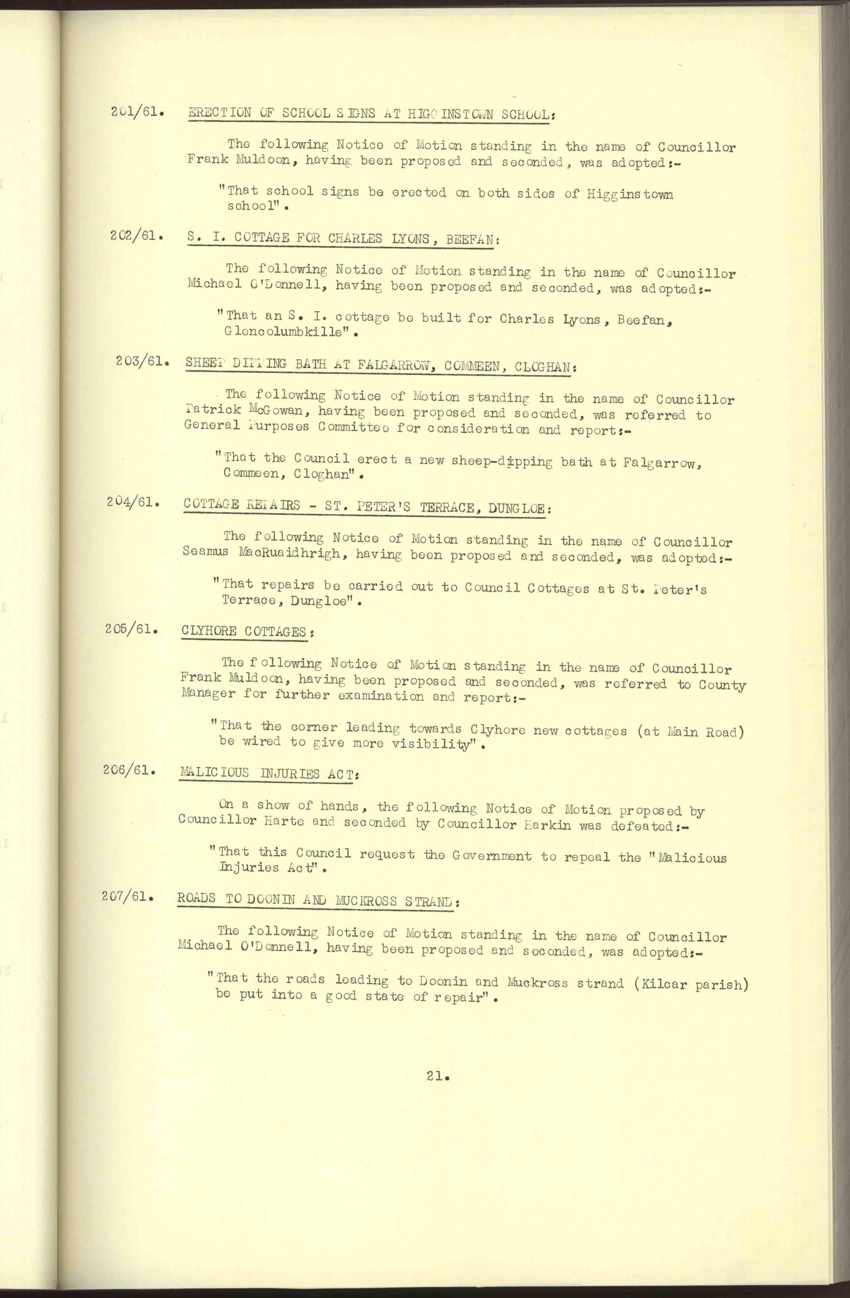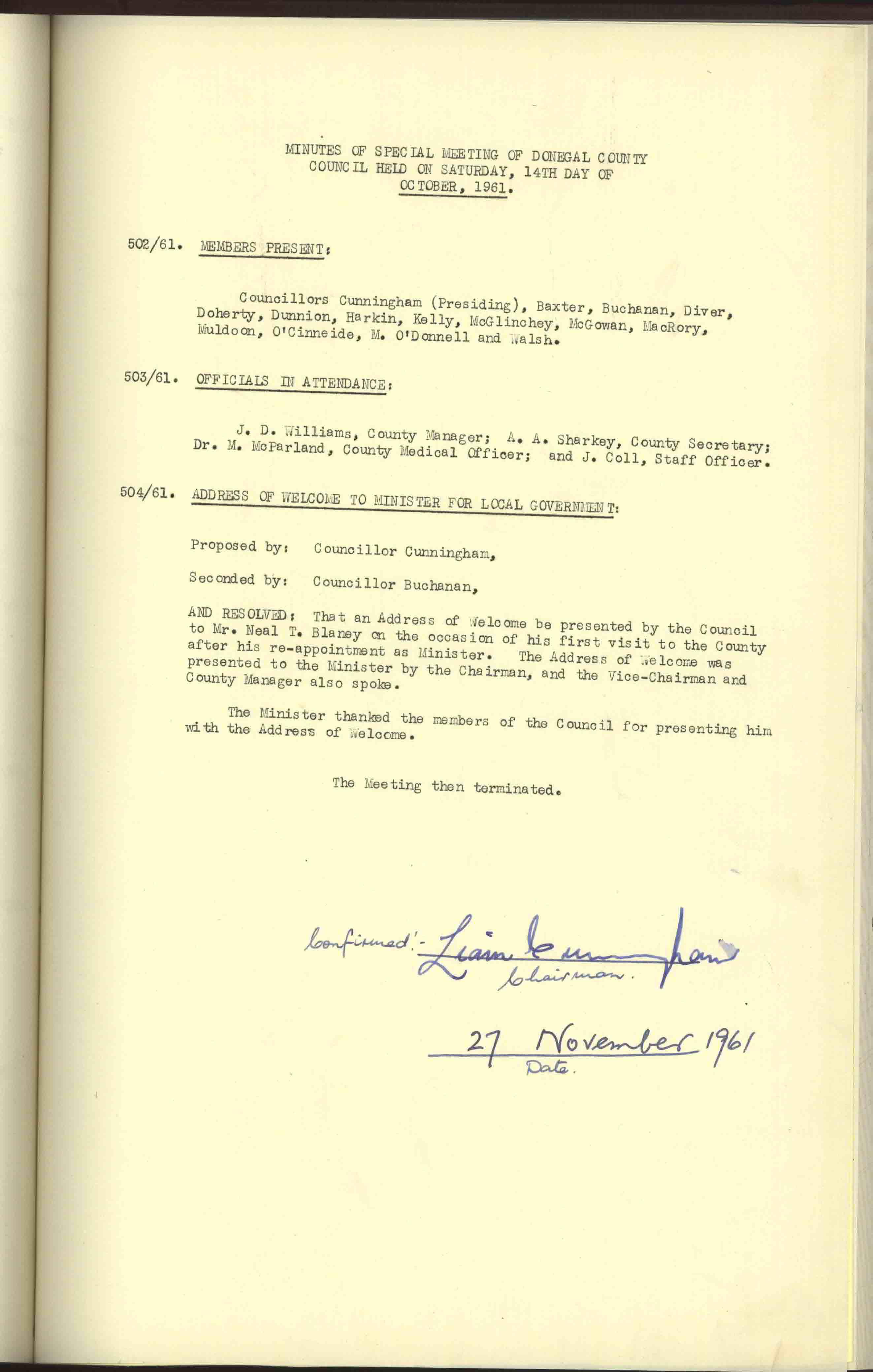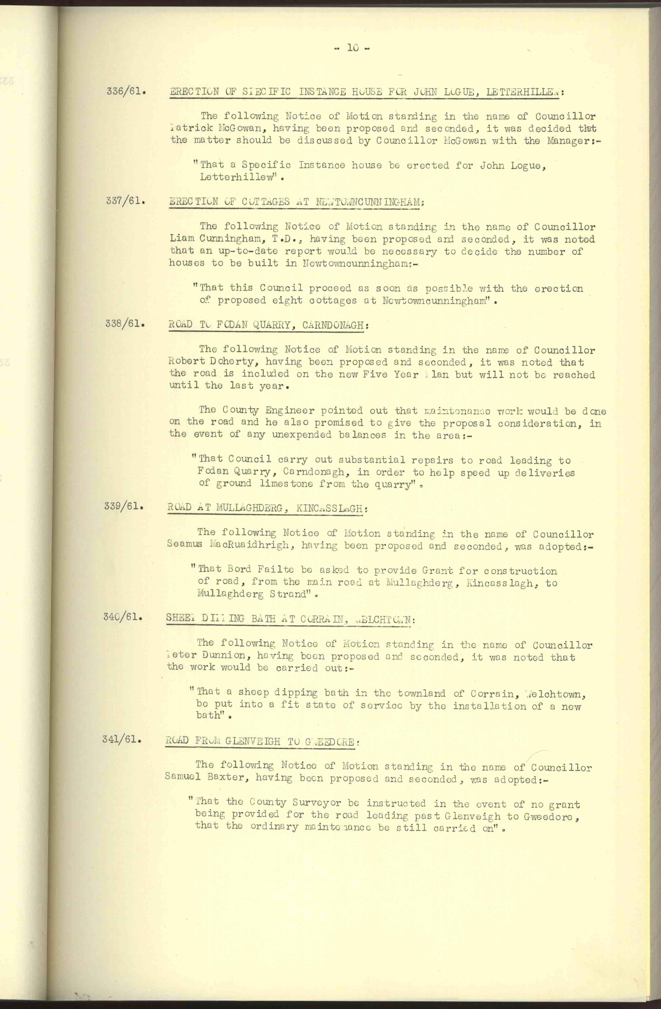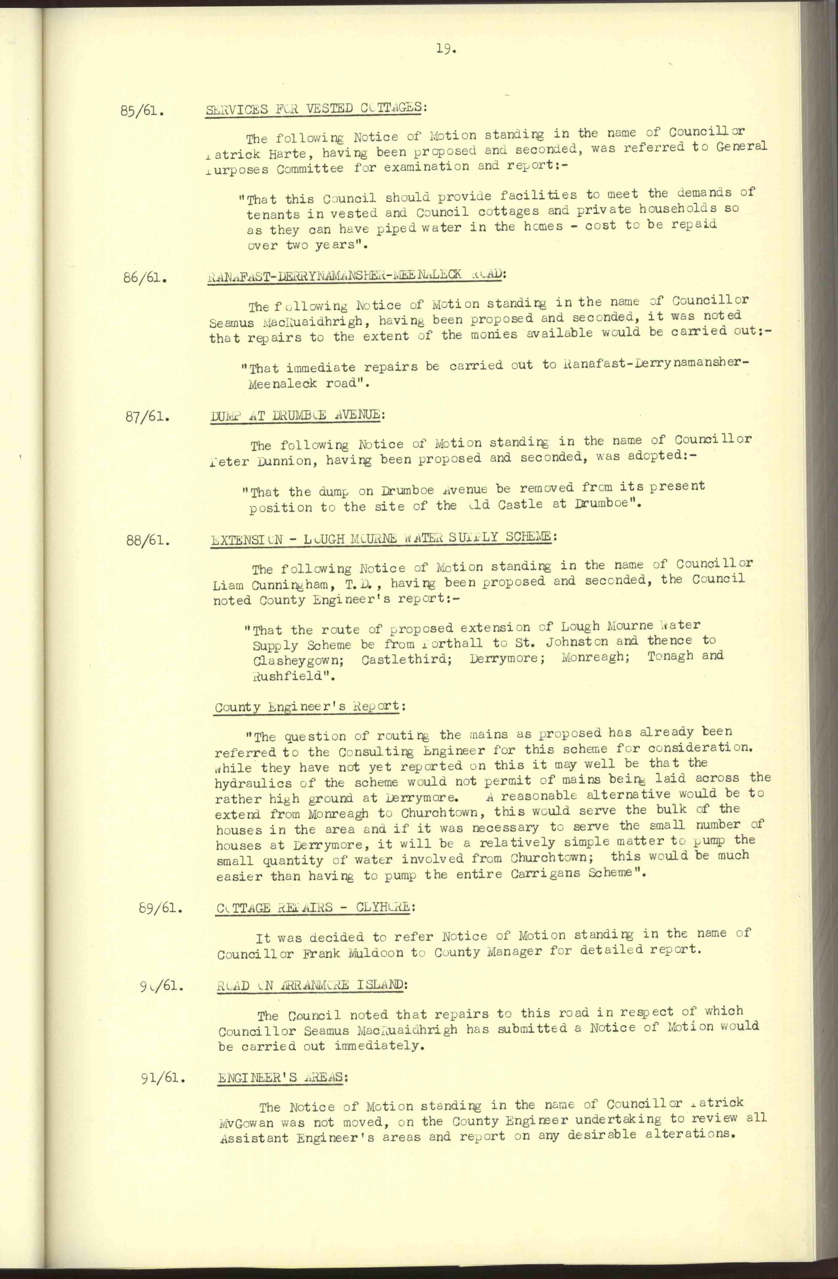 Donegal County Council Minutes, 1961