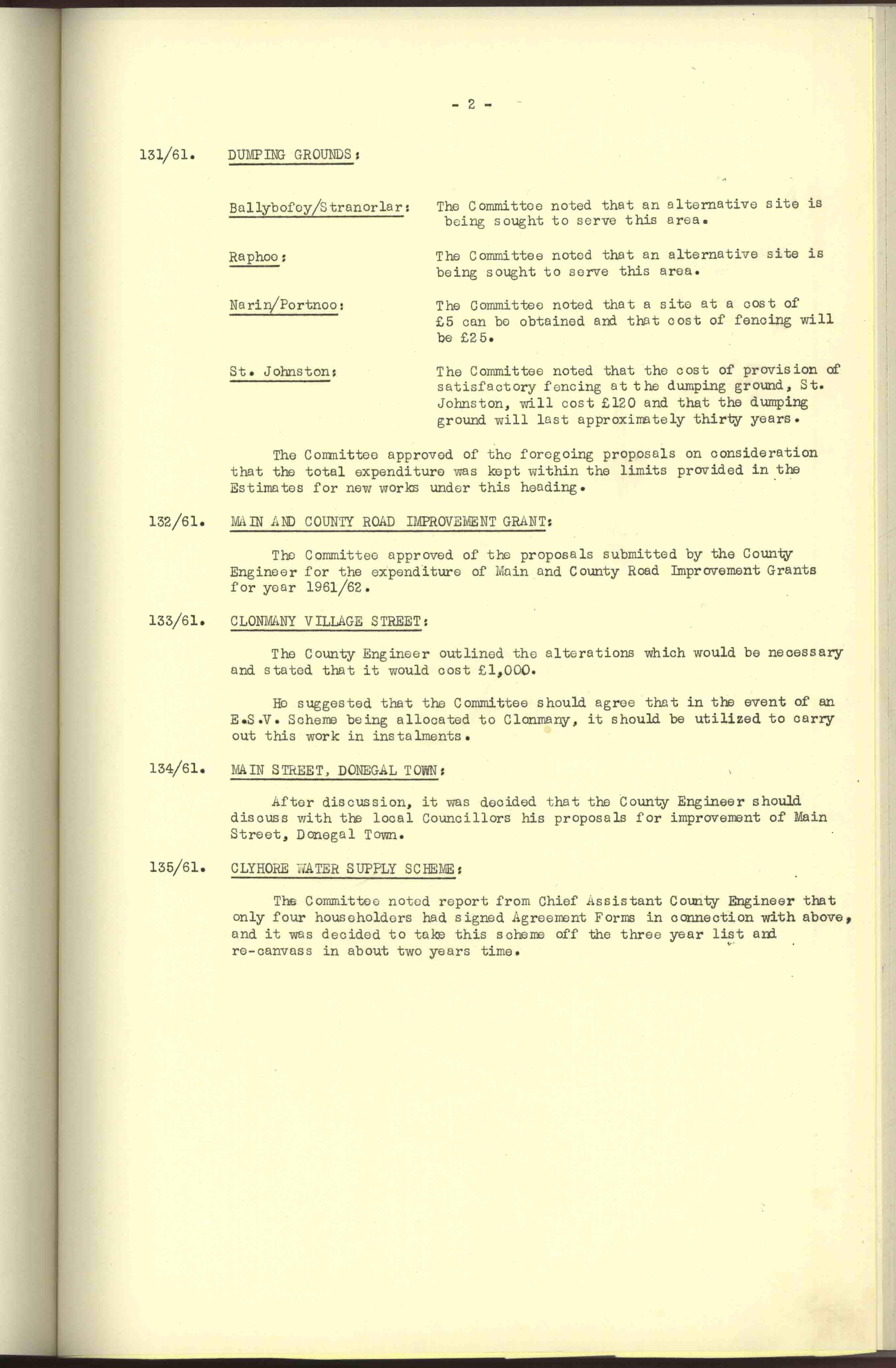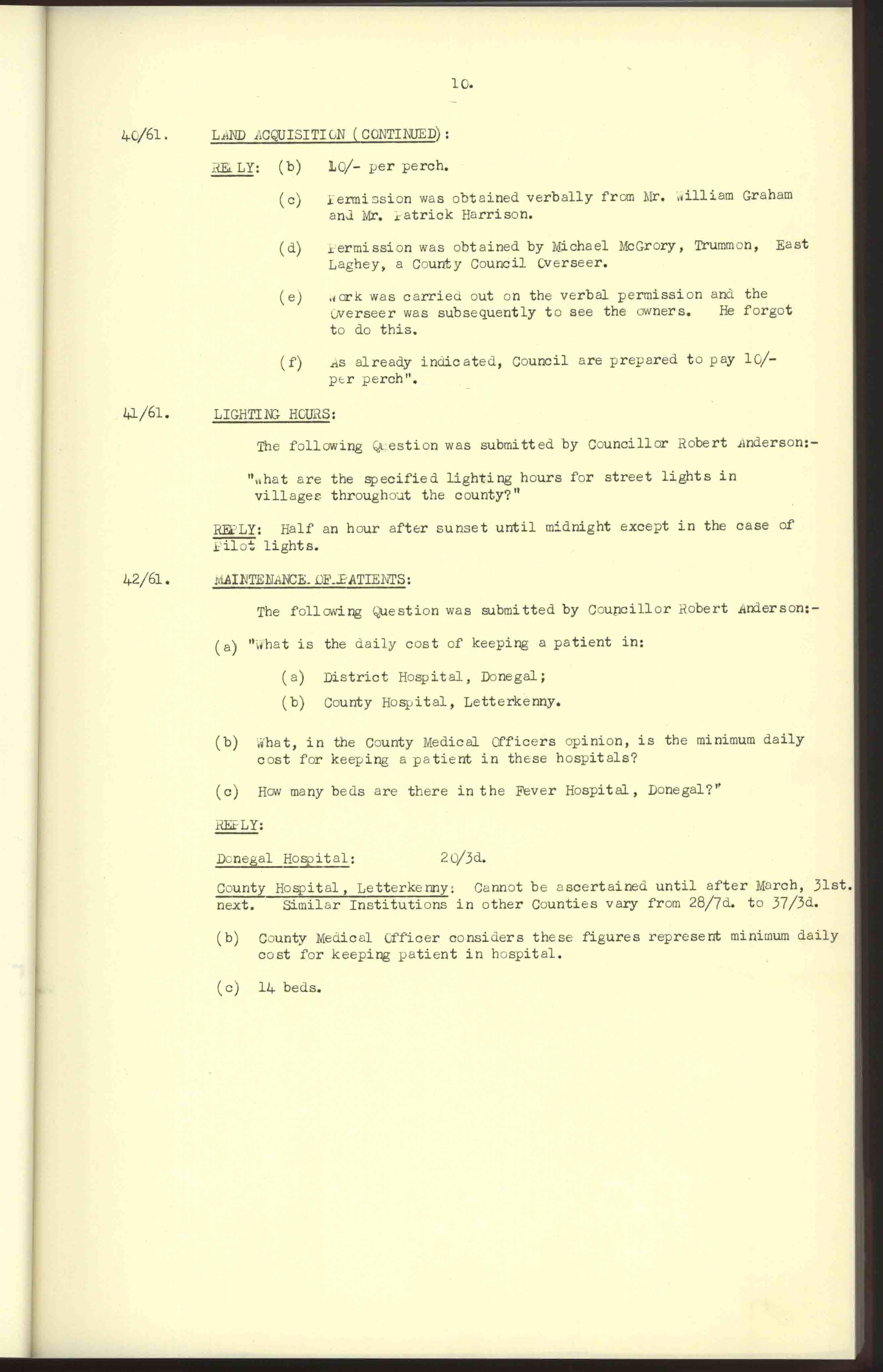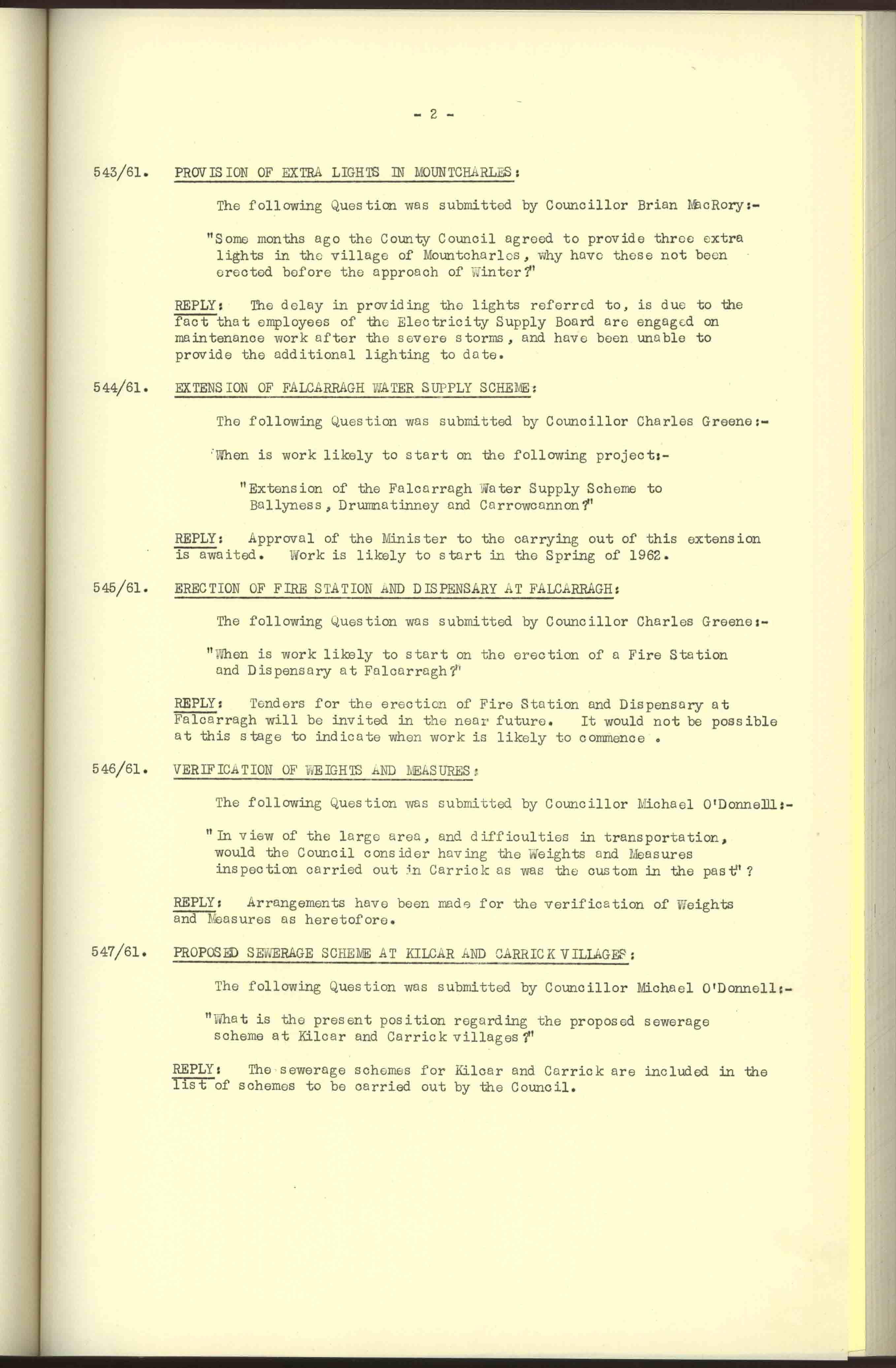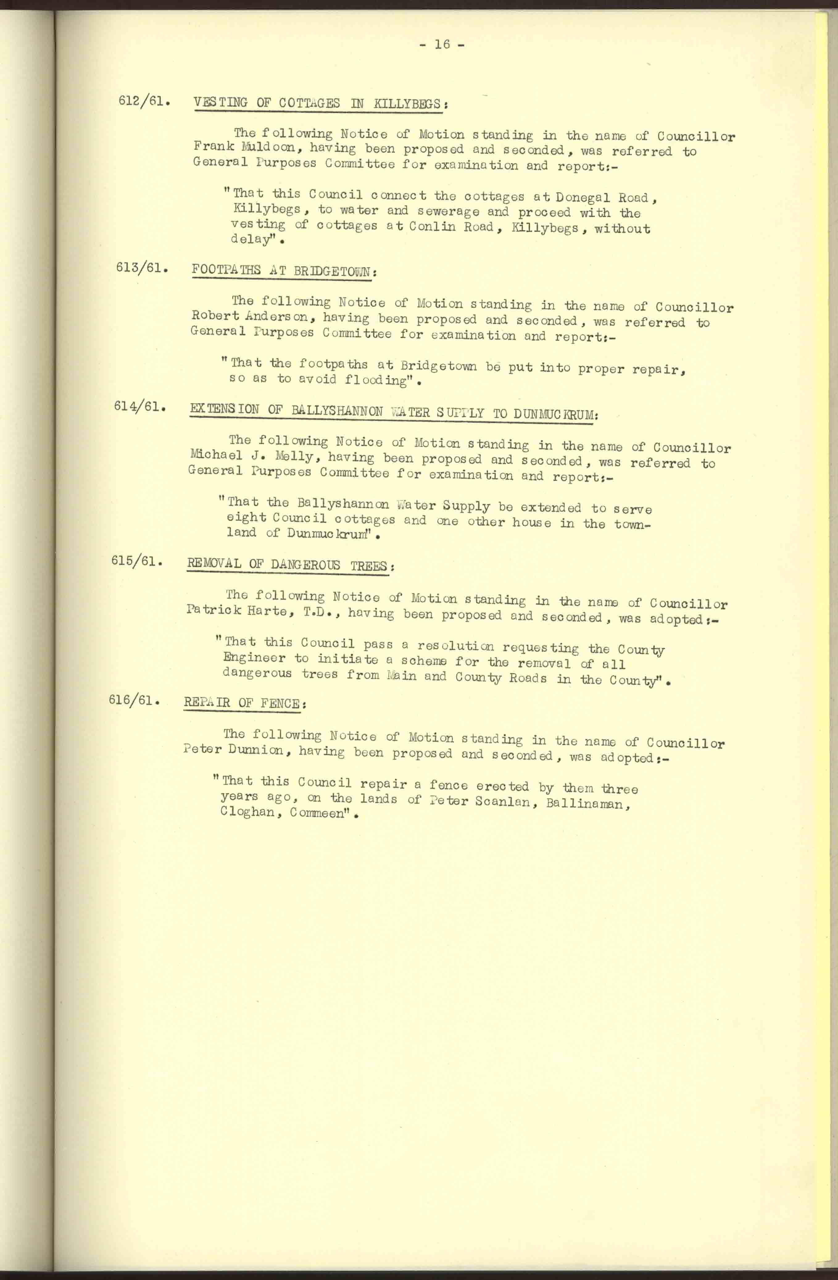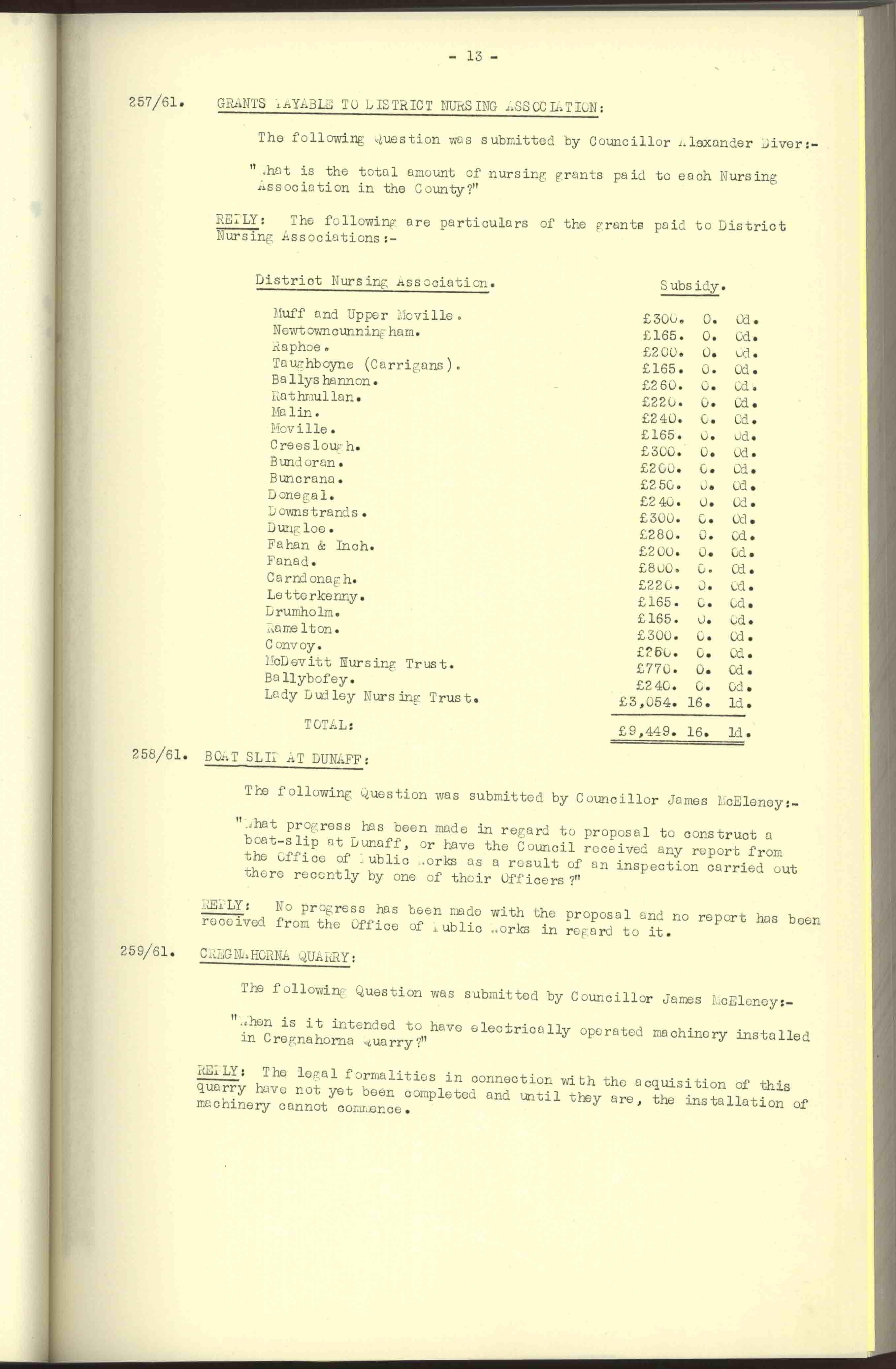 Donegal County Council Minutes, 1961