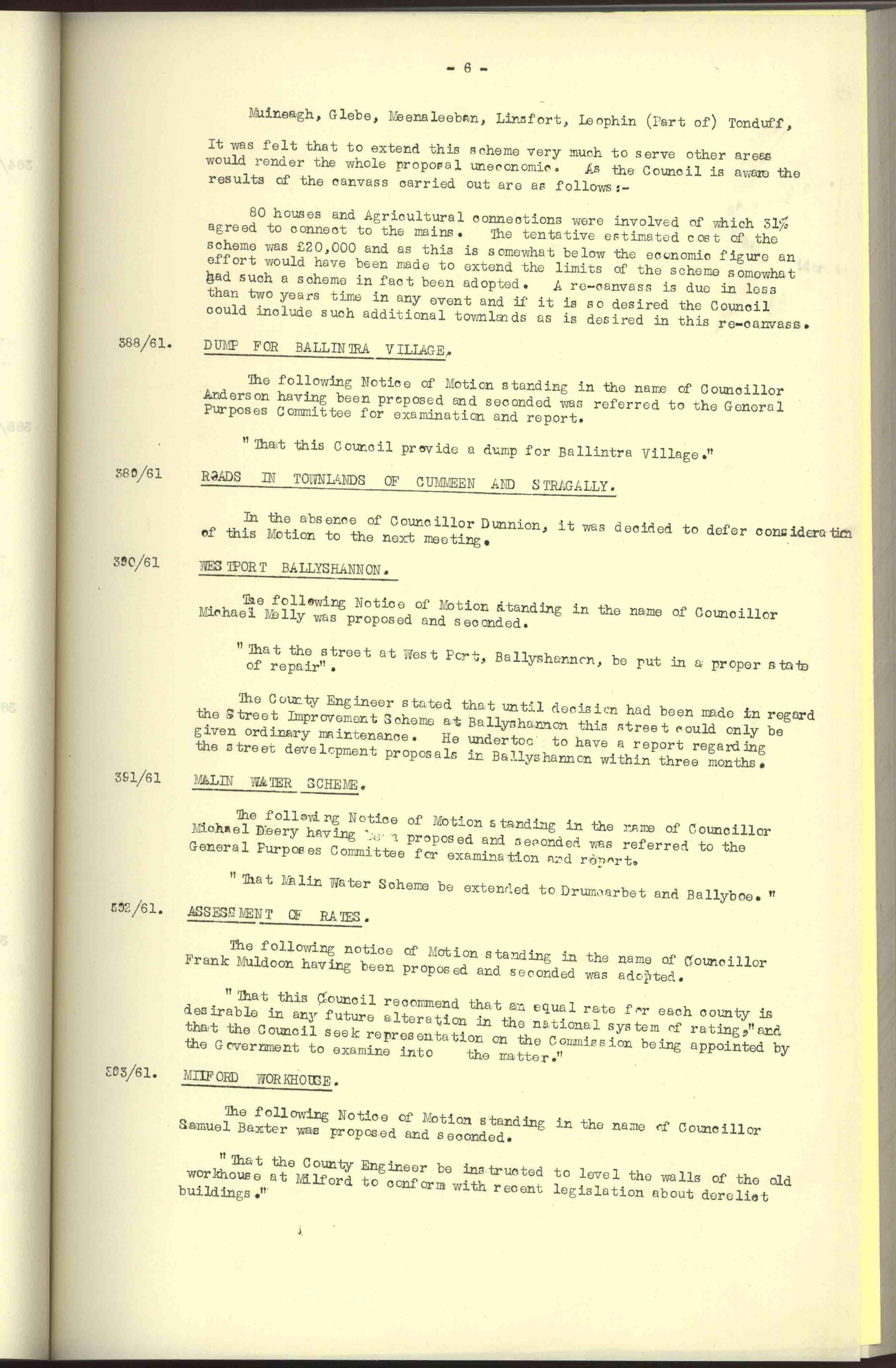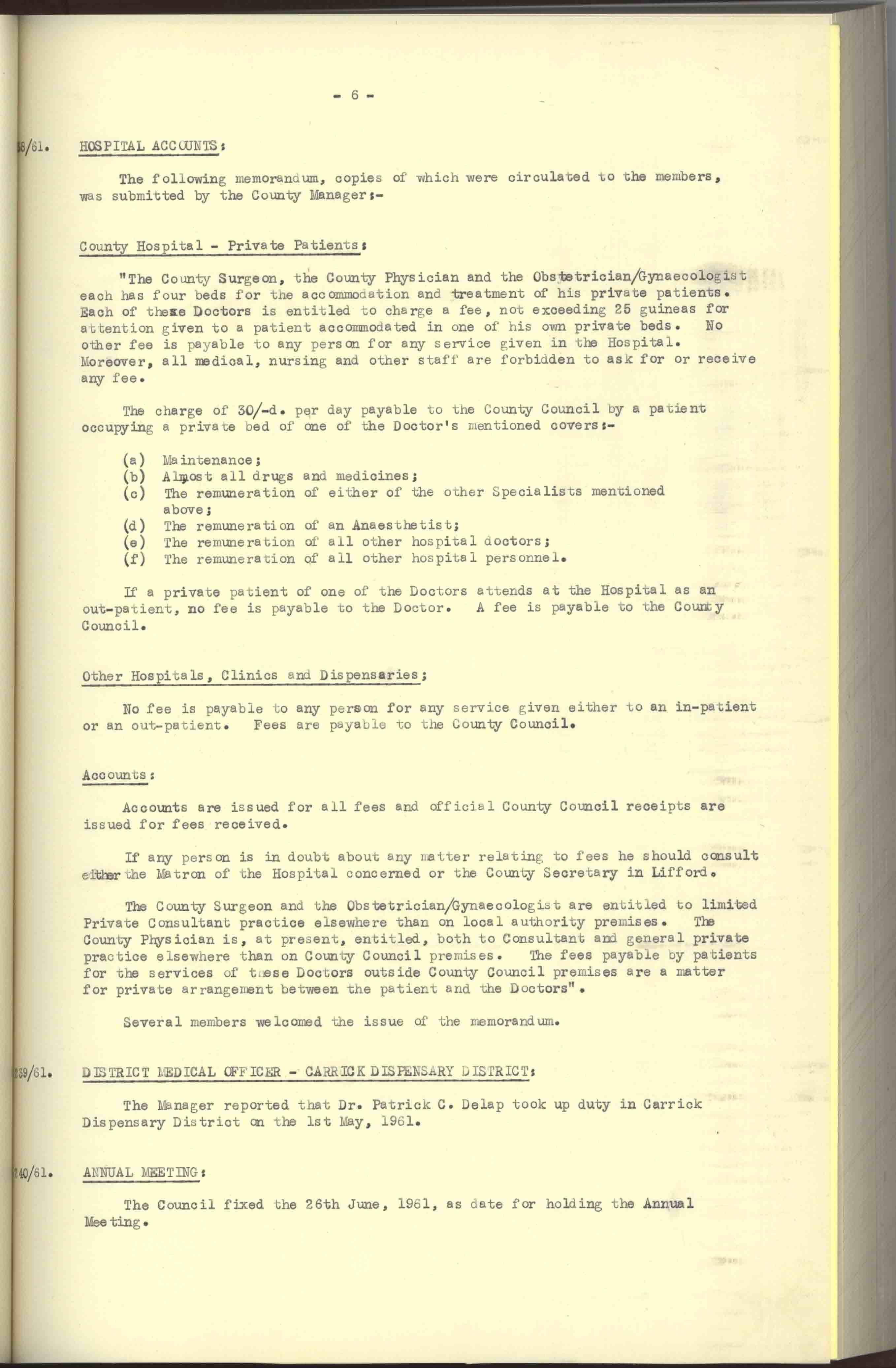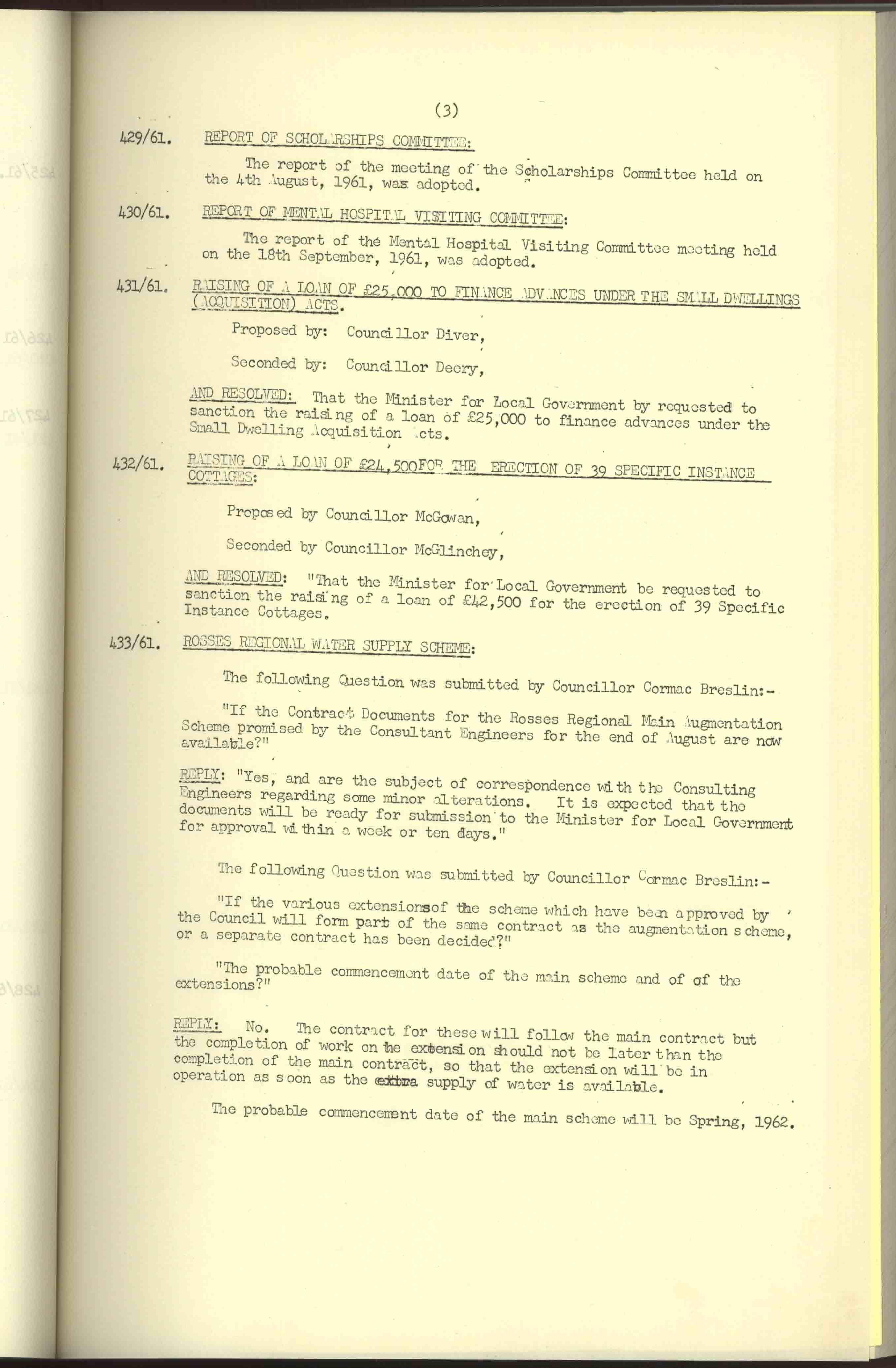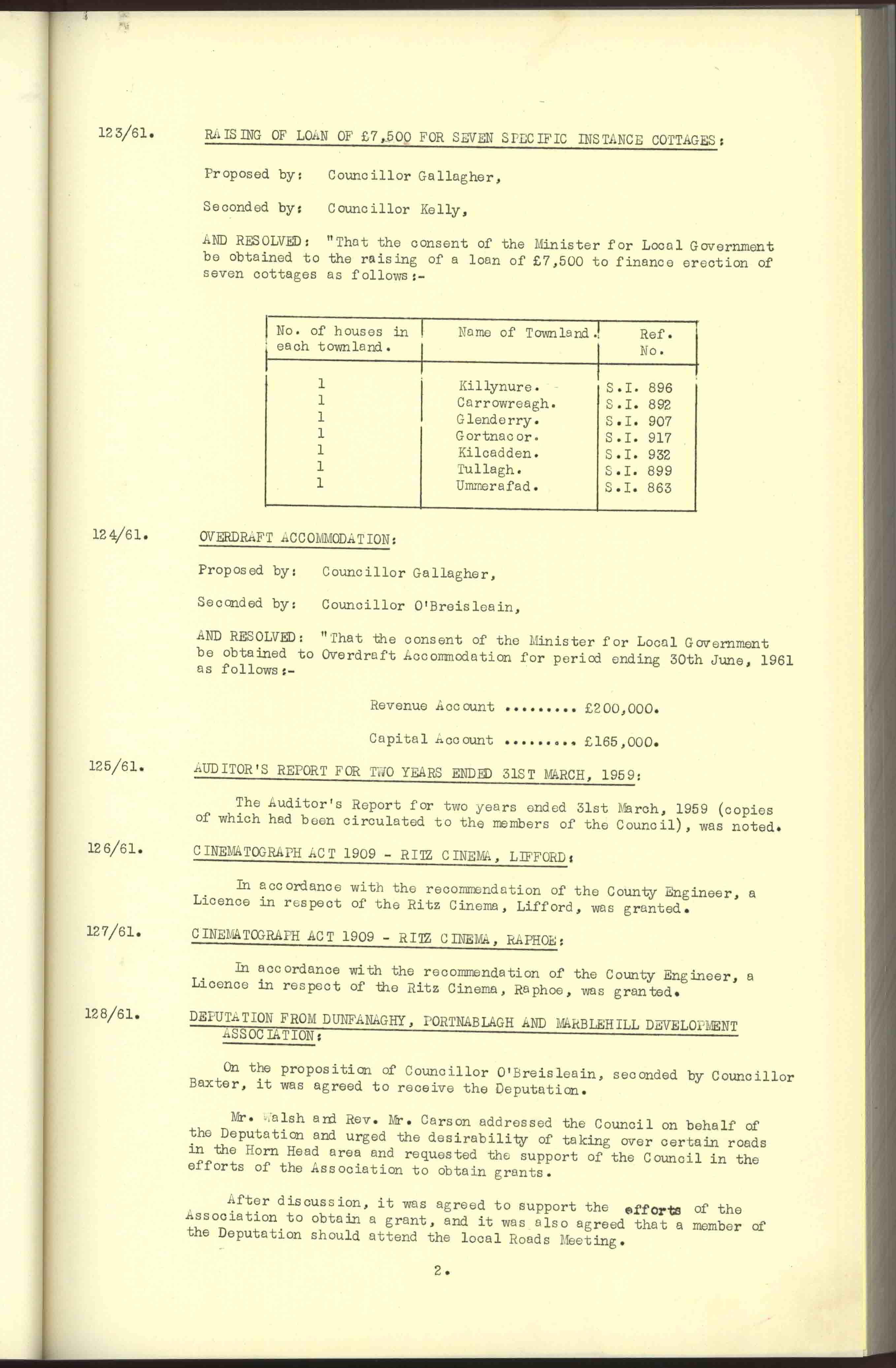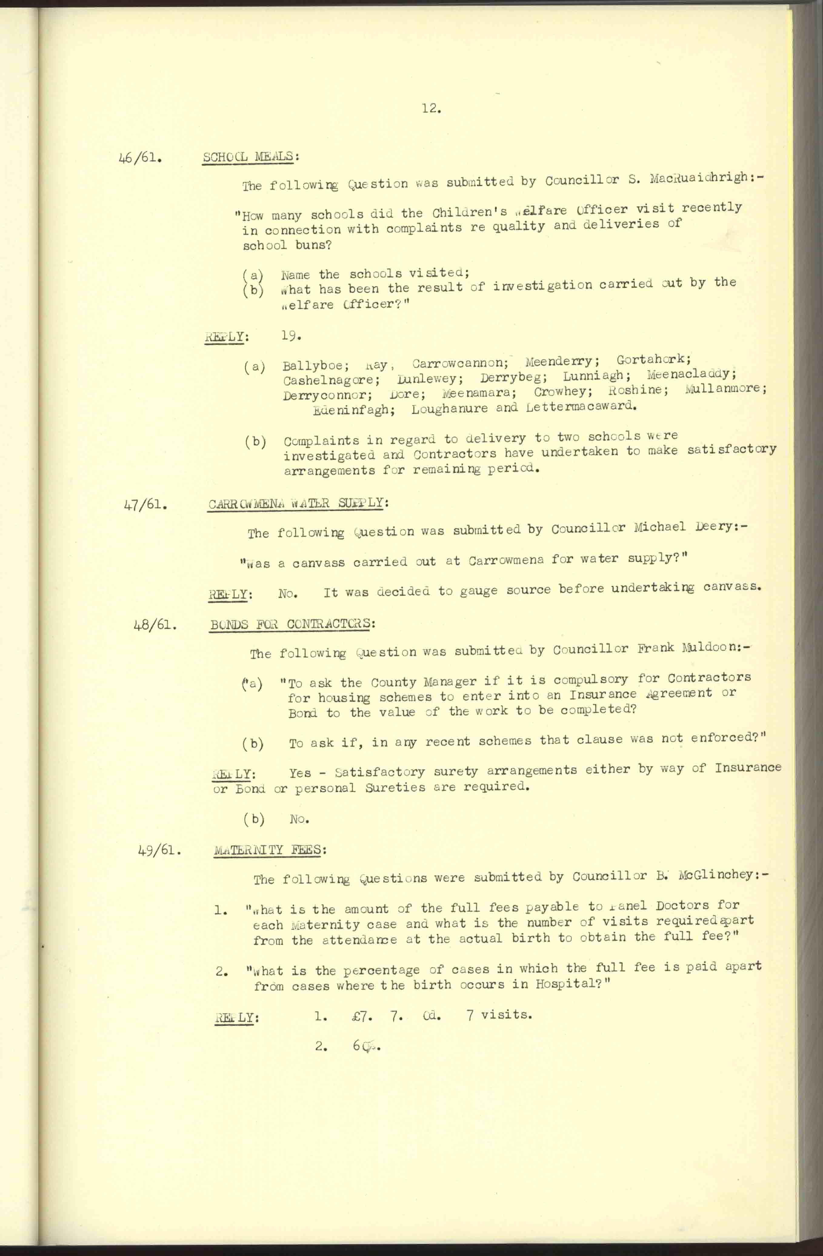 Donegal County Council Minutes, 1961