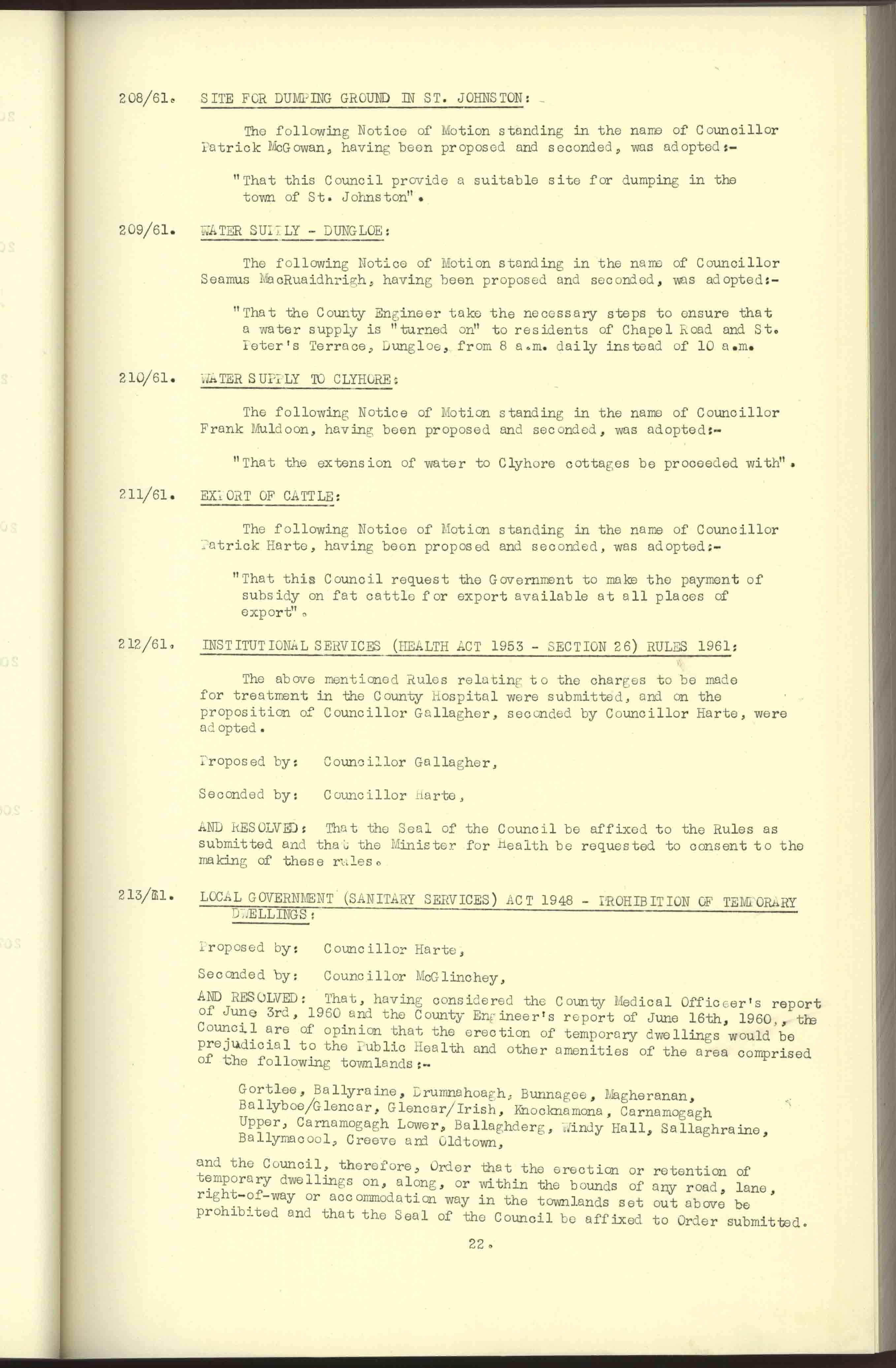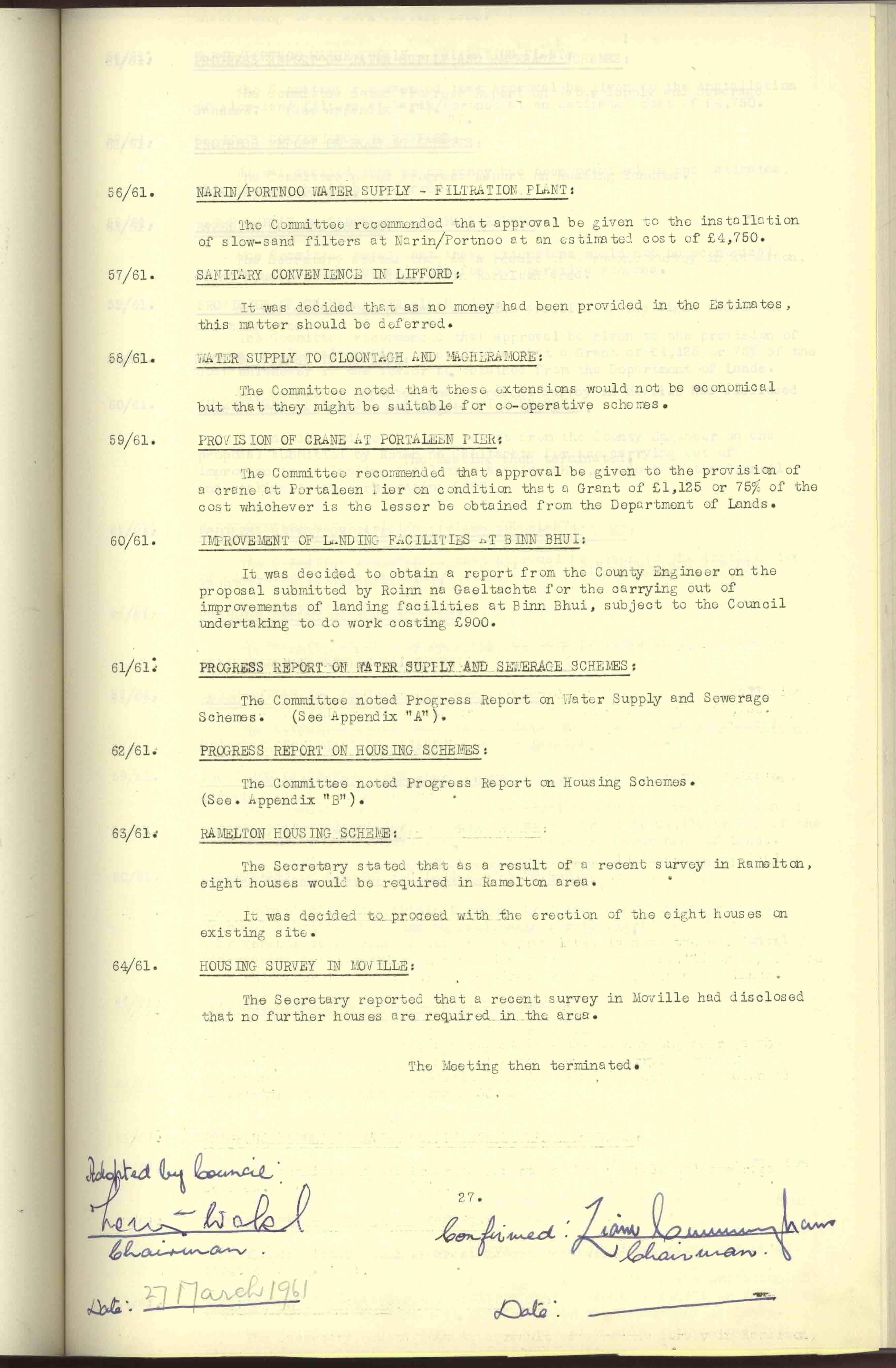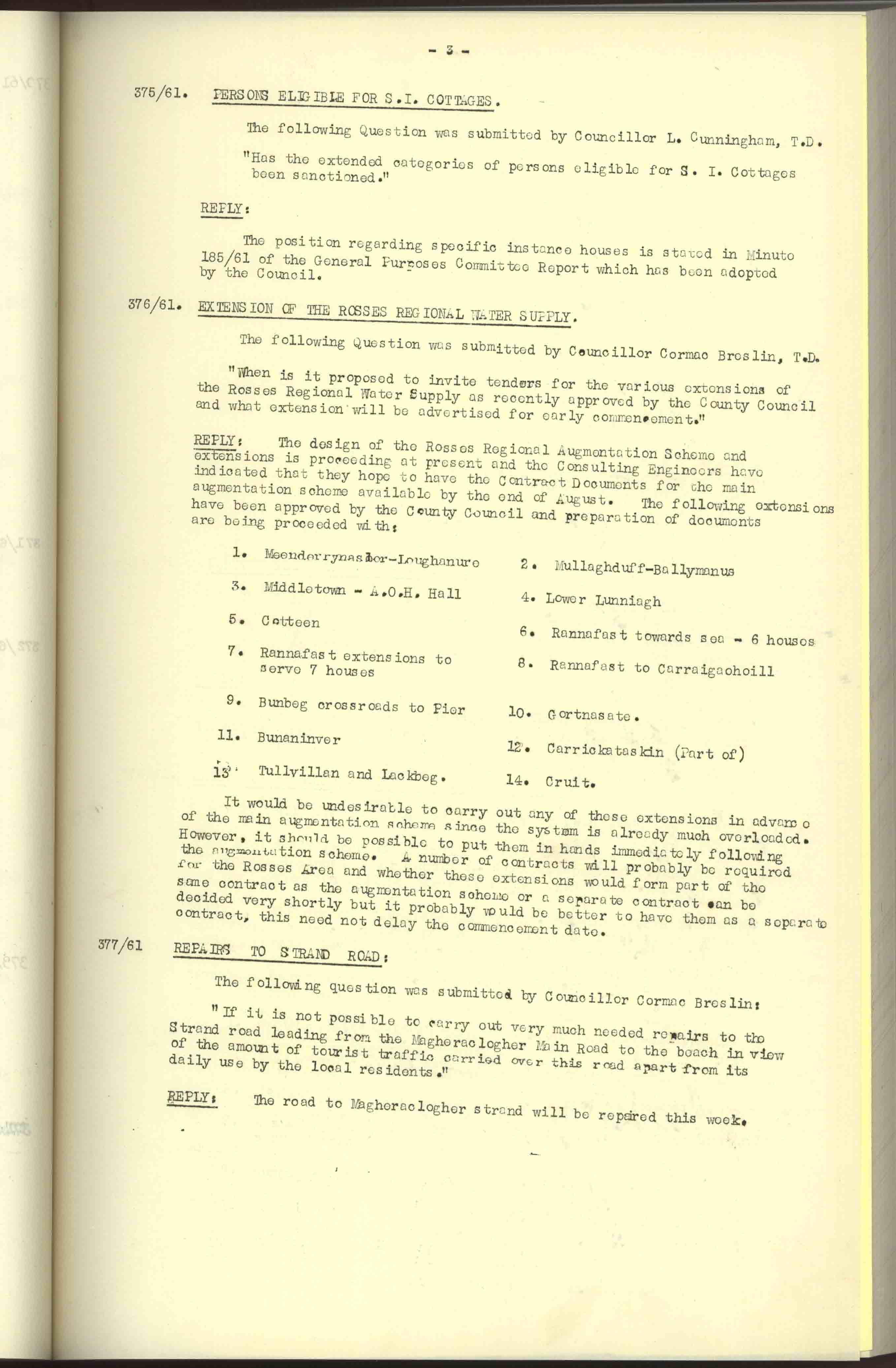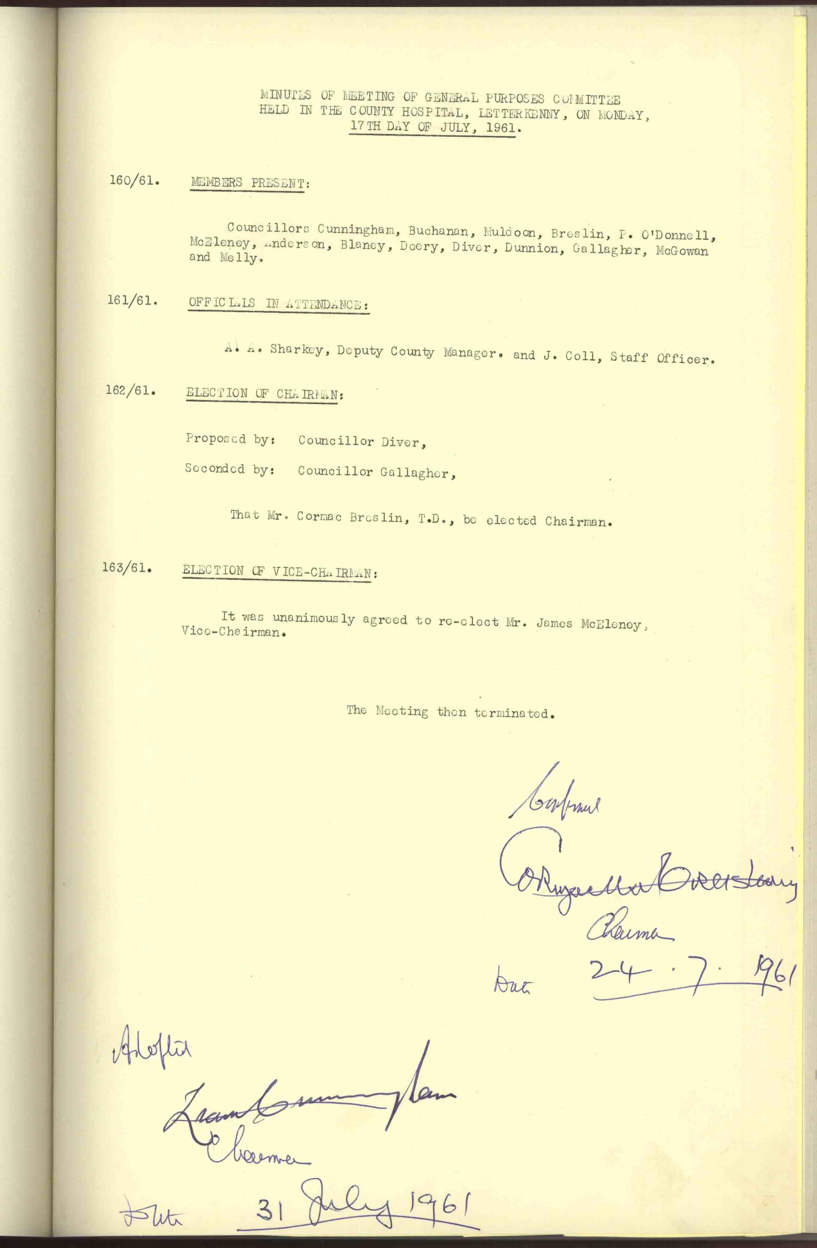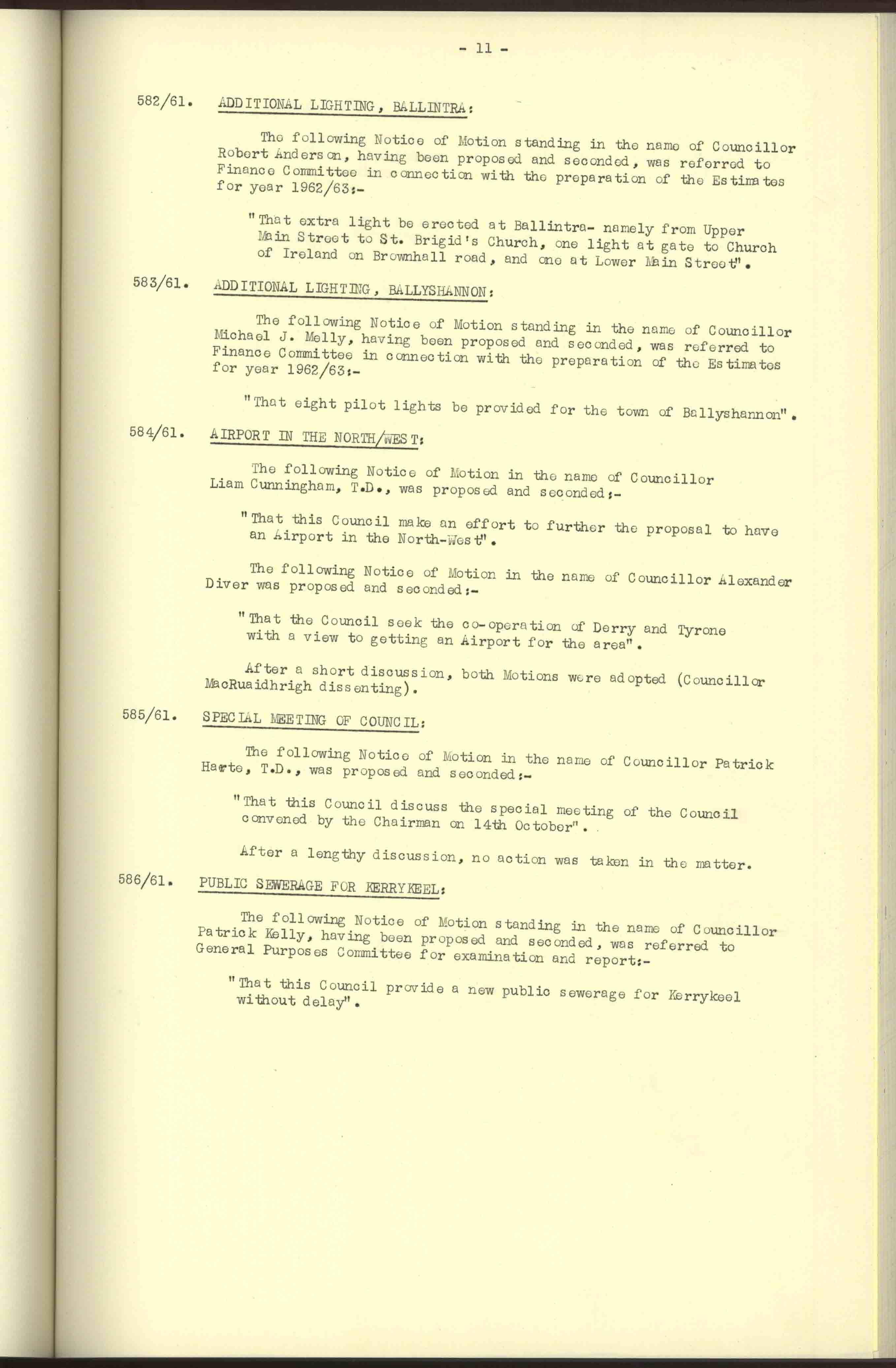 Donegal County Council Minutes, 1961