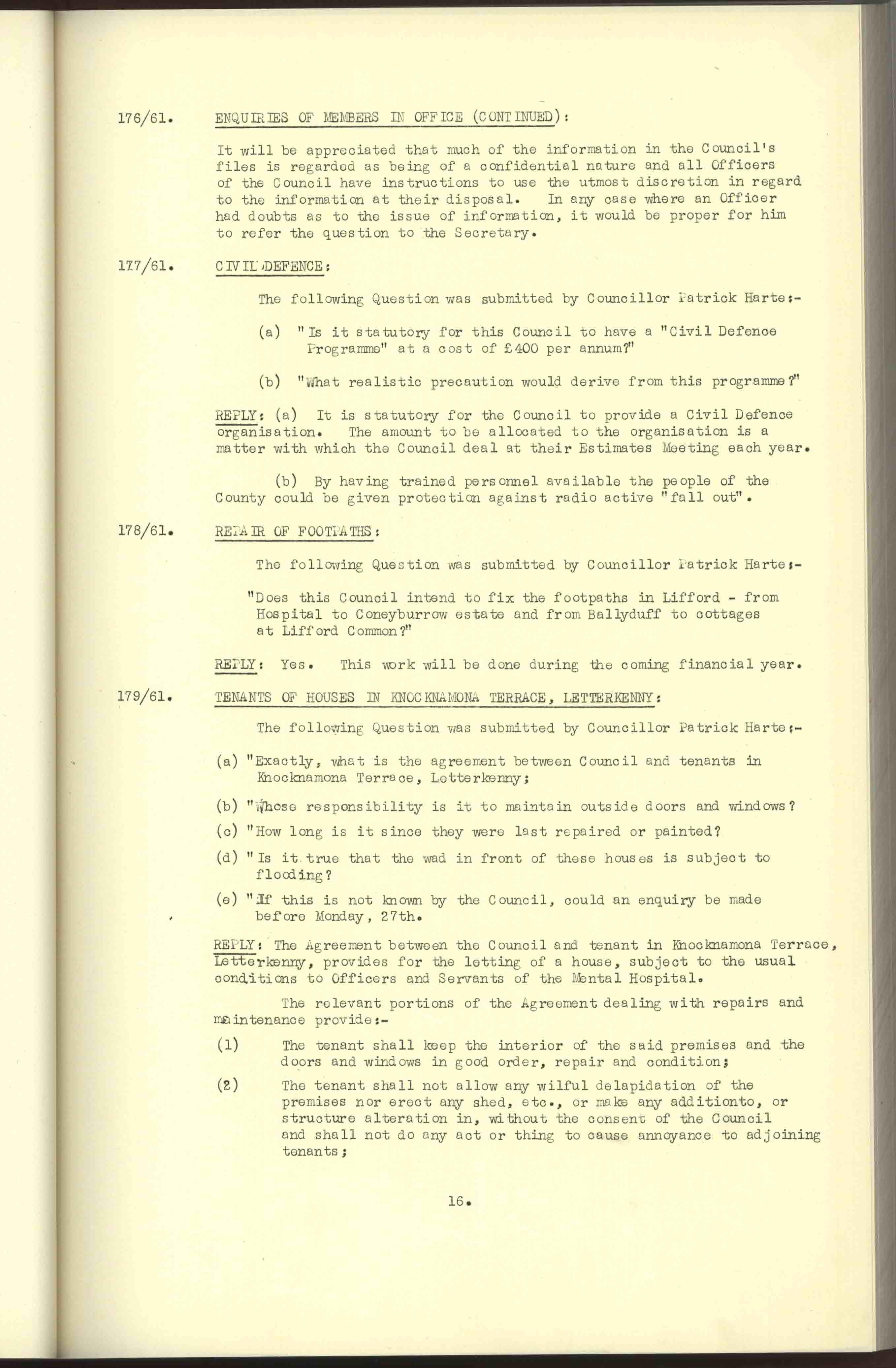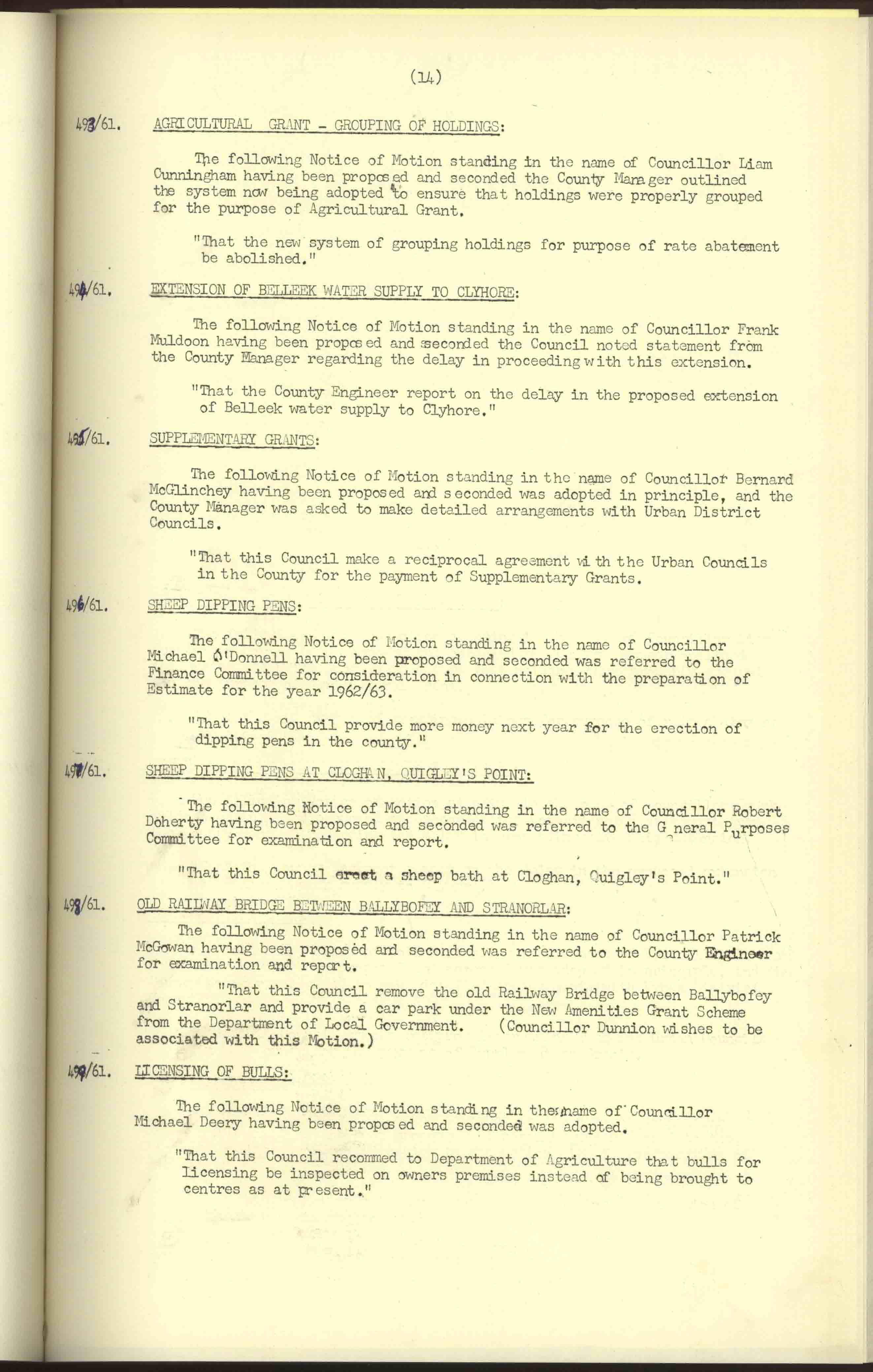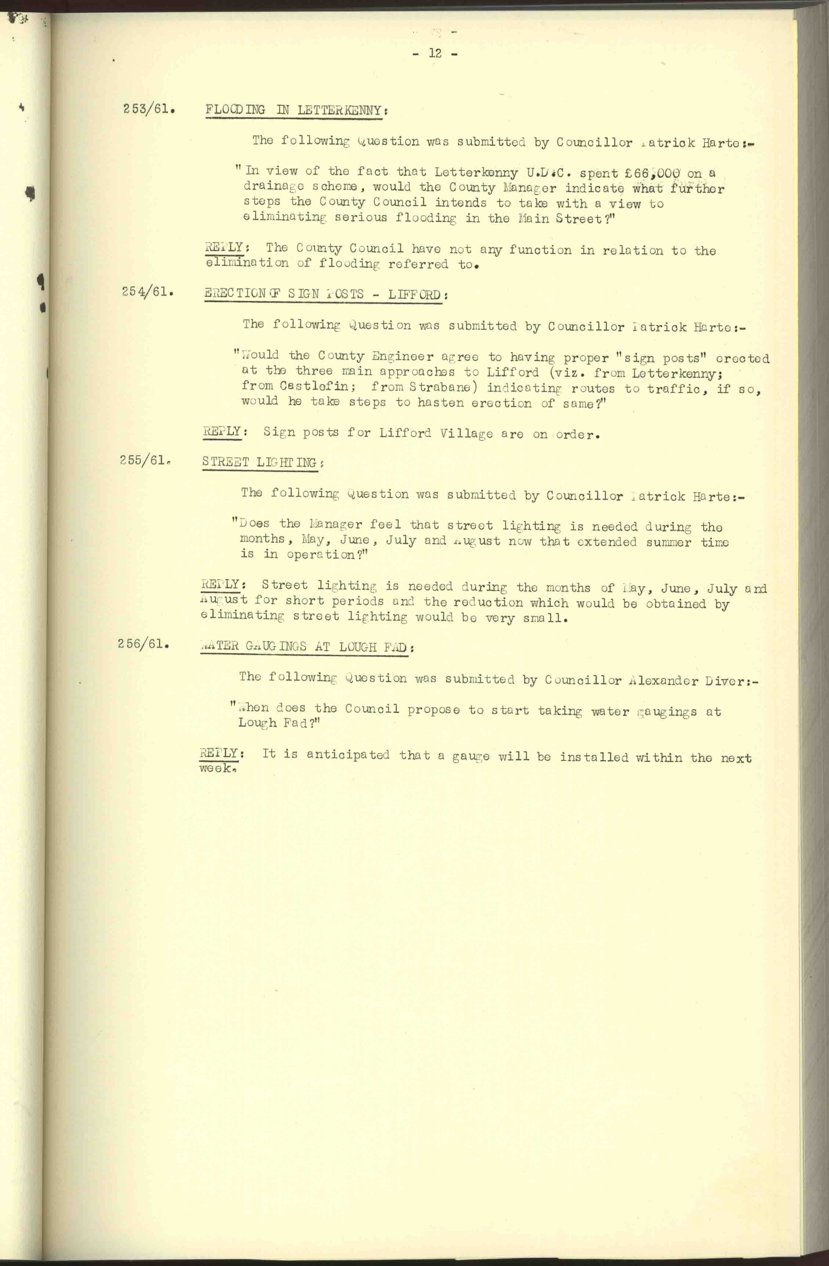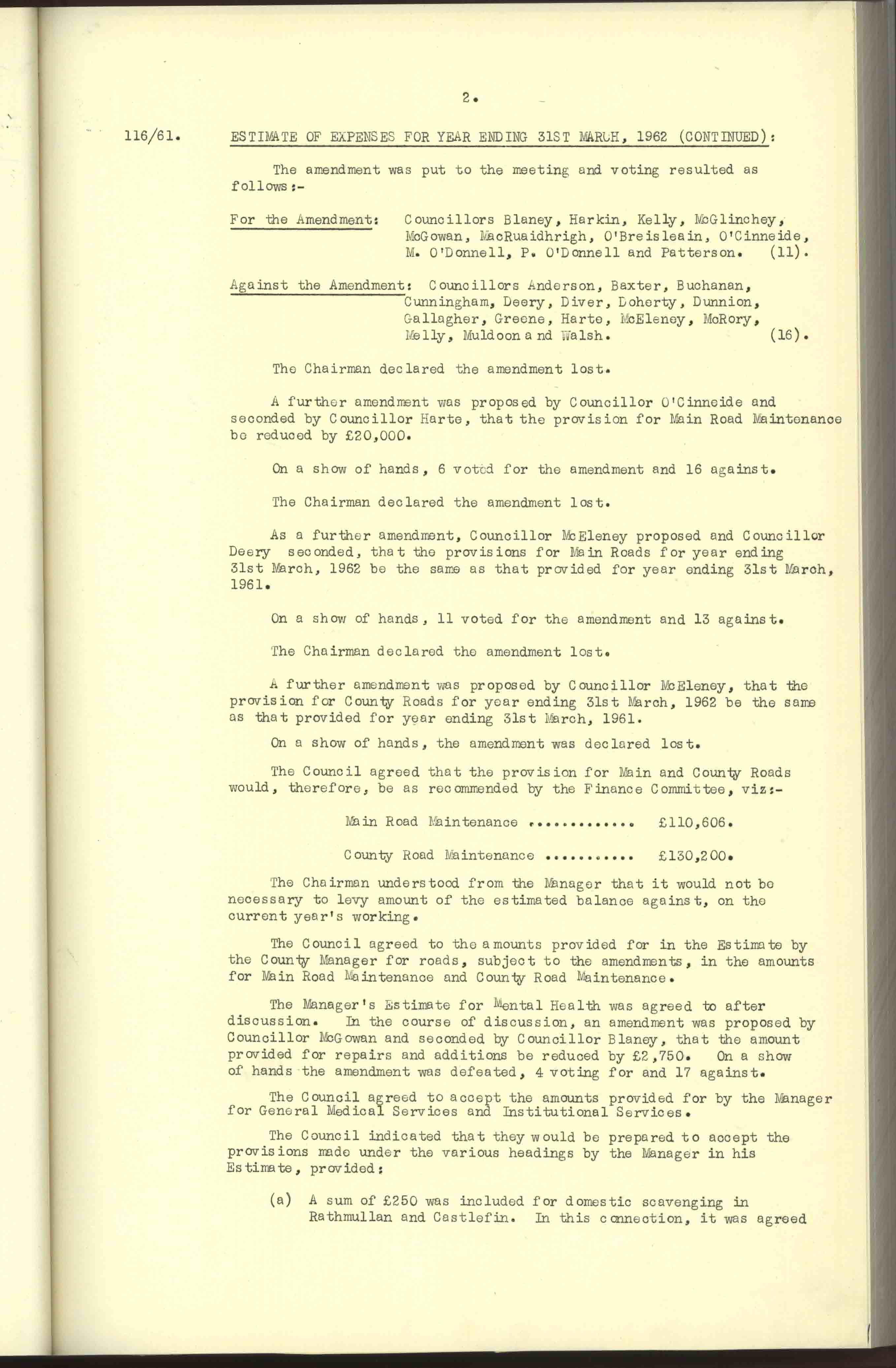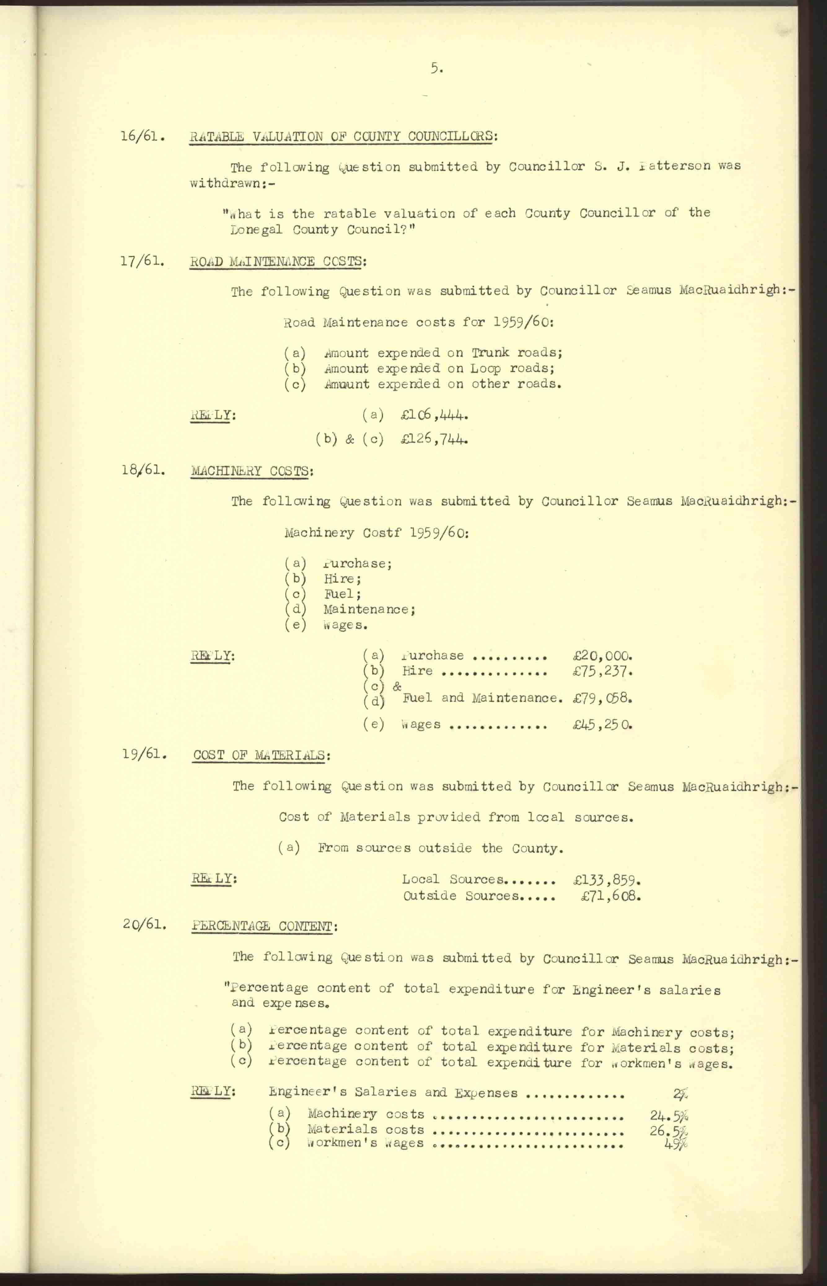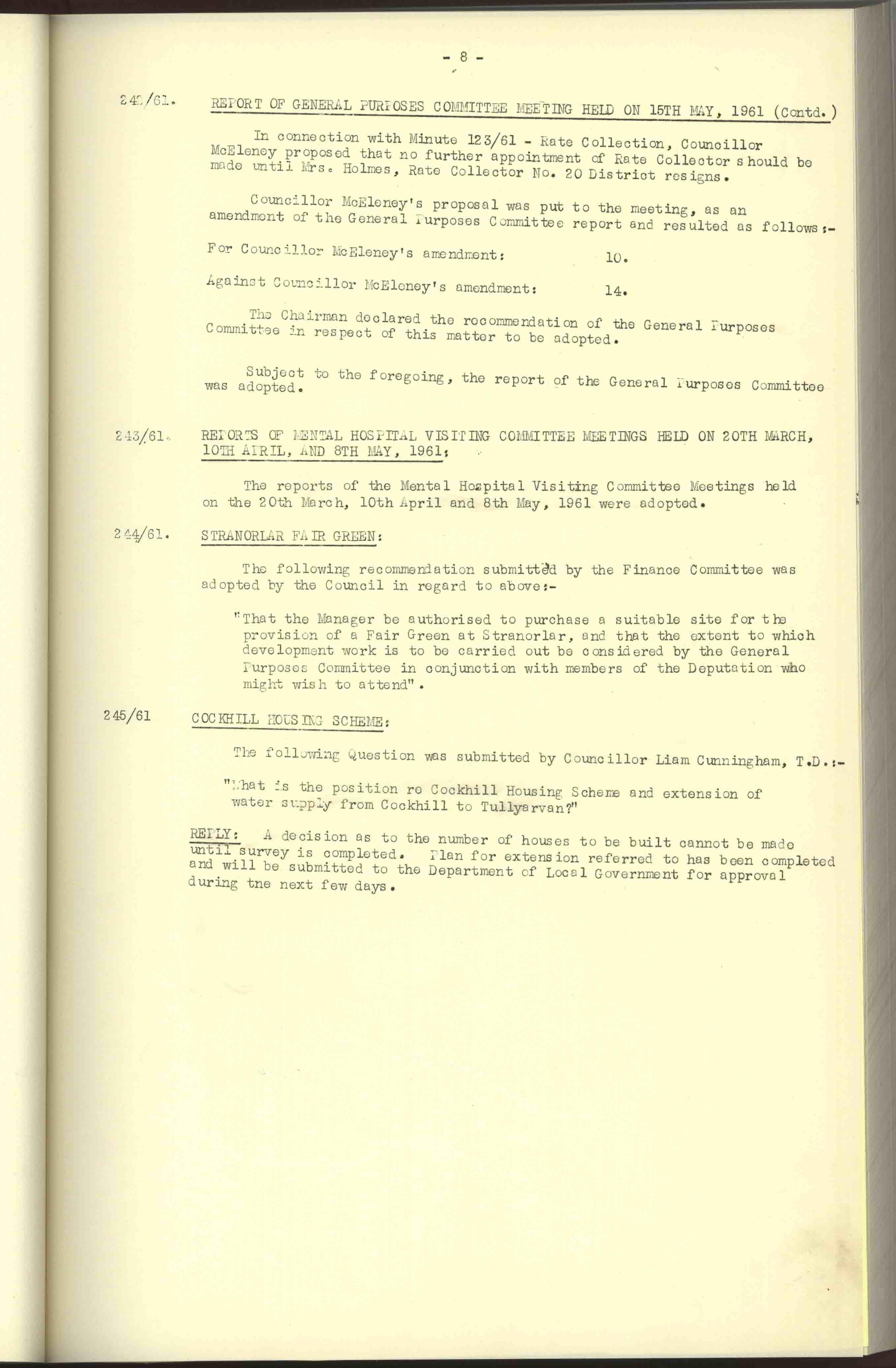 Donegal County Council Minutes, 1961