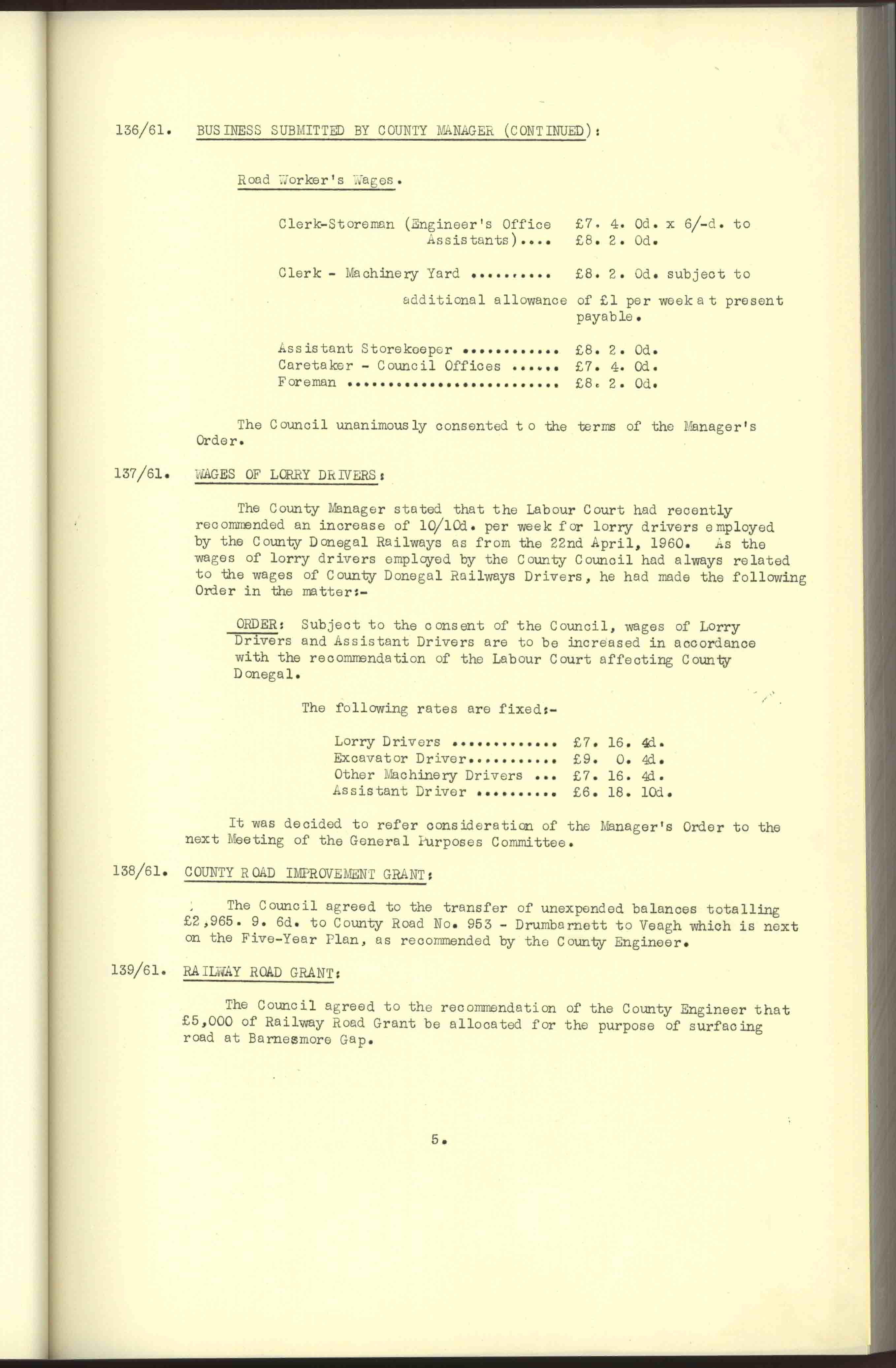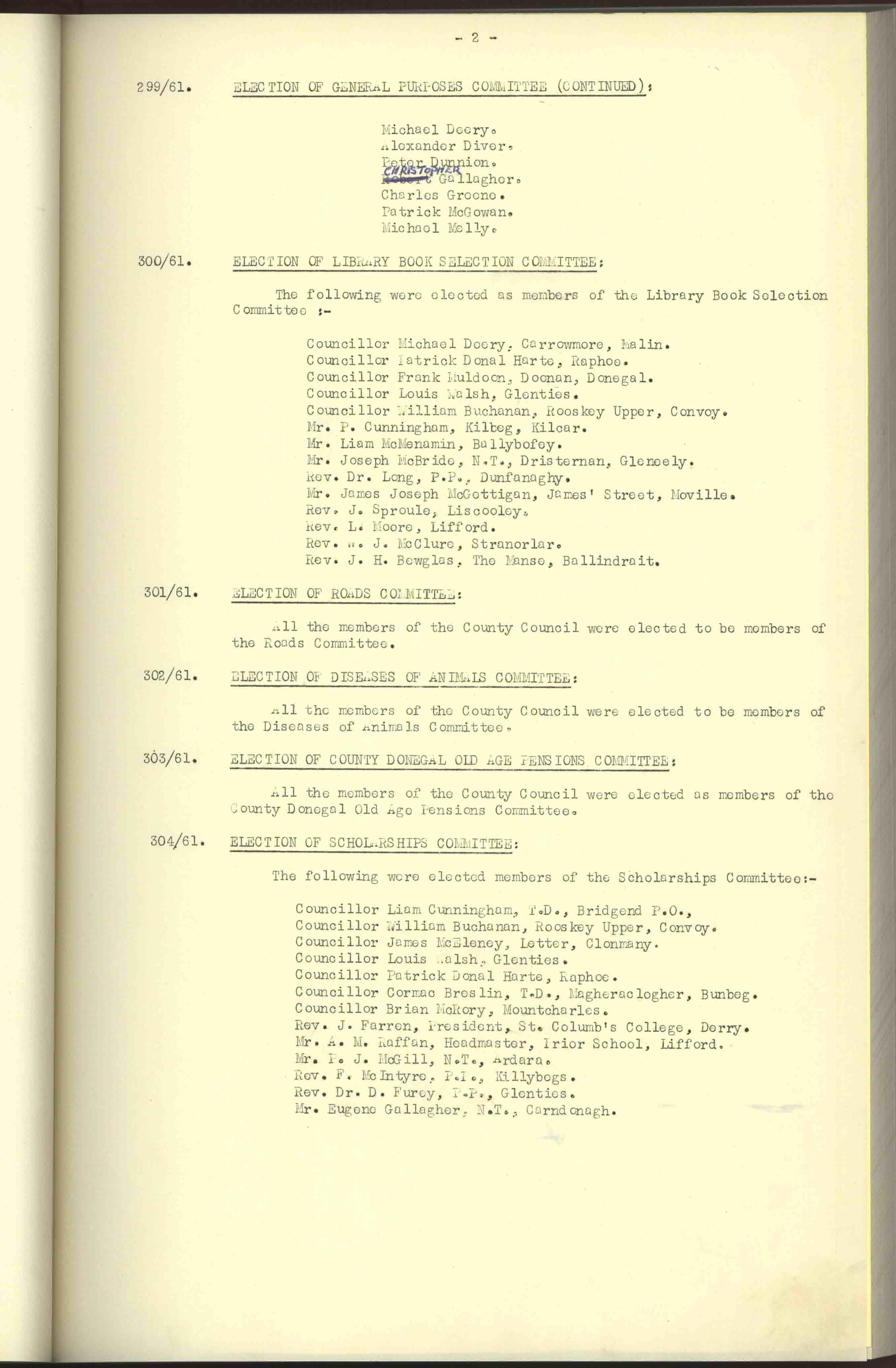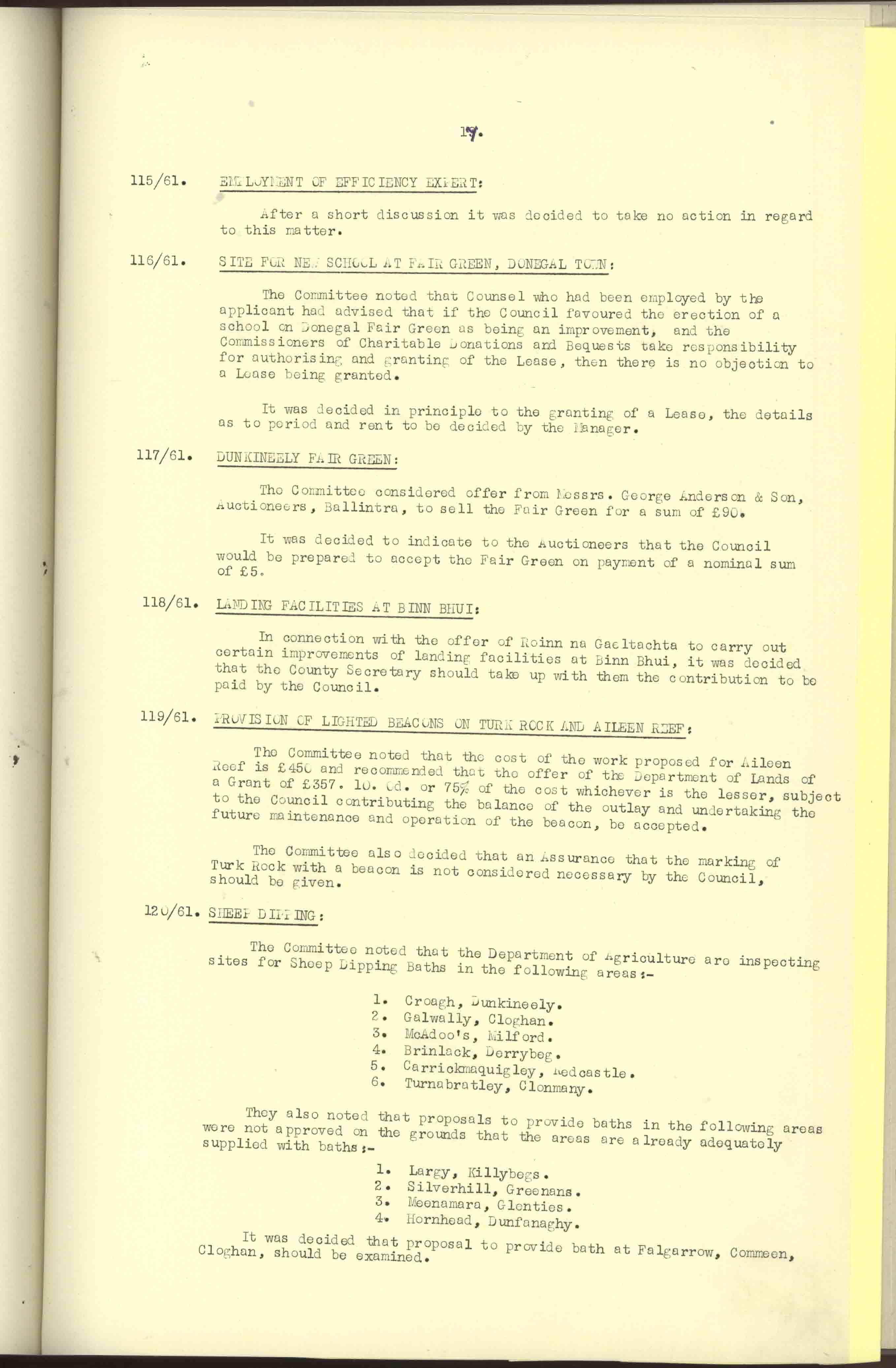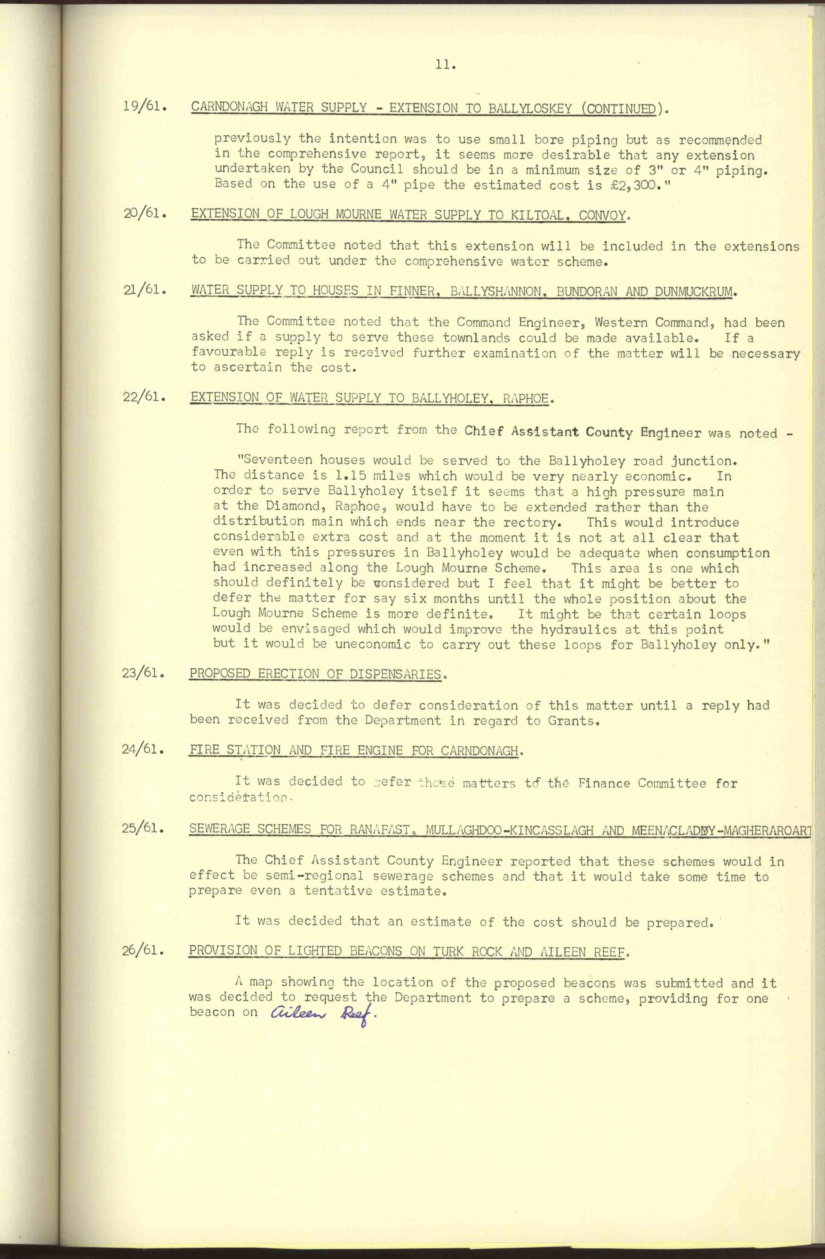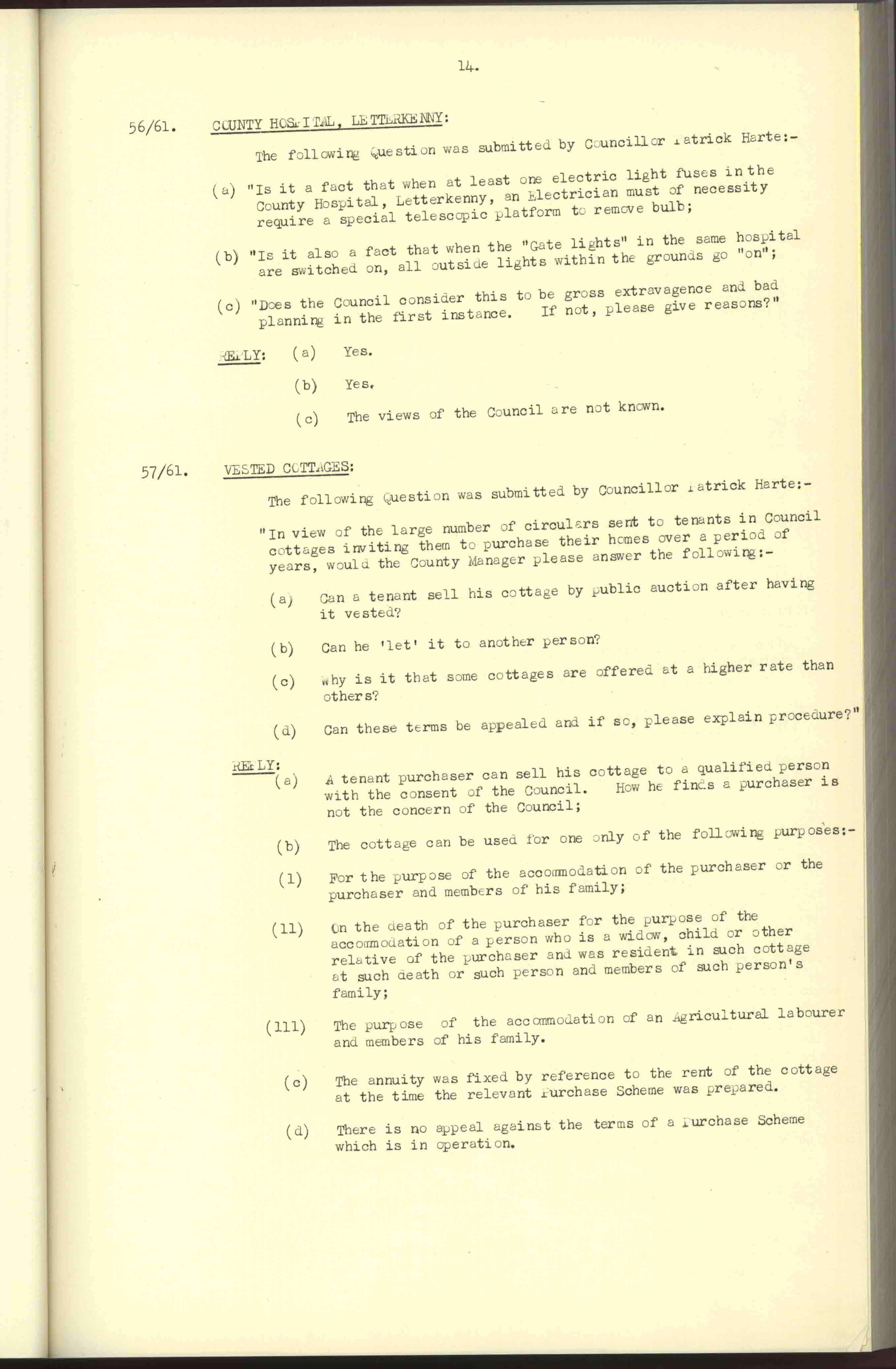 Donegal County Council Minutes, 1961