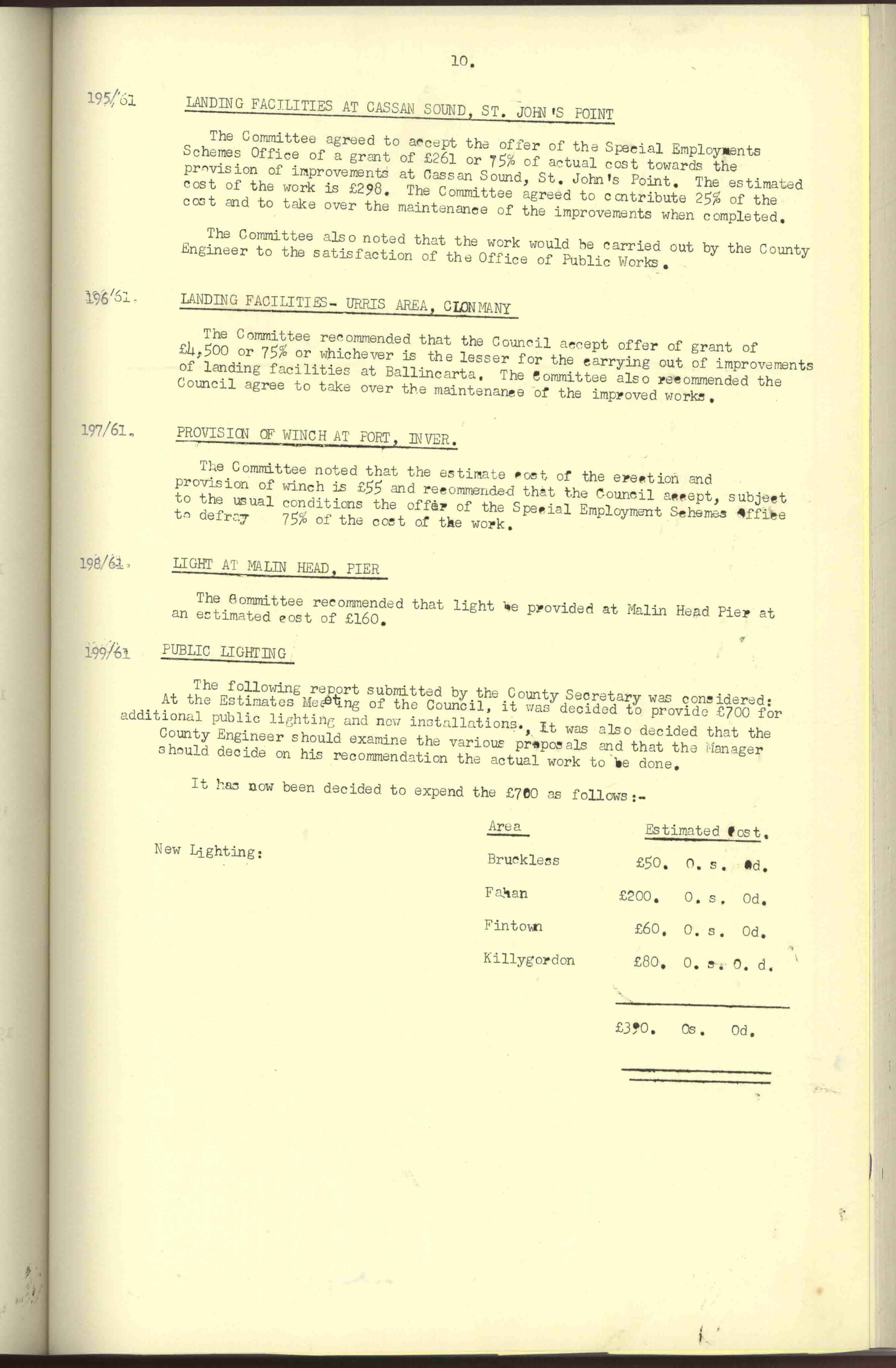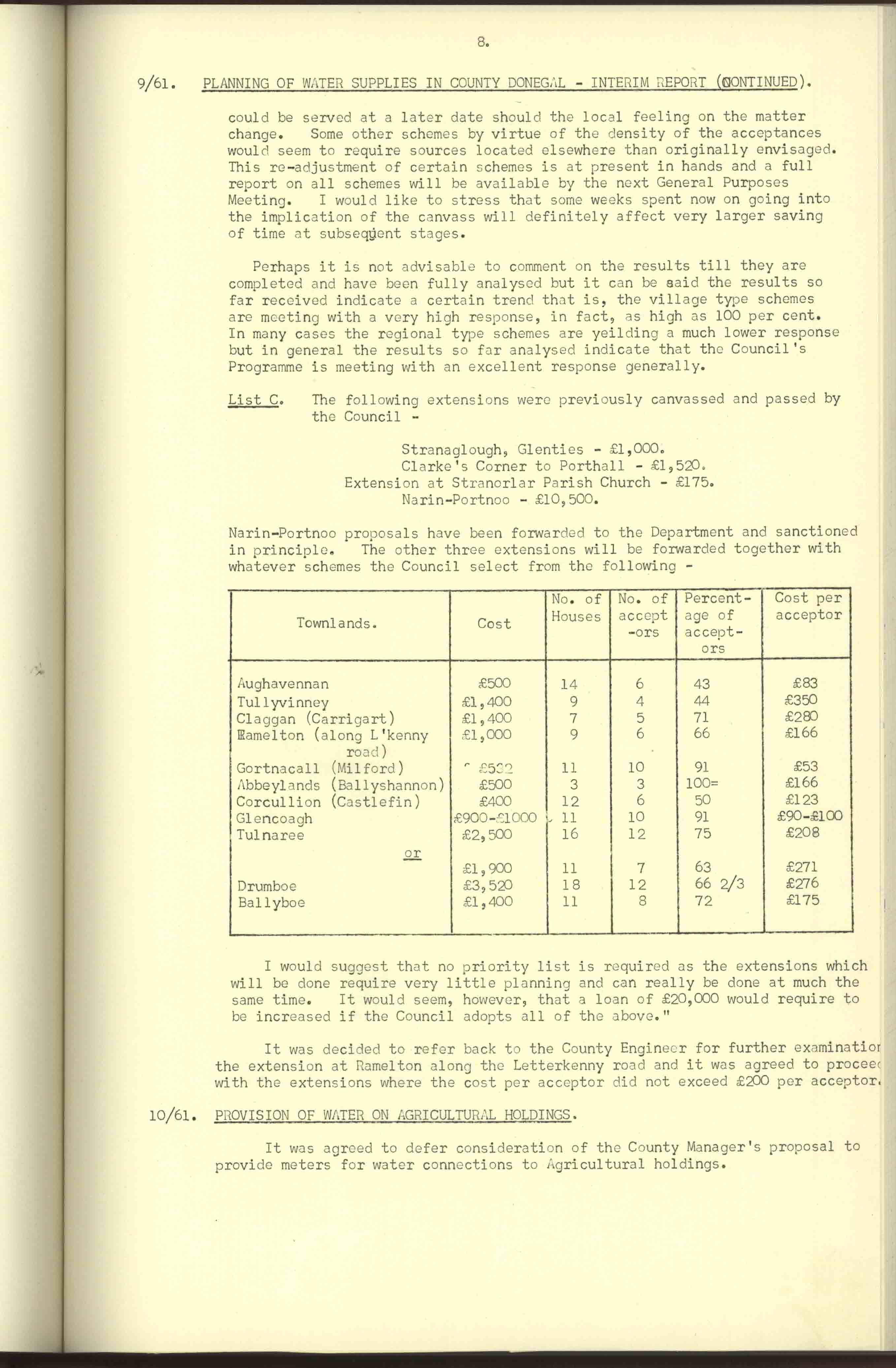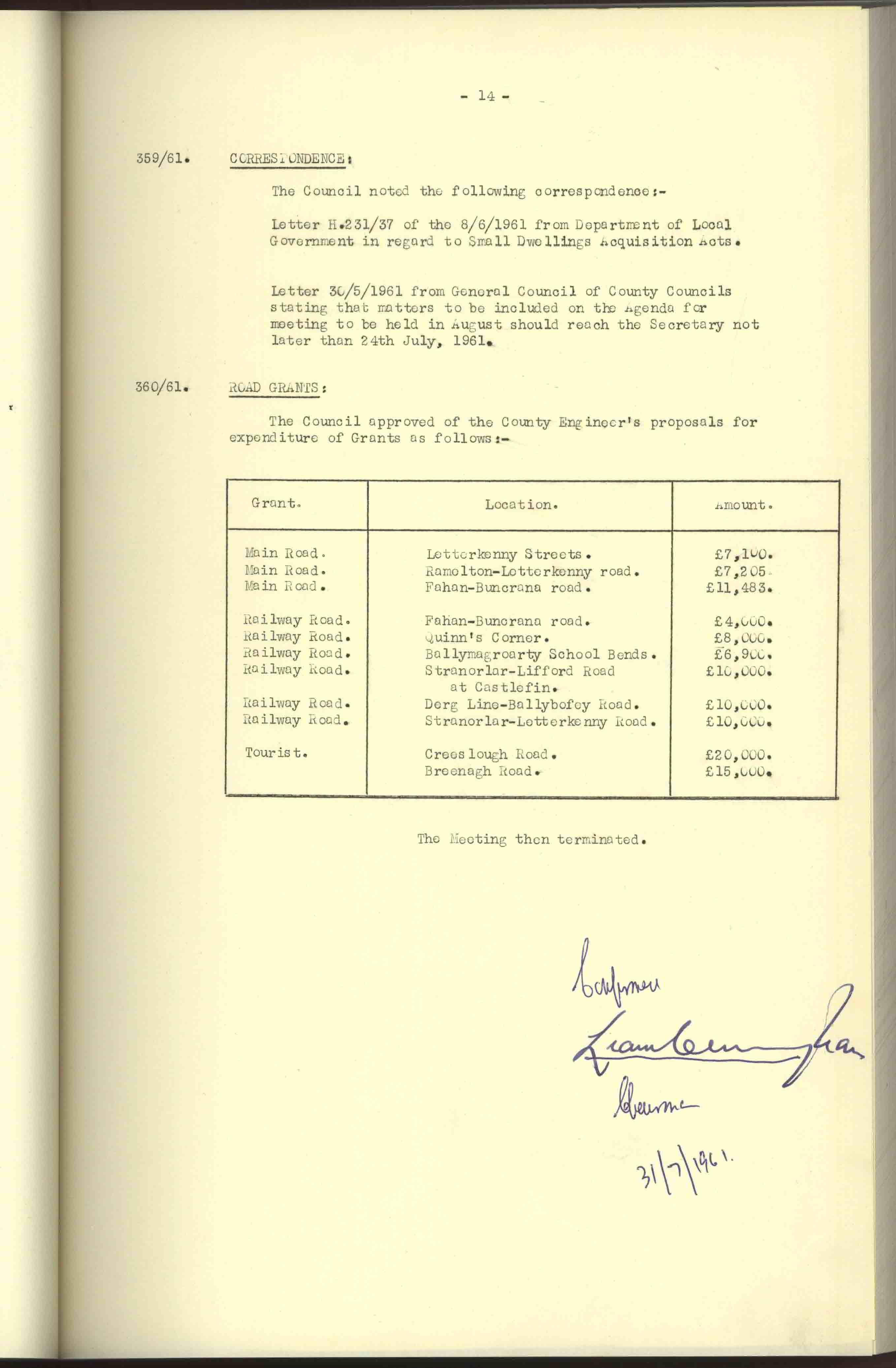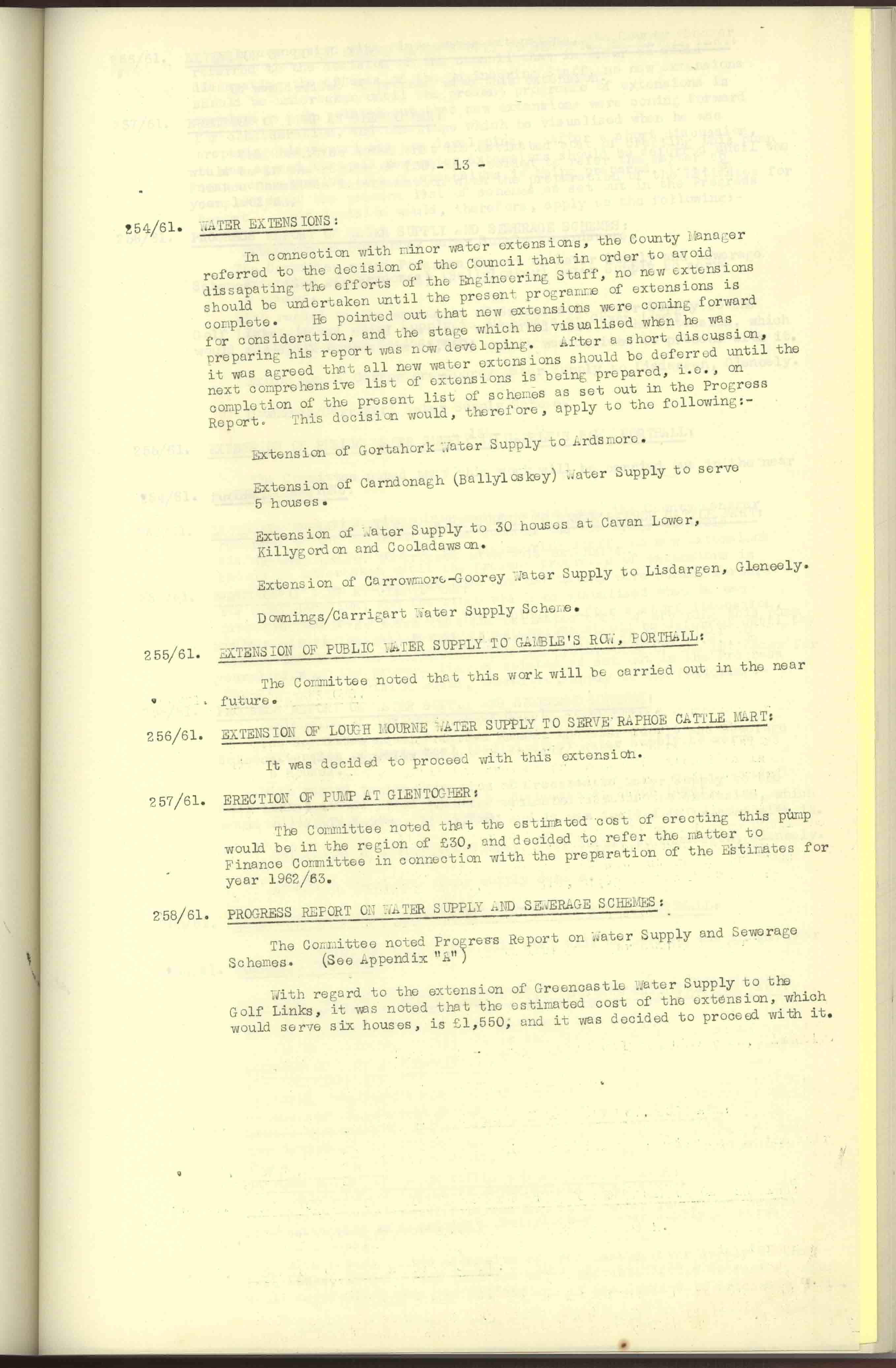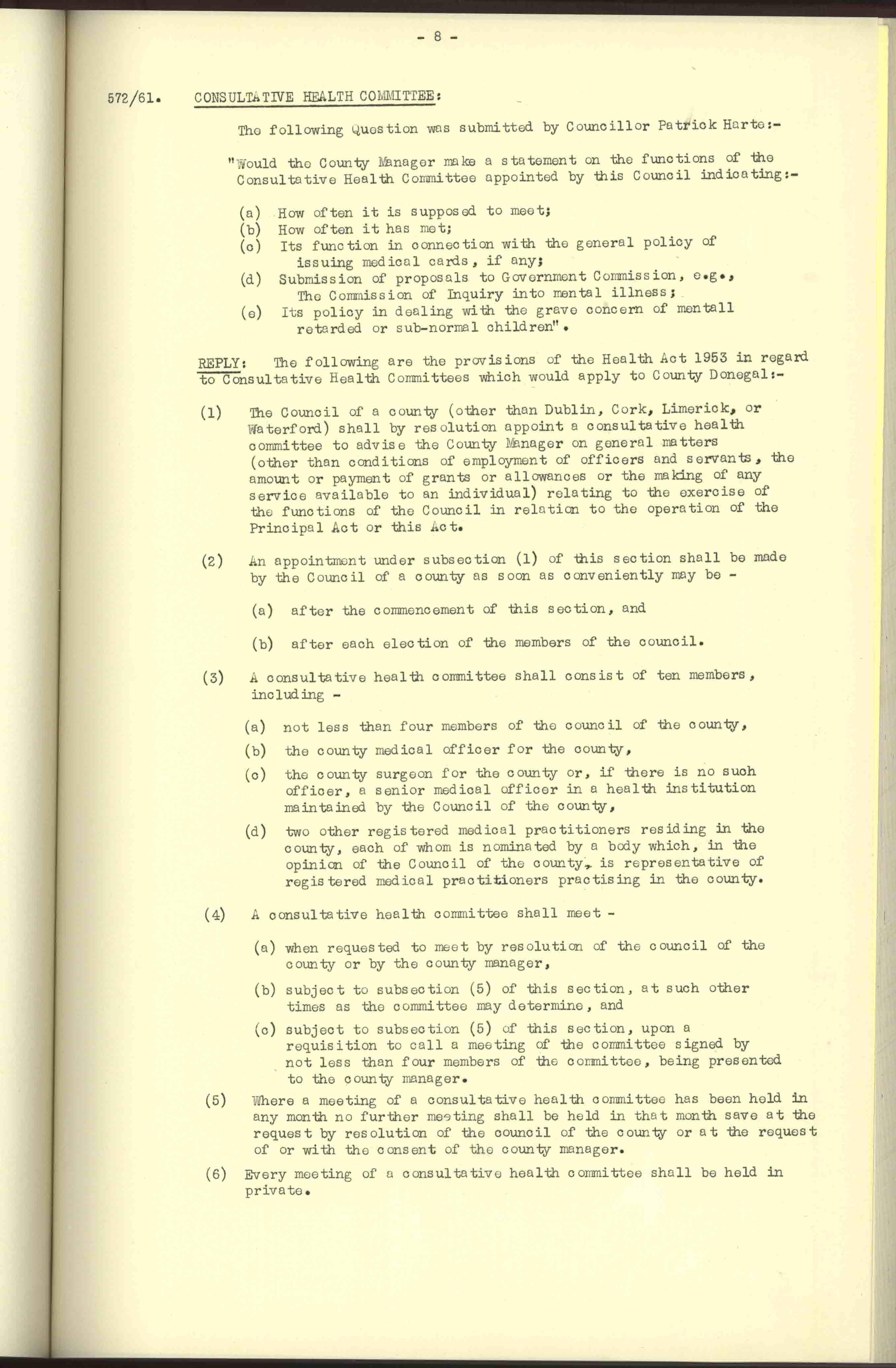 Donegal County Council Minutes, 1961