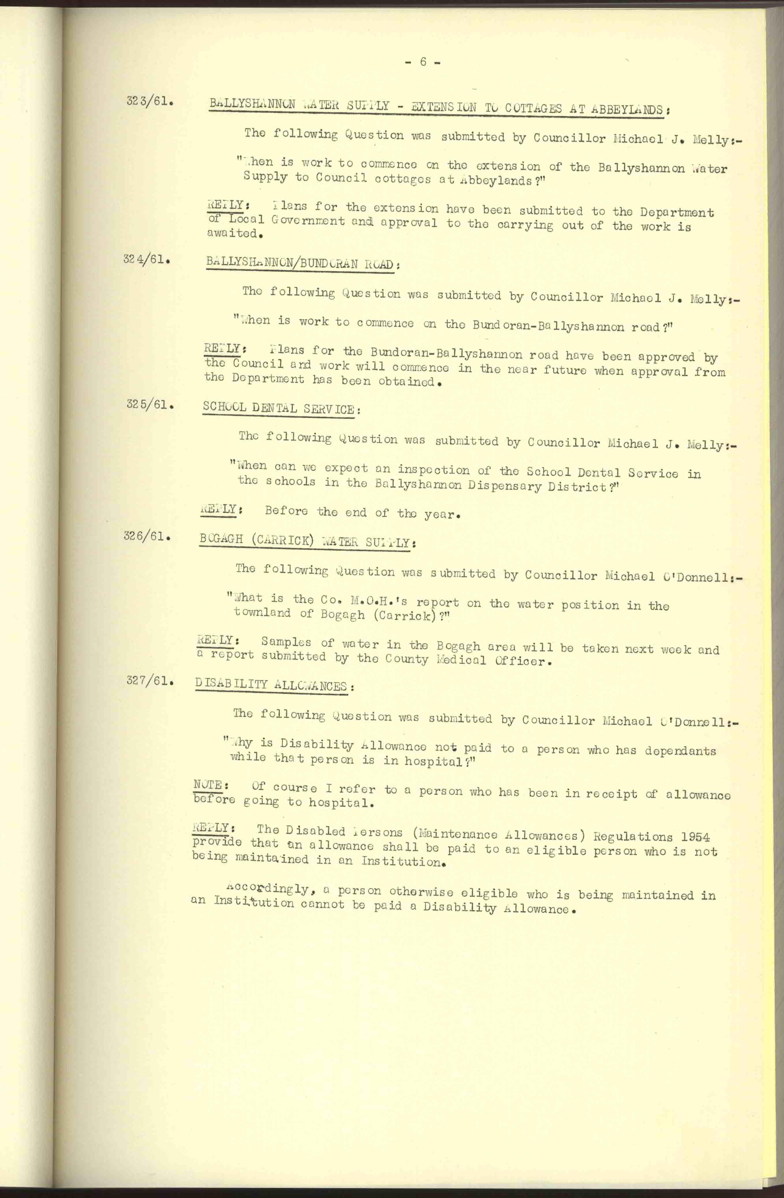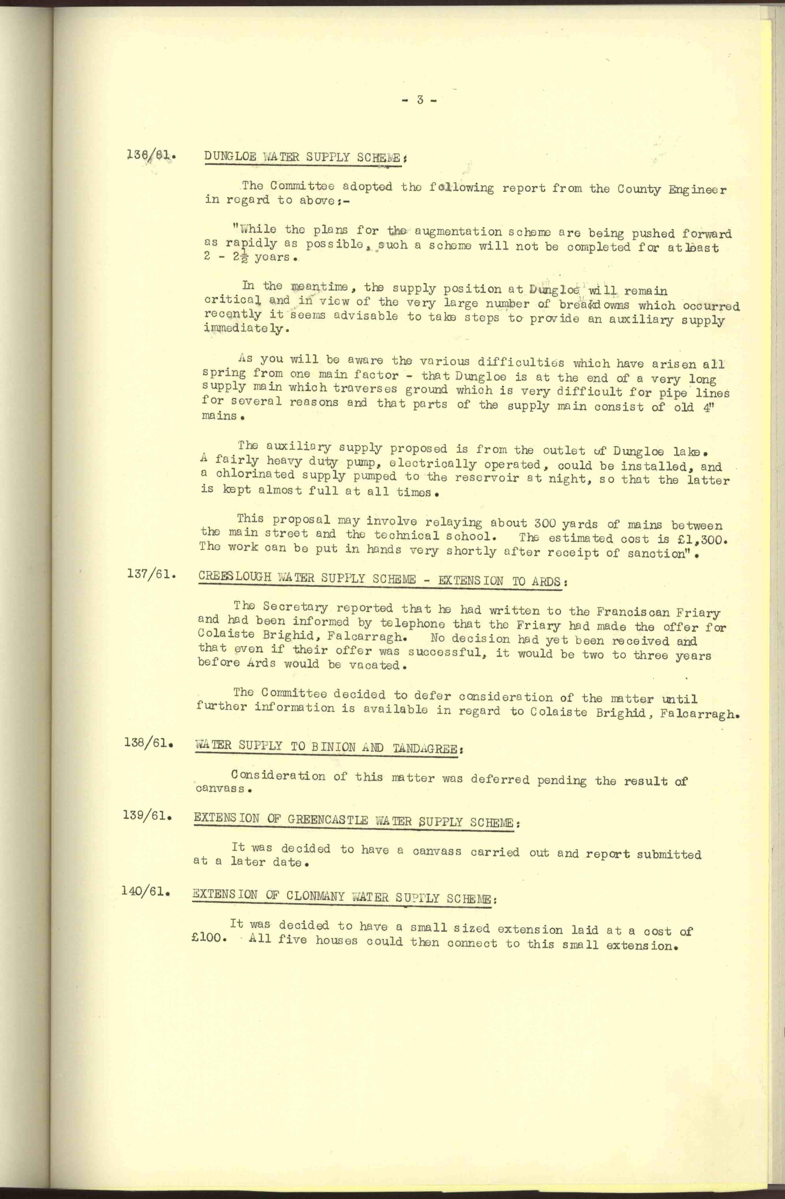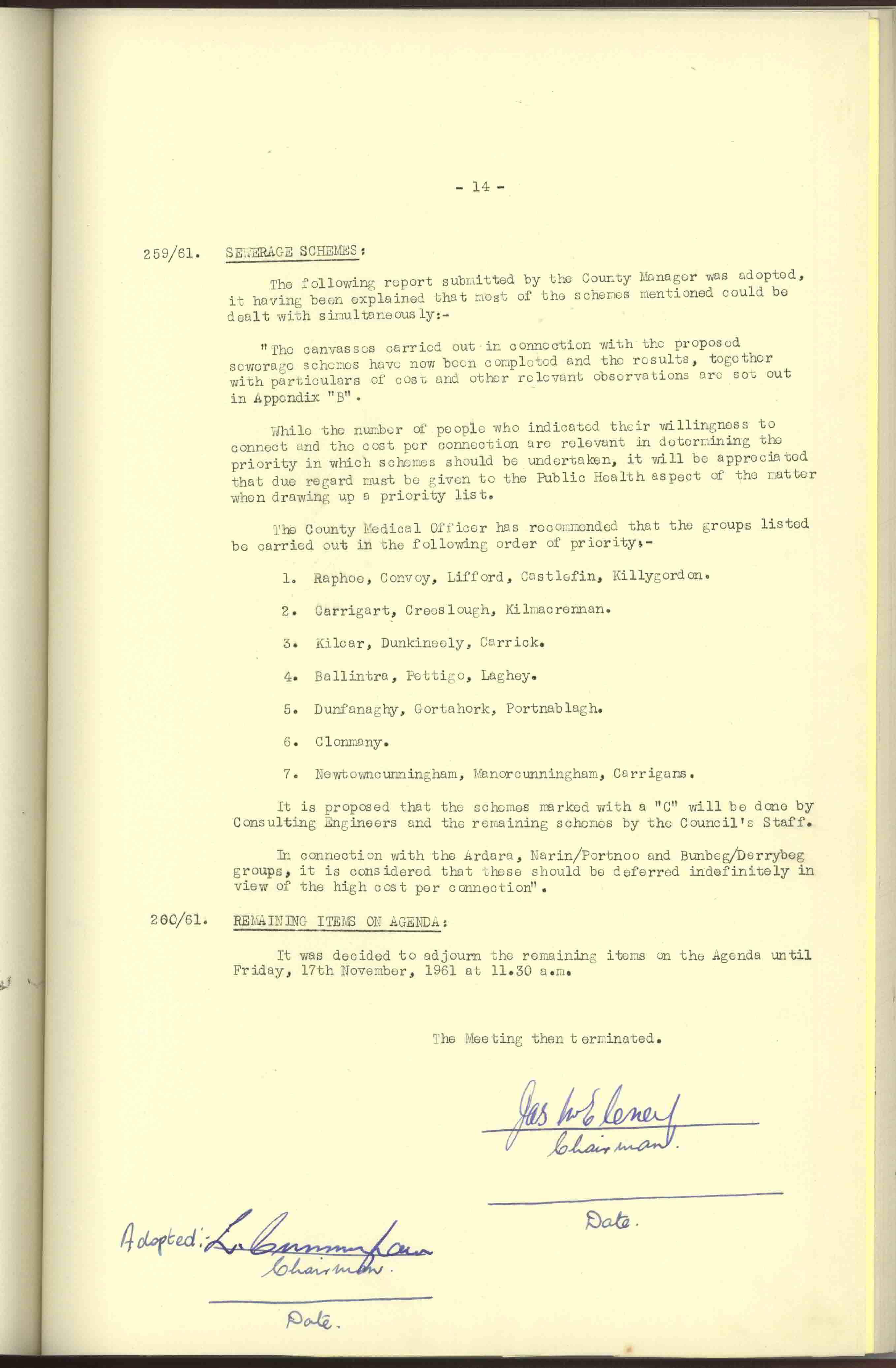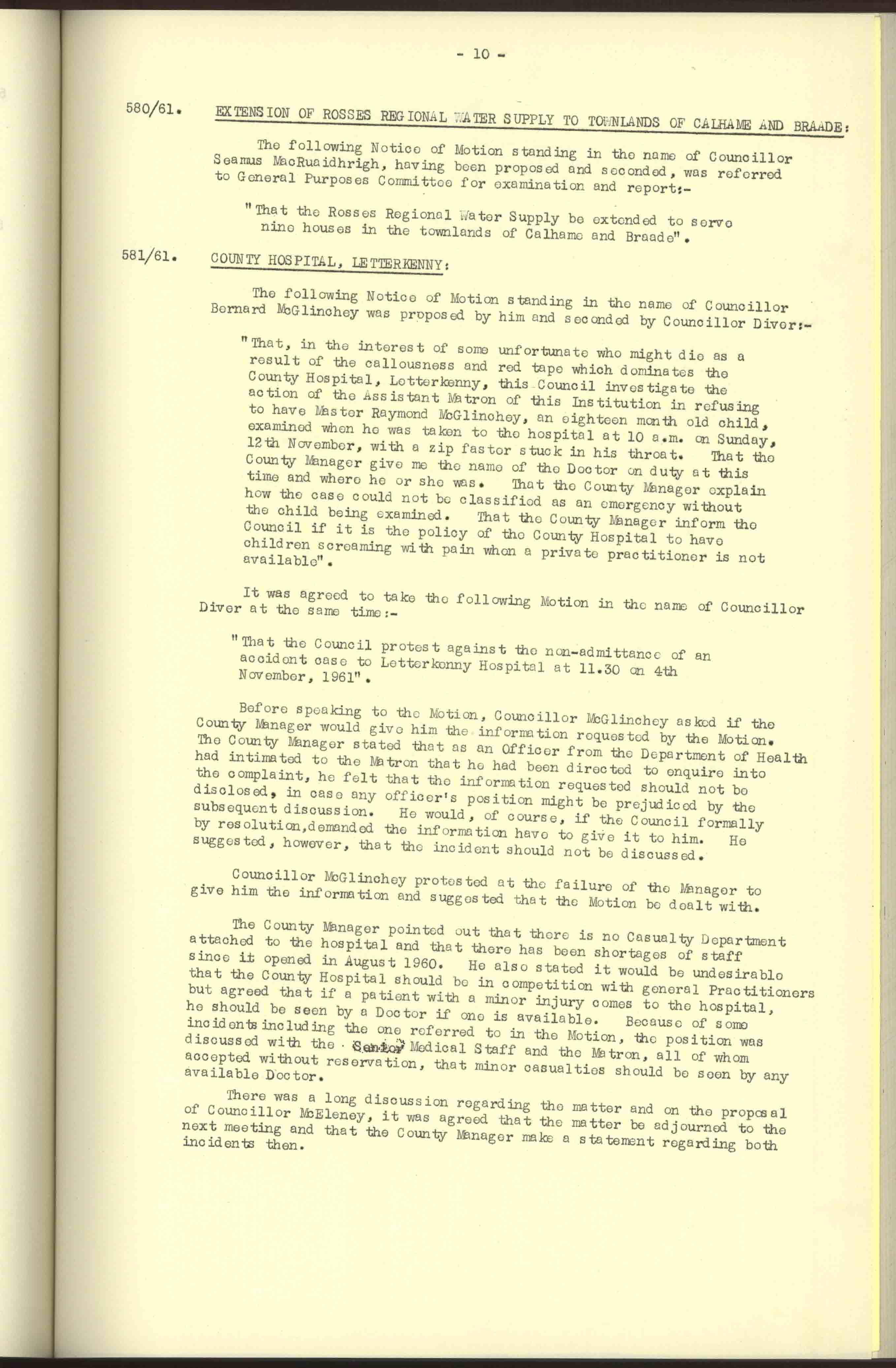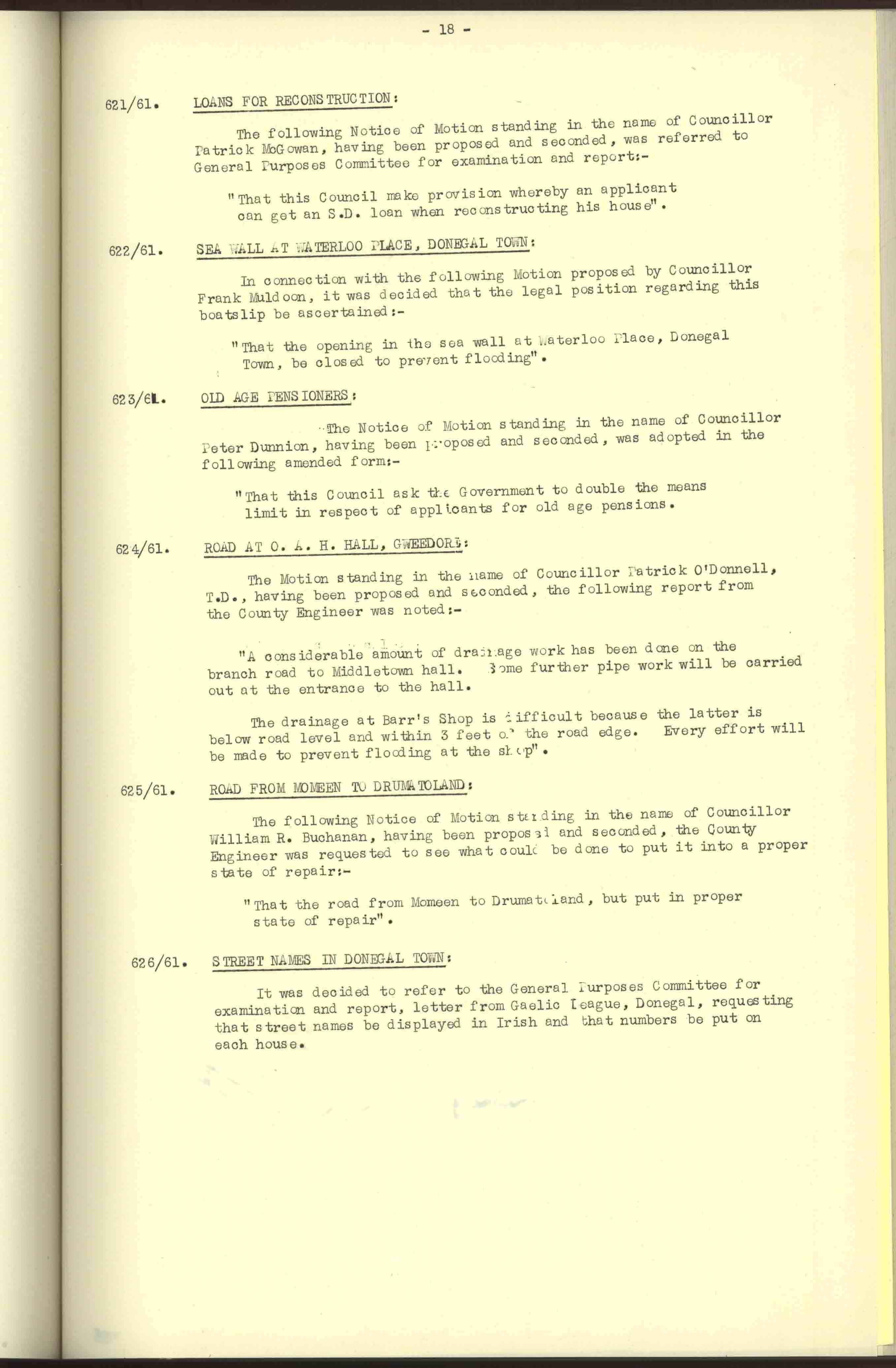 Donegal County Council Minutes, 1961