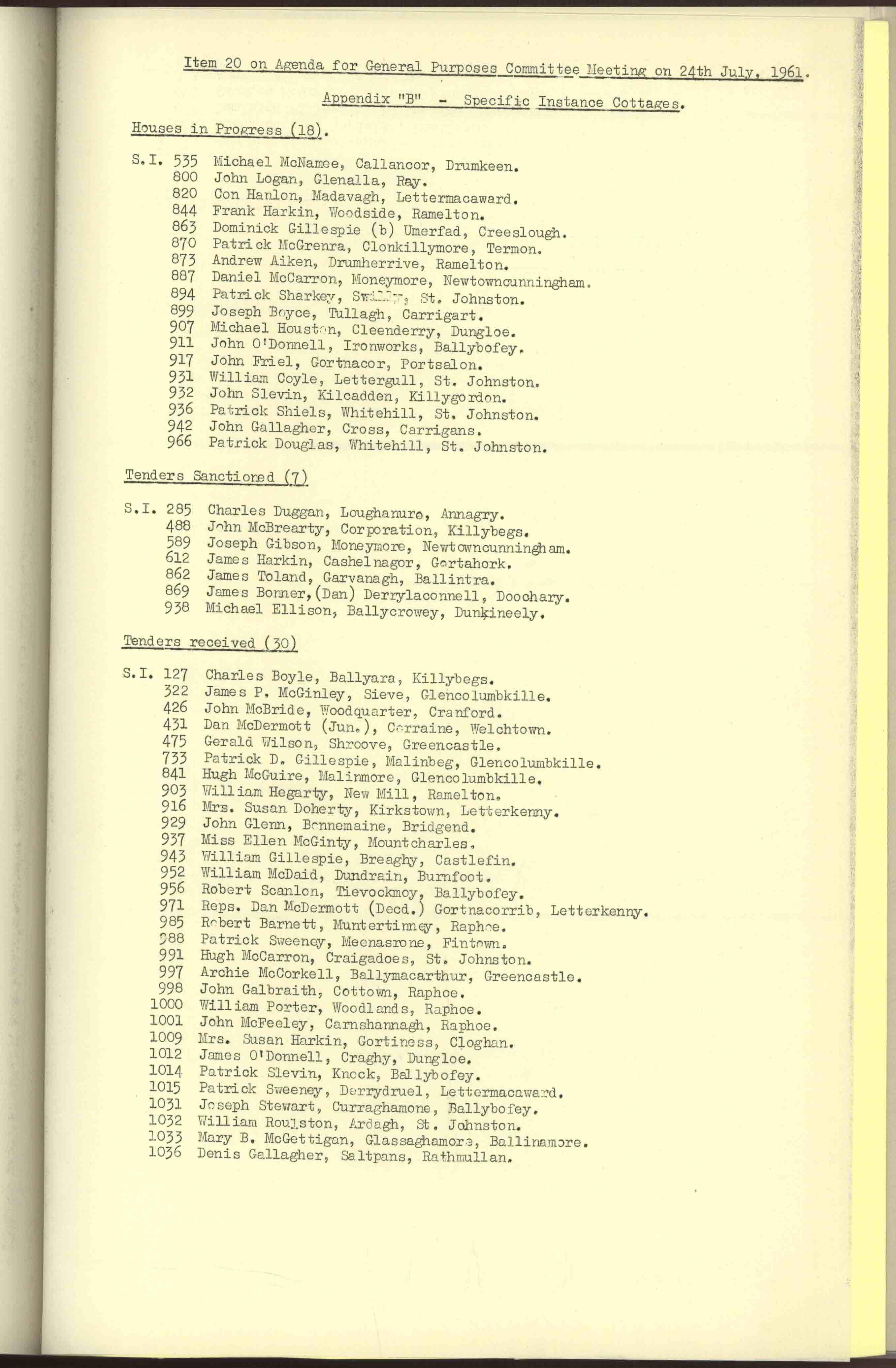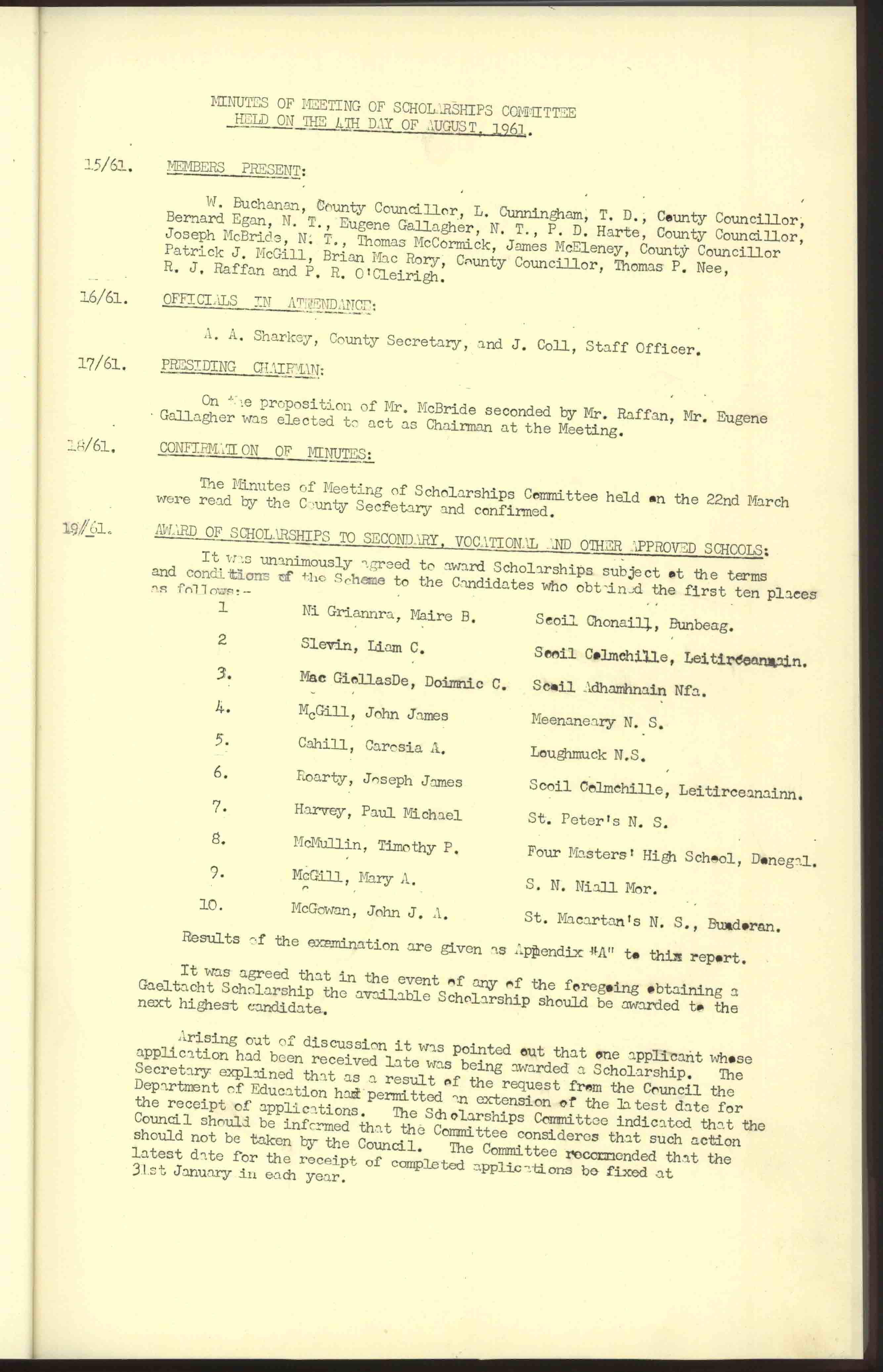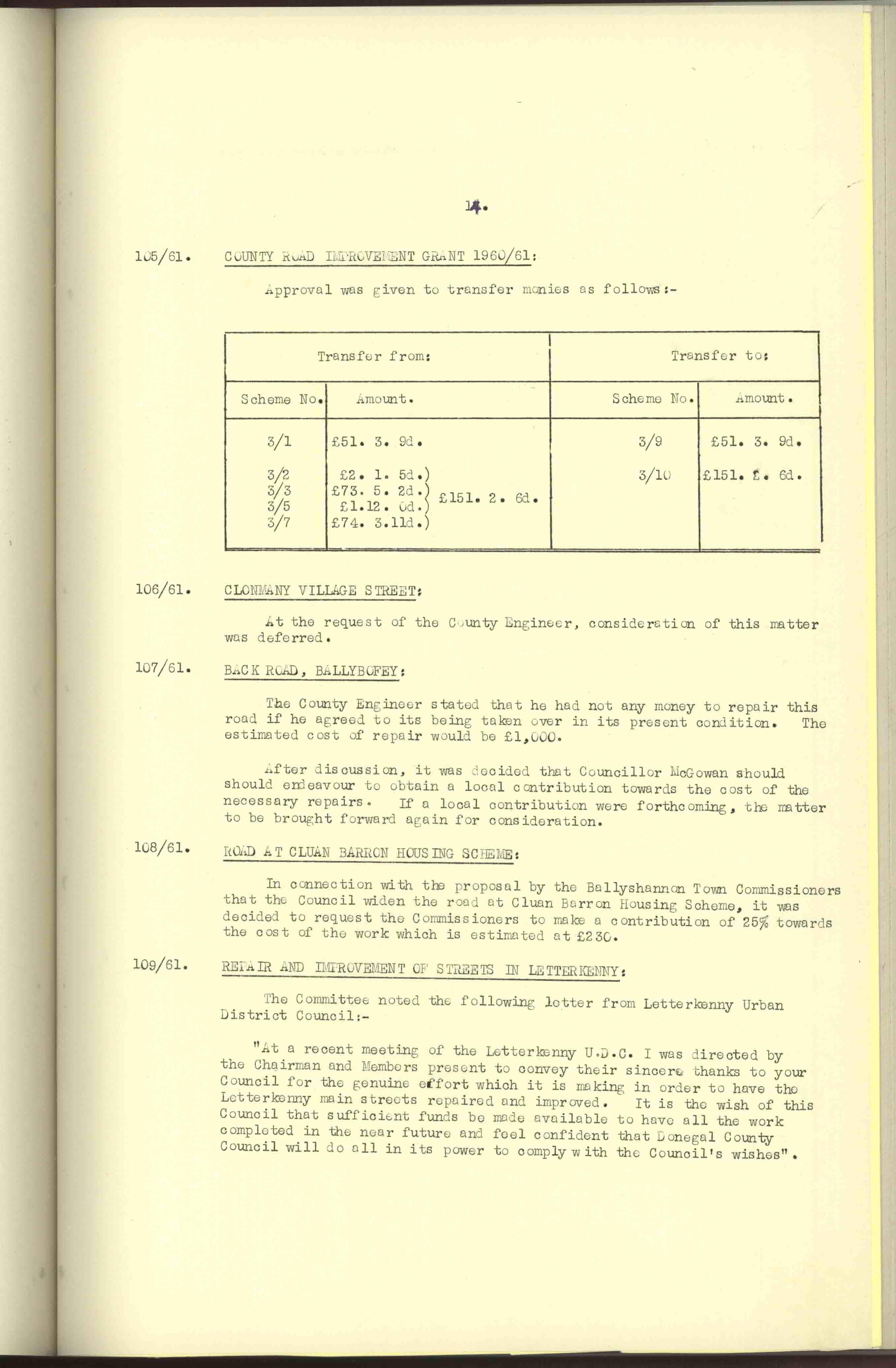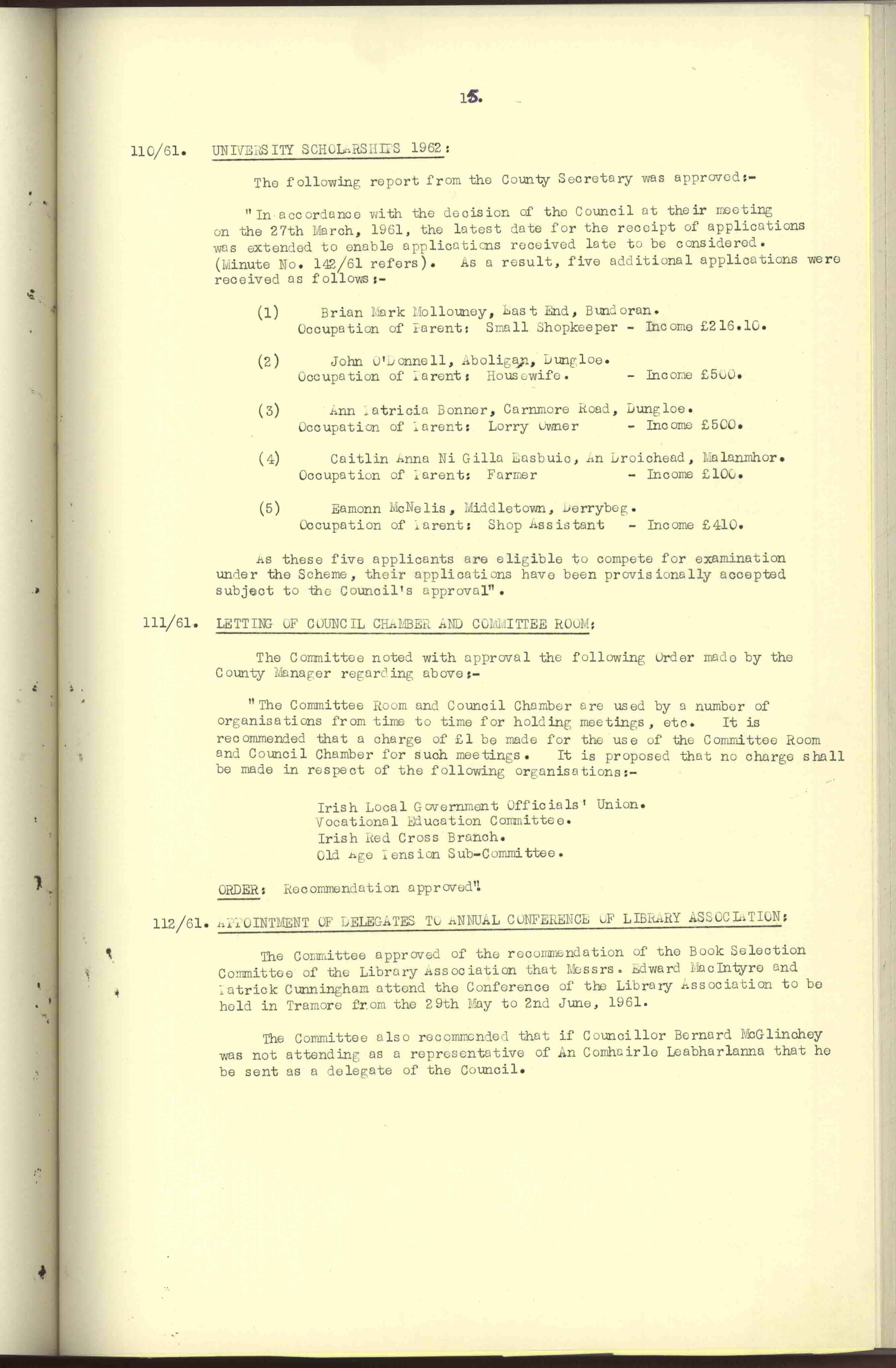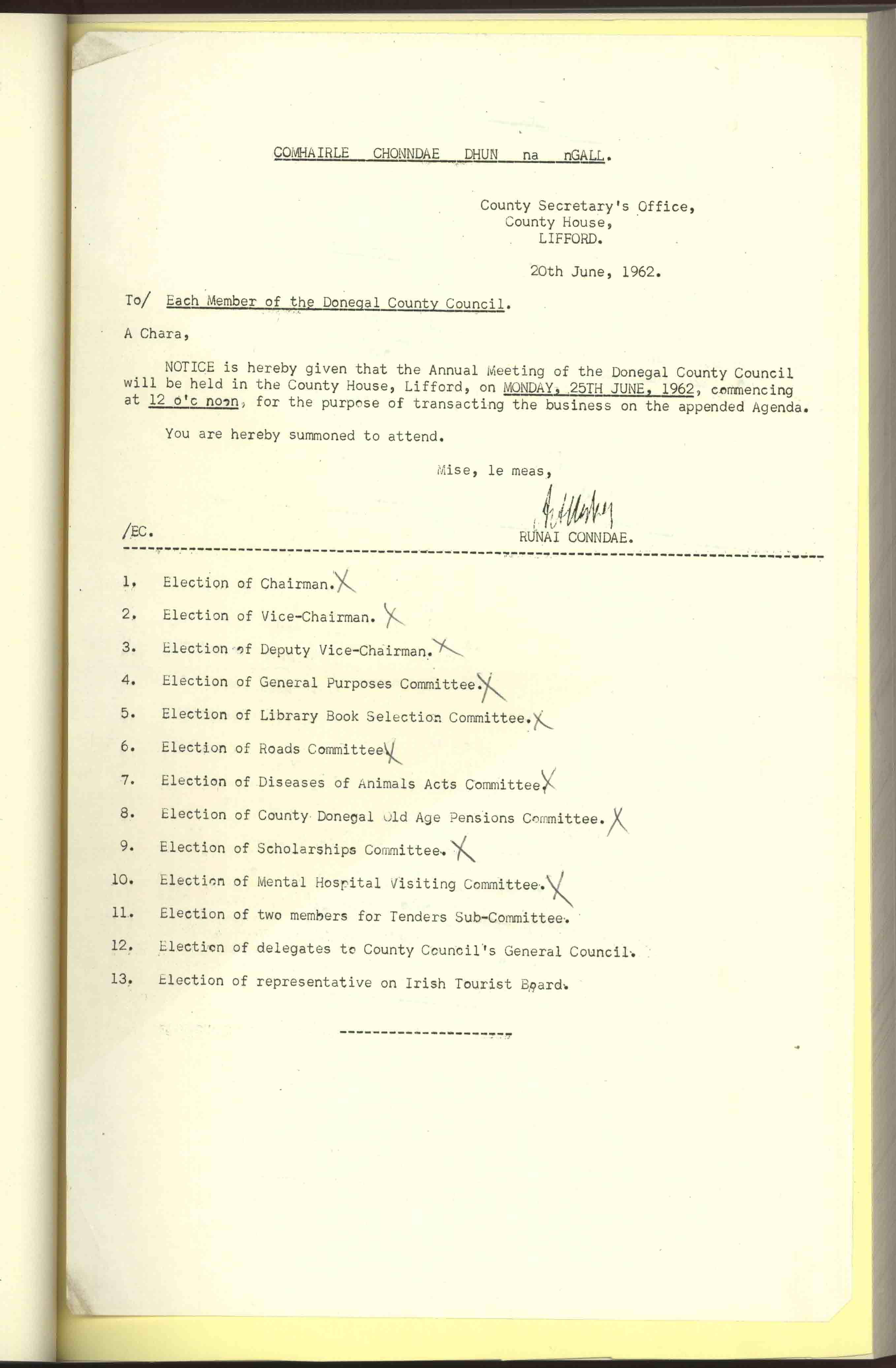 Donegal County Council Minutes, 1961